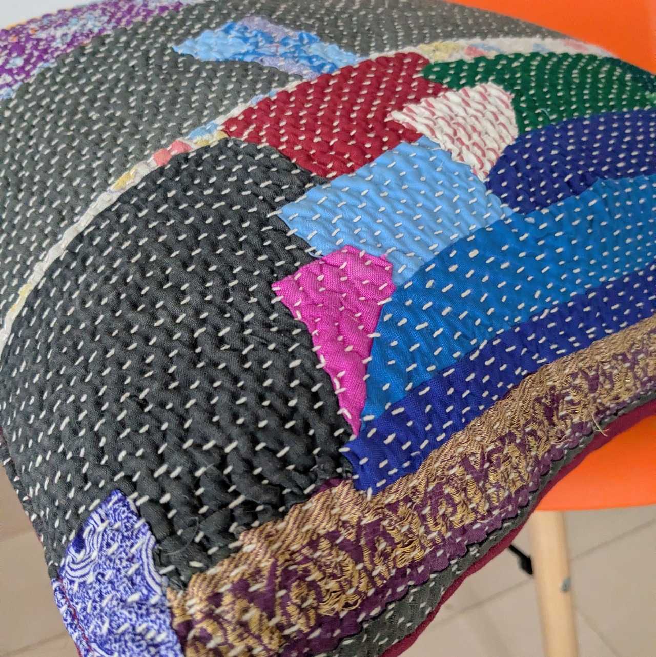 #ラリーキルト #刺し子 #古布 #エスニック #刺繍 #民族刺繍 #民族衣装 #パッチワーク #マルチカバー #ソファーカバー #ベッドカバー #ラグ #襤褸 #ヴィンテージ #ビンテージ #アジア #雑貨 #インテリア #カンタ刺繍 #ハンドメイド #クッション #クッションカバー #刺繍布 #ピンク