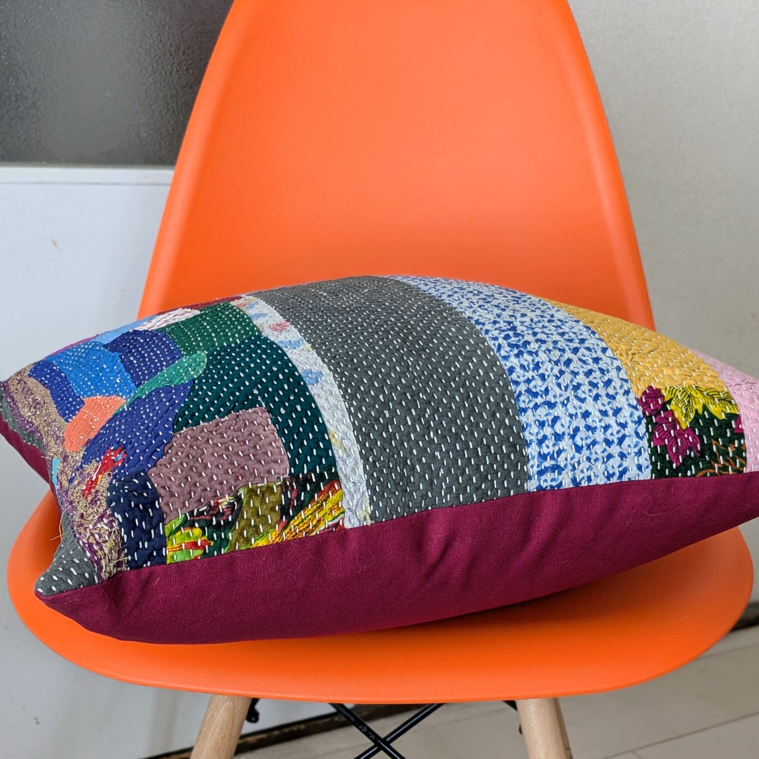 ヴィンテージラリーキルトのクッションです。