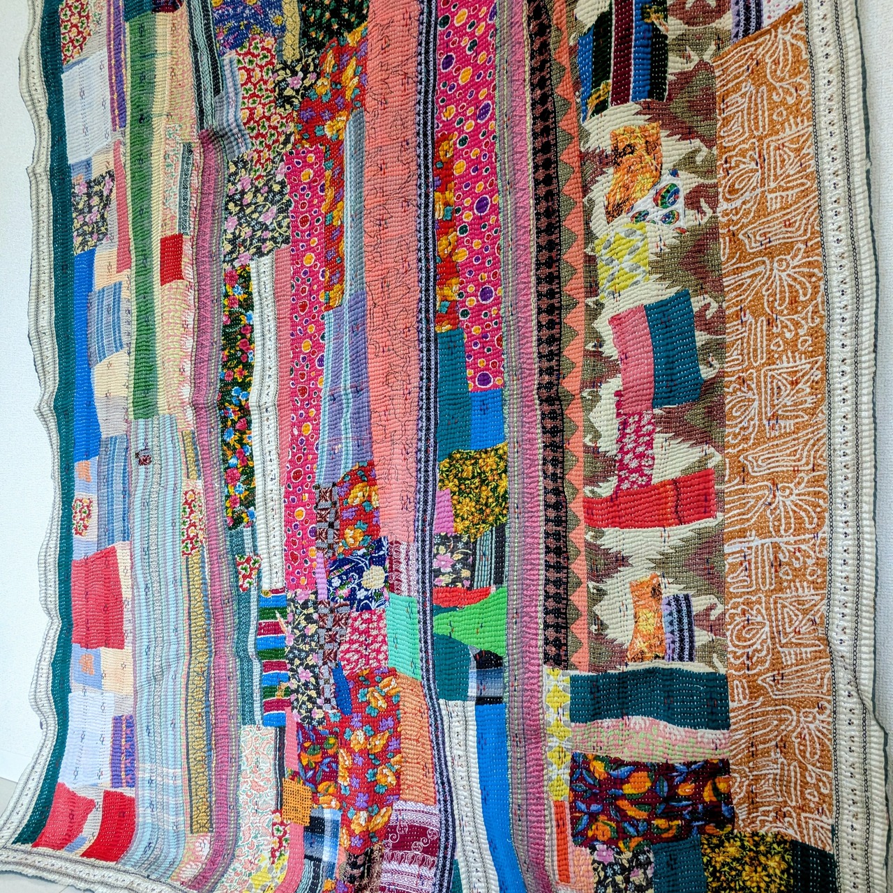 #ラリーキルト #刺し子 #古布 #エスニック #刺繍 #民族刺繍 #民族衣装 #パッチワーク #マルチカバー #ソファーカバー #ベッドカバー #ラグ #襤褸 #ヴィンテージ #ビンテージ #アジア #雑貨 #インテリア #カンタ刺繍 #ハンドメイド #タペストリー #インド綿