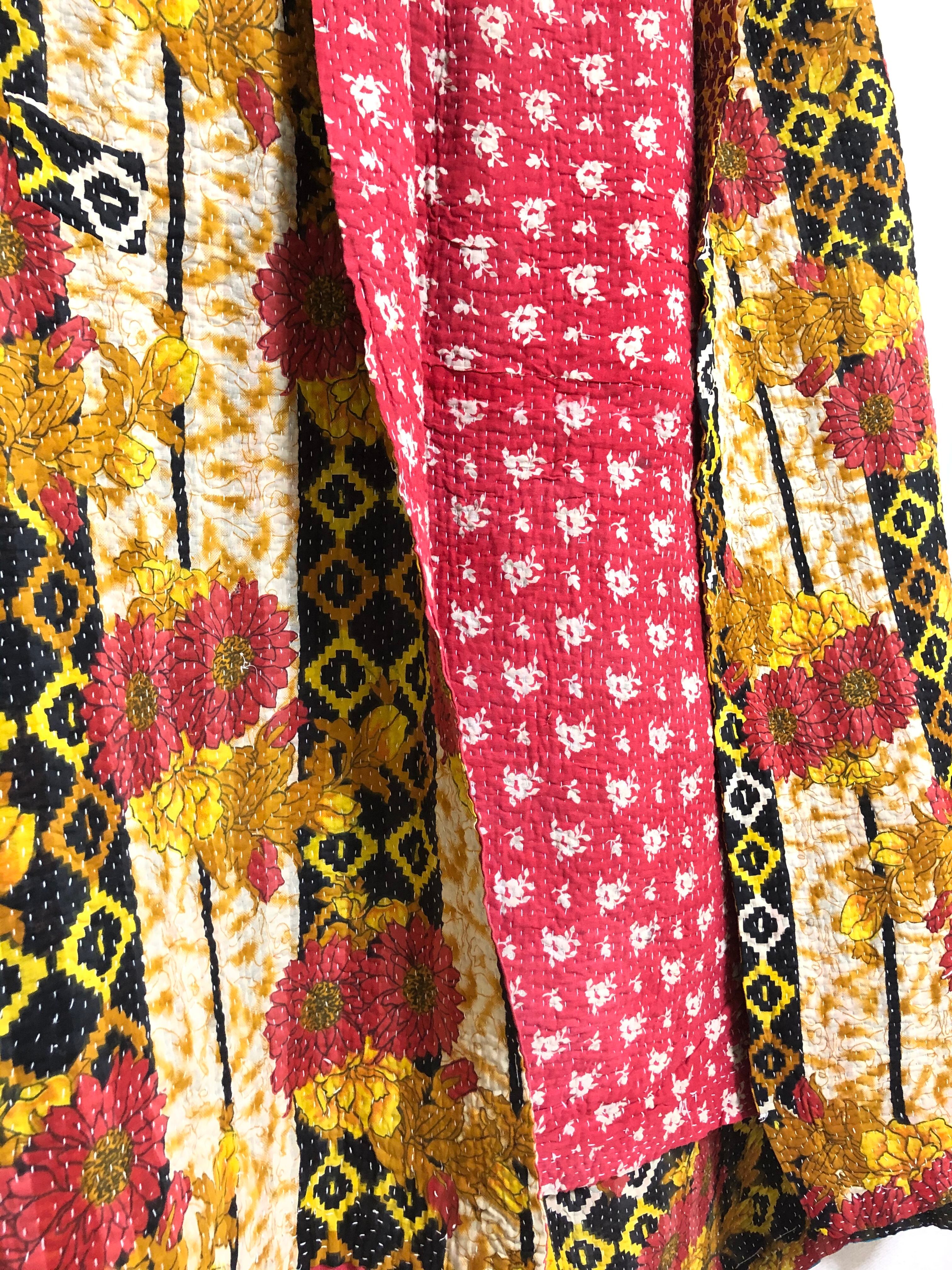 アカとミズイロのラリーキルト 刺し子 パッチワーク エスニック 古布