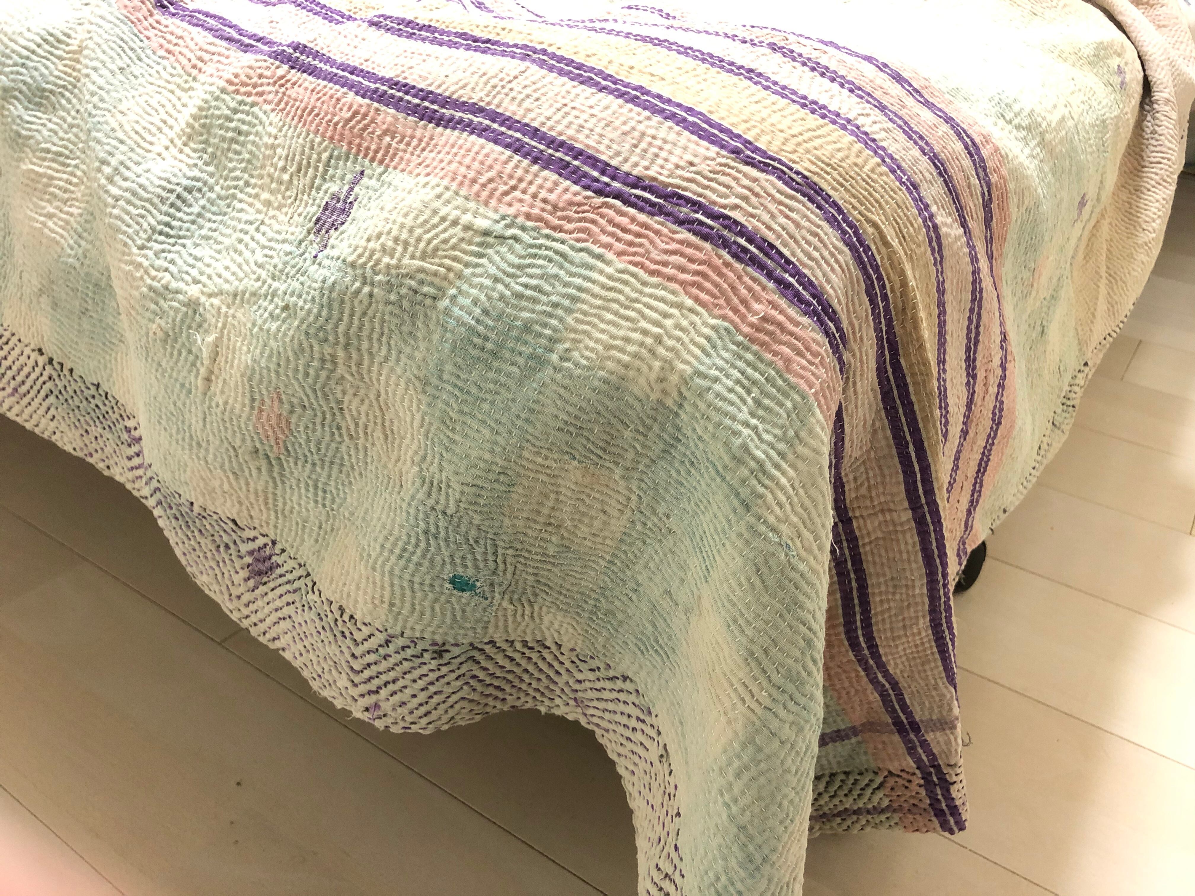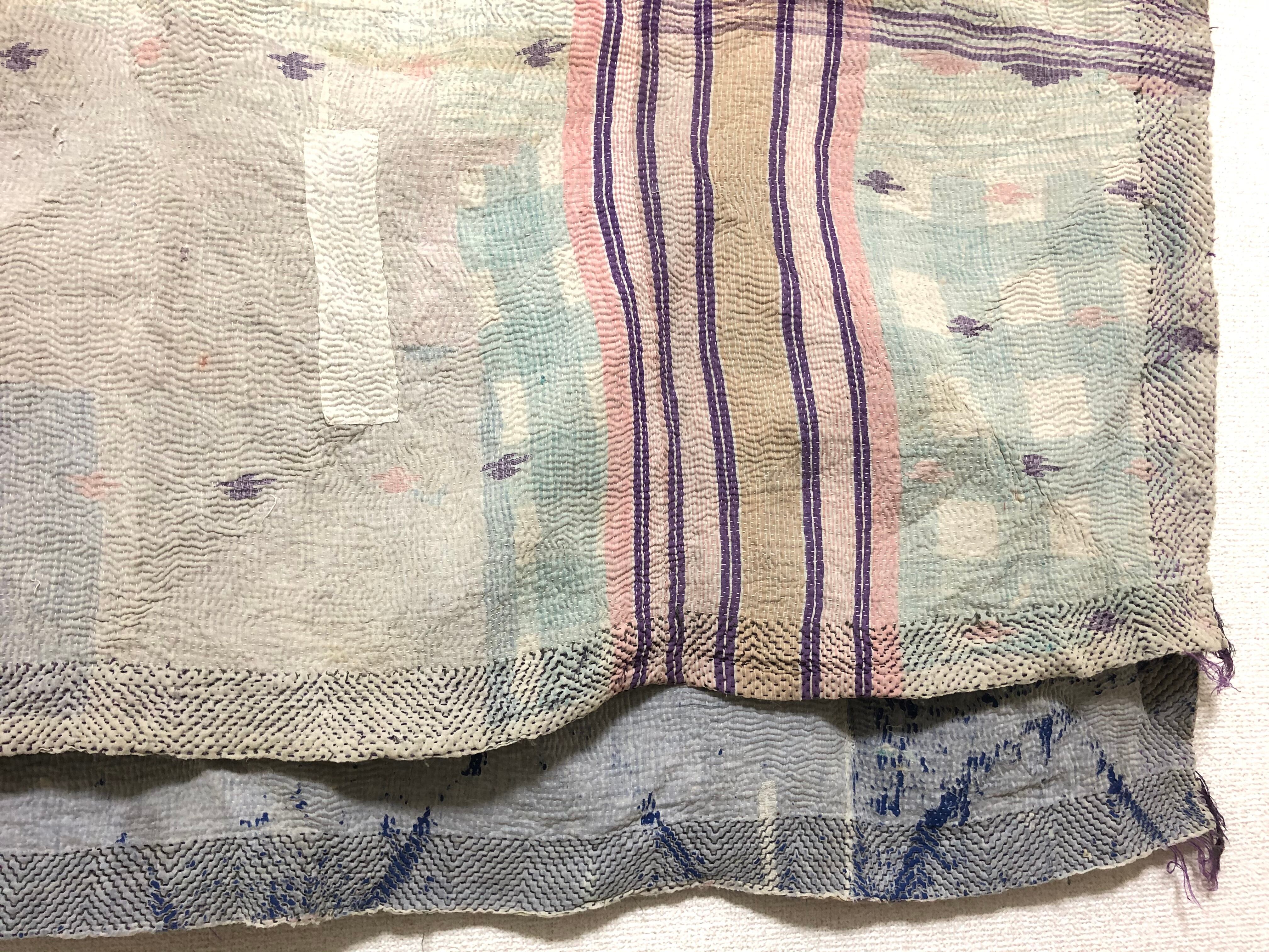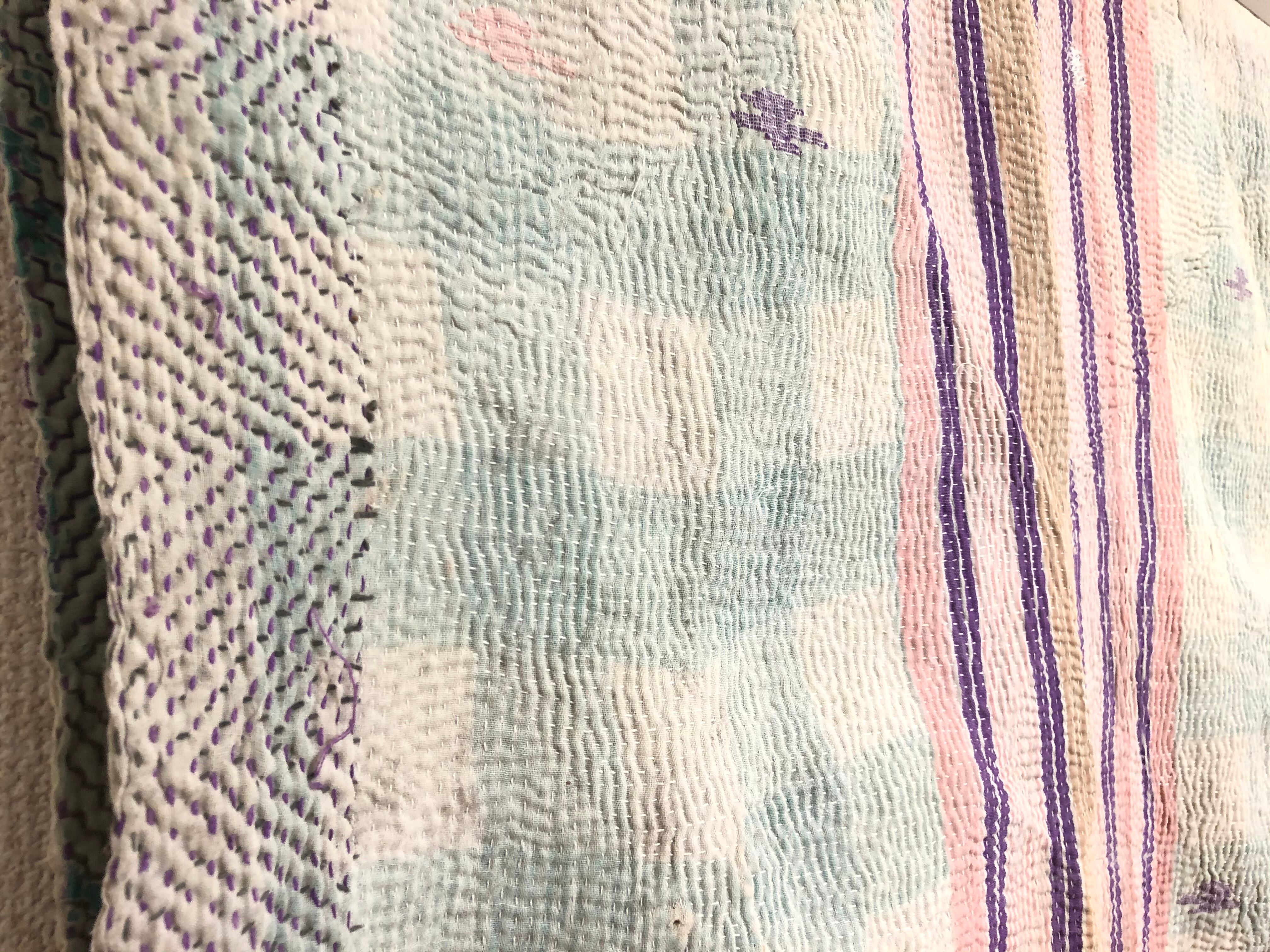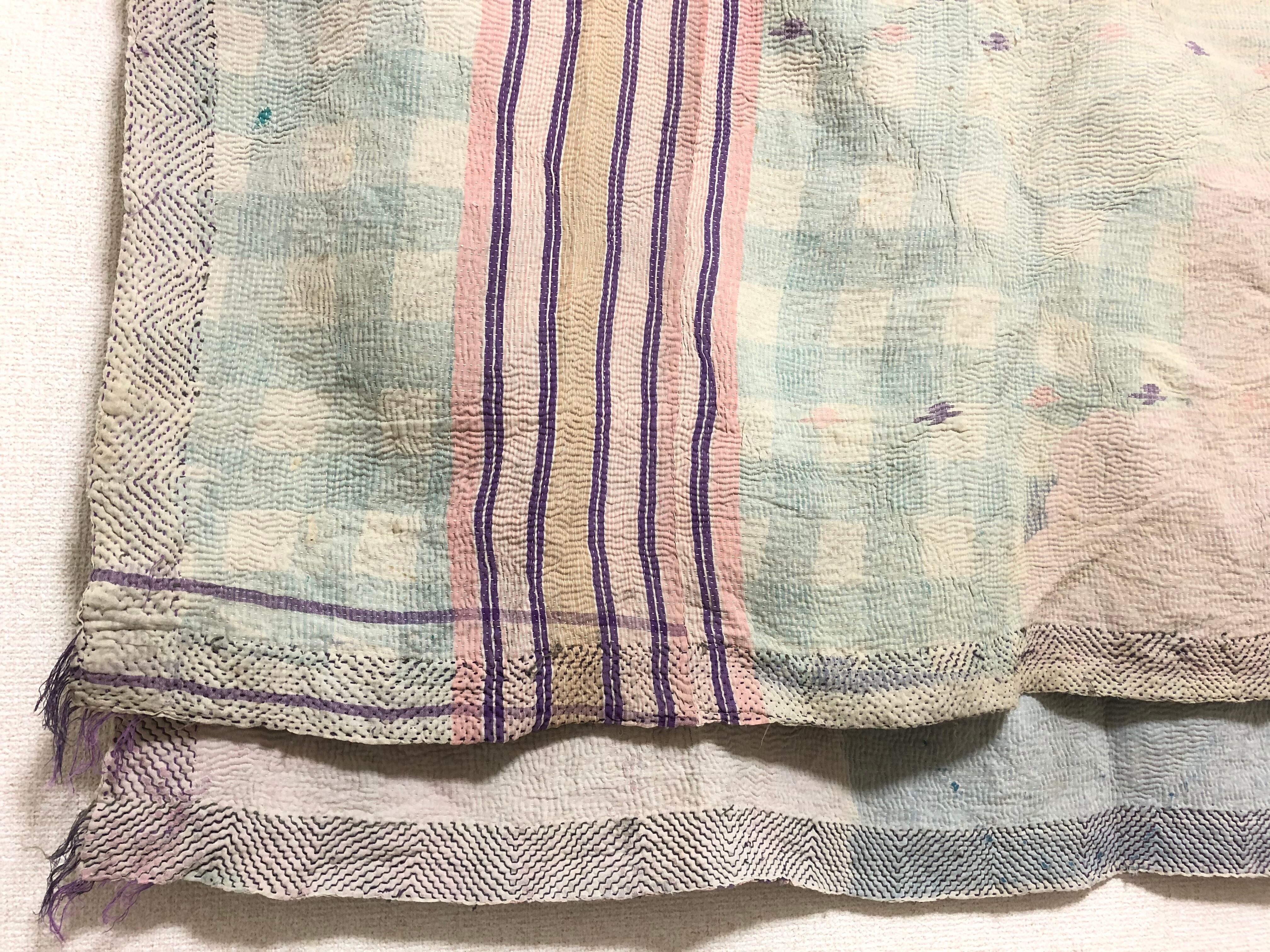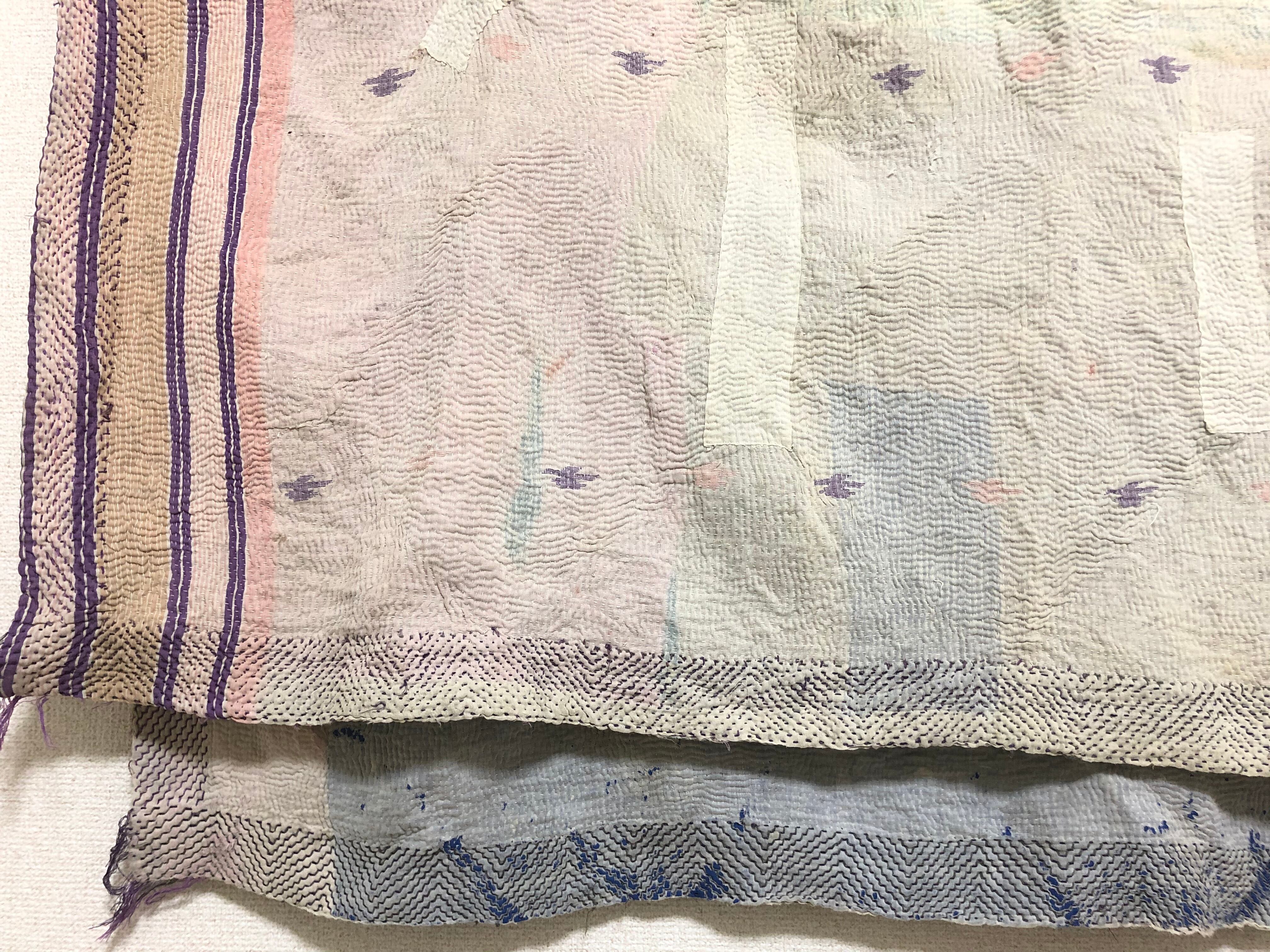 薄いピンクのヴィンテージラリーキルト 刺し子 刺繍 古布 襤褸 ハンドメイド