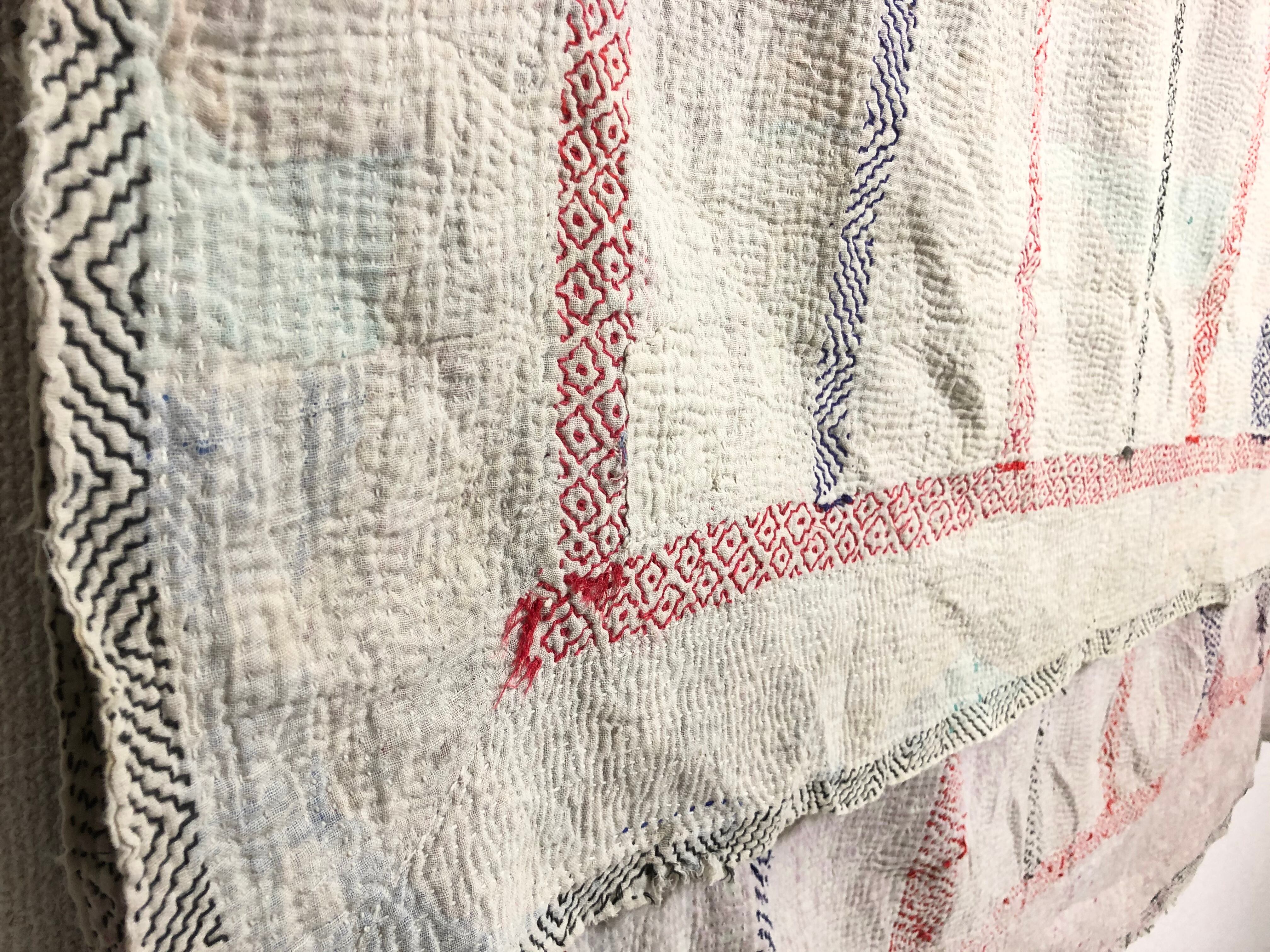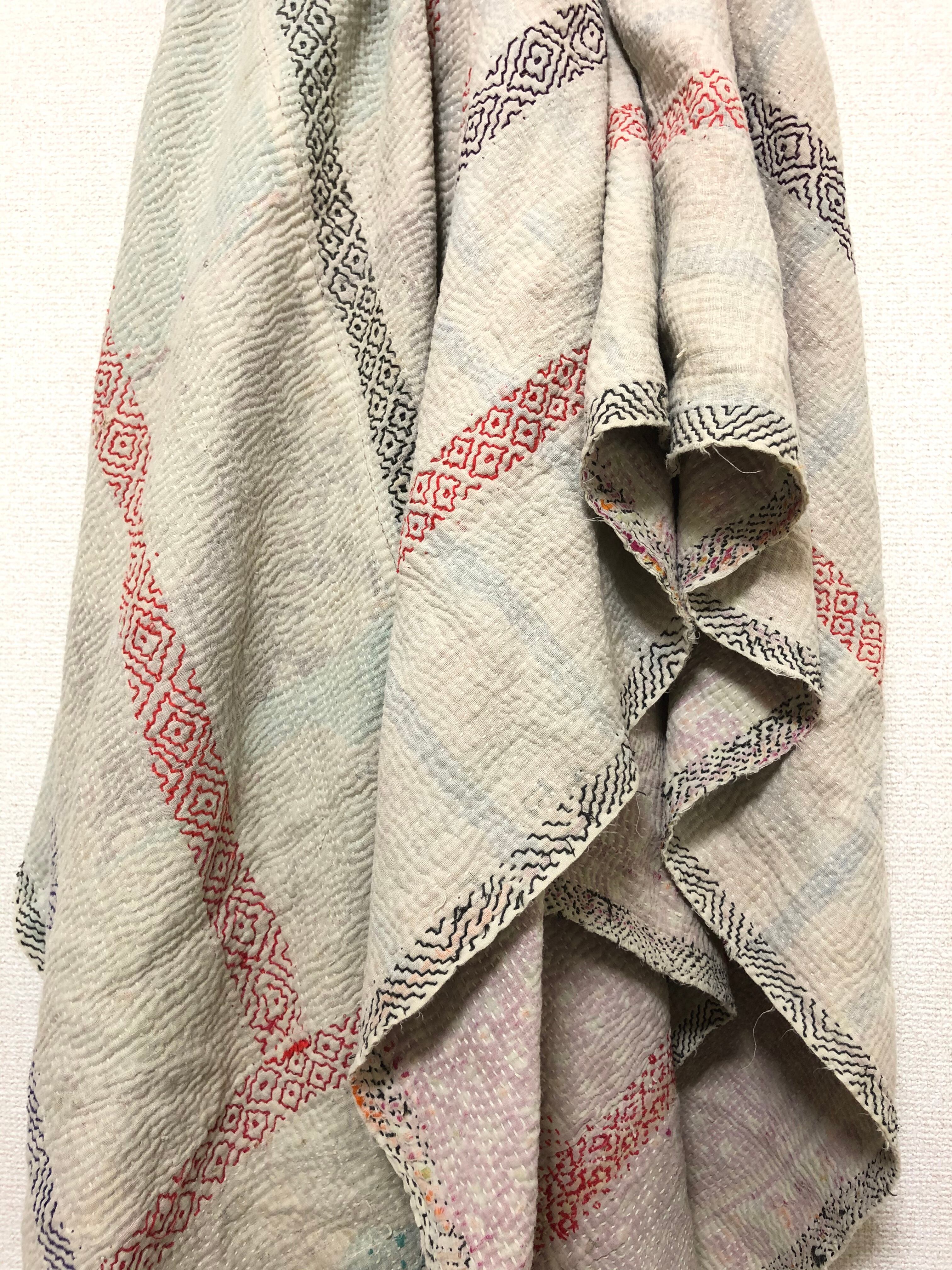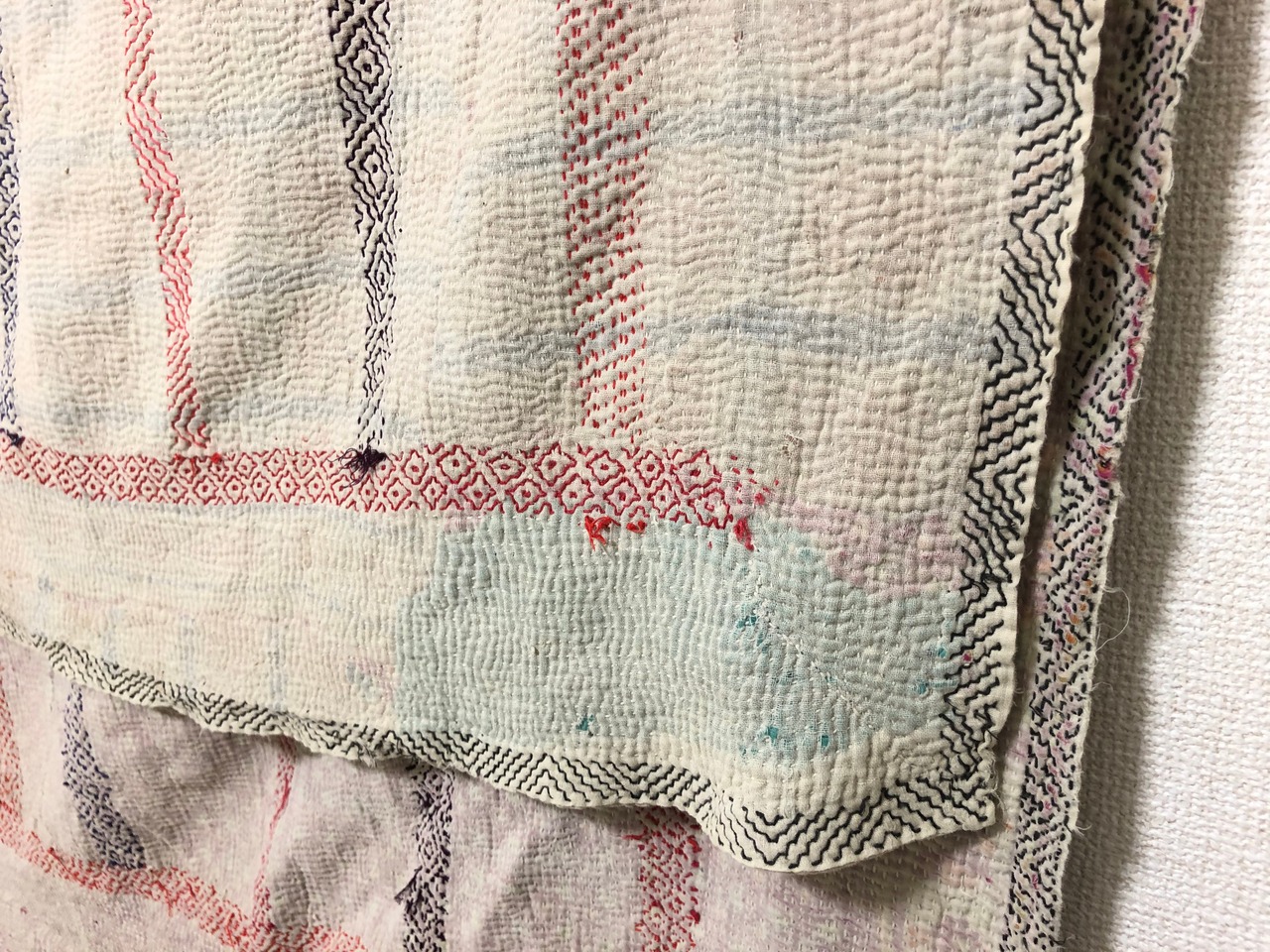 生成りでクタクタのラリーキルト 襤褸 刺し子 刺繍 ヴィンテージ