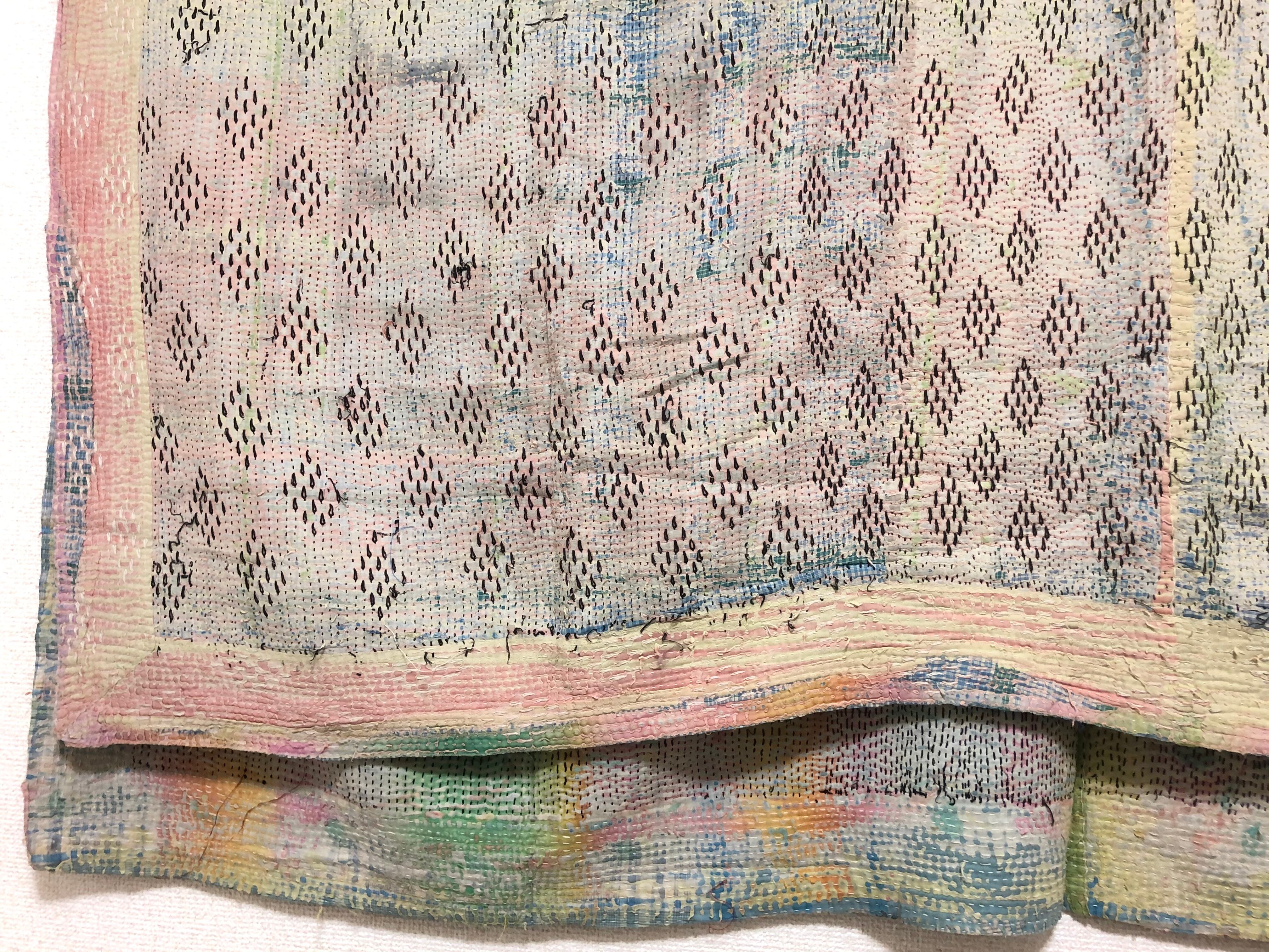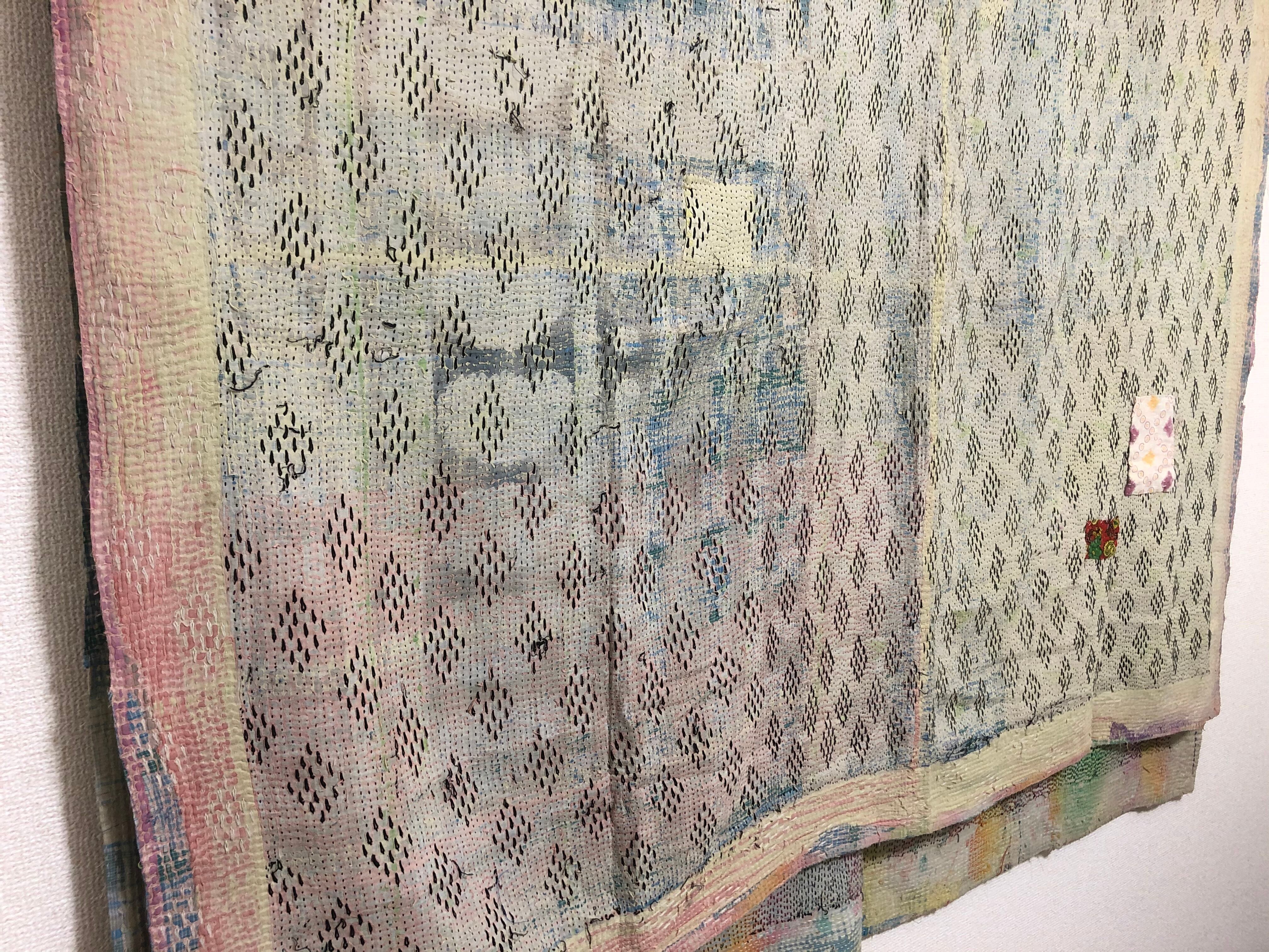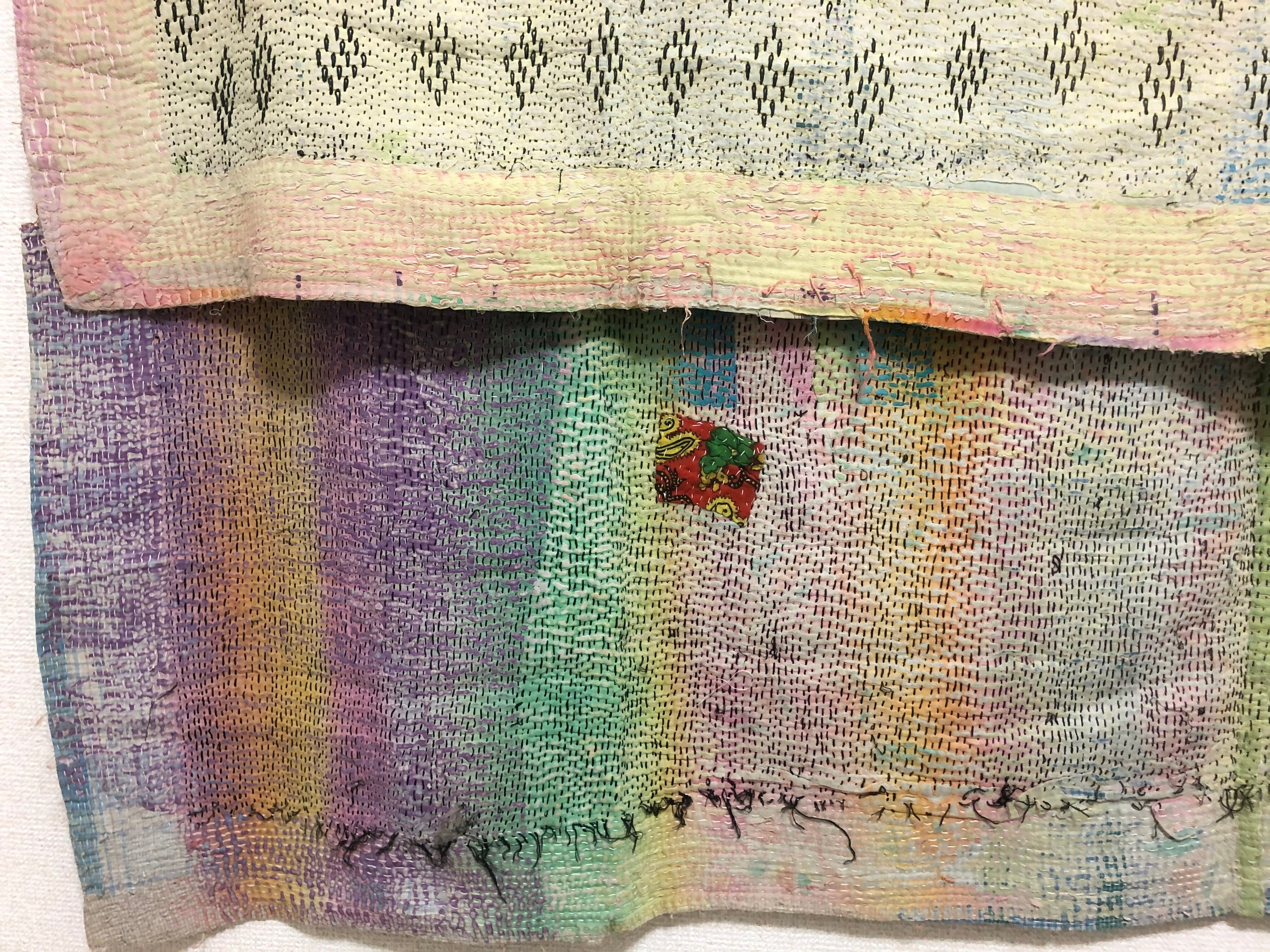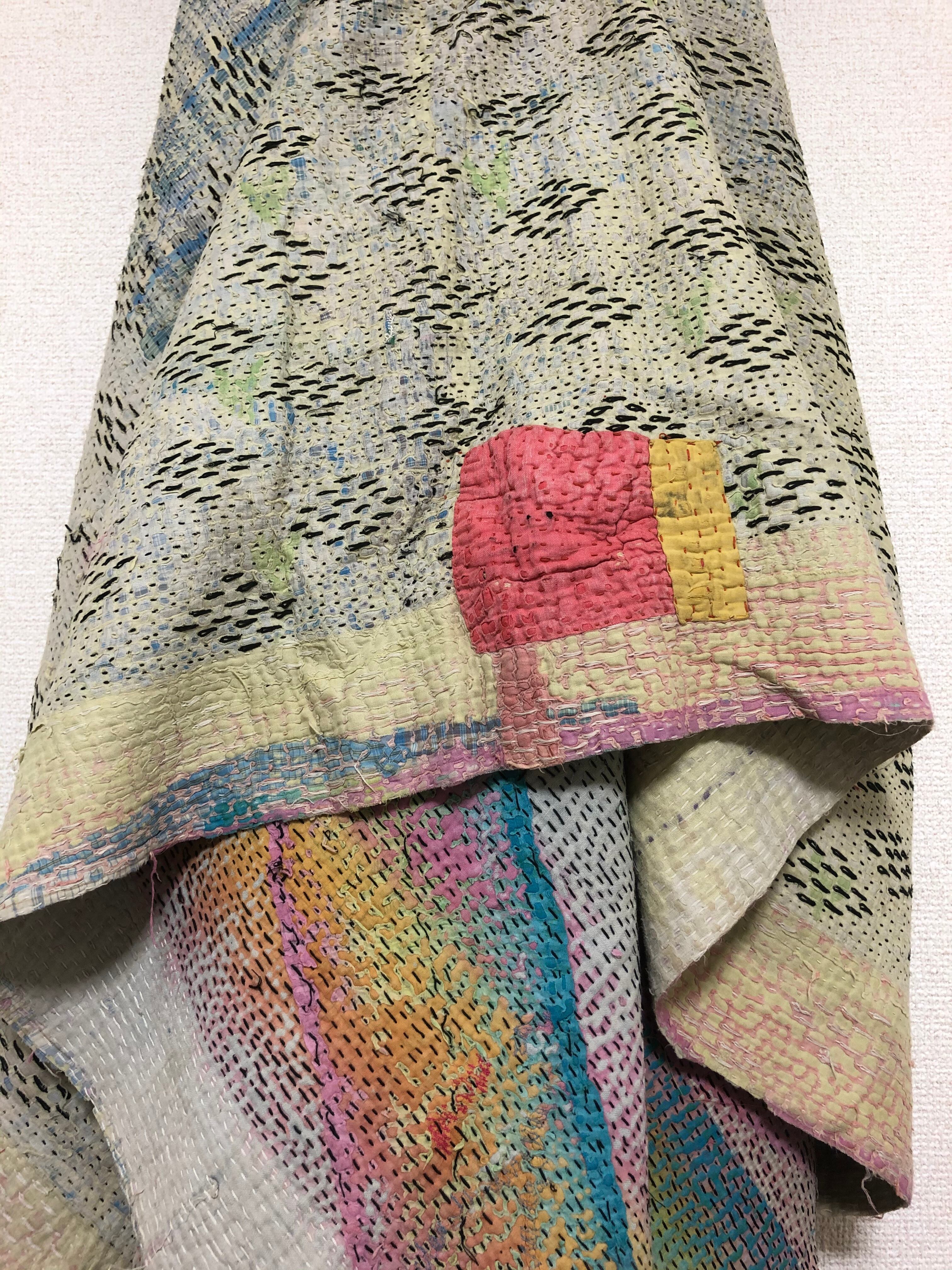 ぼっろぼろの虹色ラリーキルト 襤褸 エスニック 刺繍 刺し子 ハンドメイド