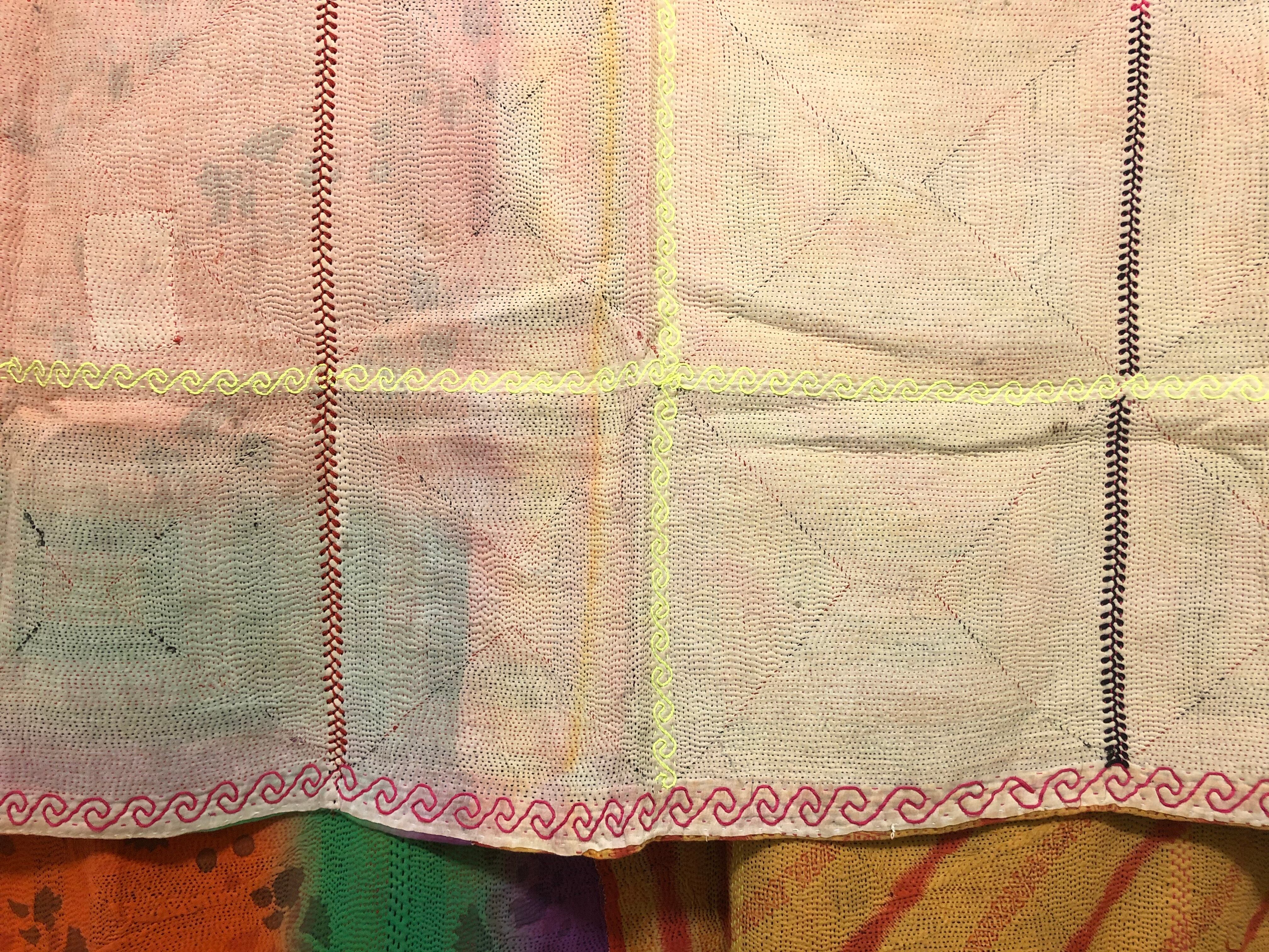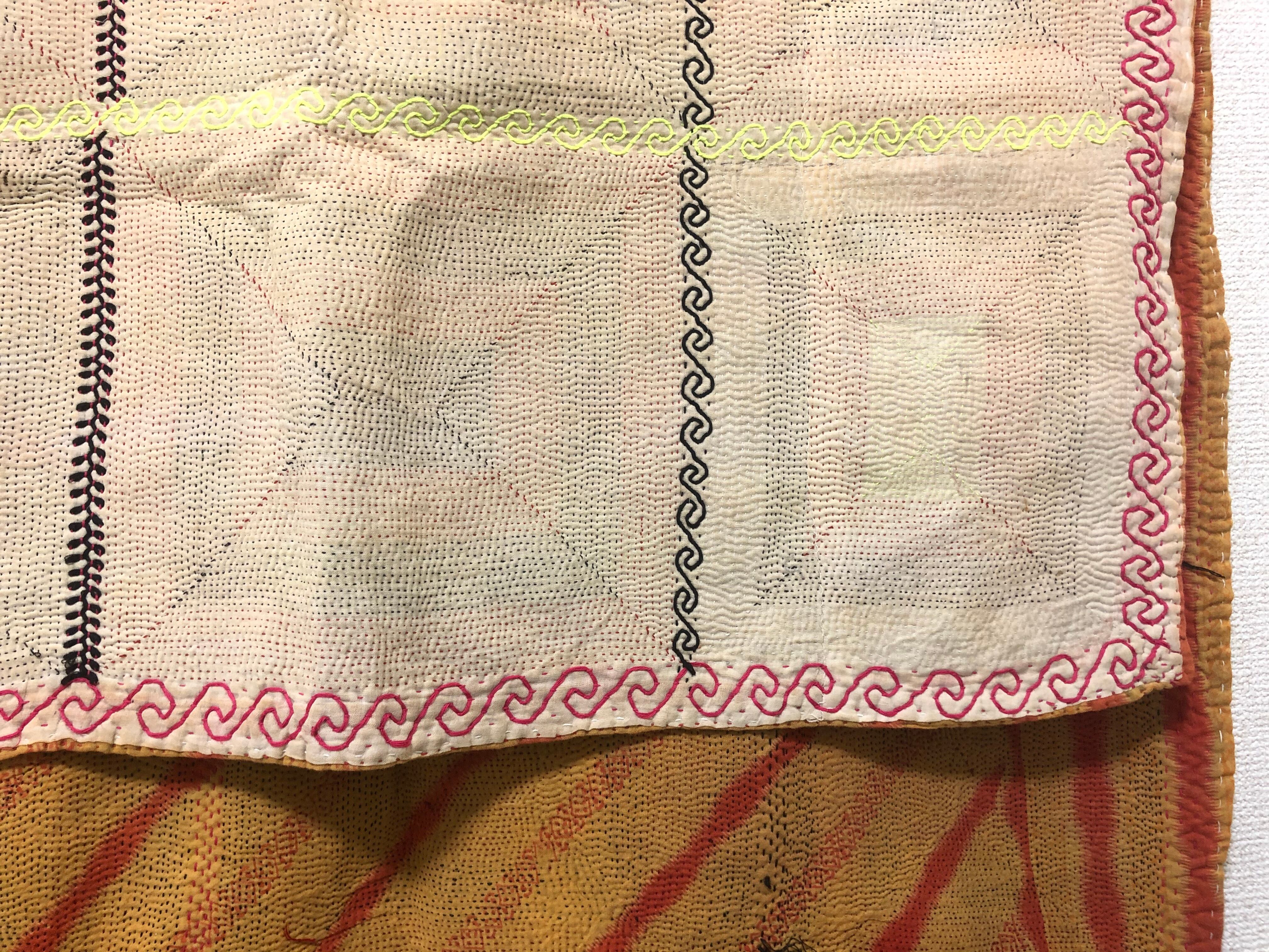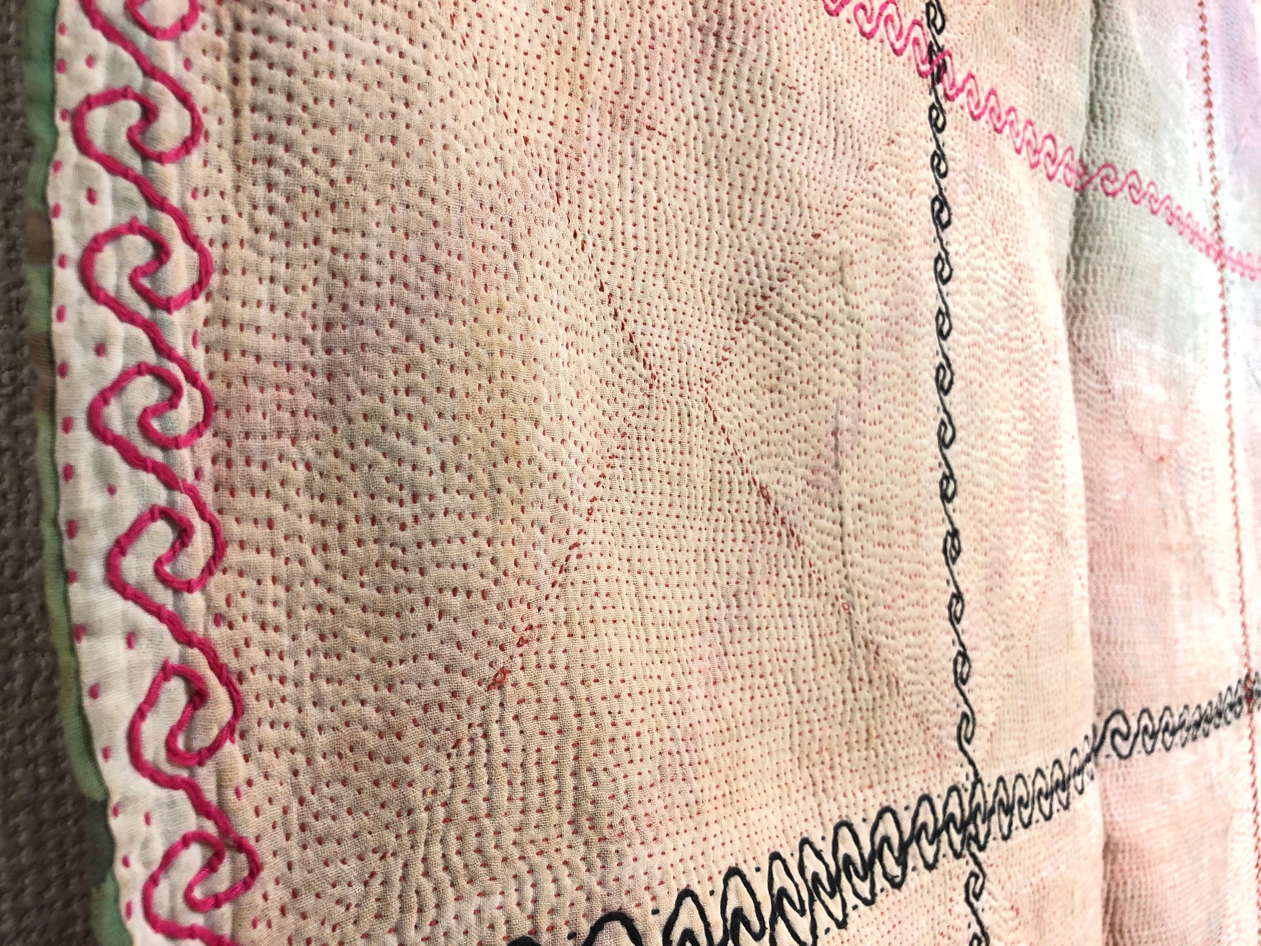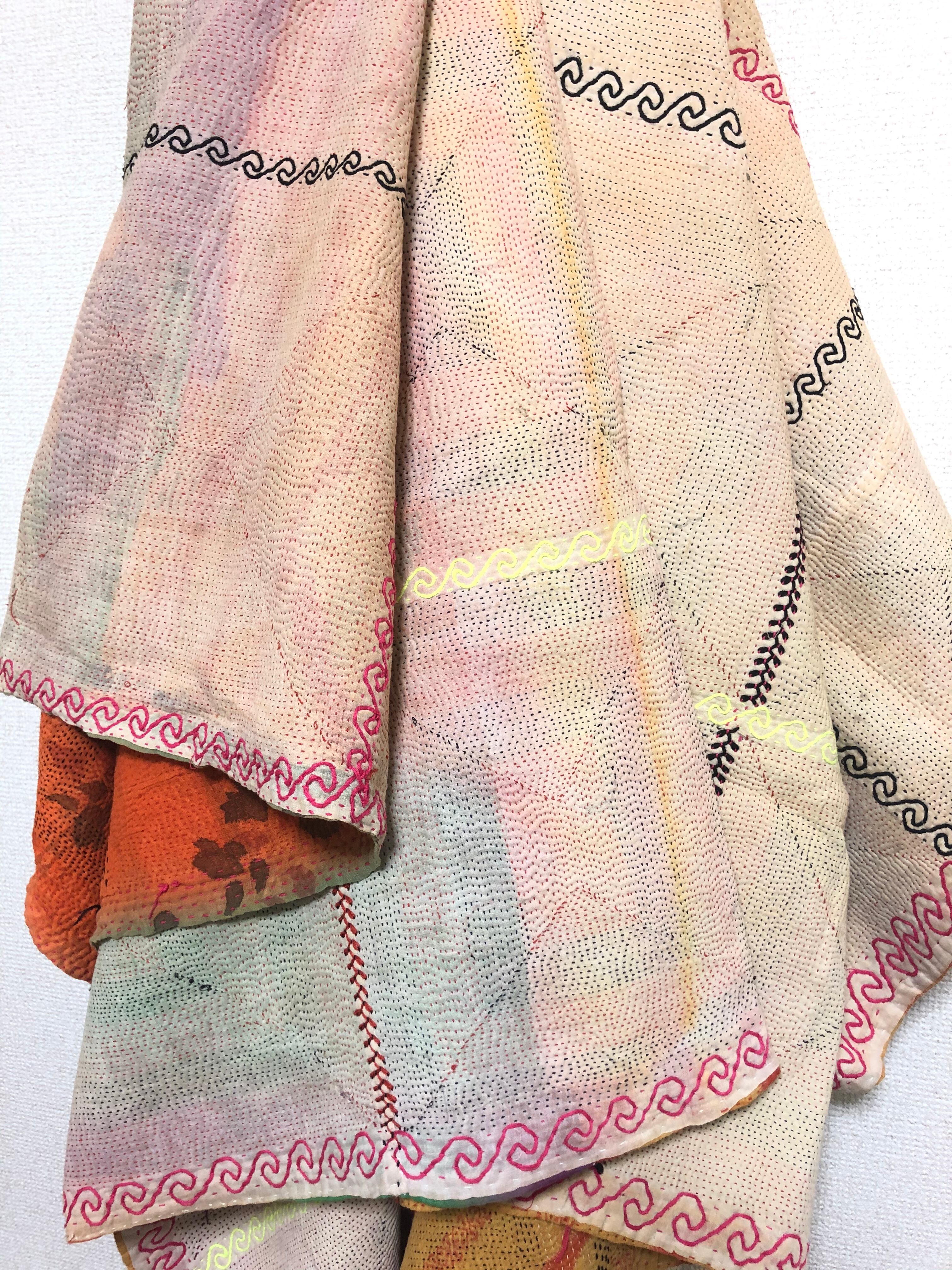生成りに細かいスティッチのラリーキルト 刺繍 刺し子 エスニック ハンドメイド
