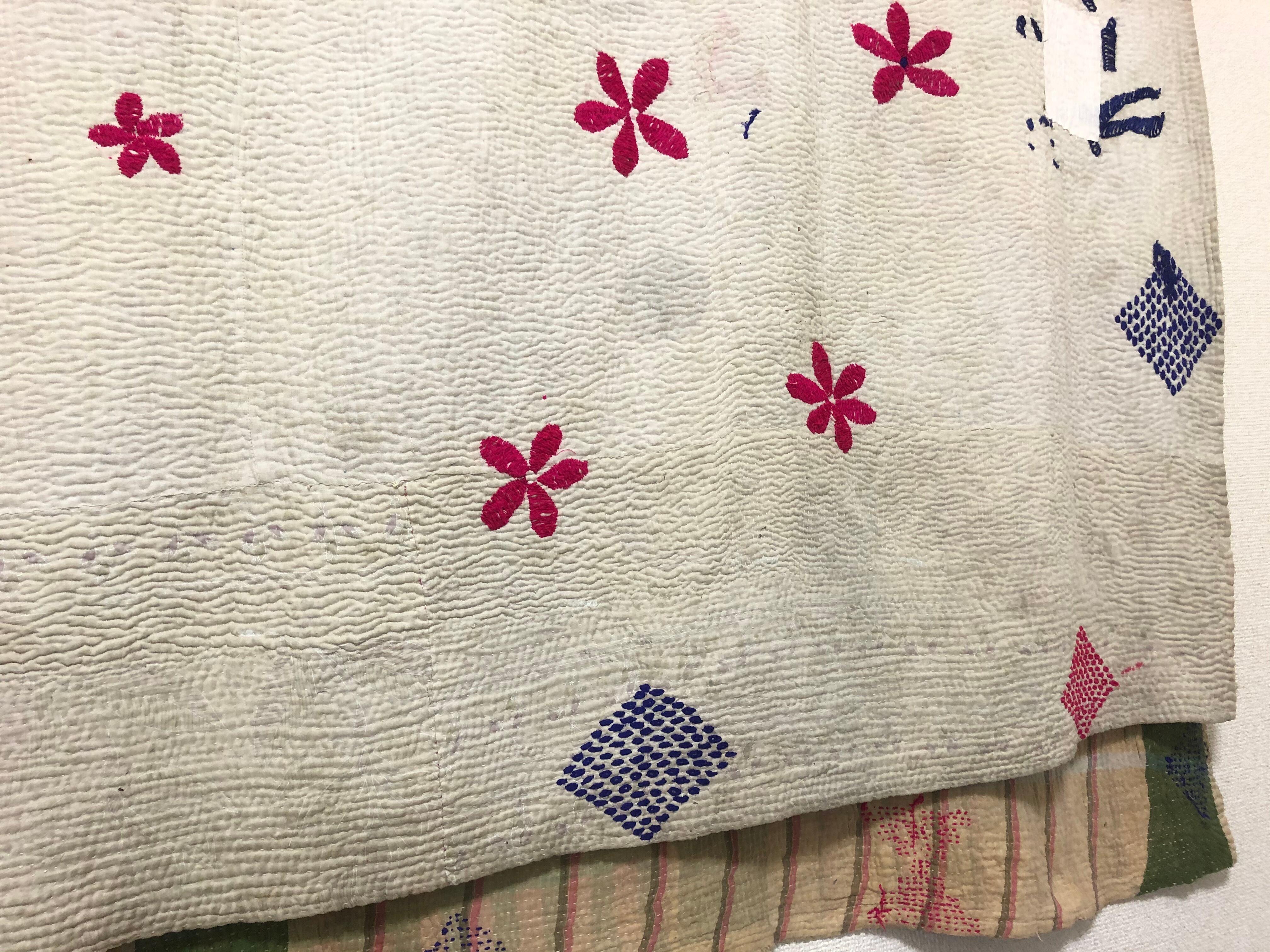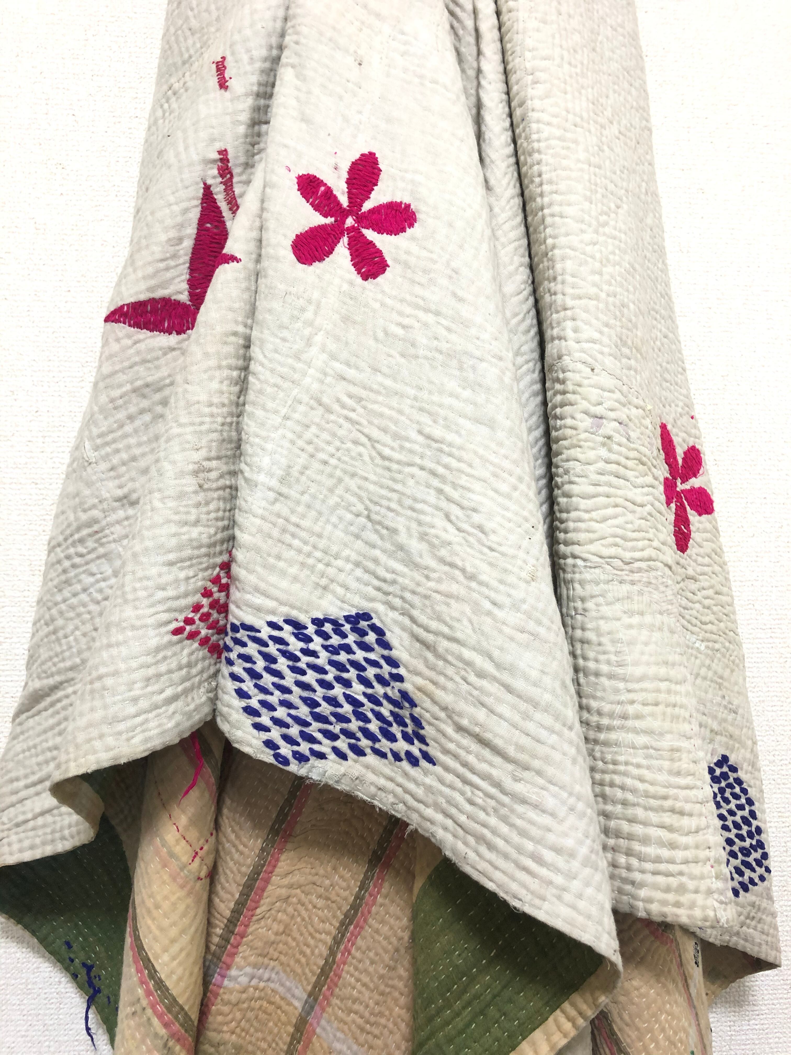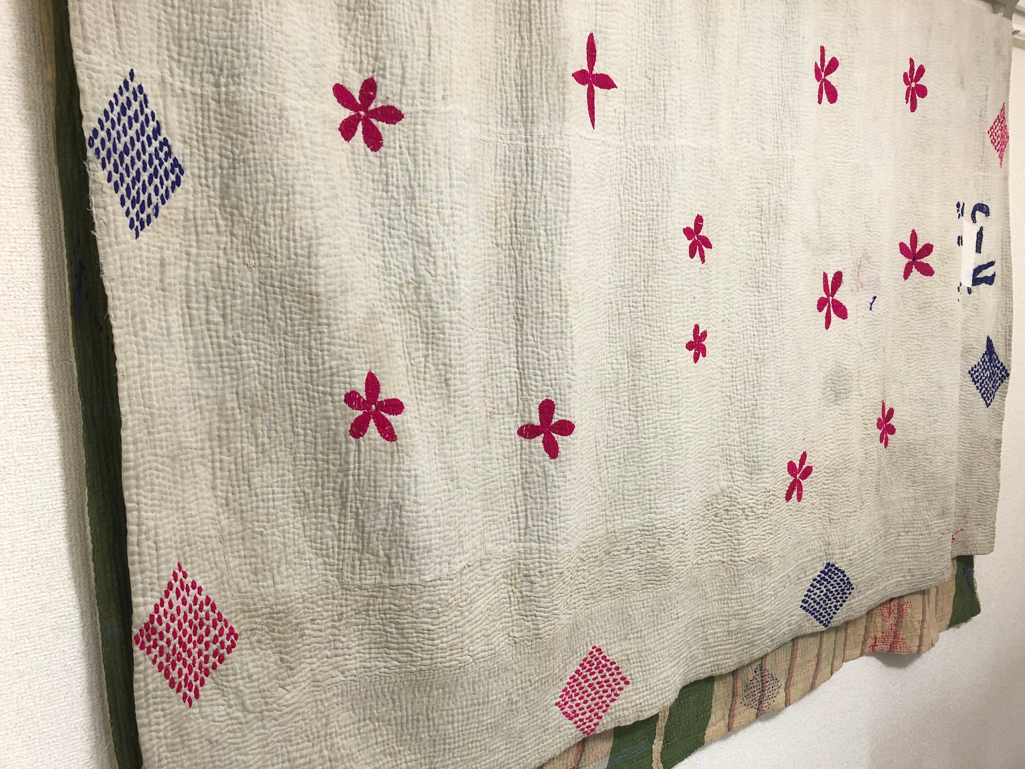 襤褸の白いラリーキルト 刺繍 刺し子 エスニック ハンドメイド