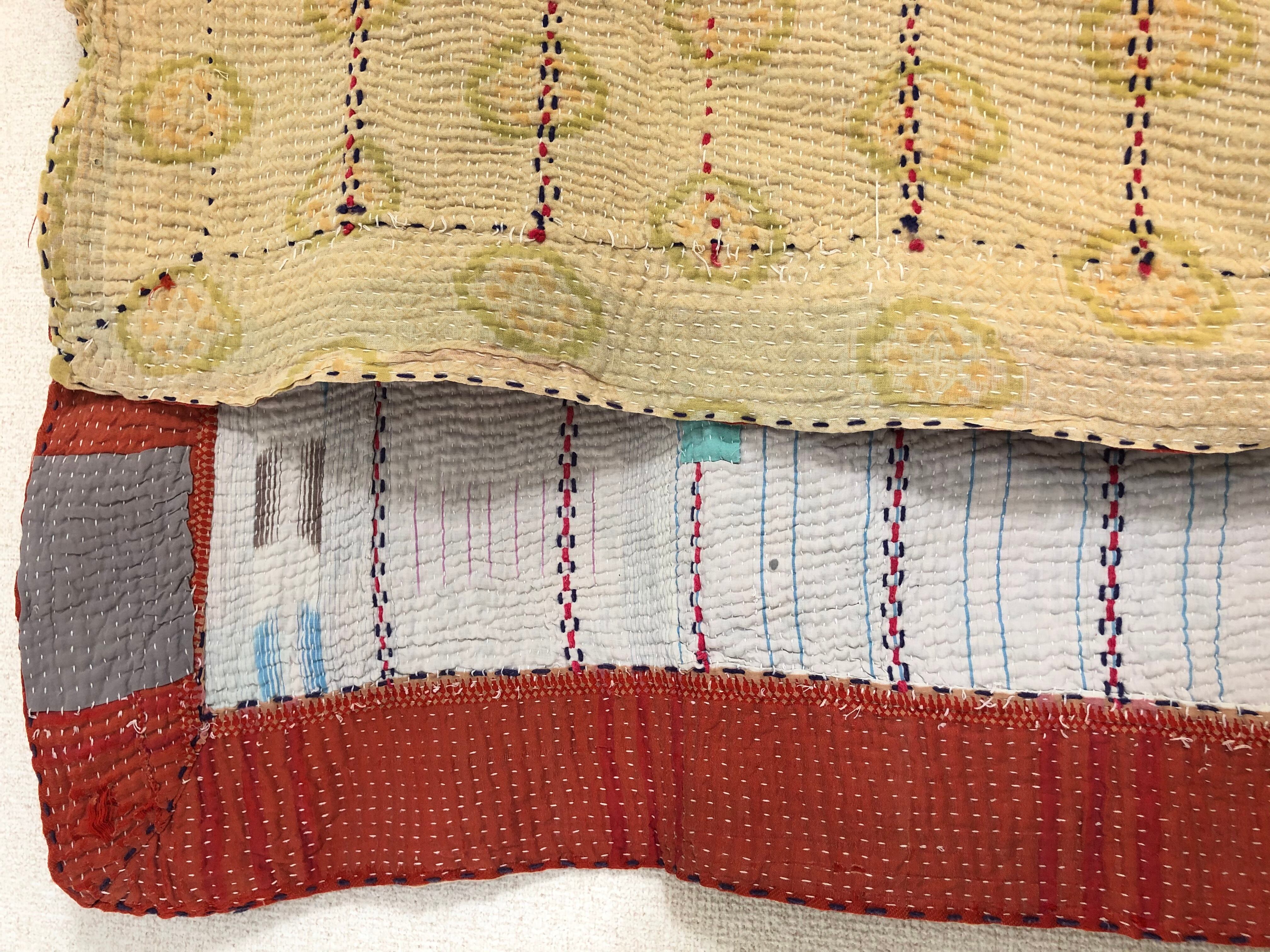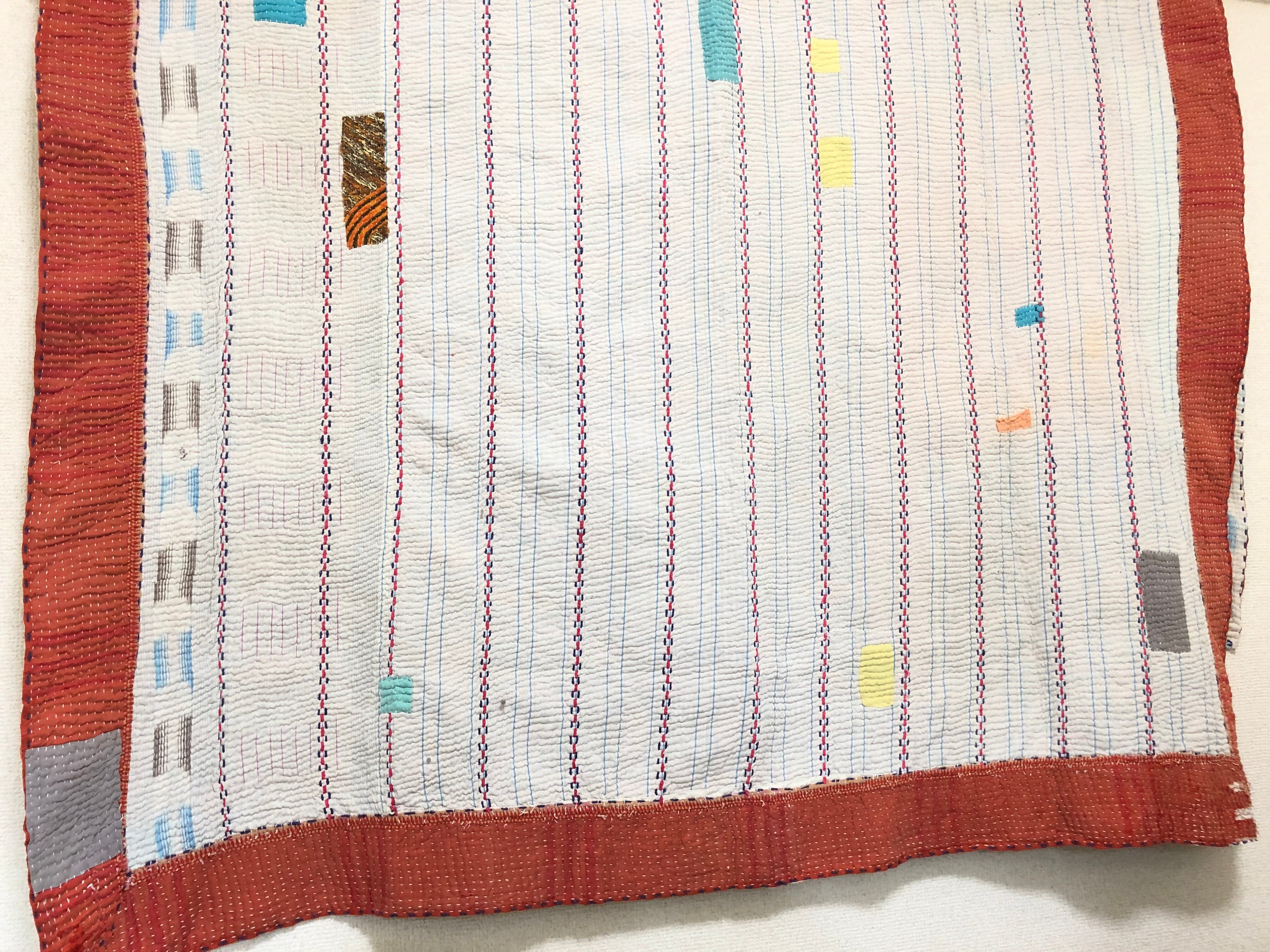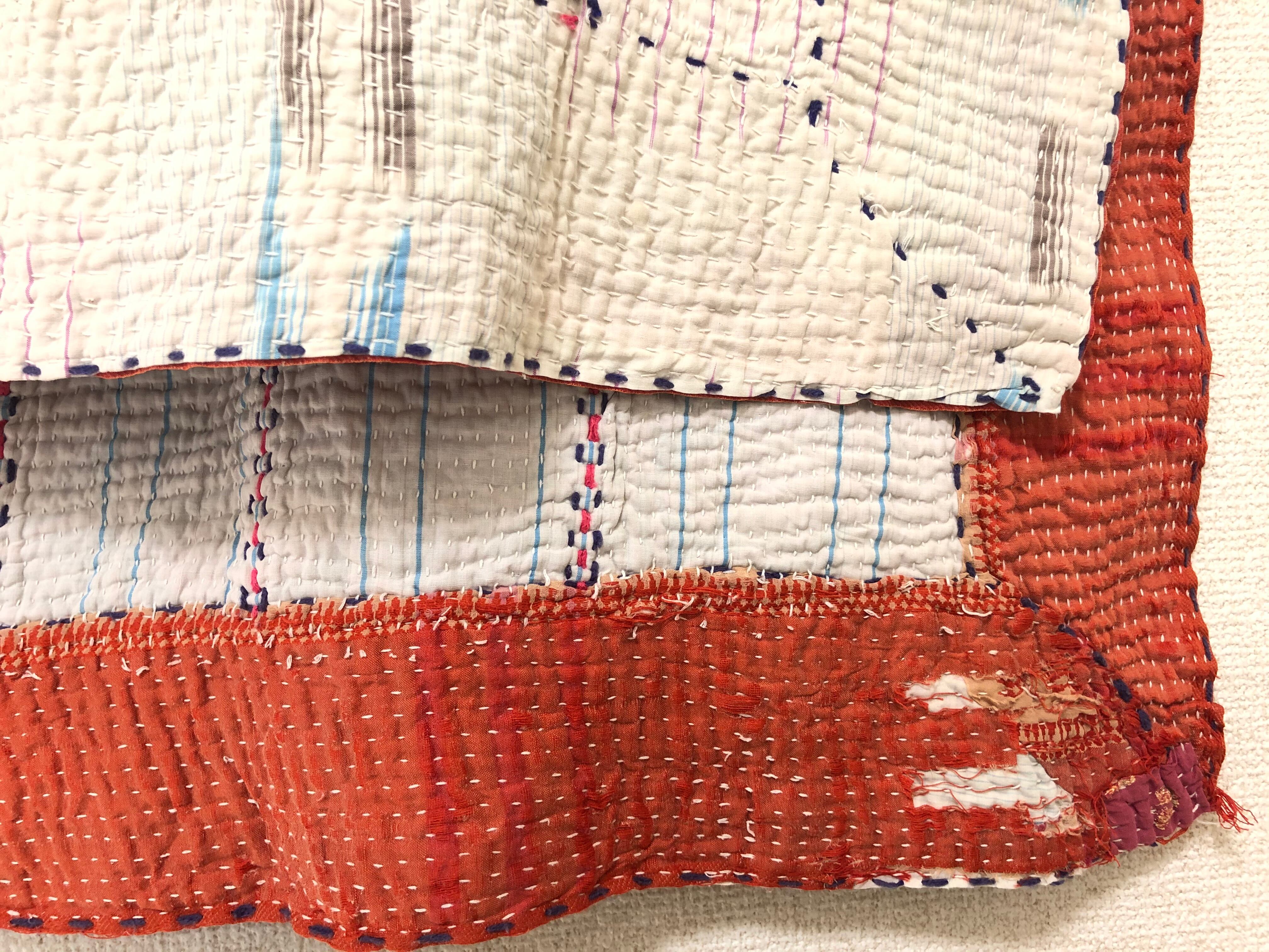 当て布が可愛いポップなラリーキルト 刺繍 刺し子 エスニック インド ラグ