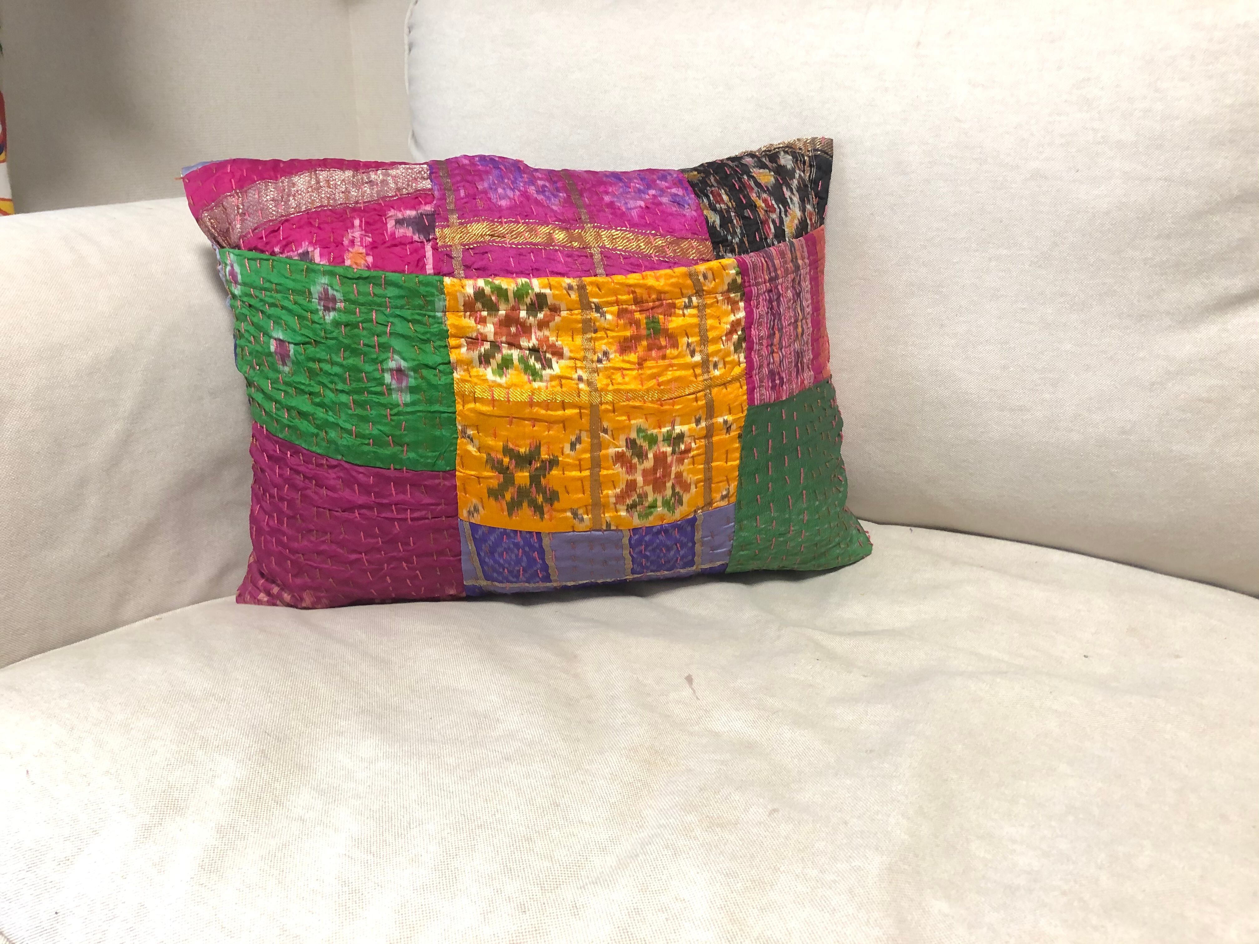 シルクラリーキルトのクッション カバー 刺し子 ハンドメイド 刺繍 エスニック
