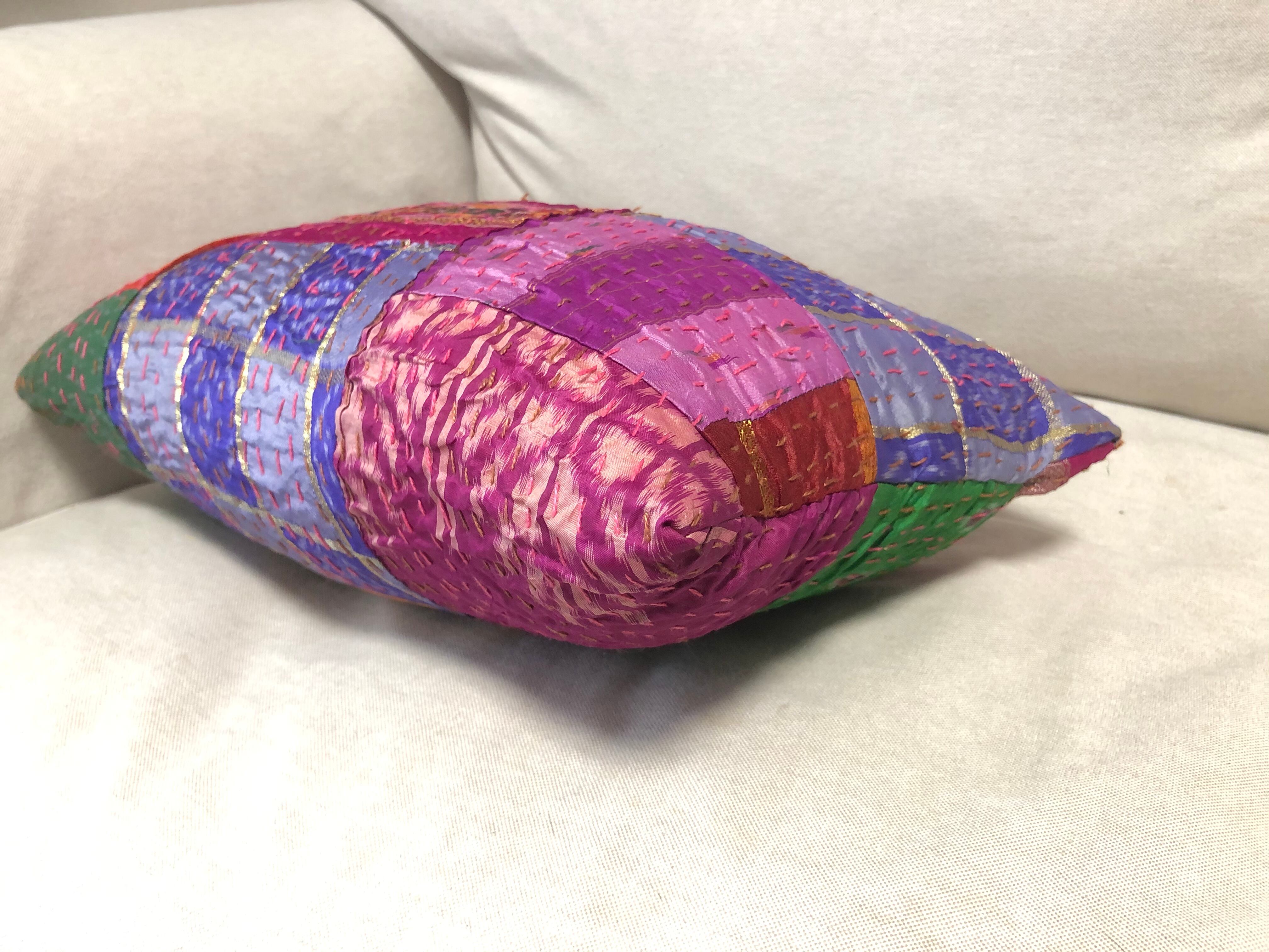 シルクのラリーキルトでできたクッションカバーです。(クッションつき)