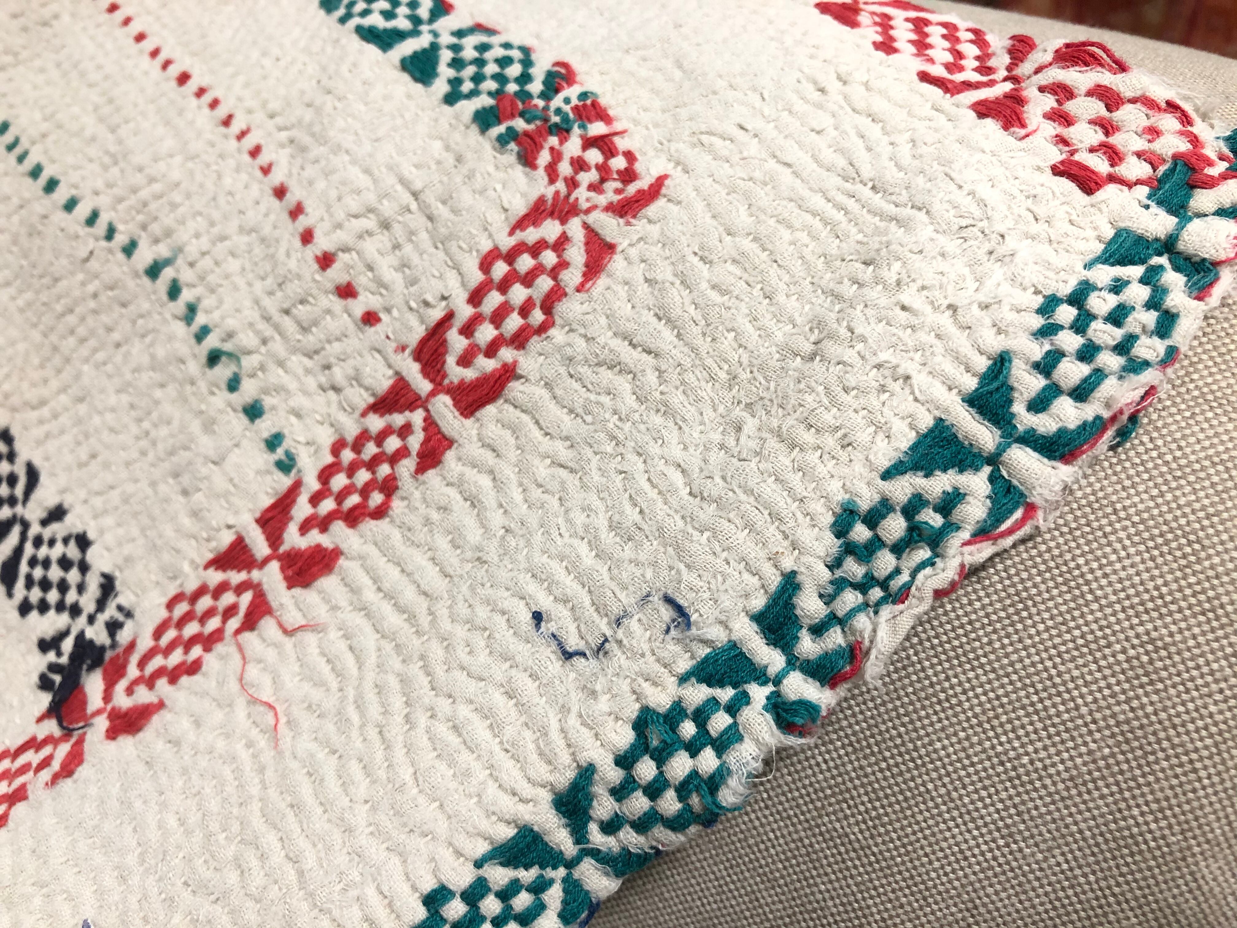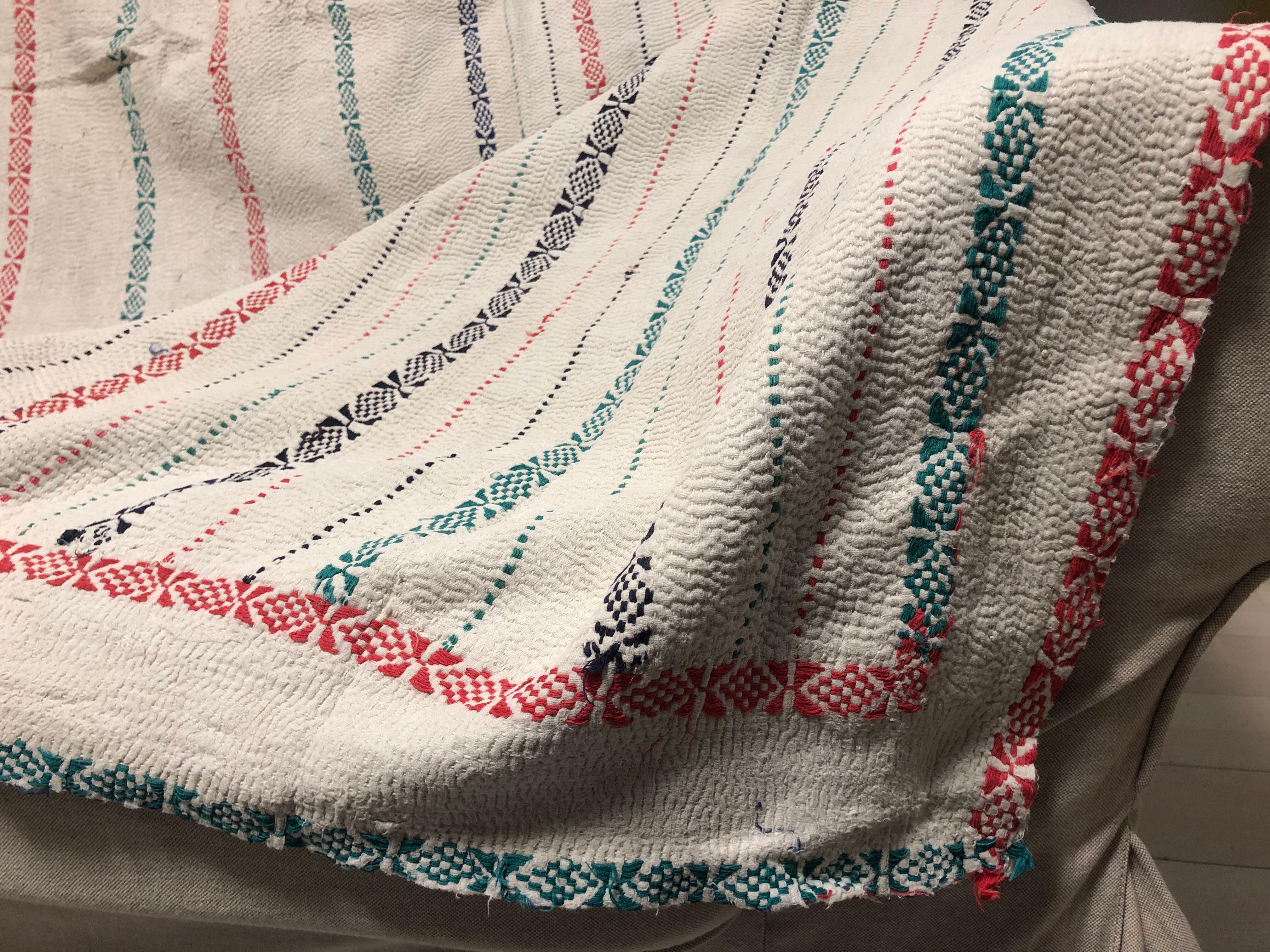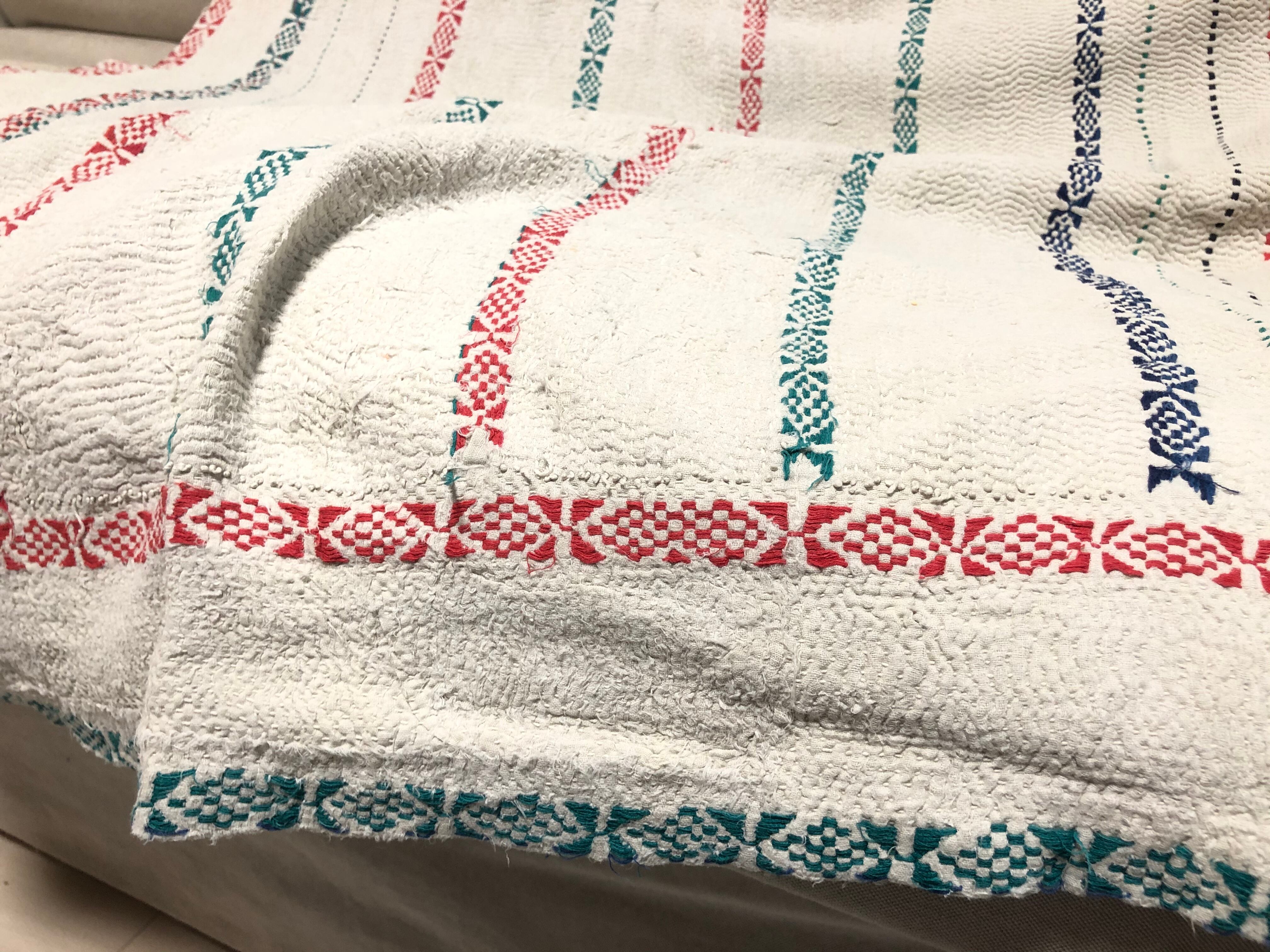 ヴィンテージの白いラリーキルト 刺繍 刺し子 ハンドメイド エスニック 古布 インド