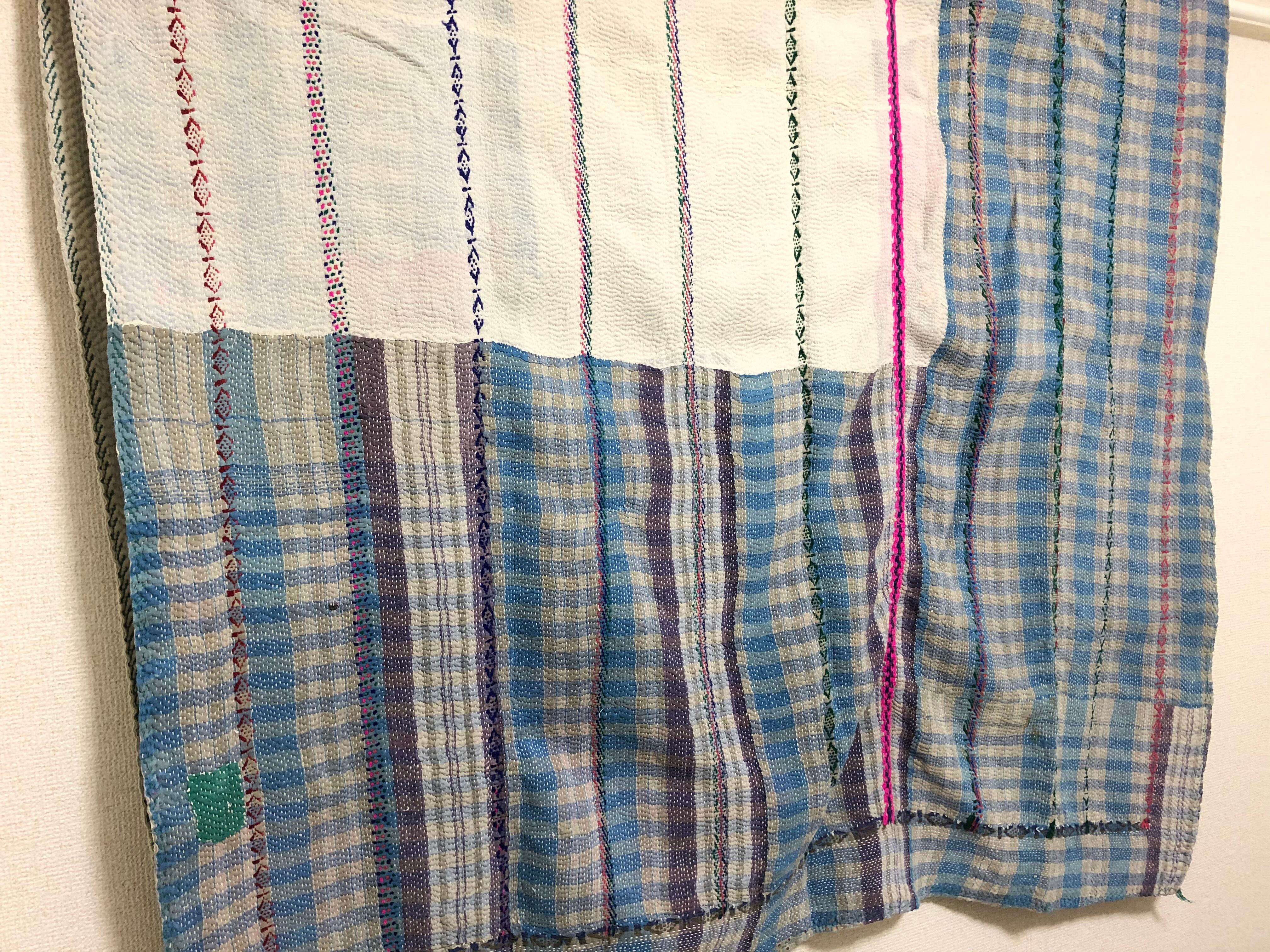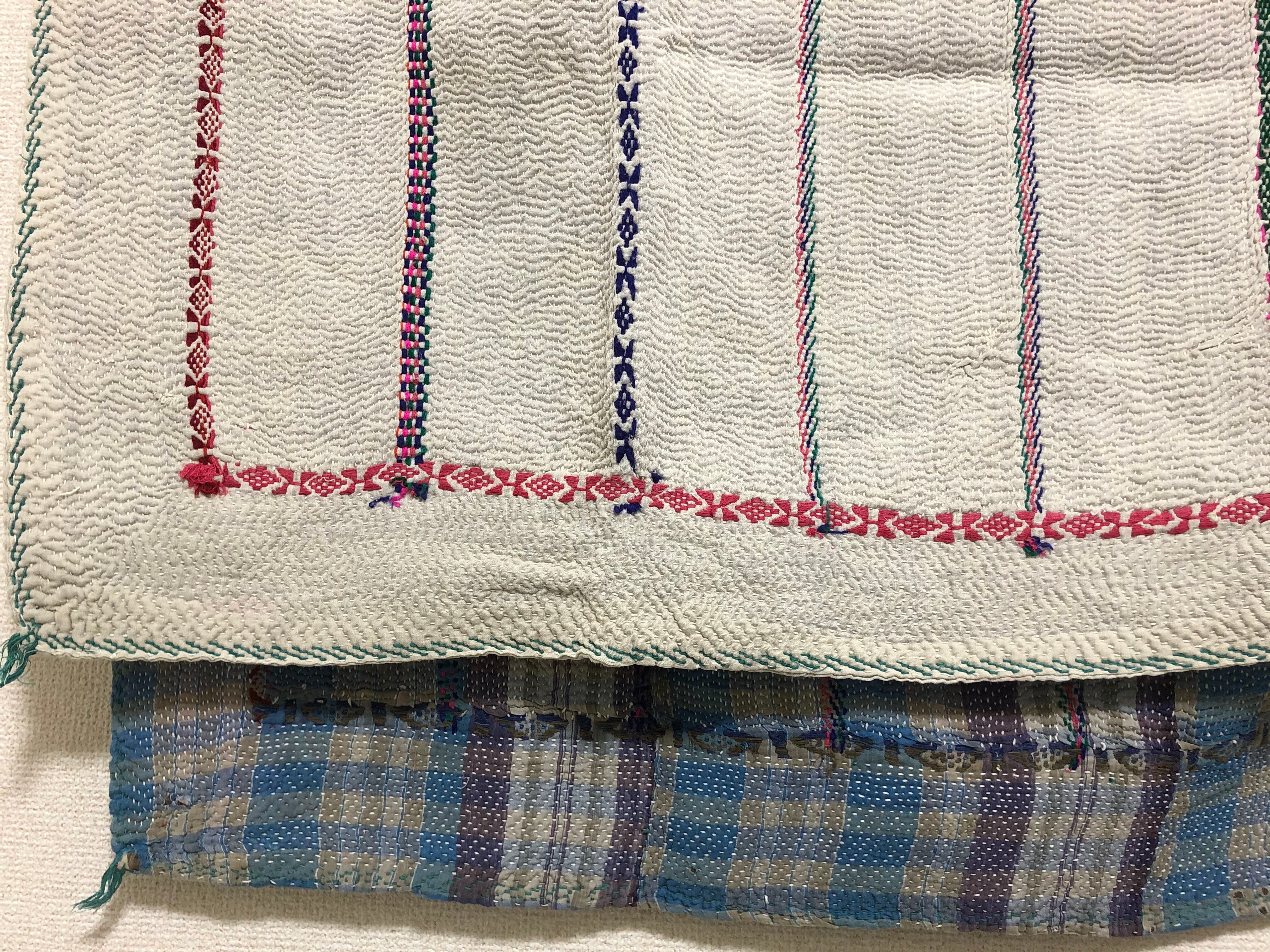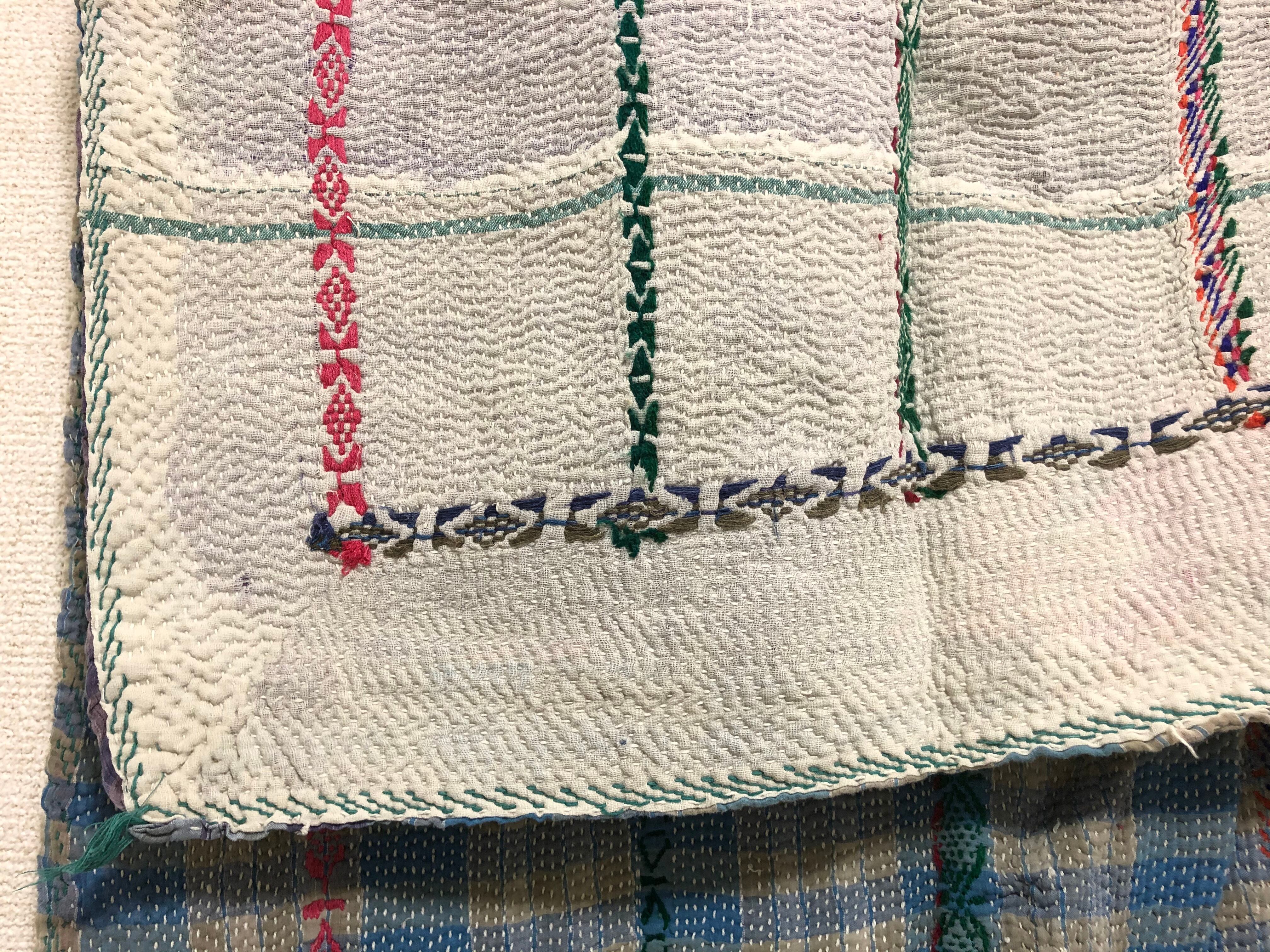 裏のチェックも可愛い生成りのラリーキルト 刺し子 刺繍 エスニック ハンドメイド