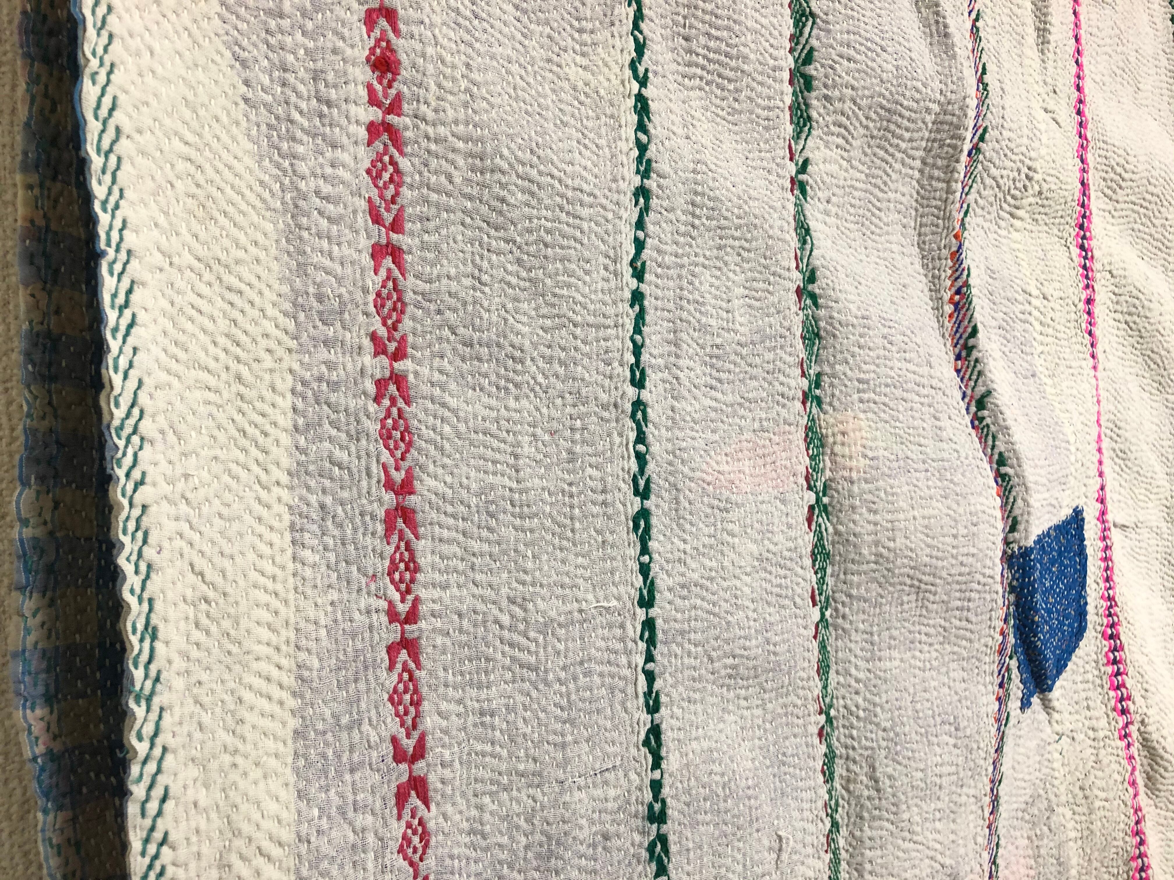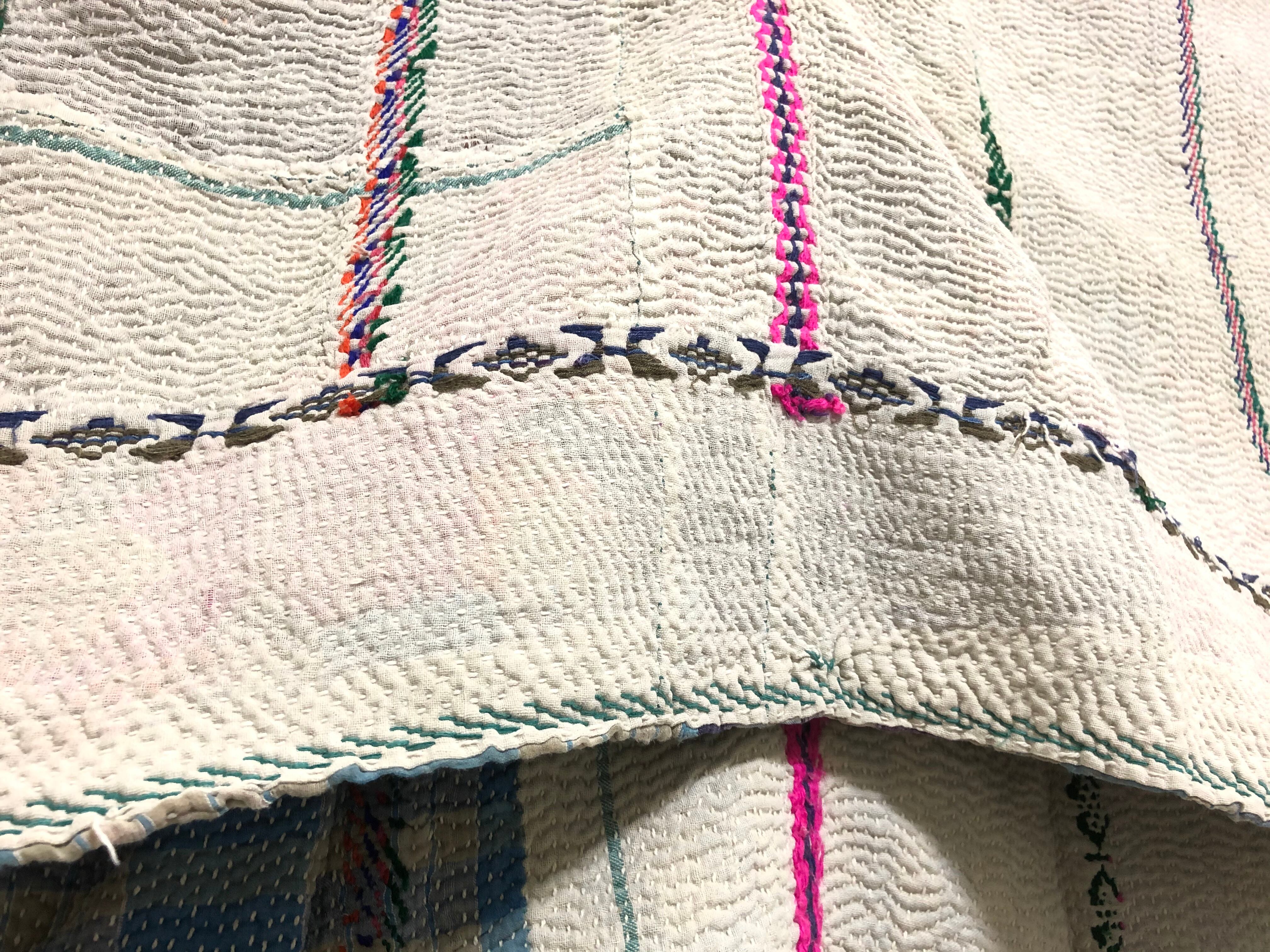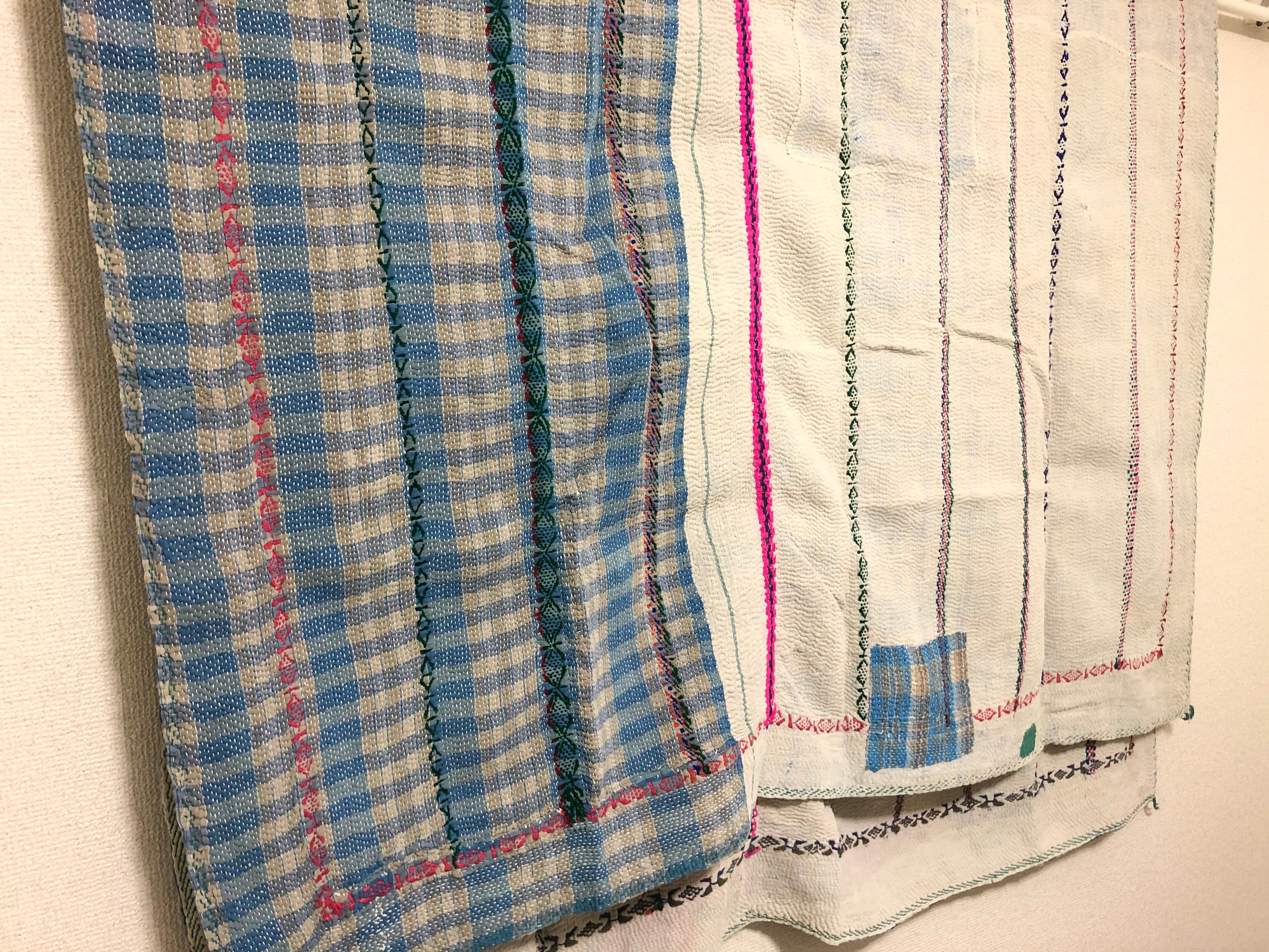 裏のチェックも可愛い生成りのラリーキルト 刺し子 刺繍 エスニック ハンドメイド