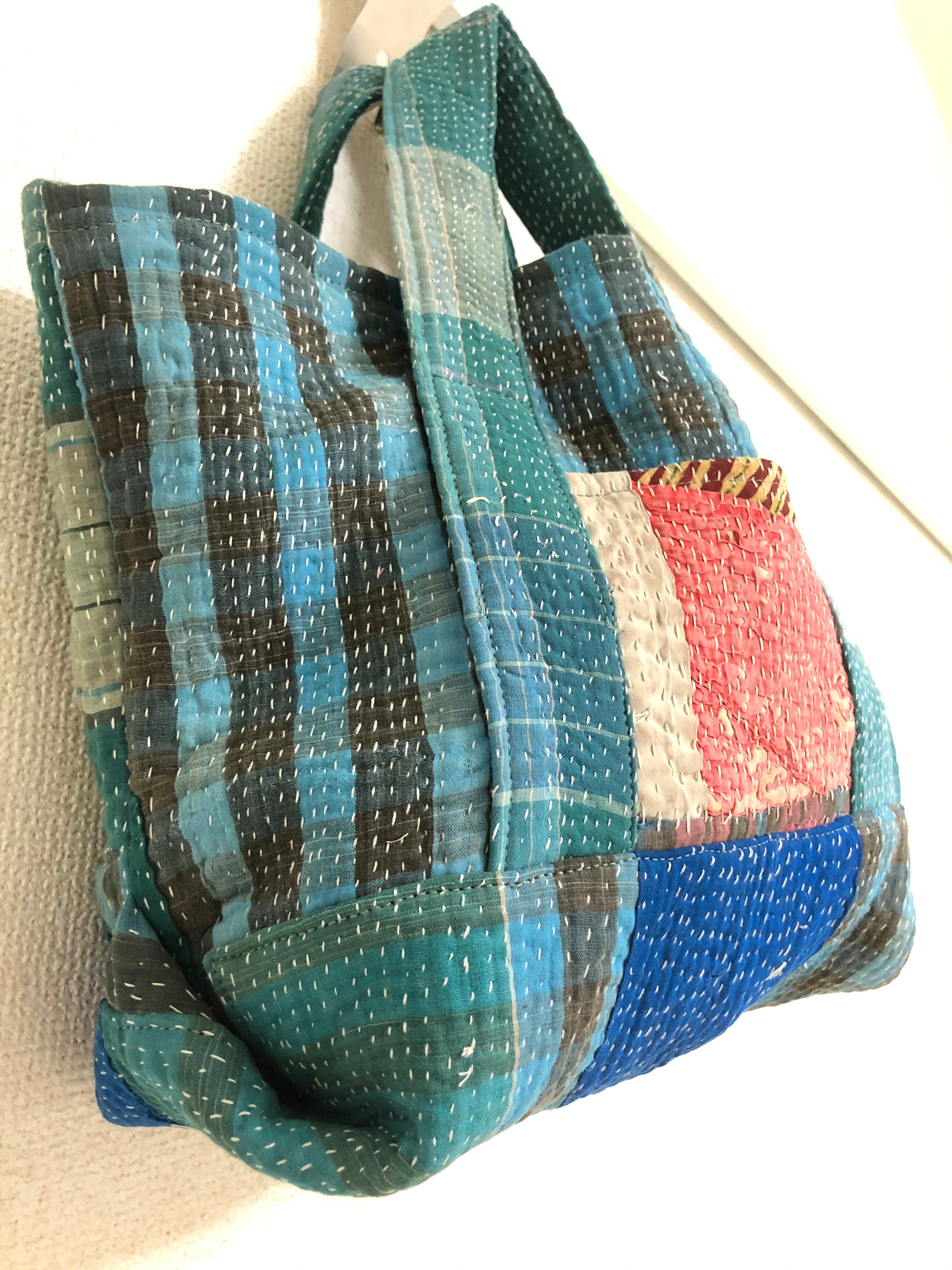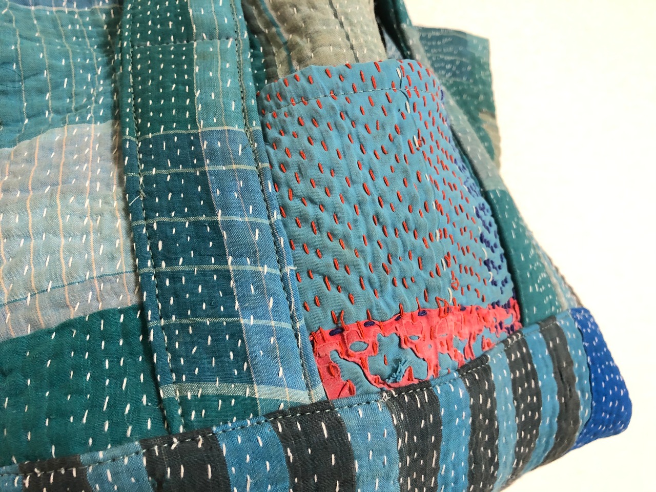 ラリーキルトのトートバッグ 刺し子 刺繍 エスニック ハンドメイド パッチワーク