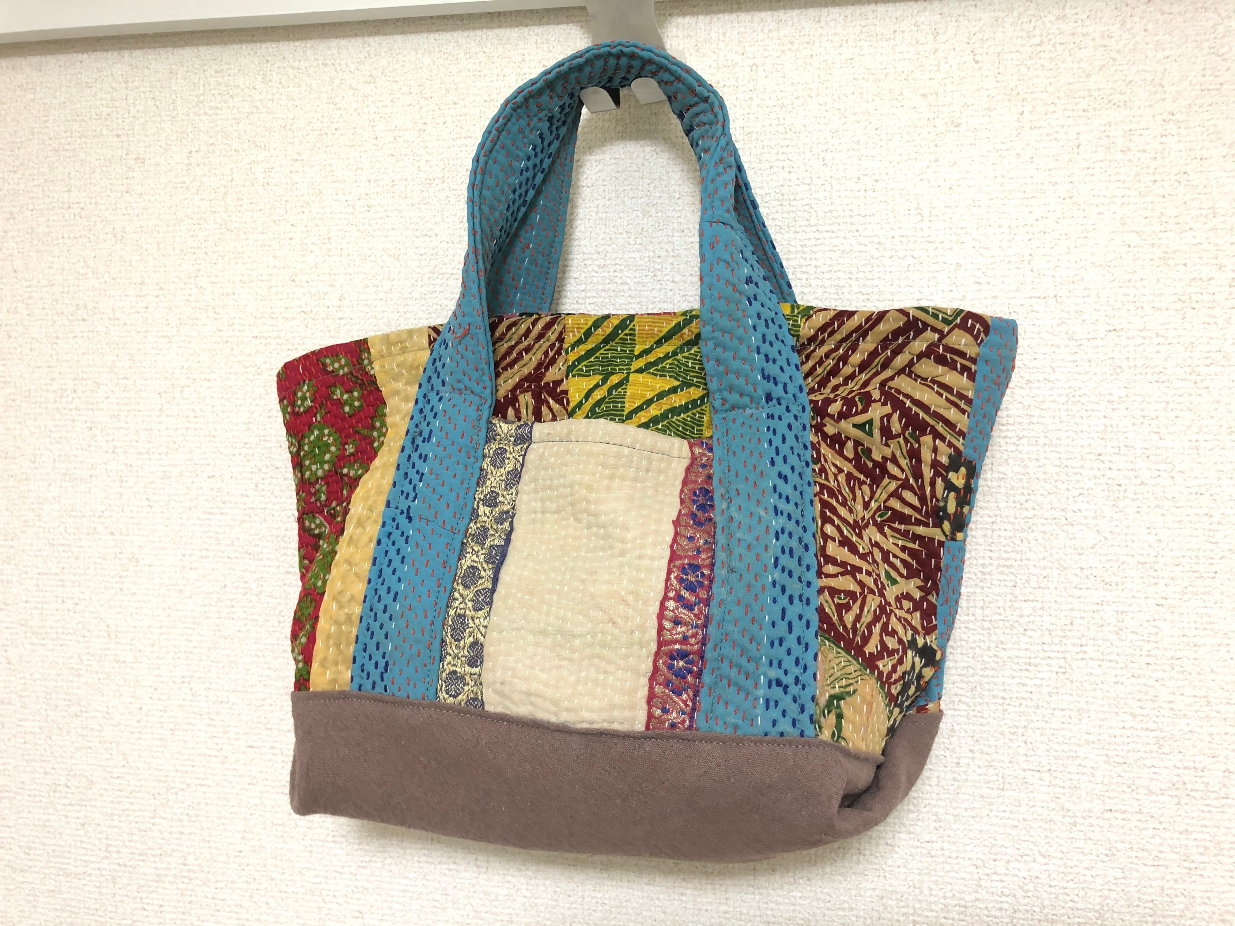 ラリーキルトのトートバッグ エスニック ハンドメイド 刺し子 刺繍 パッチワーク