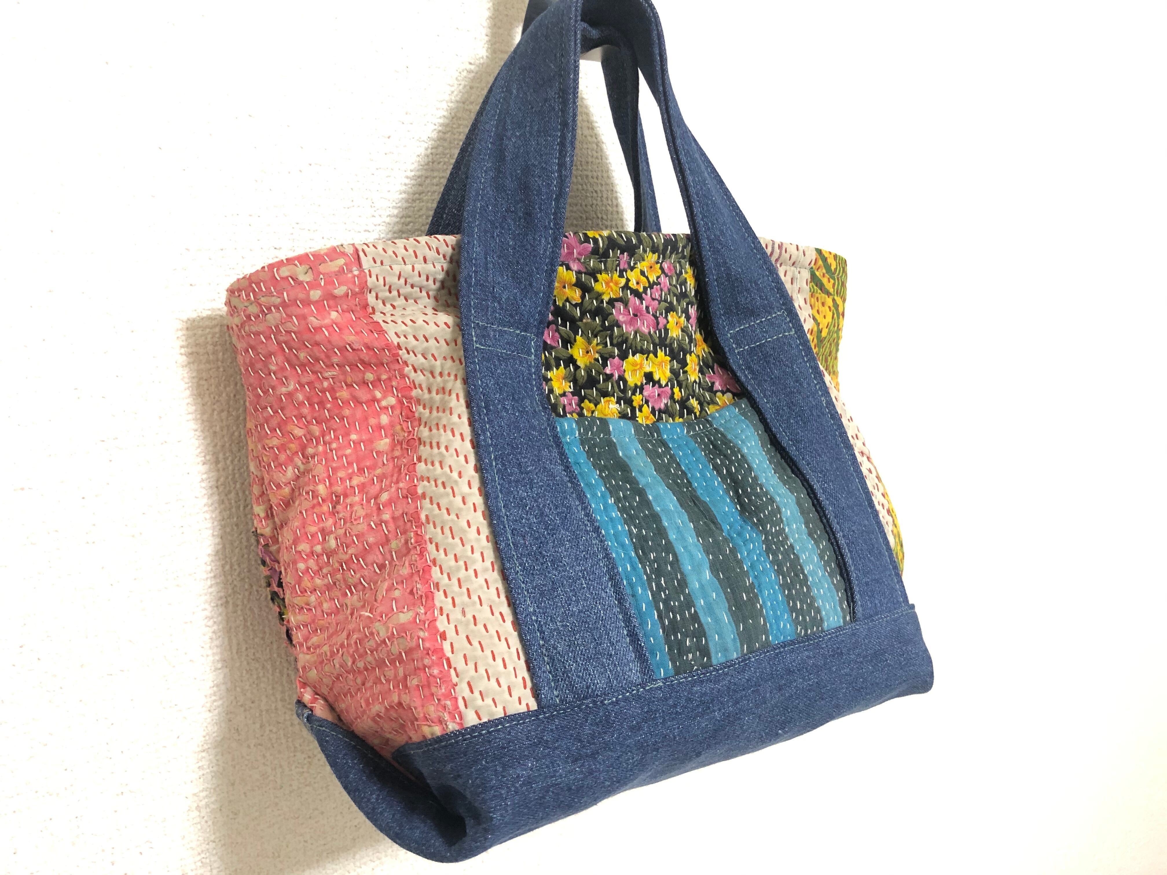 ラリーキルトのトートバッグ ハンドメイド エスニック 刺し子 刺繍 パッチワーク