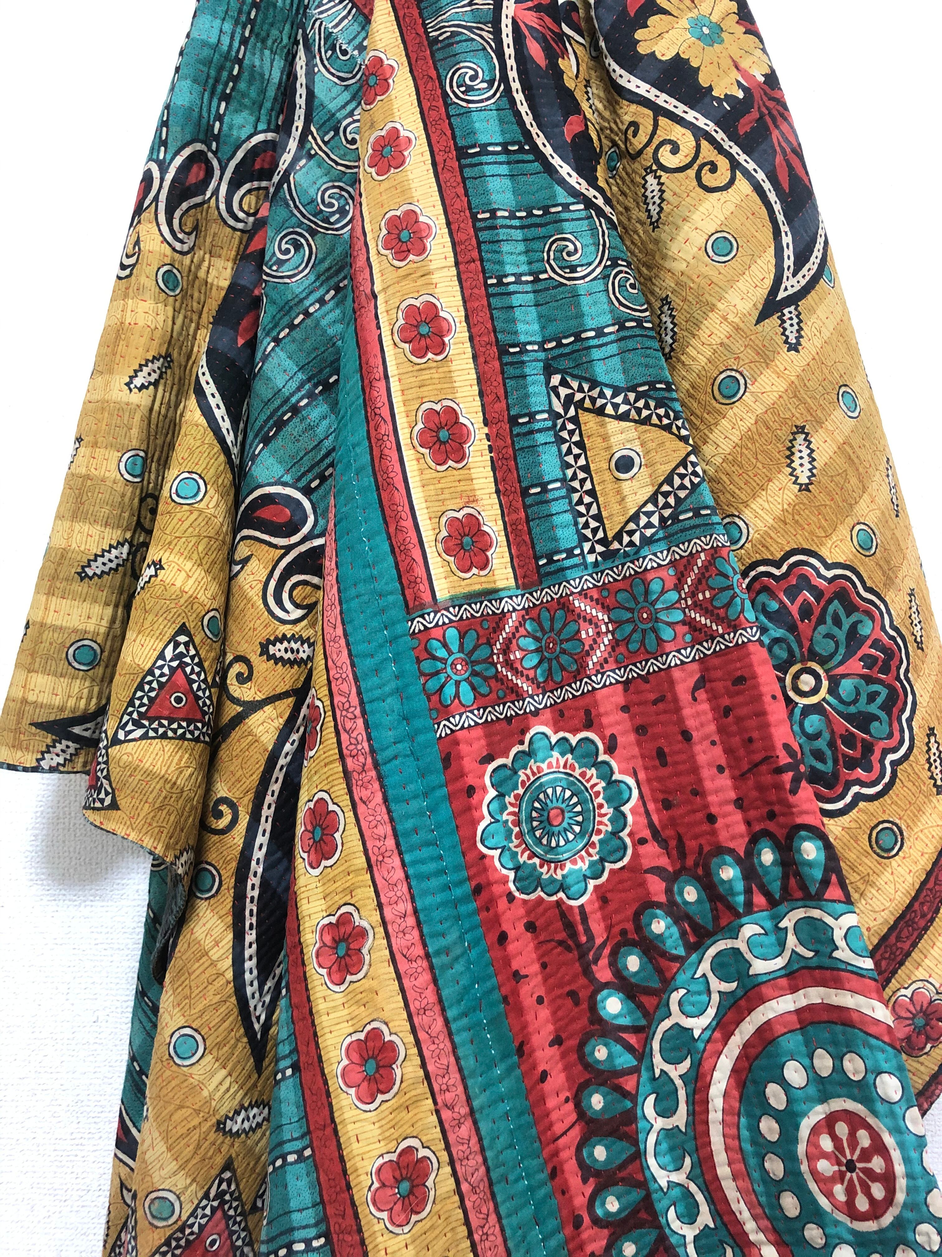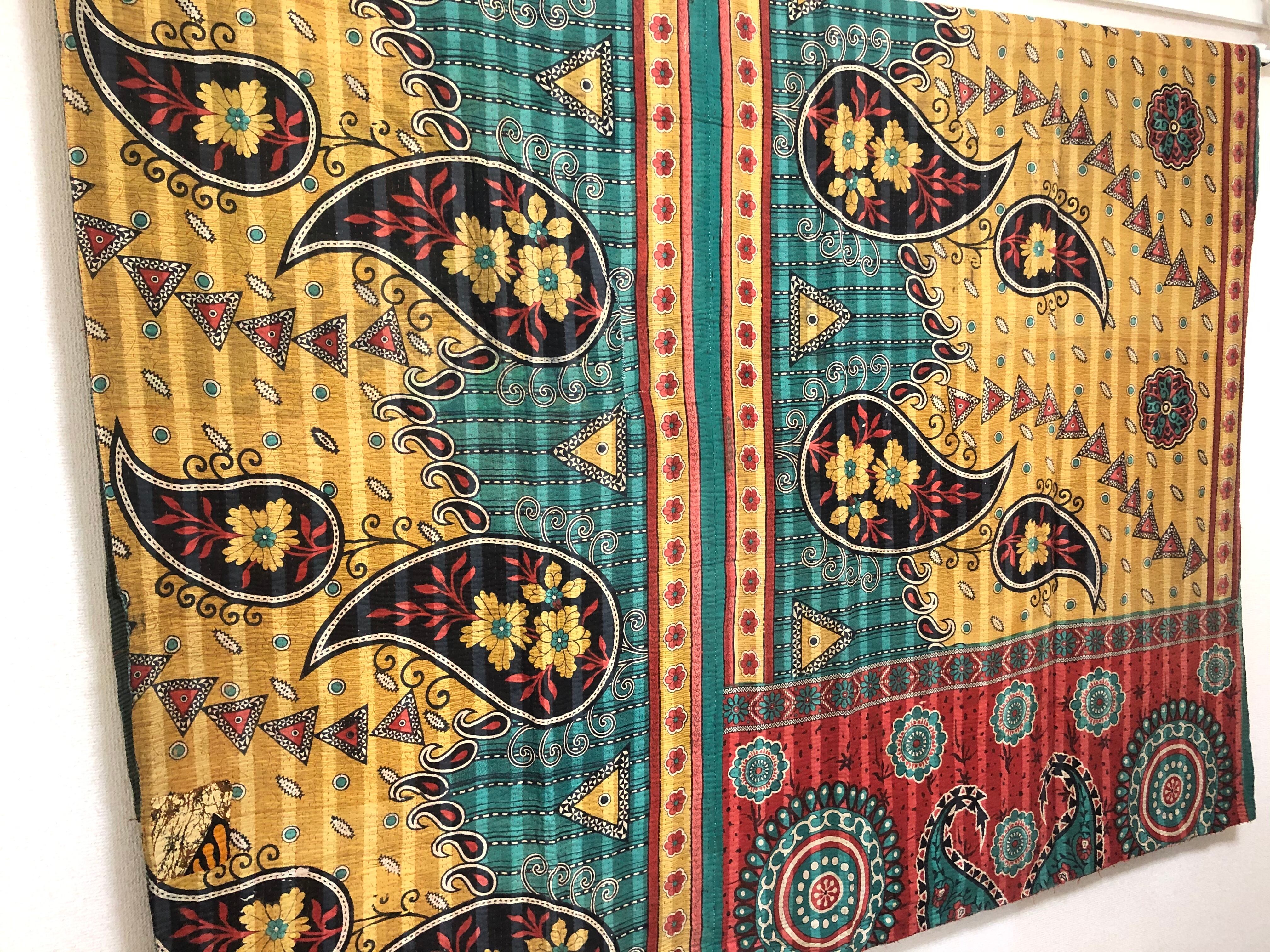 オリエンタルなペイズリー柄のラリーキルト 刺し子 刺繍 エスニック ハンドメイド パッチワーク 古布