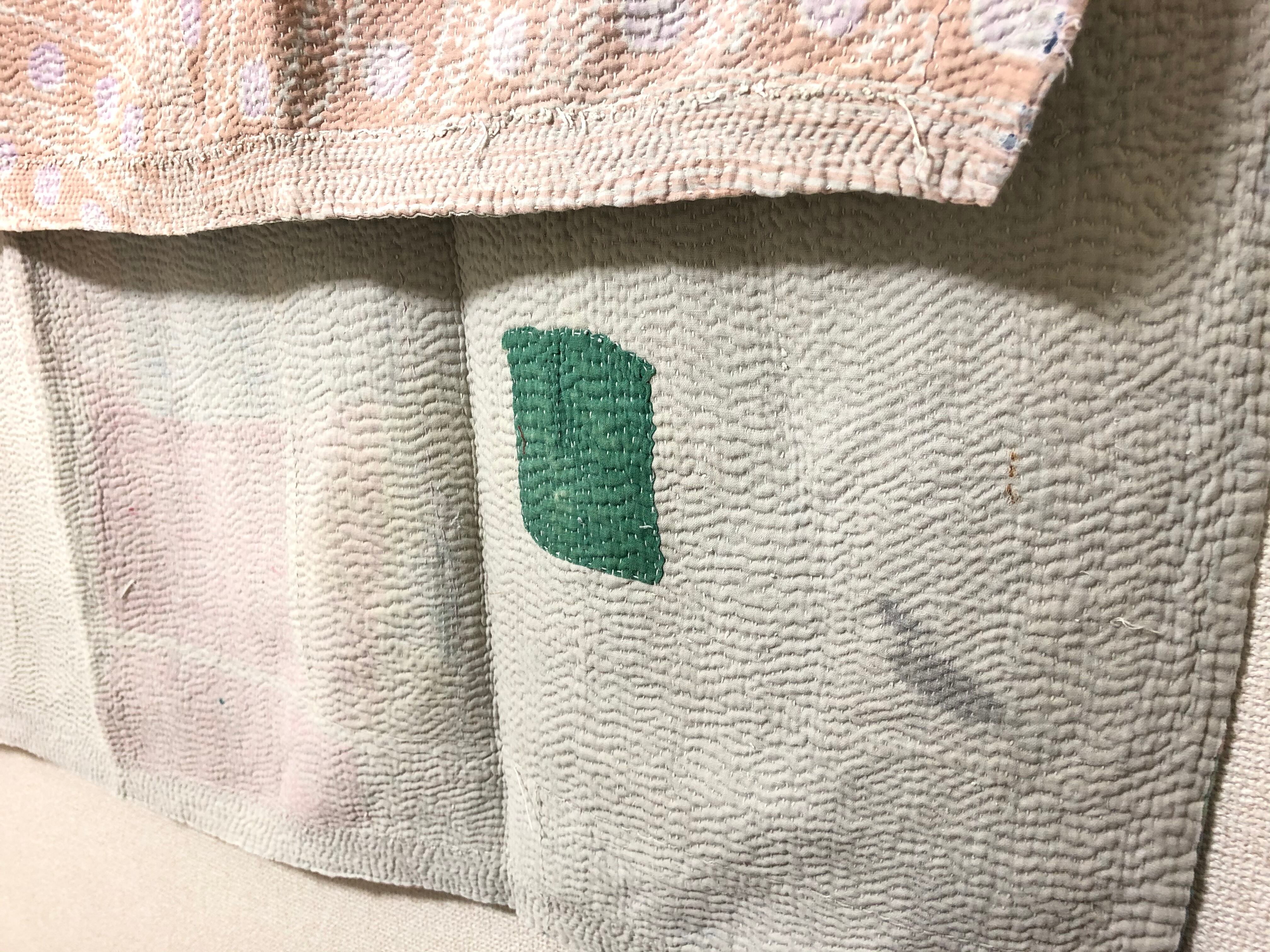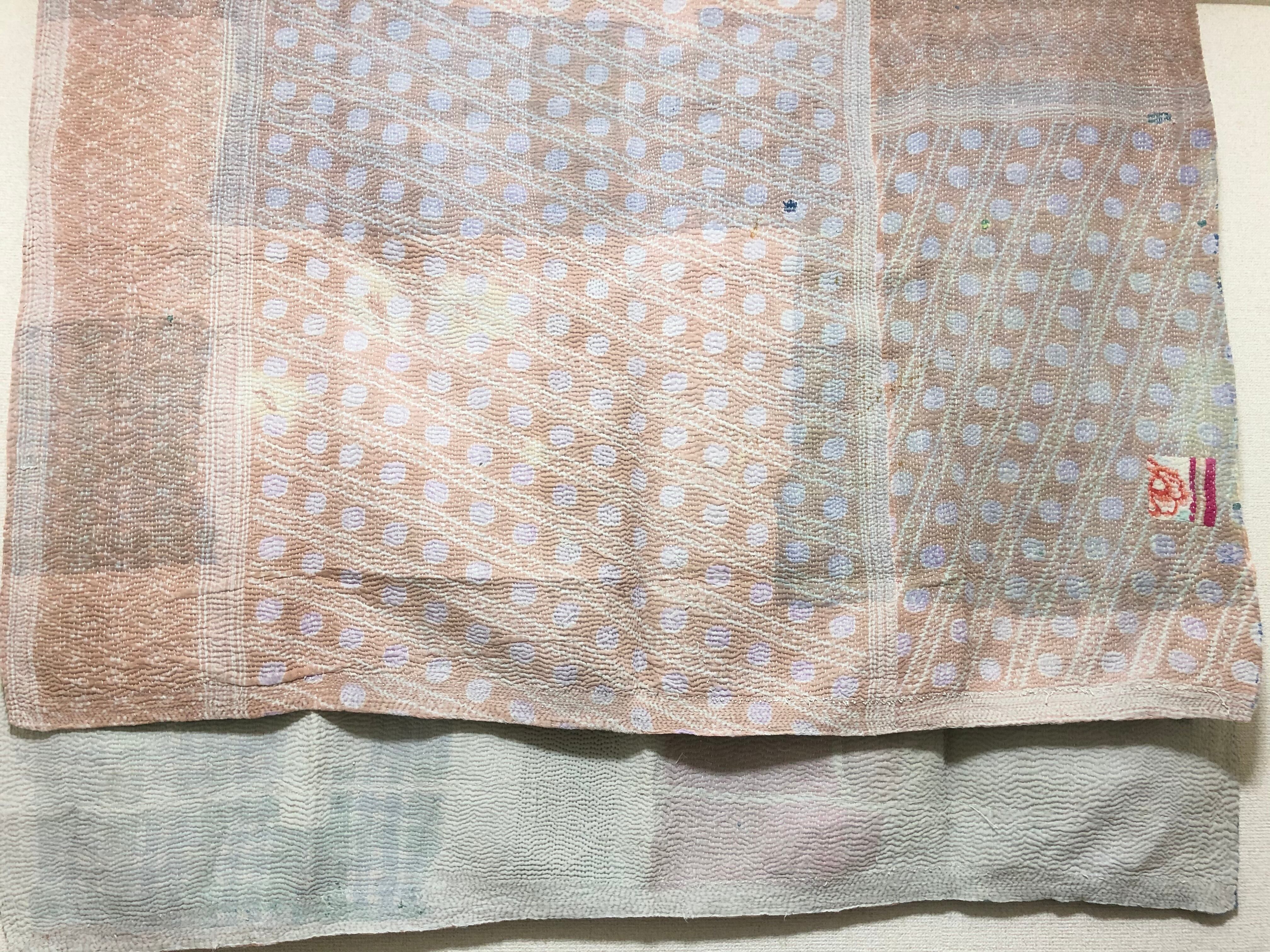 春色のヴィンテージラリーキルト カンタ刺繍 刺し子 エスニック ハンドメイド パッチワーク 古布