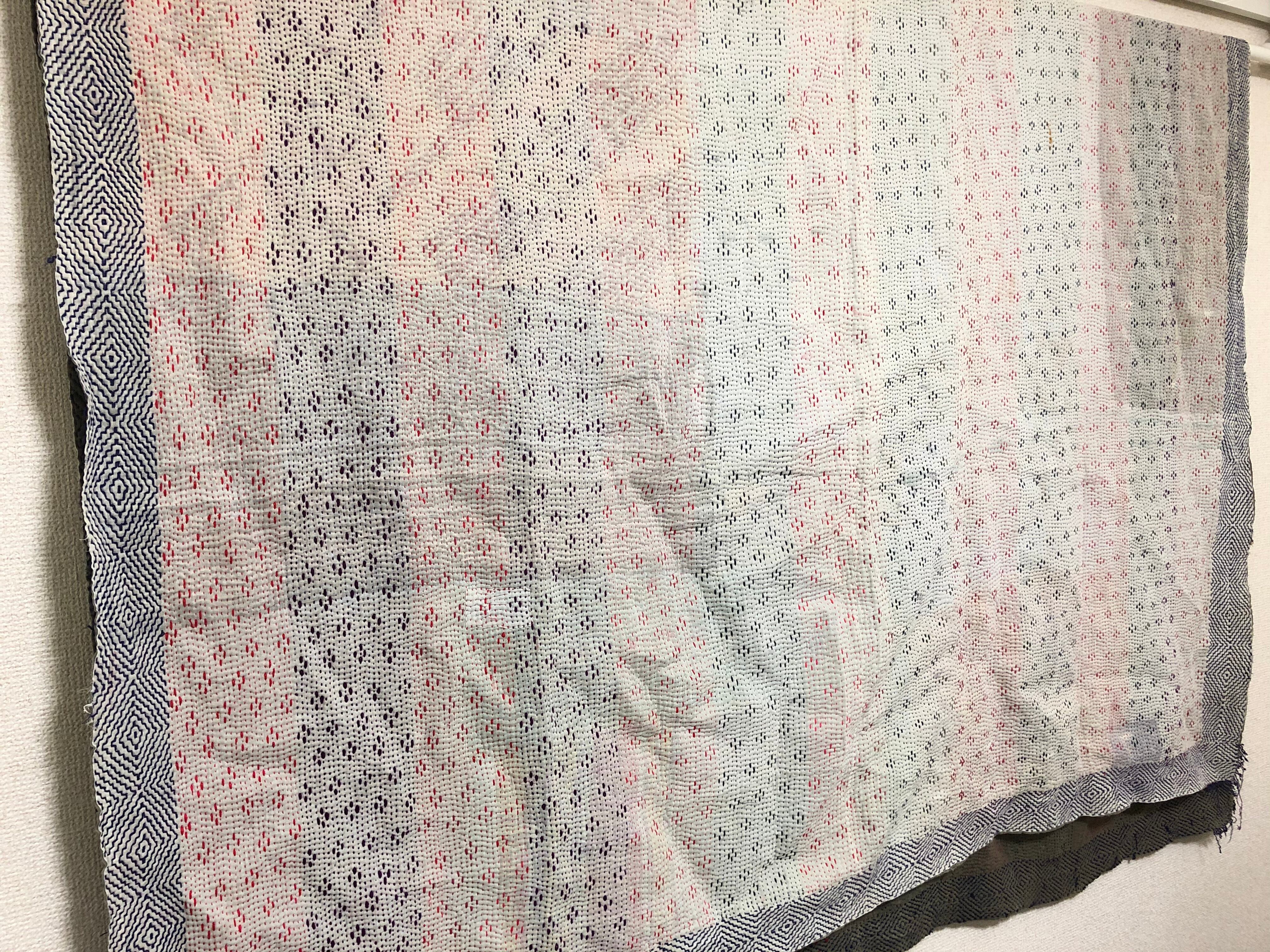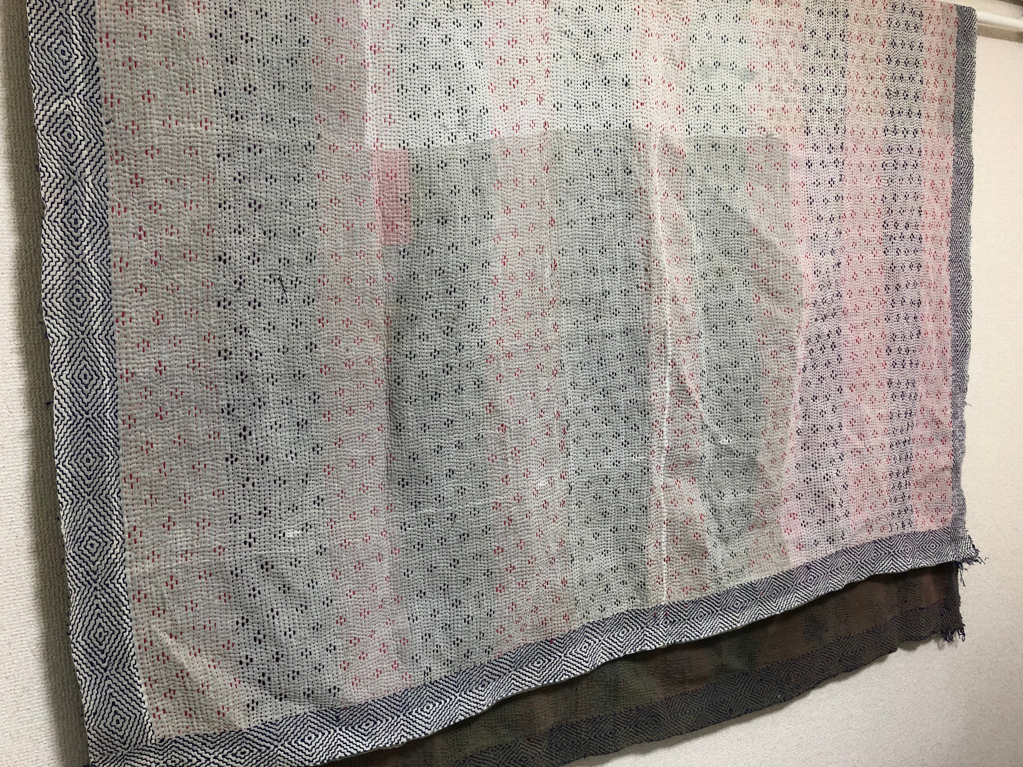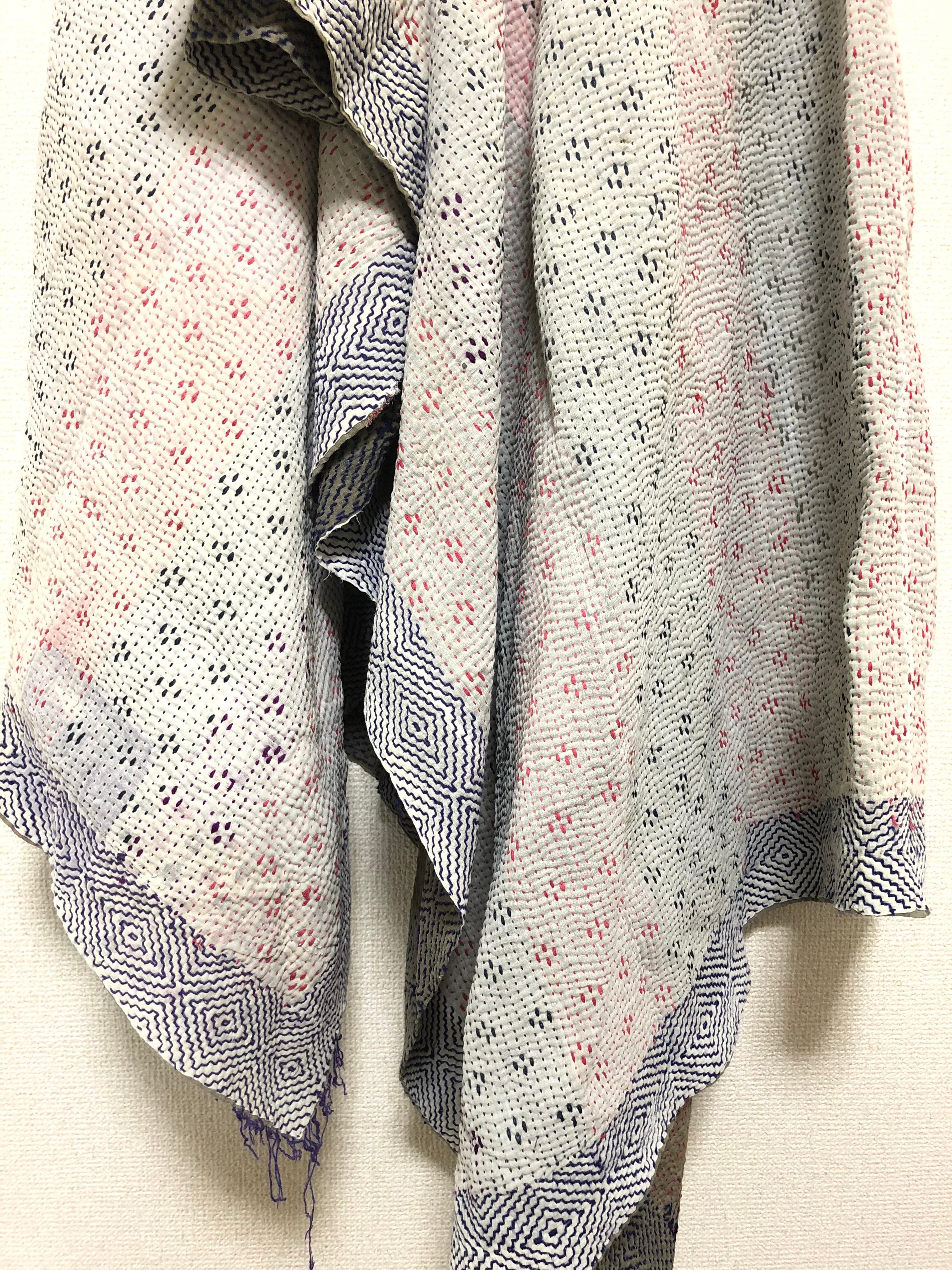 白のヴィンテージラリーキルト カンタ刺繍 刺し子 エスニック ハンドメイド パッチワーク 古布