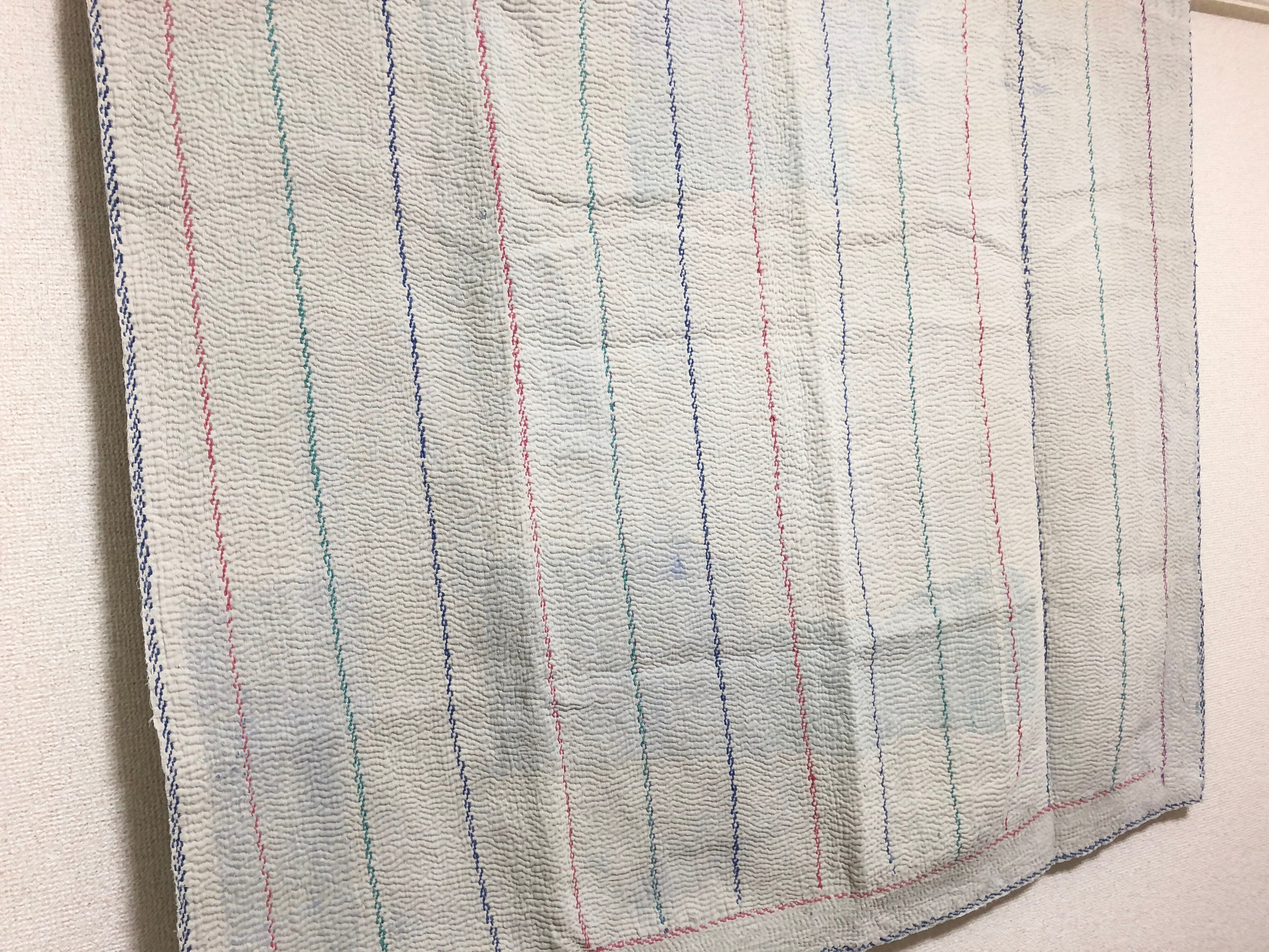 シンプル刺繍のラリーキルト カンタ エスニック ハンドメイド 刺し子