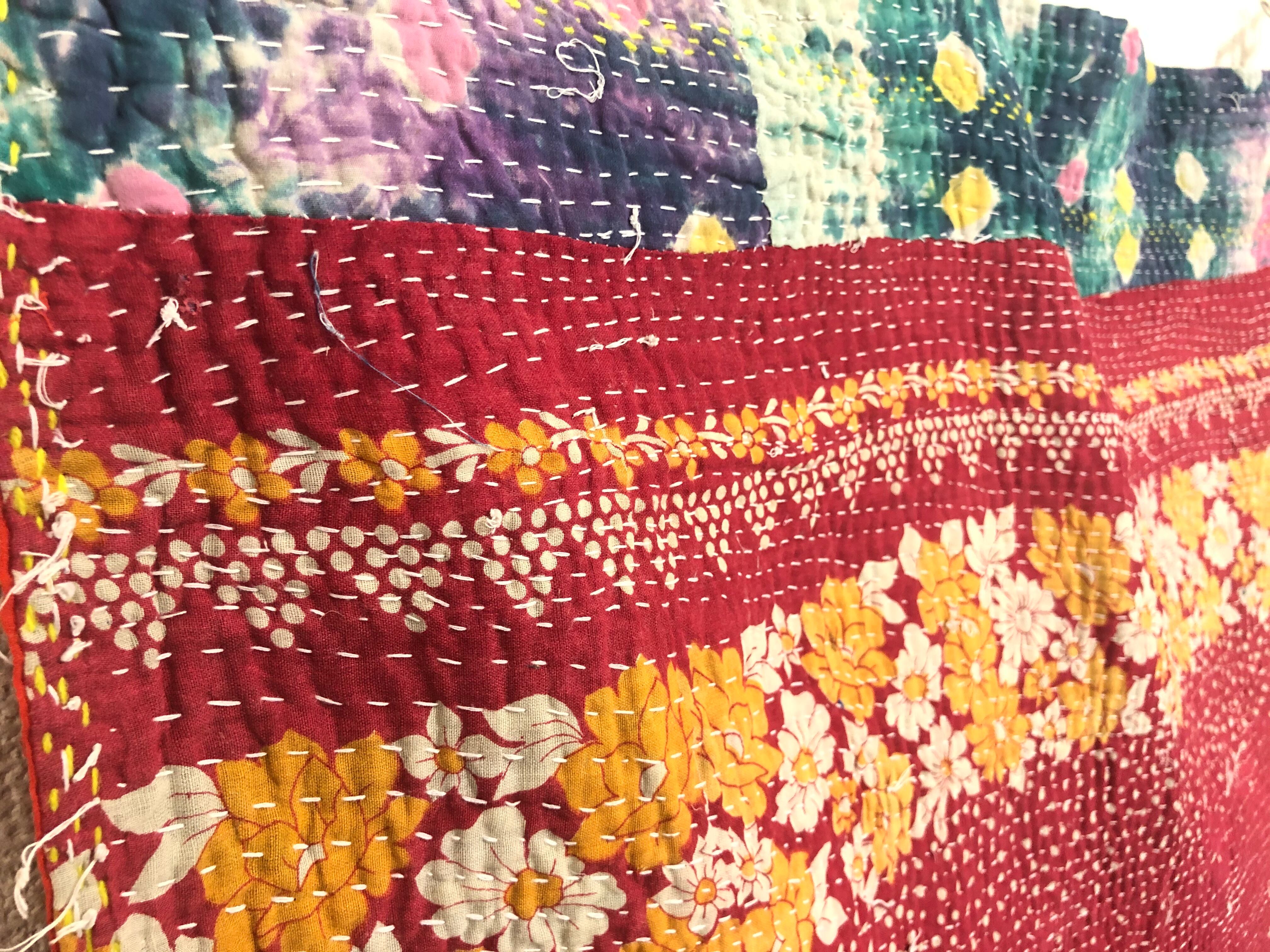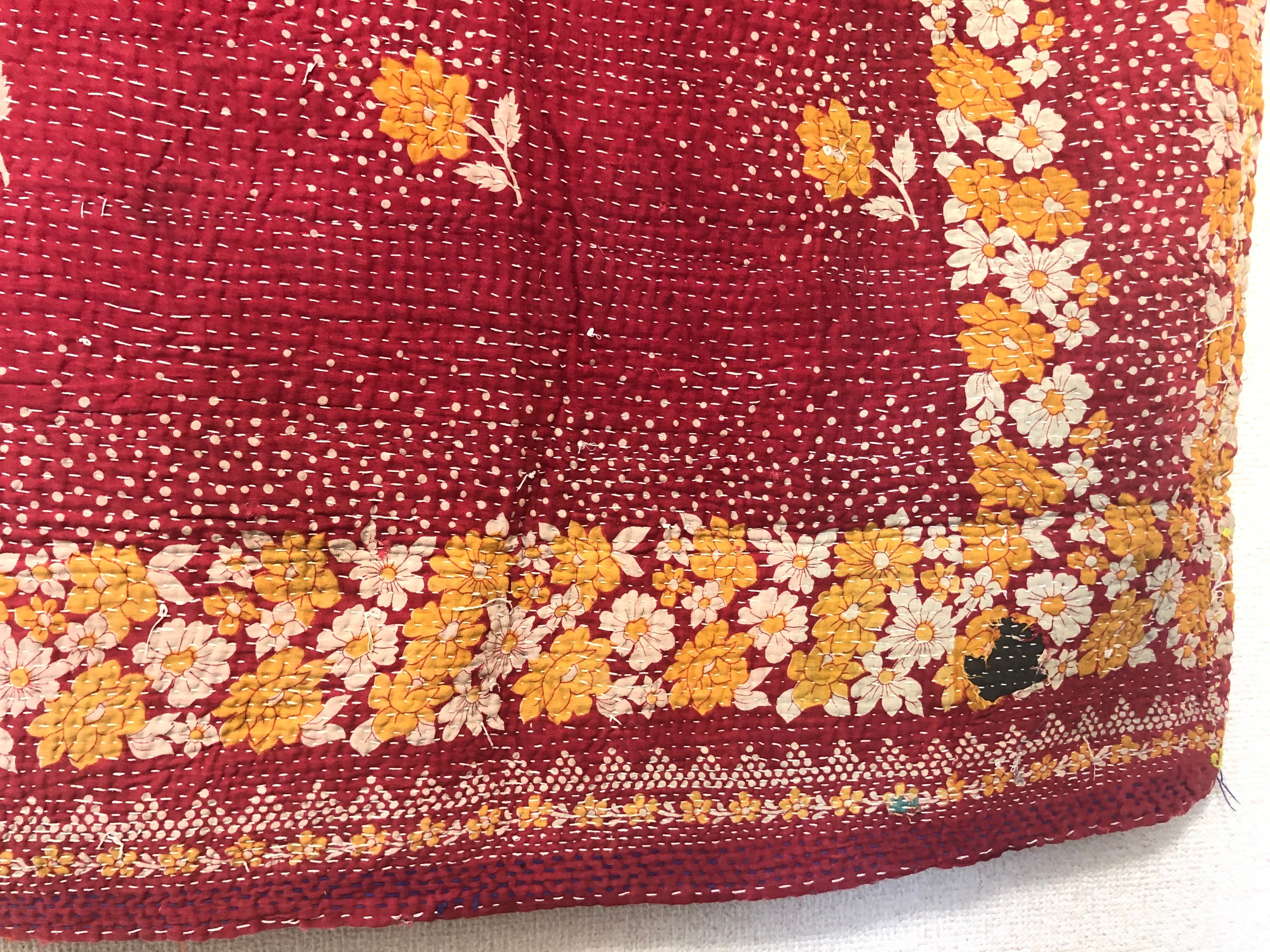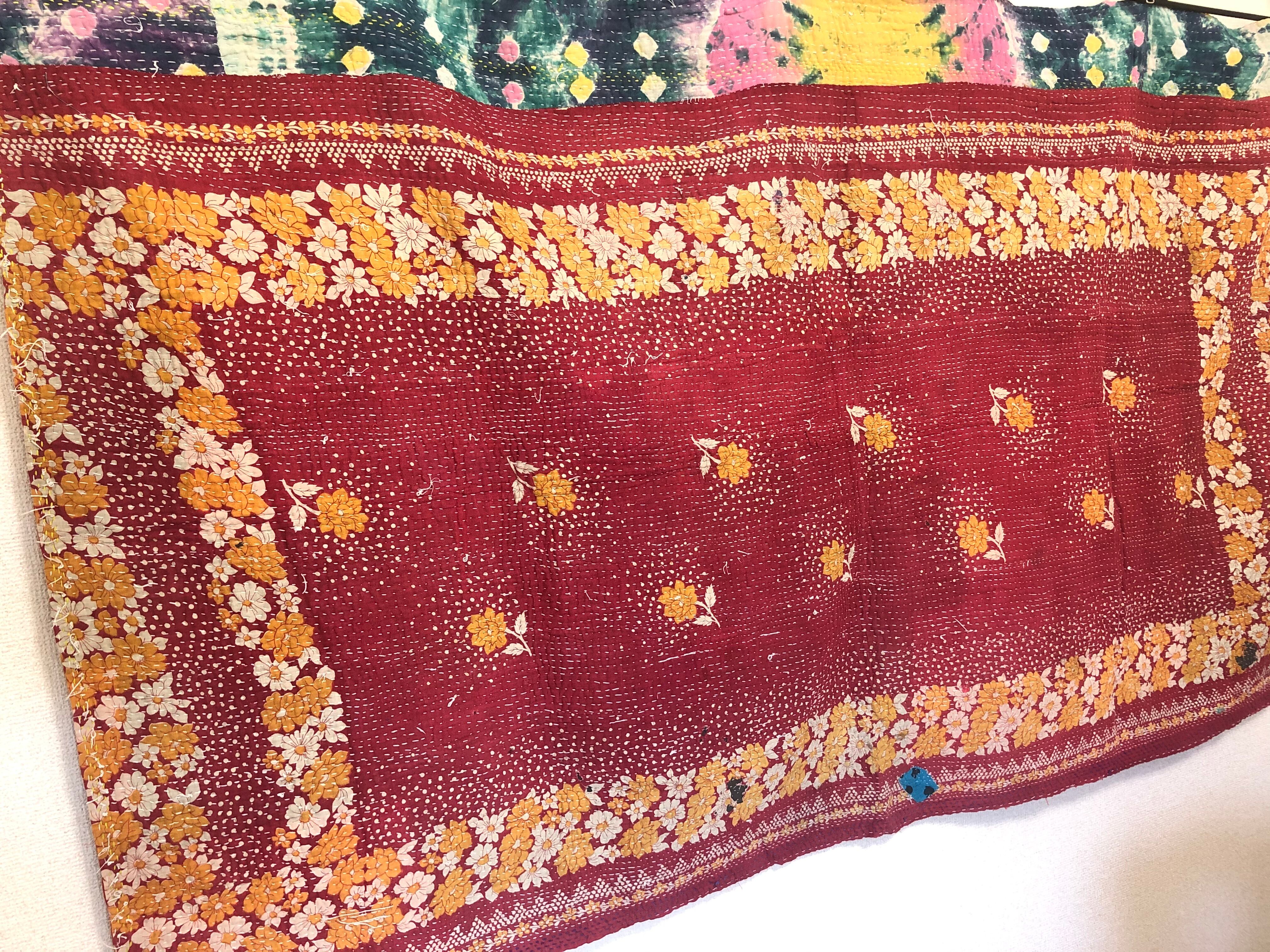 両面アカの小さいラリーキルト カンタ刺繍 刺し子 エスニック ハンドメイド ラグ