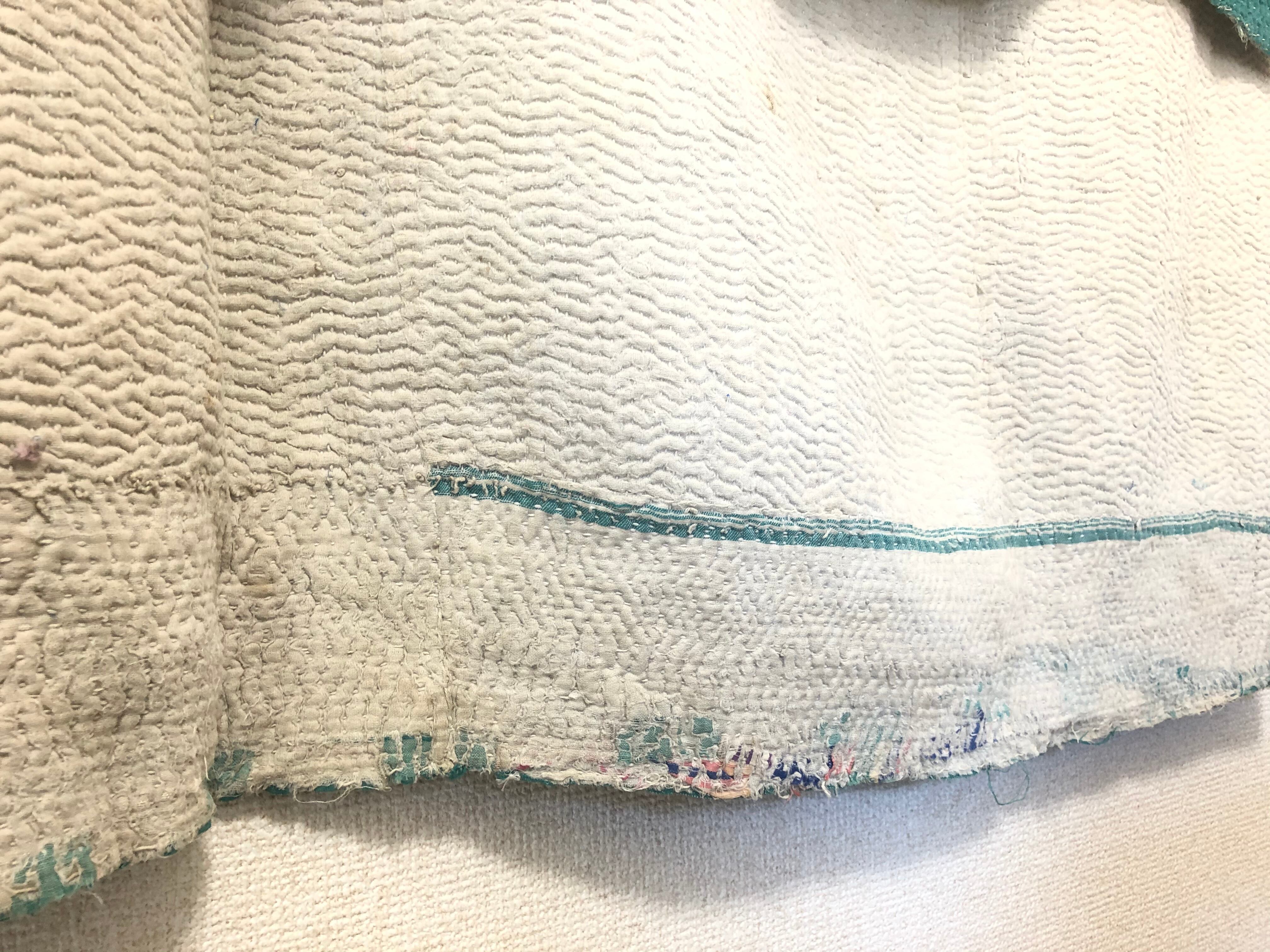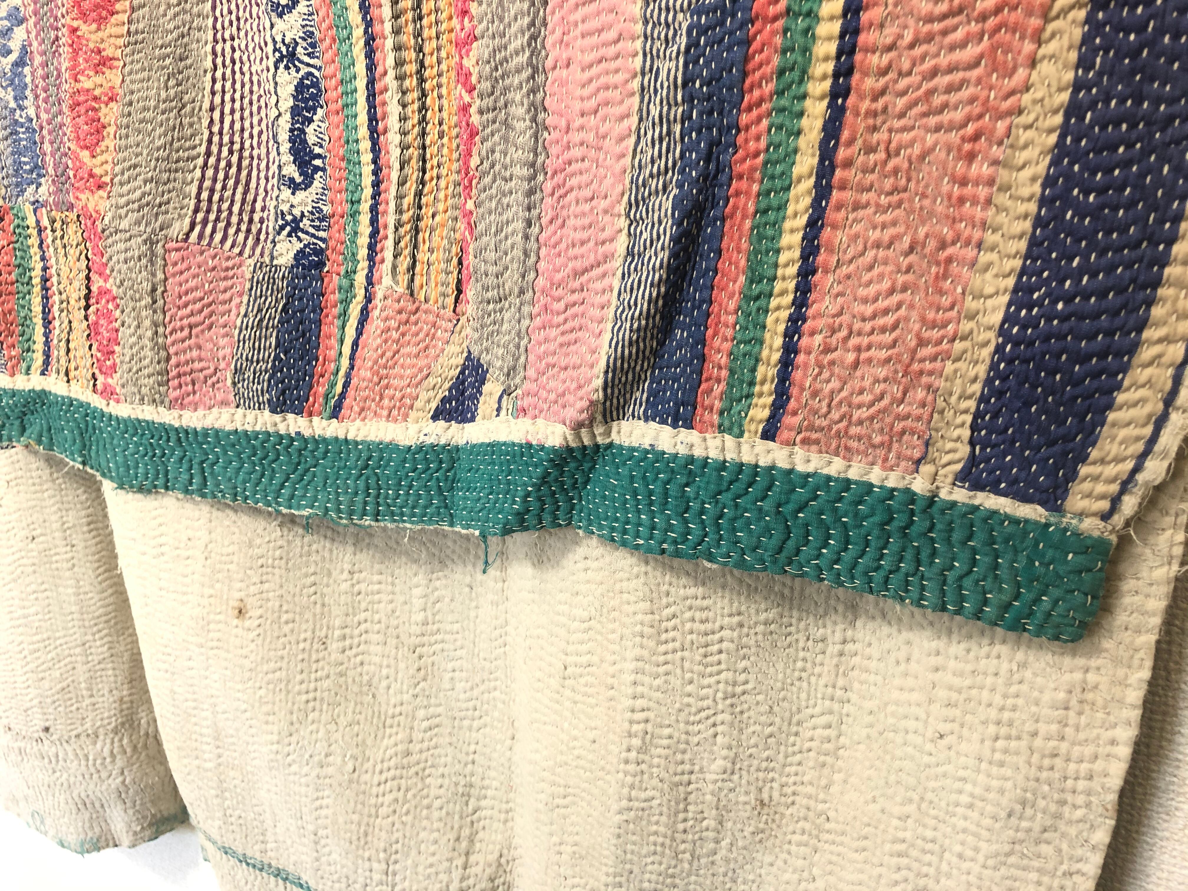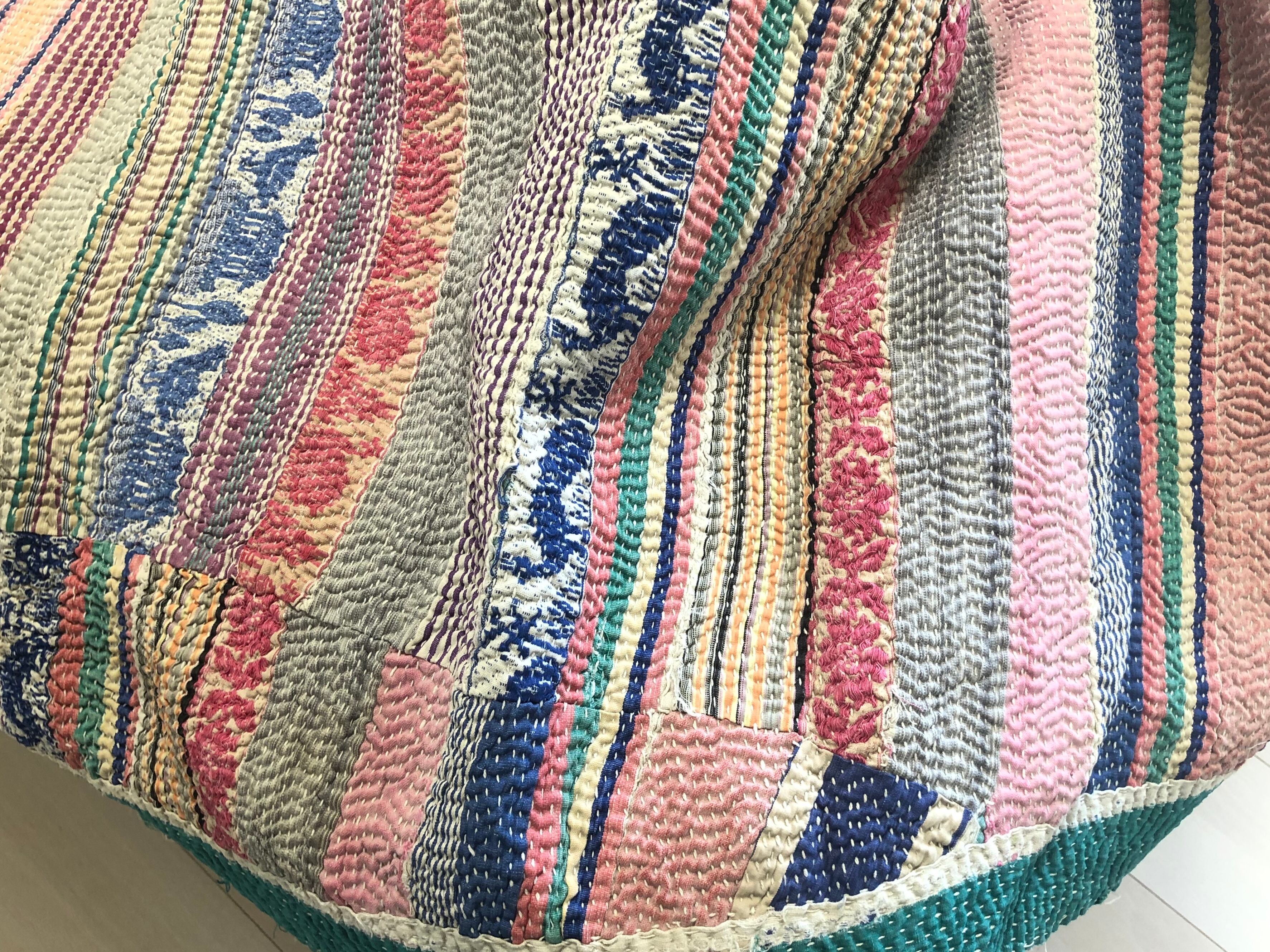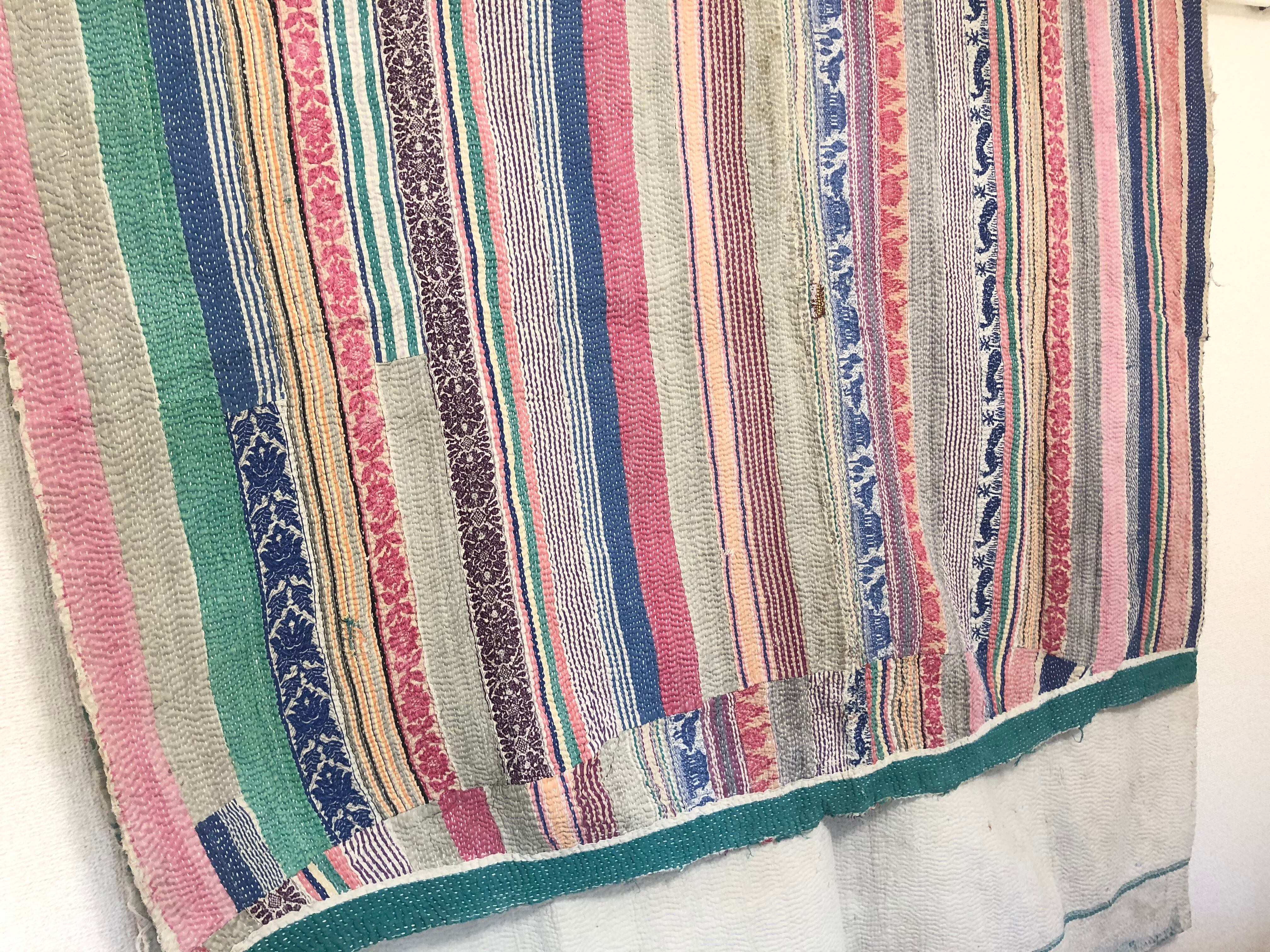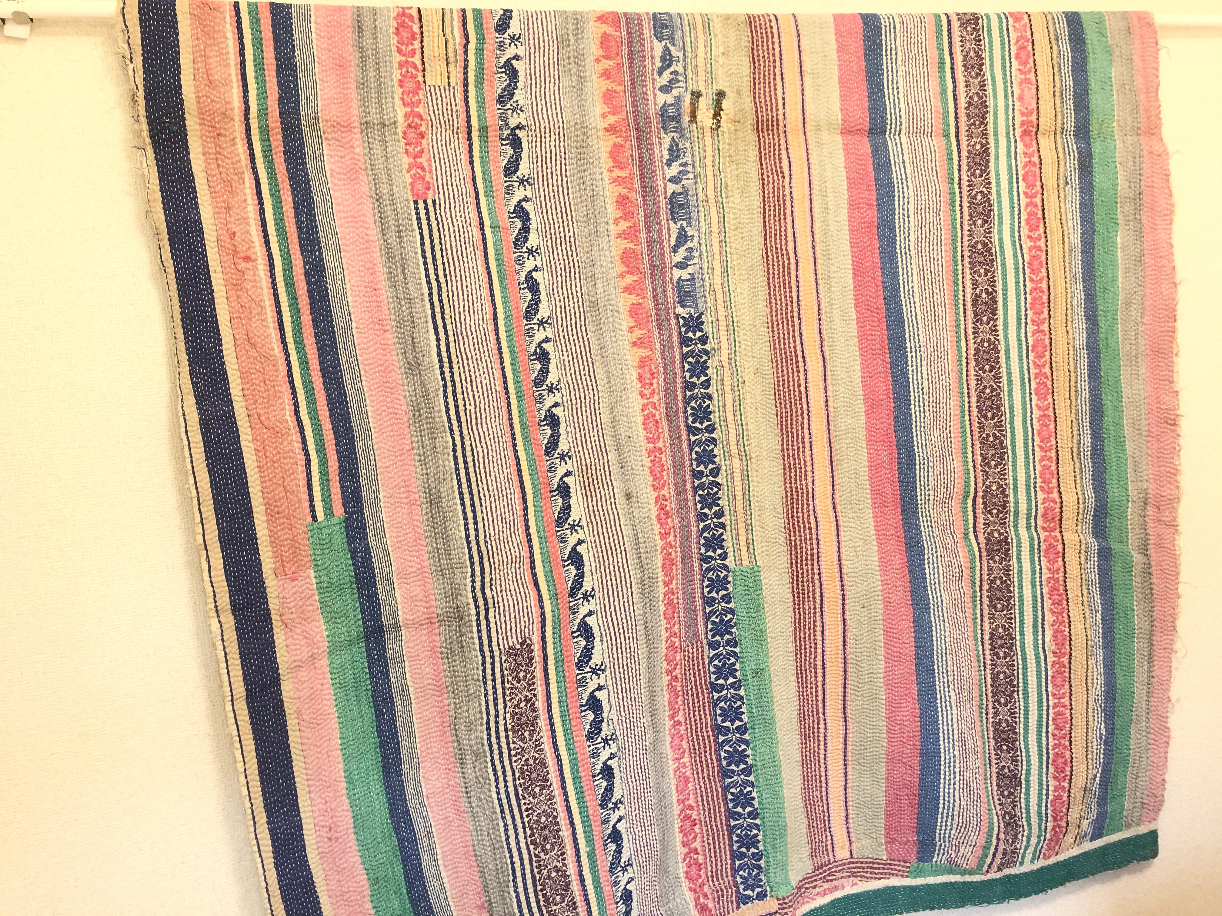 淡いピンクが可愛いストライプのヴィンテージラリーキルト 刺し子 カンタ刺繍 エスニック ハンドメイド パッチワーク