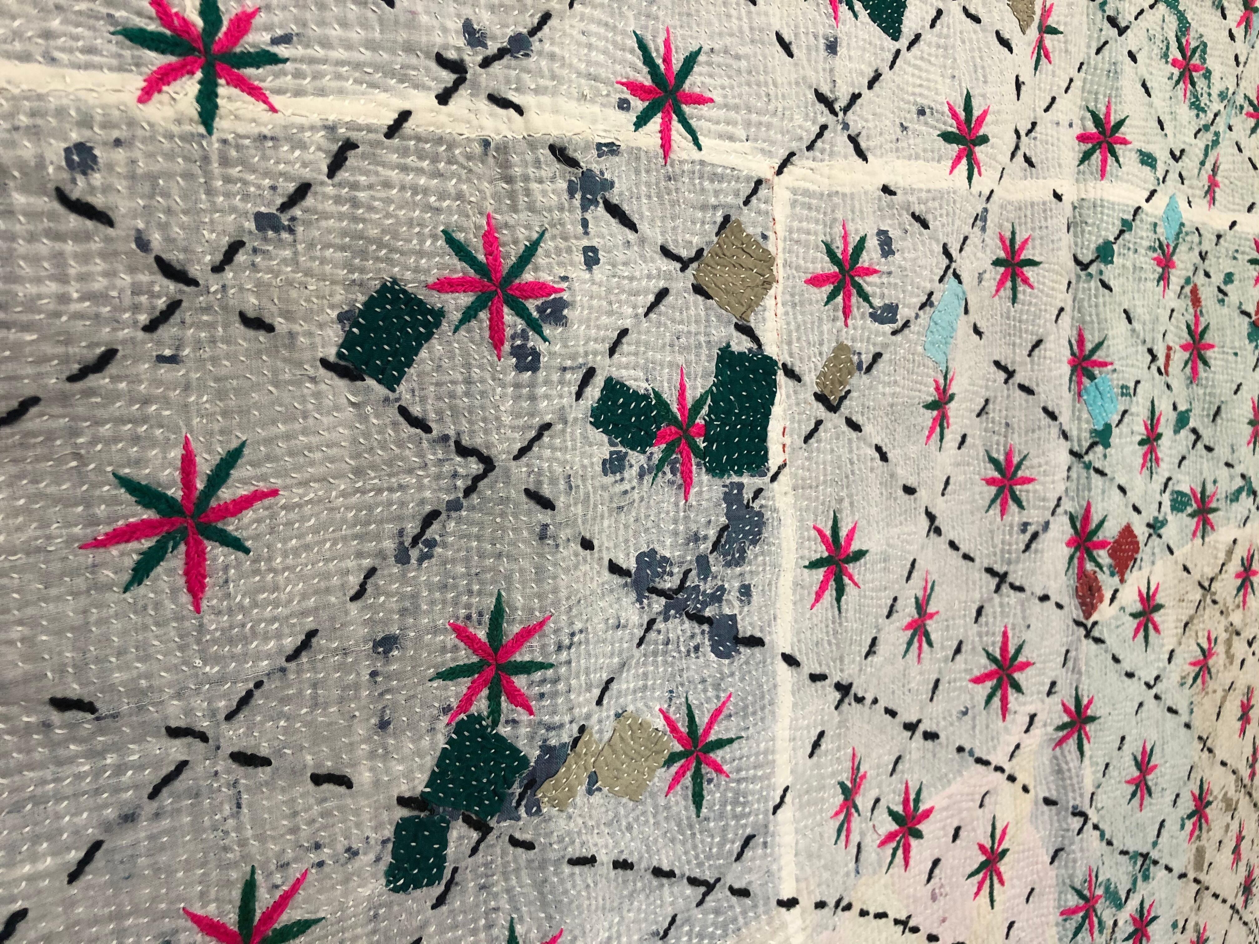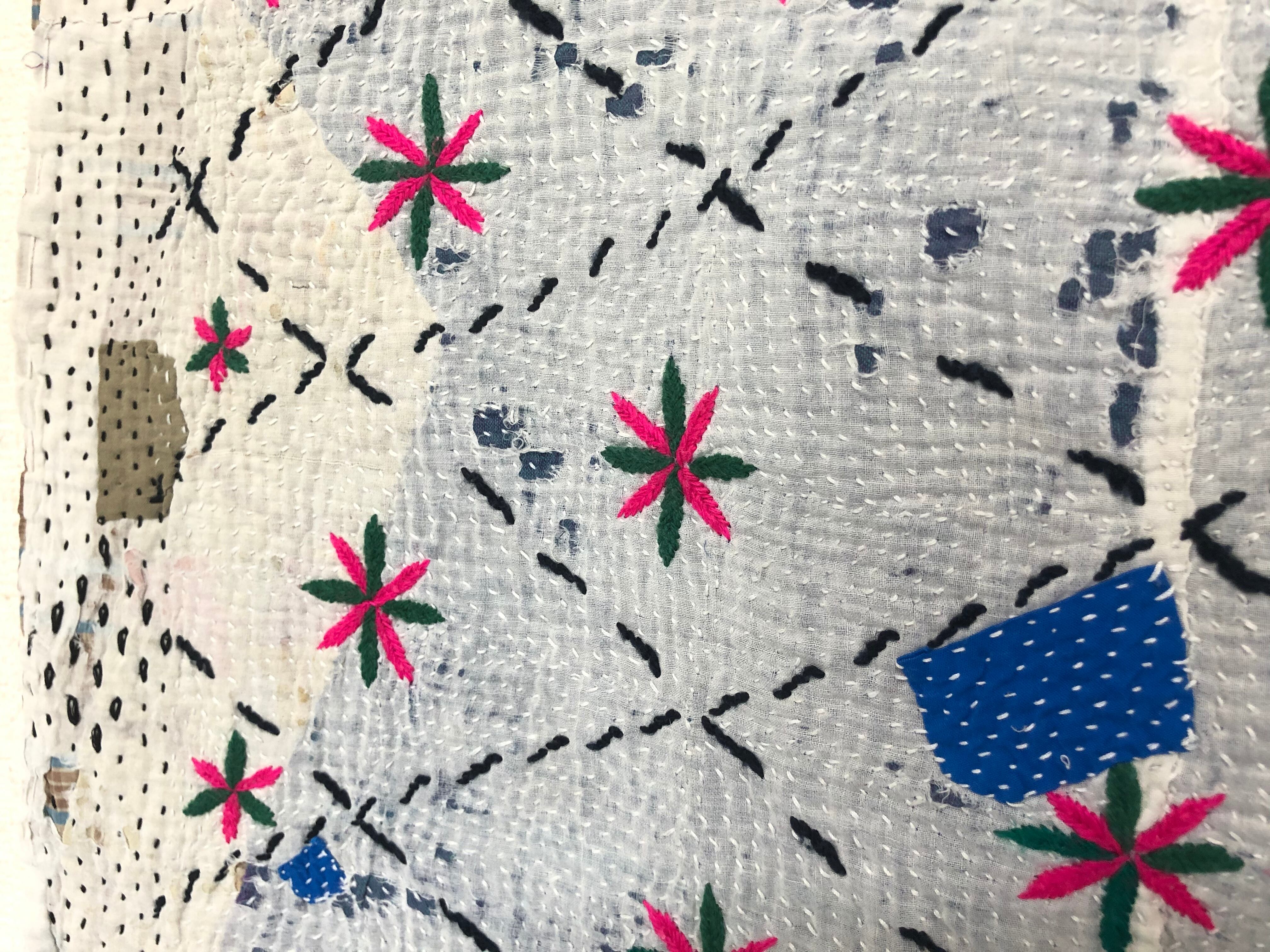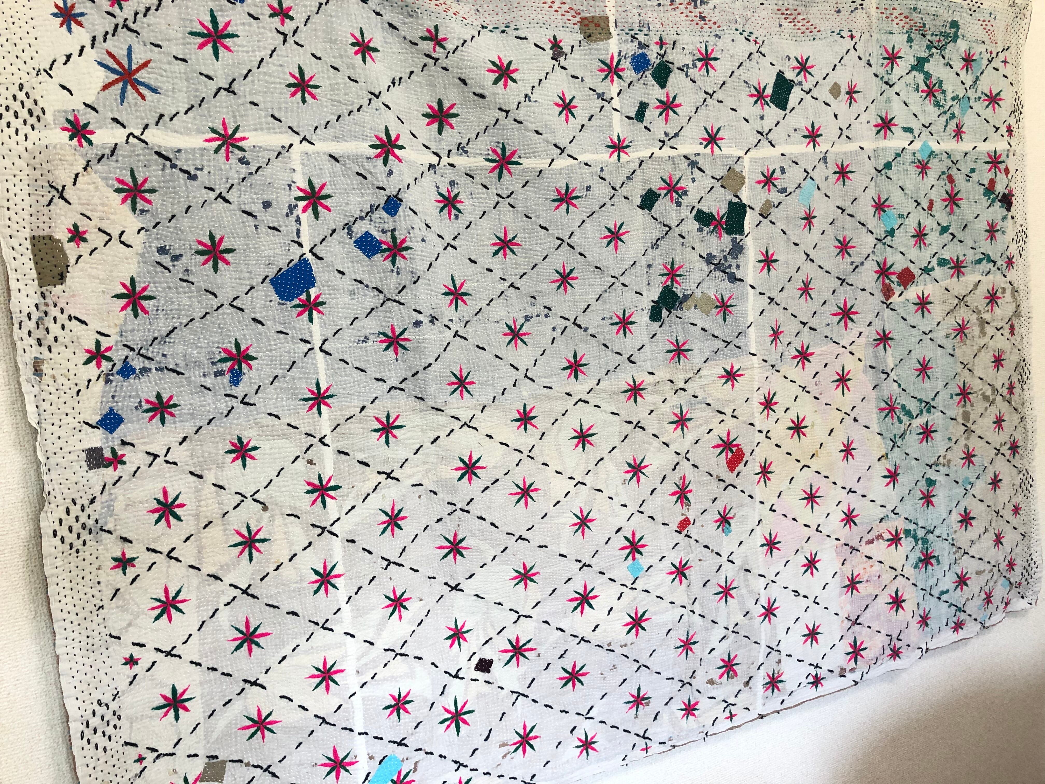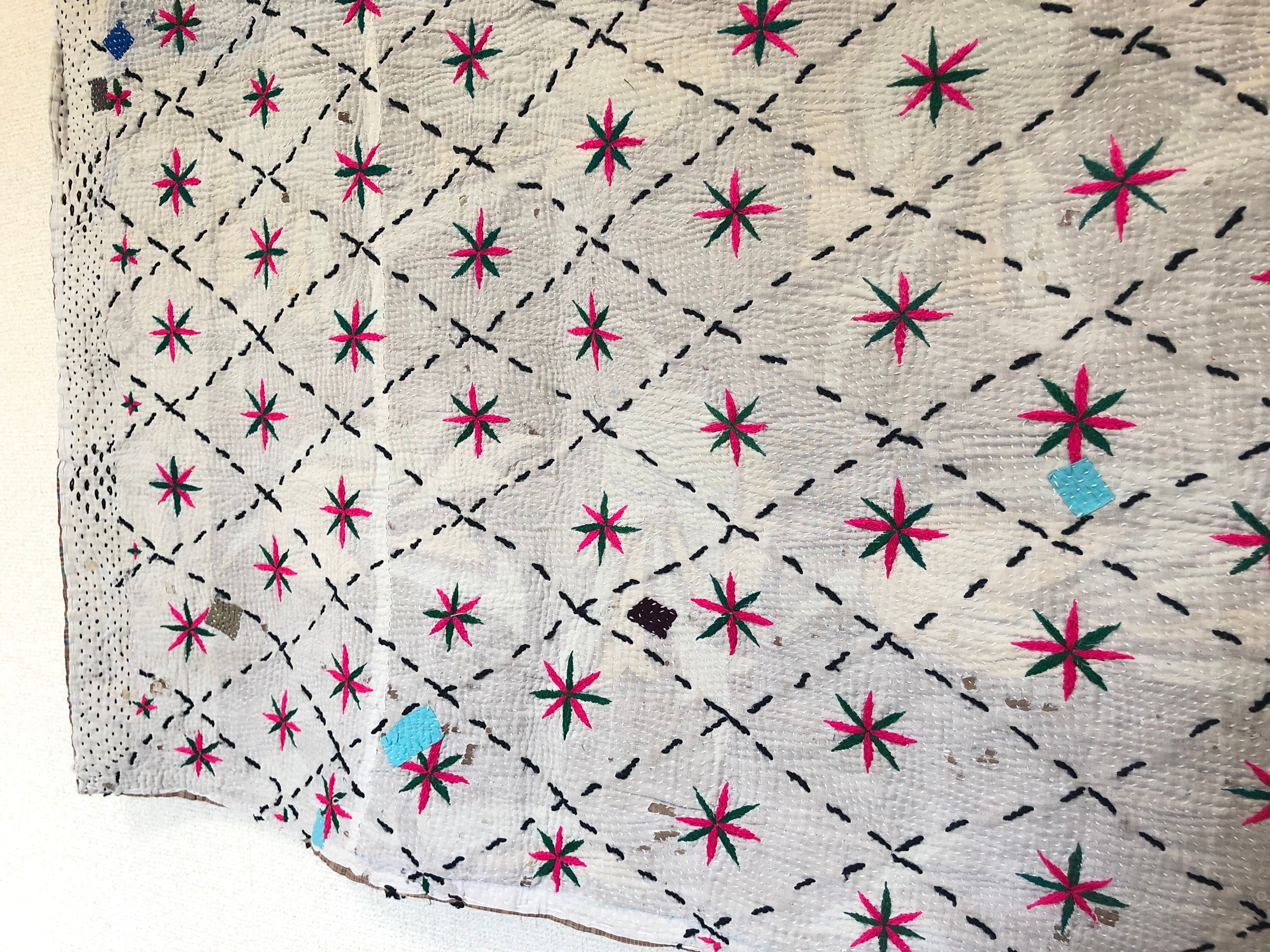 当て布たくさんの白いラリーキルト 刺し子 カンタ刺繍 ハンドメイド エスニック