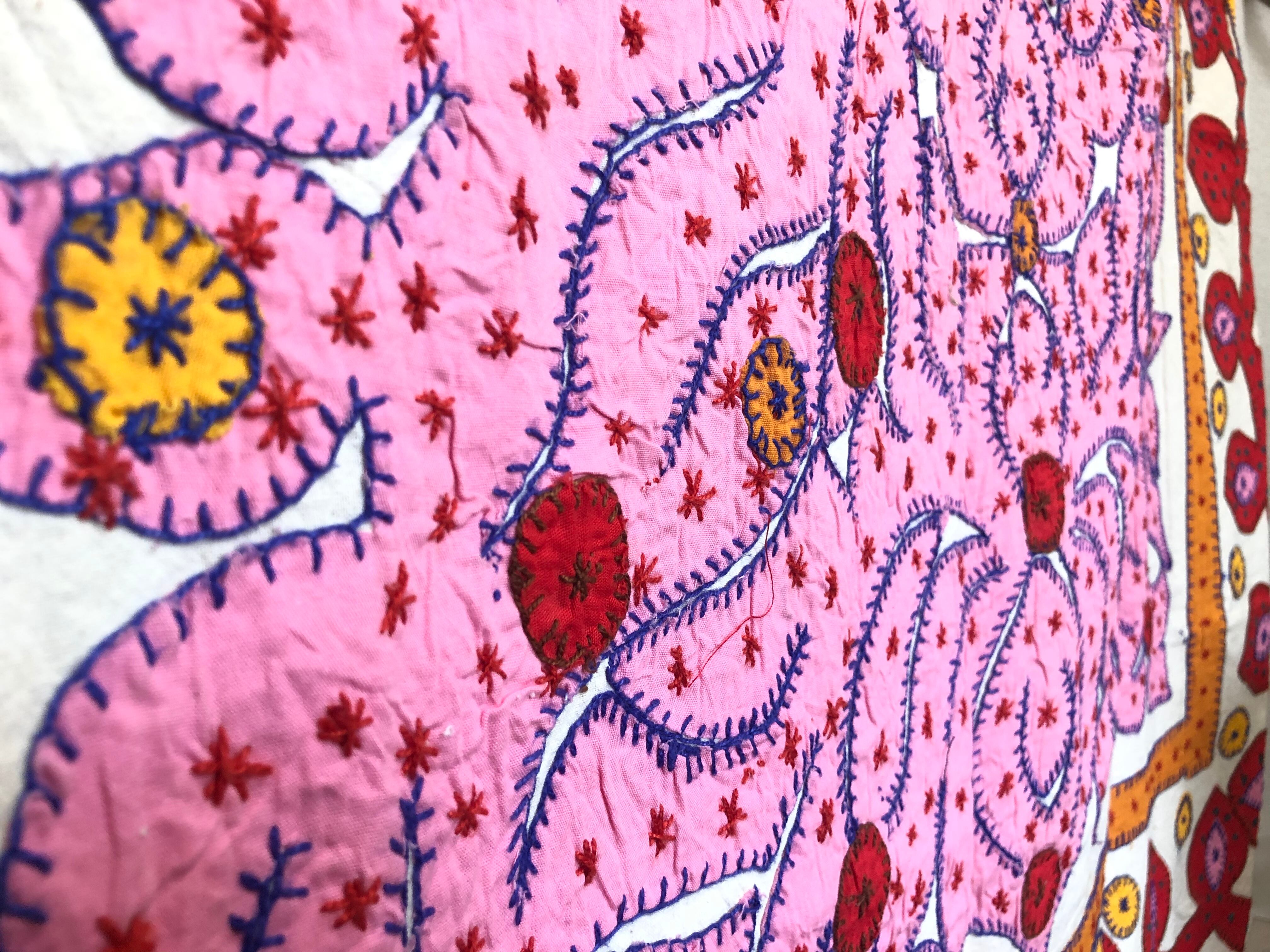 インドのタペストリー 刺繍 エスニック テーブルクロス ハンドメイド ピンク