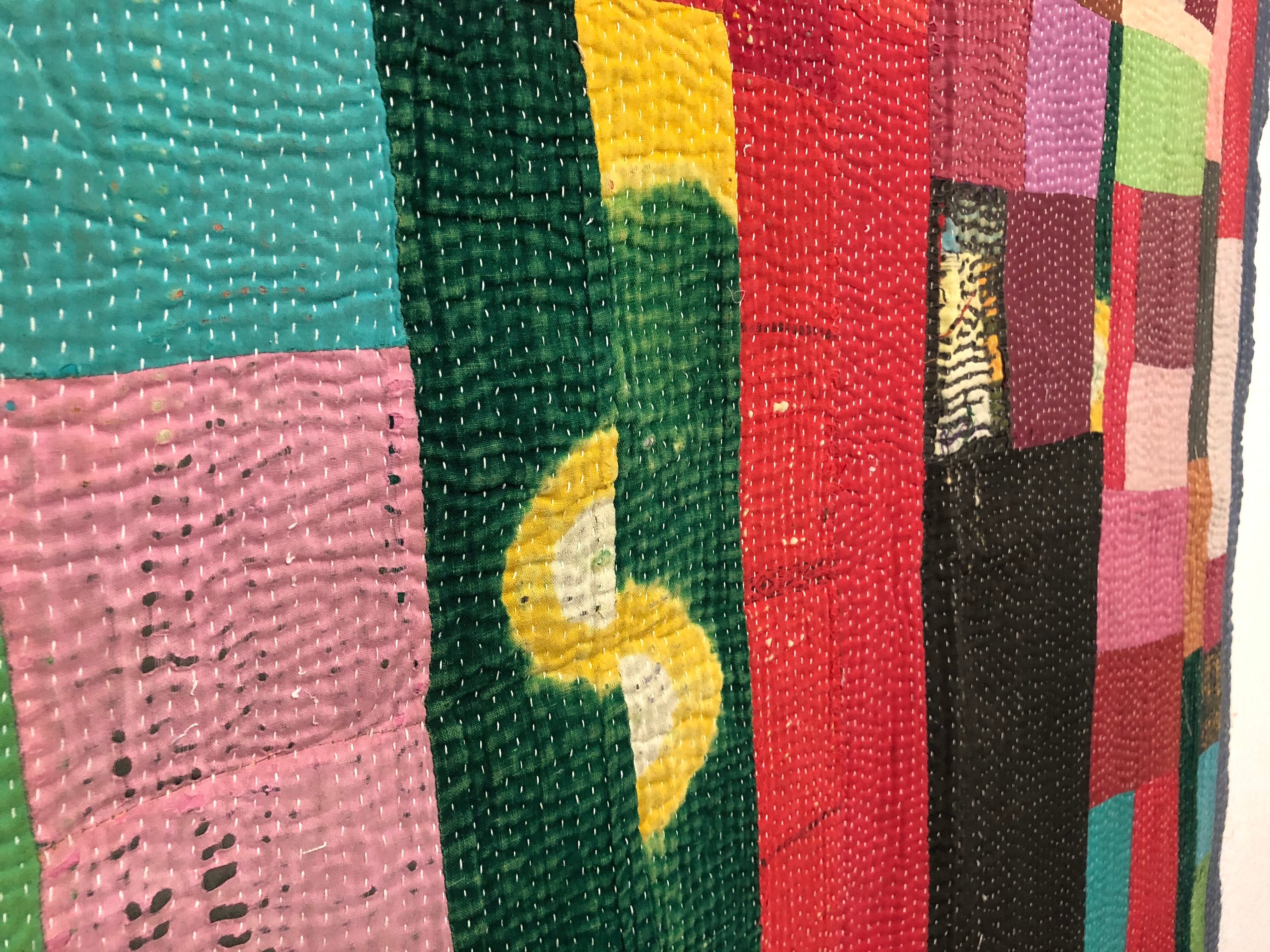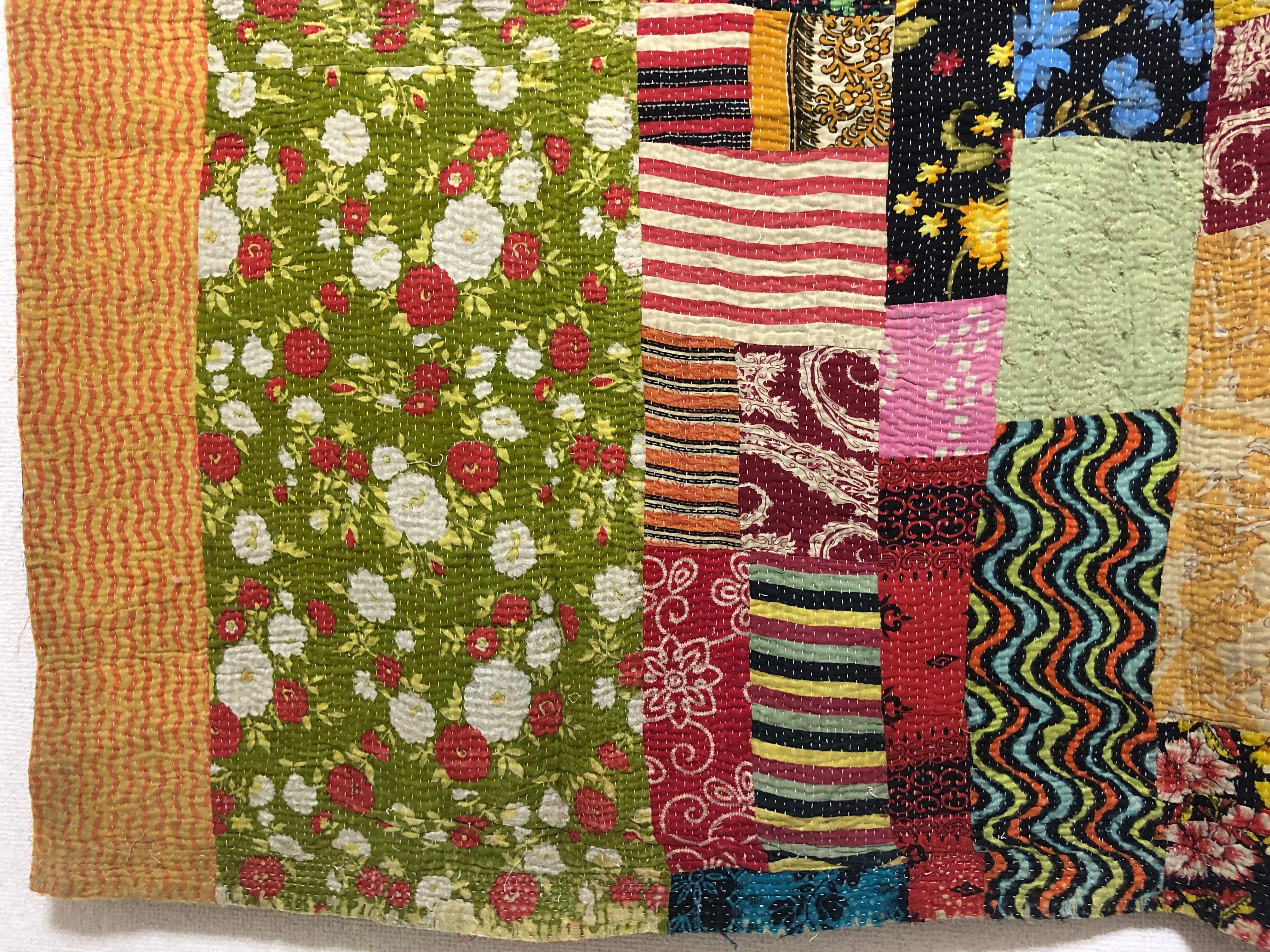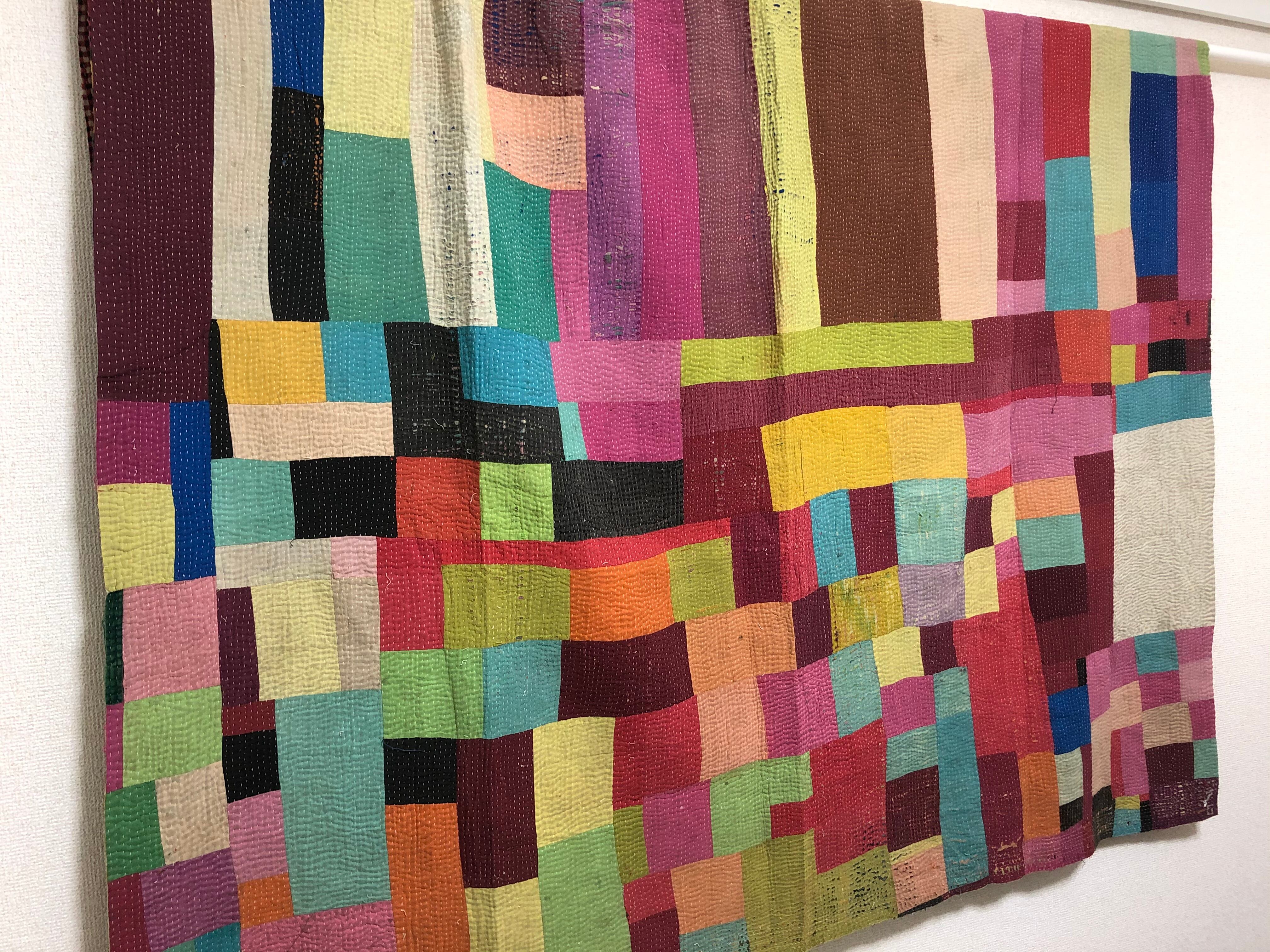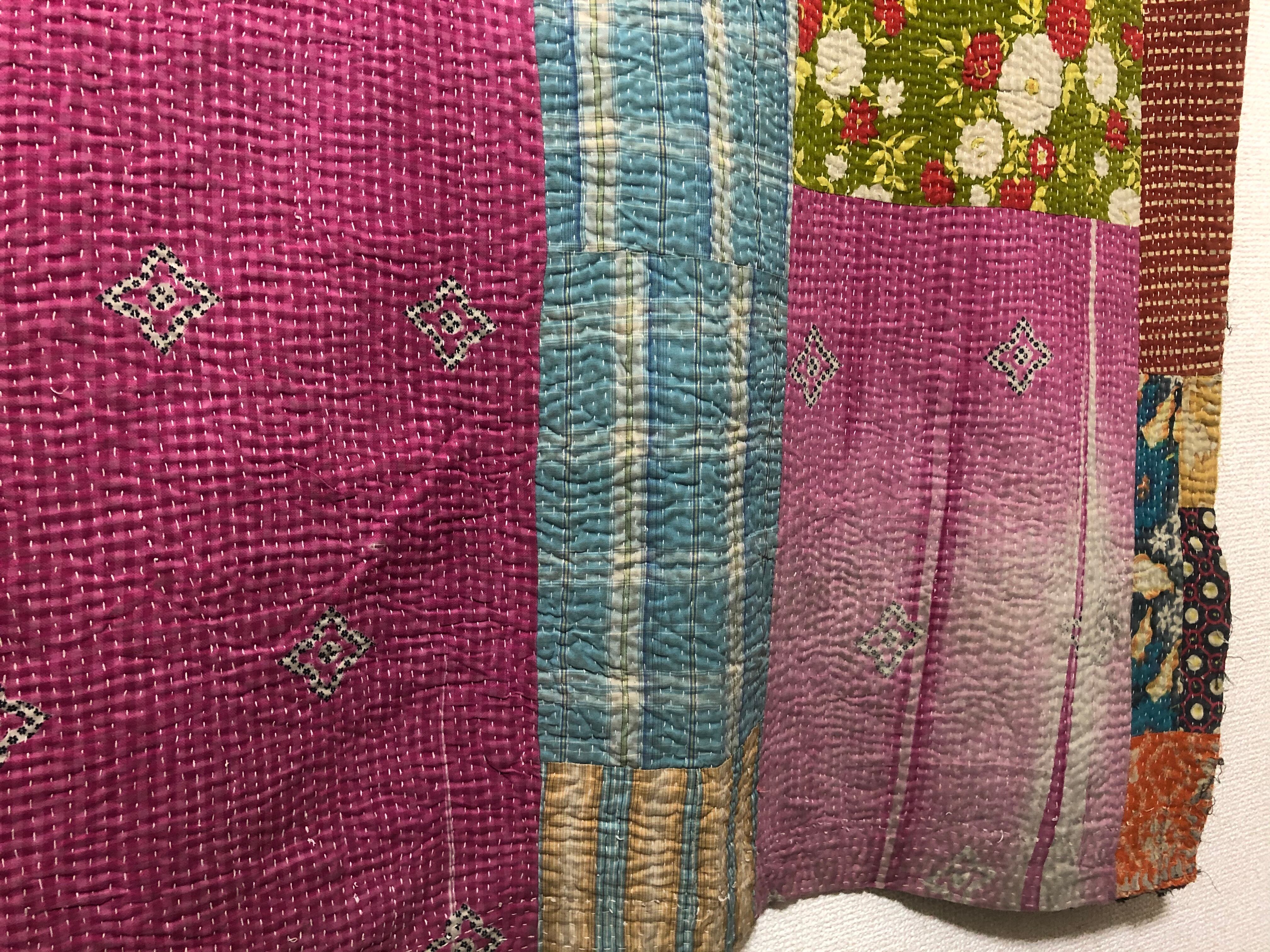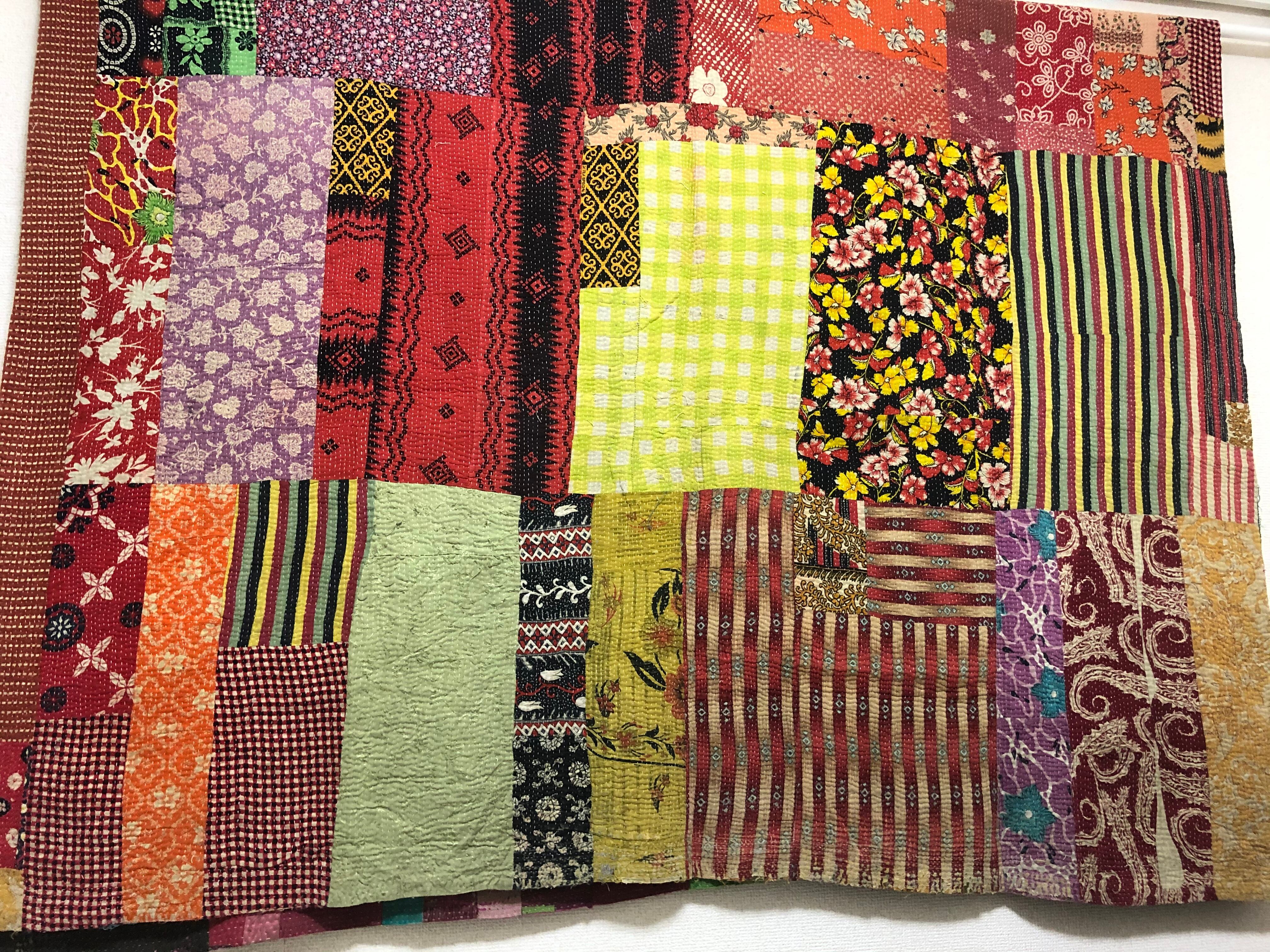 両面主役のラリーキルト カンタ刺繍 刺し子 エスニック ハンドメイド パッチワーク 古布
