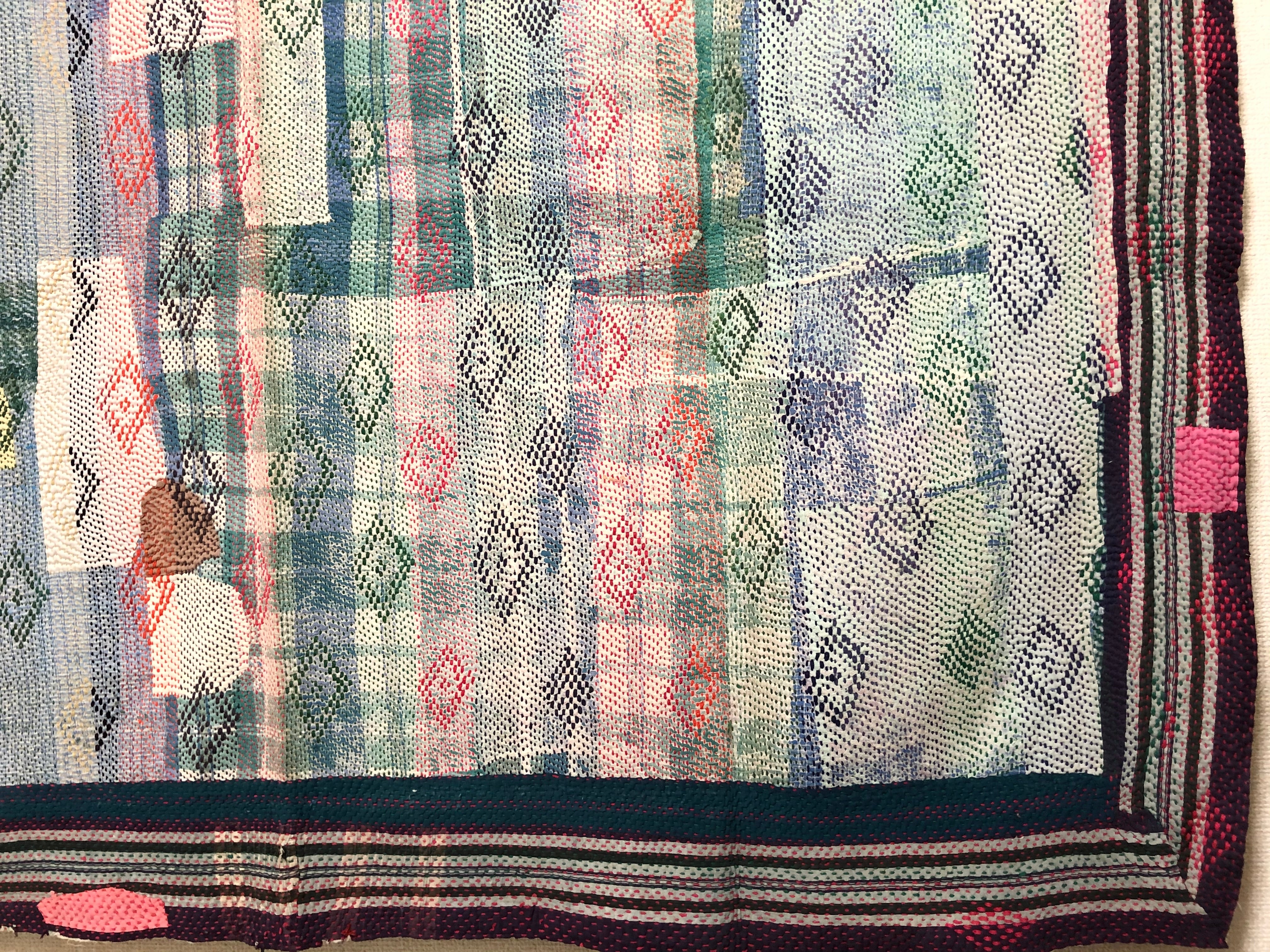 ポップな可愛いラリーキルト カンタ刺繍 刺し子 エスニック ハンドメイド 古布