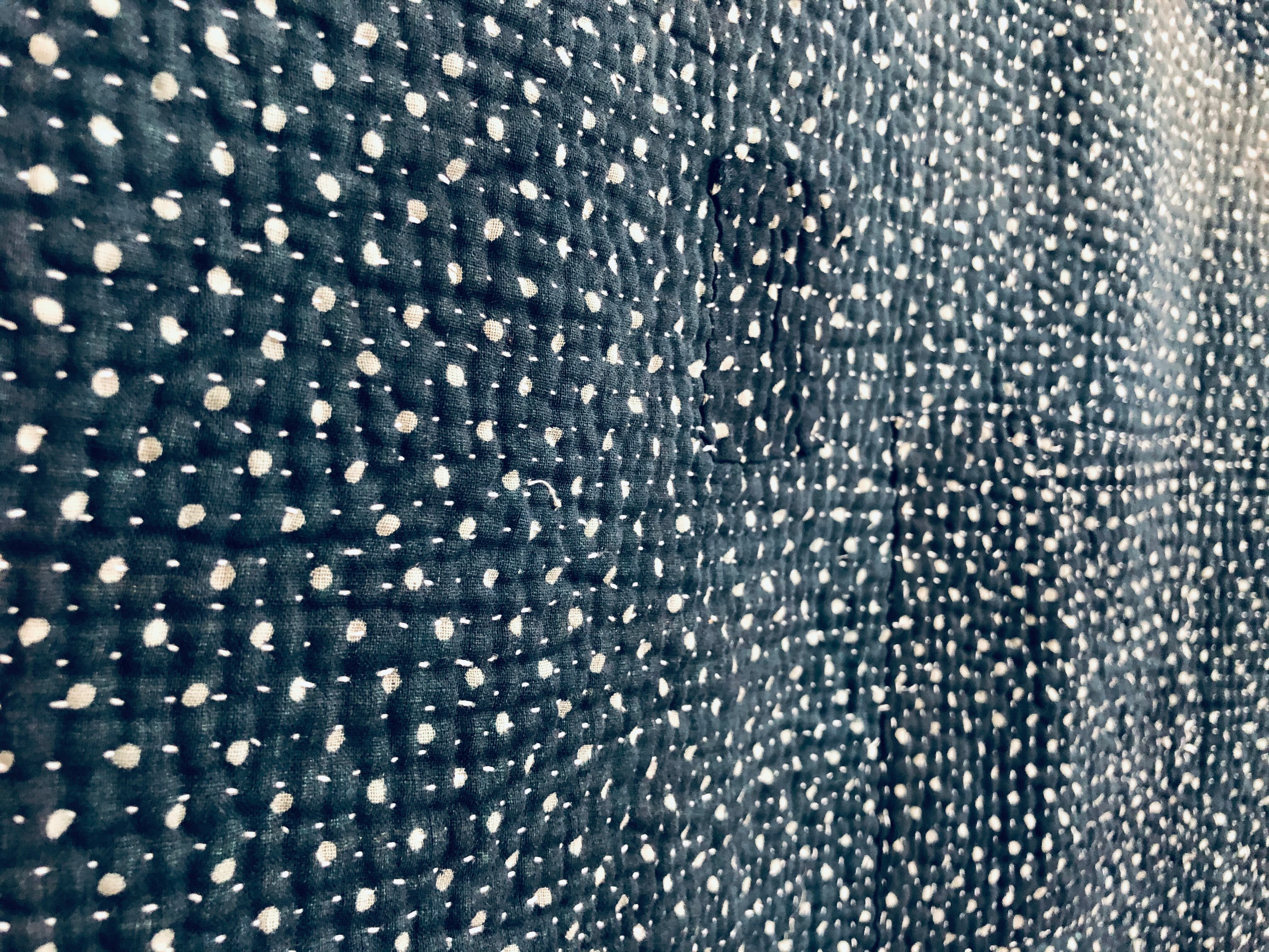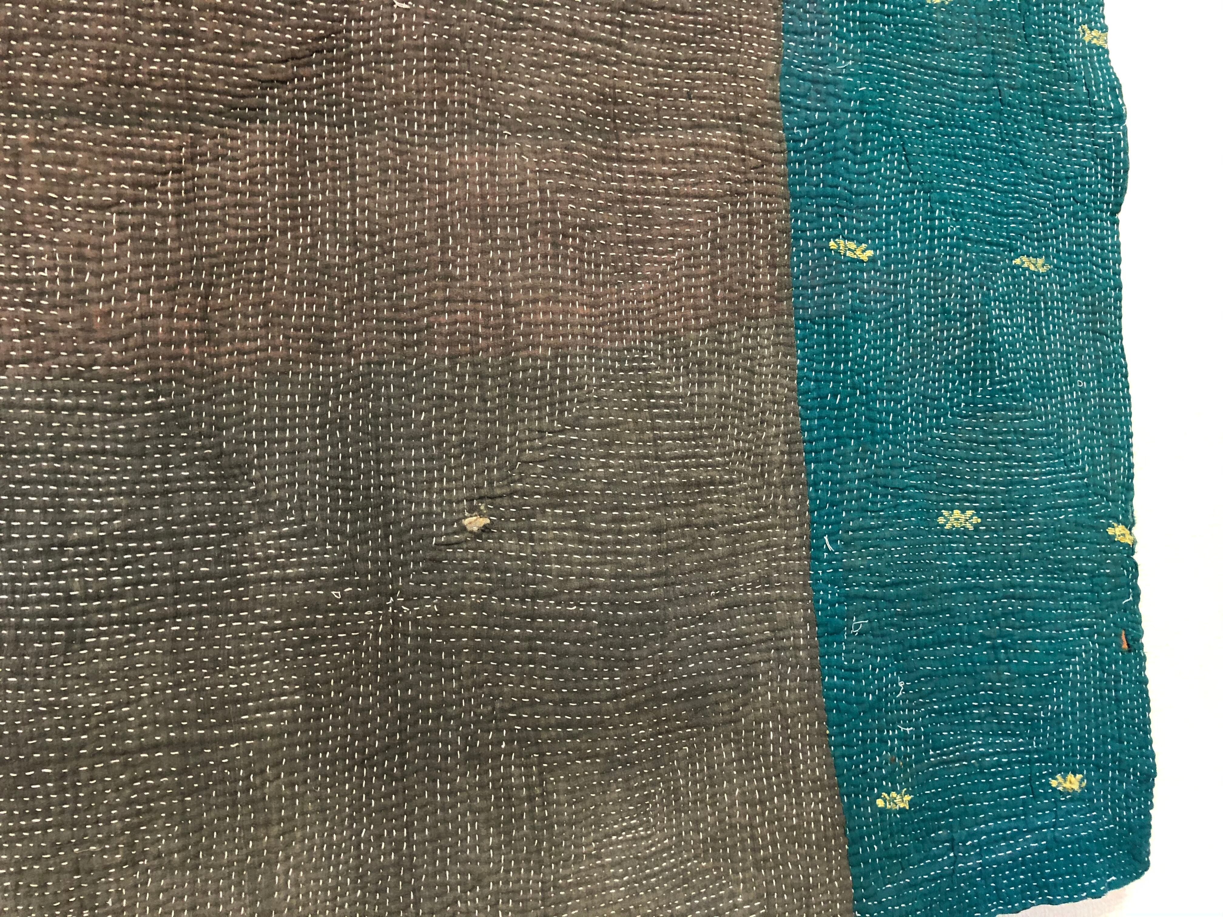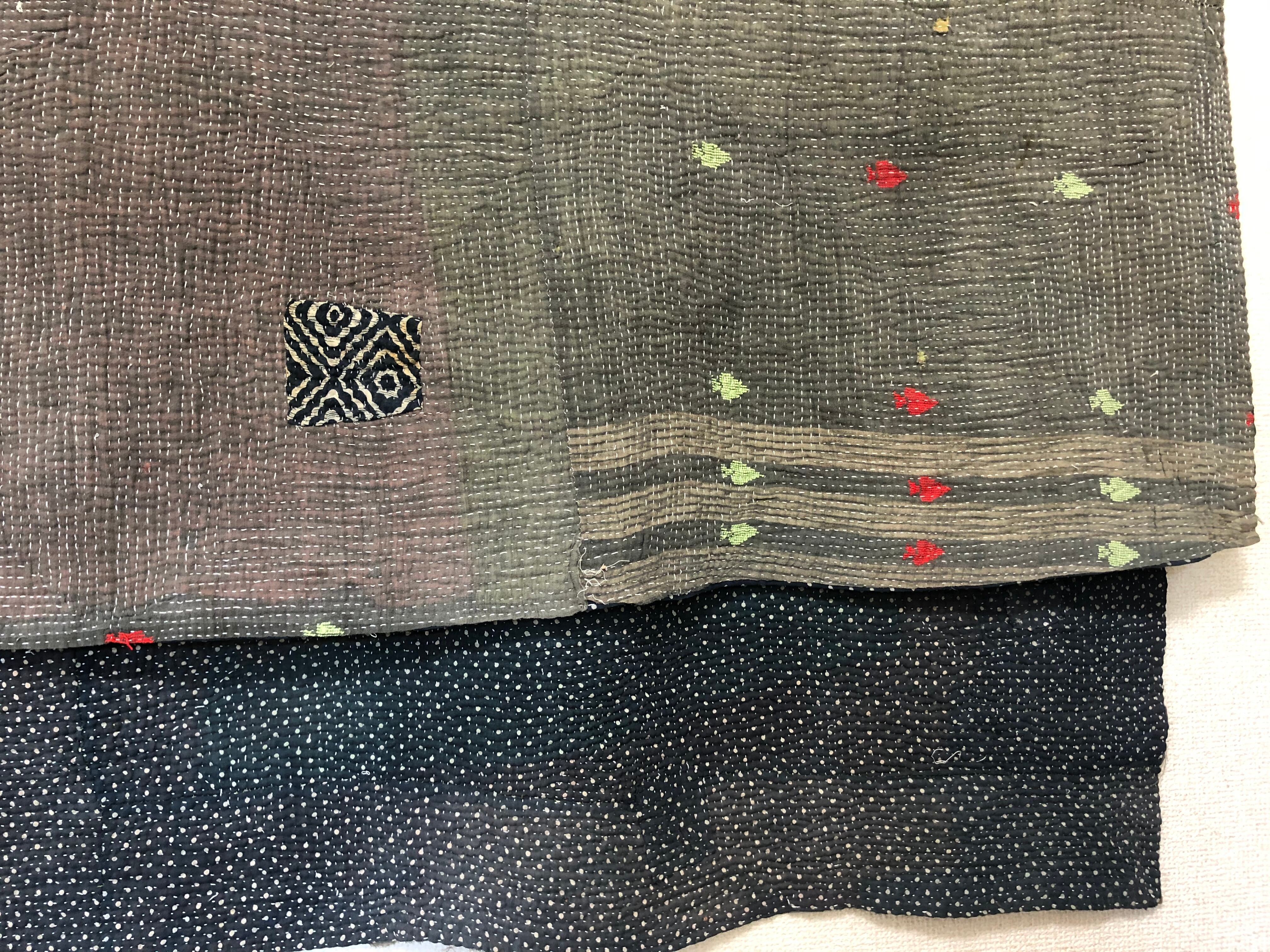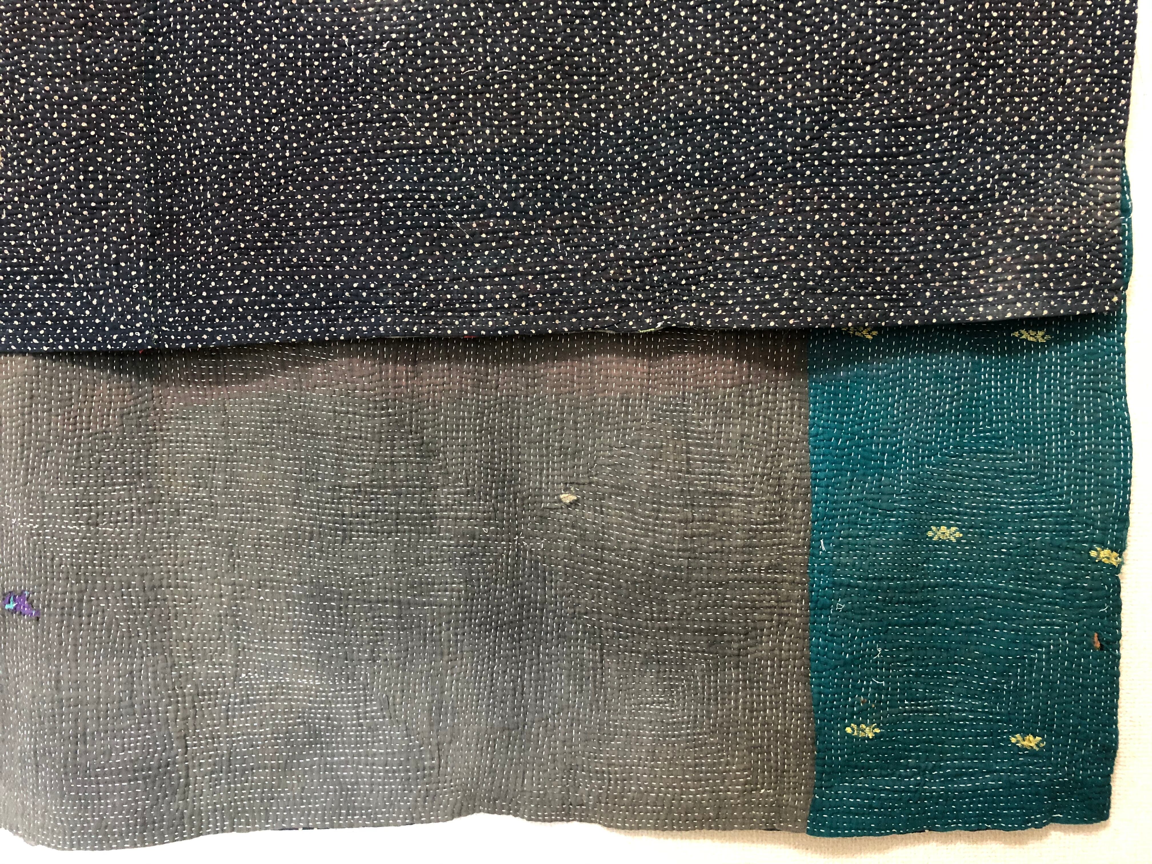 やさしいグレーのラリーキルト カンタ刺繍 エスニック 刺し子 ハンドメイド 古布