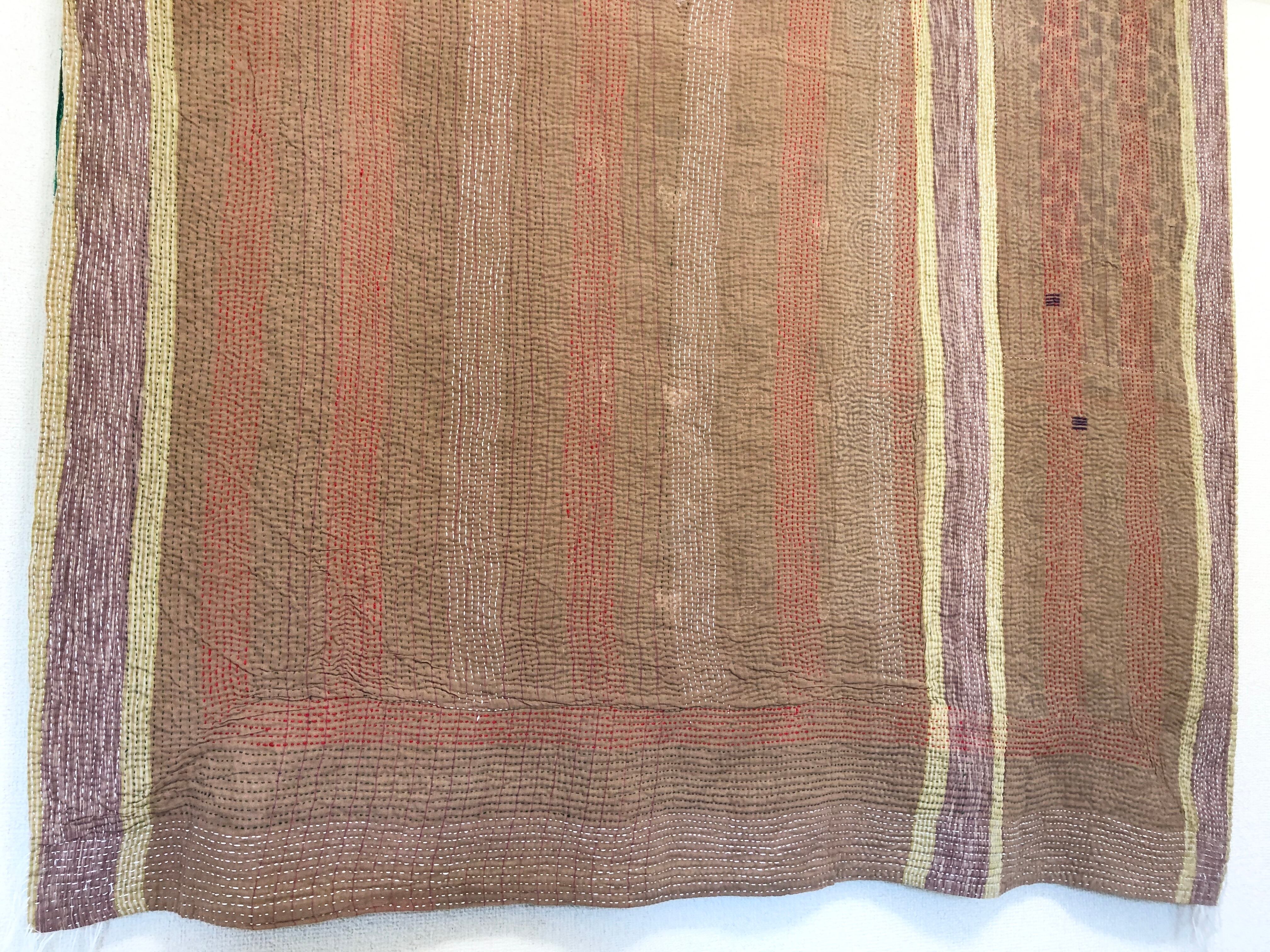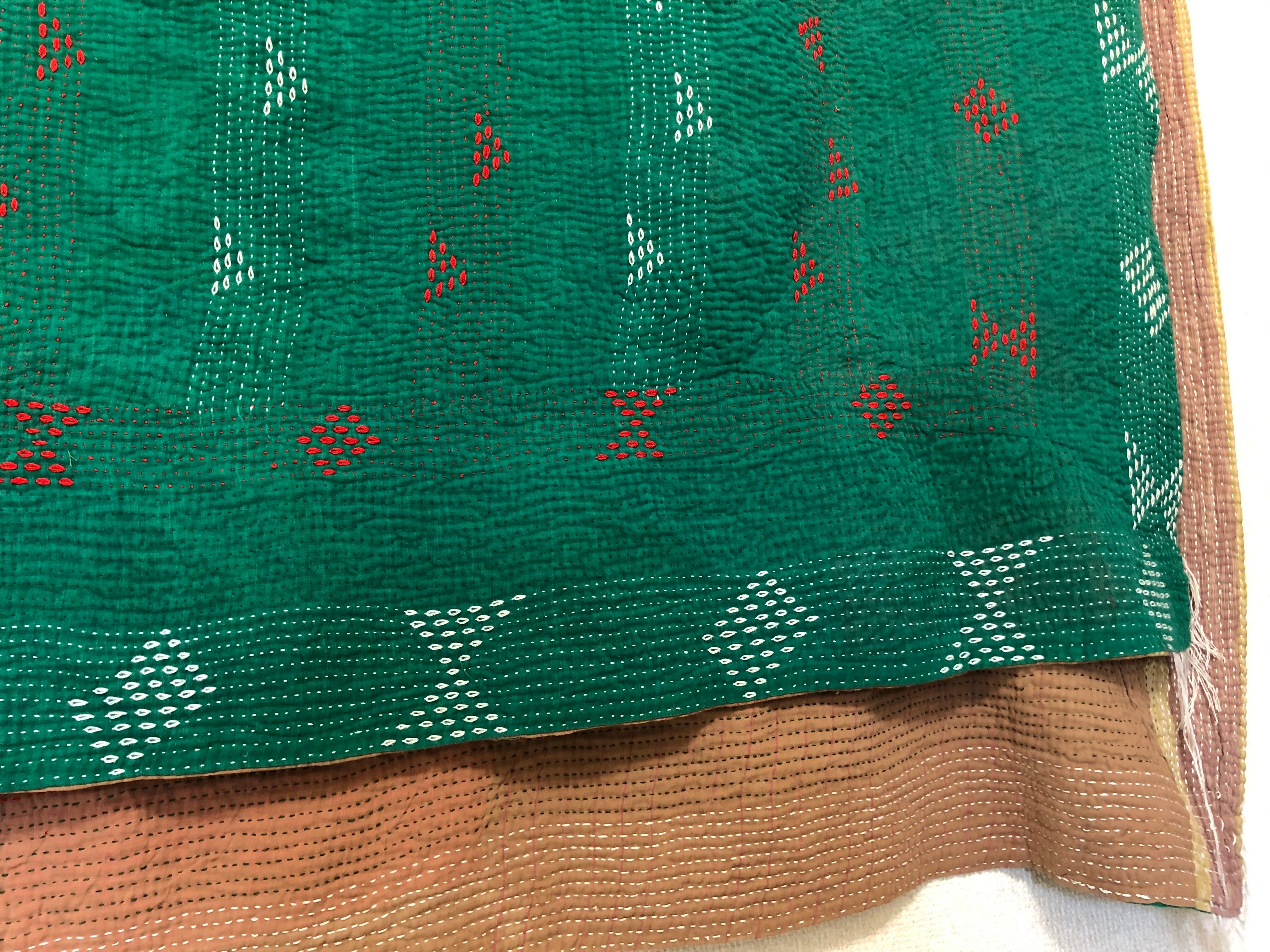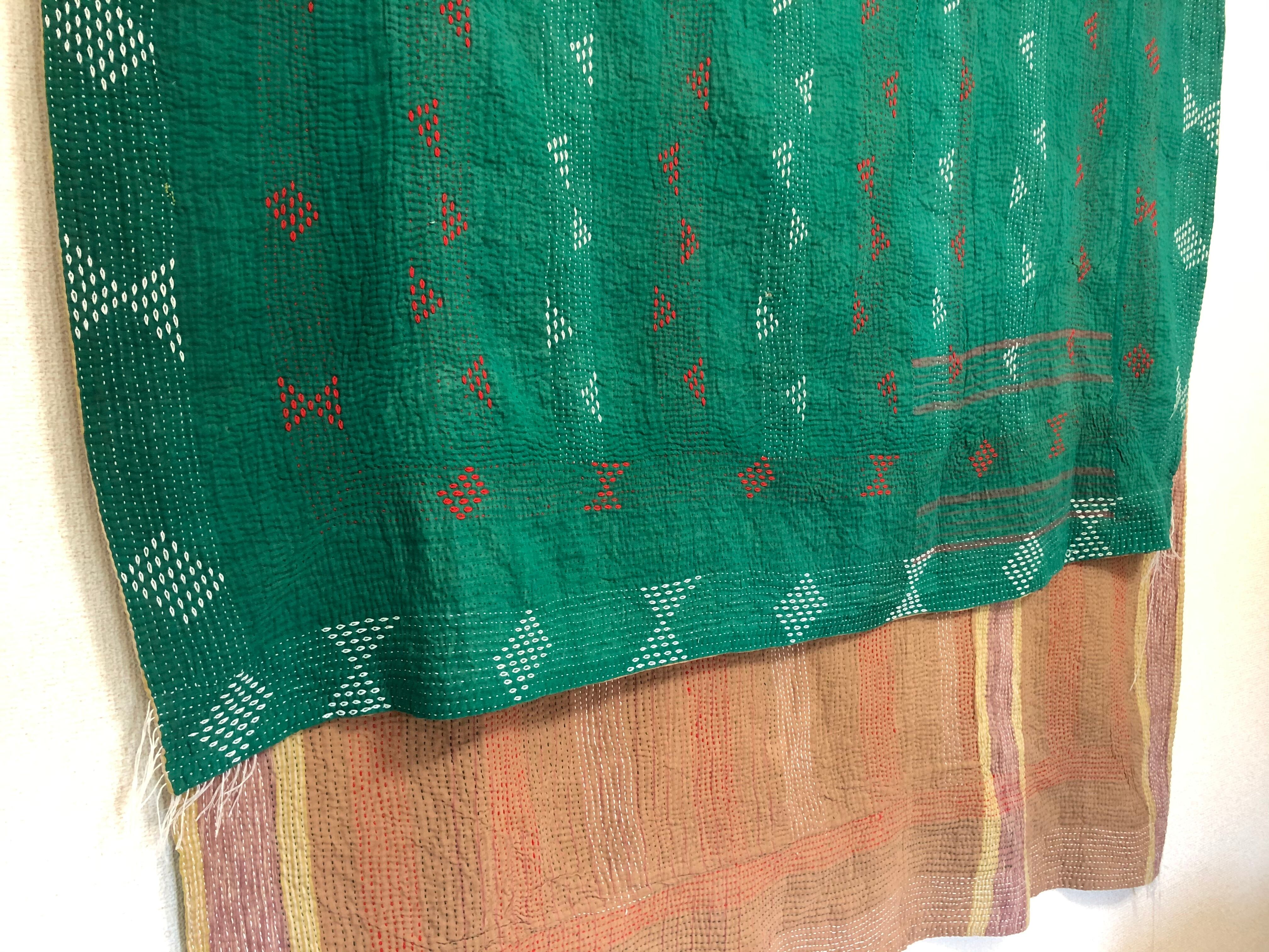 ミドリにアカとシロの刺繍が美しいラリーキルト カンタ 刺し子 エスニック 古布