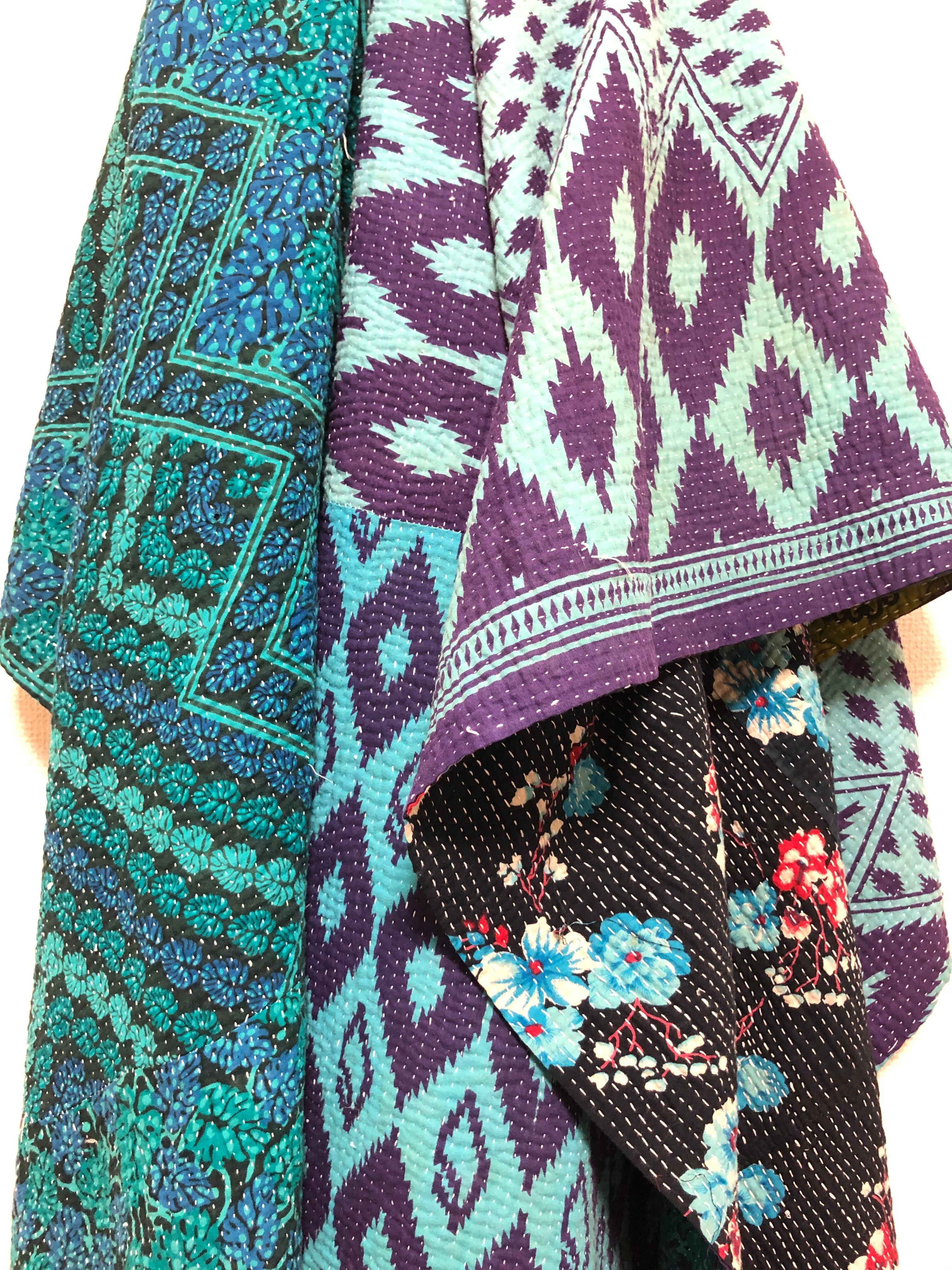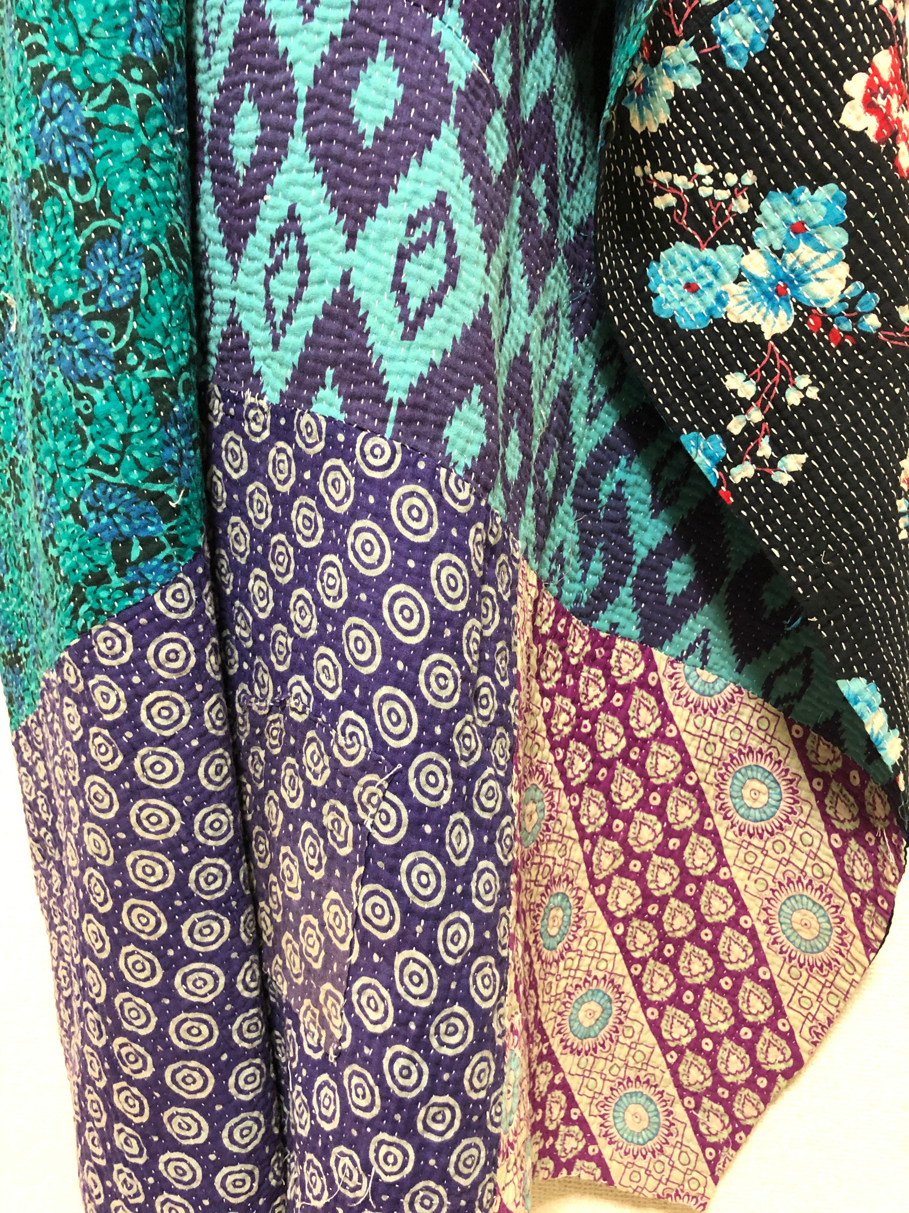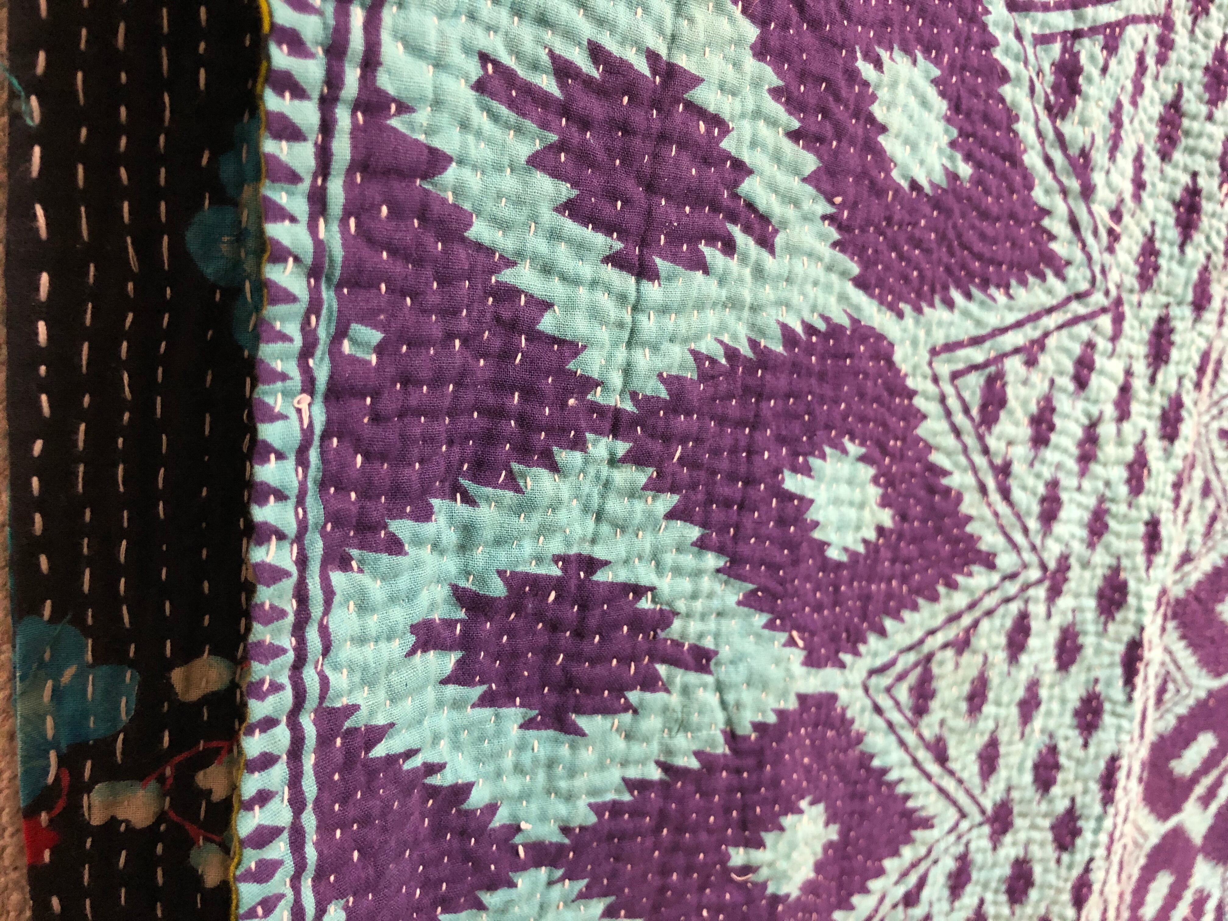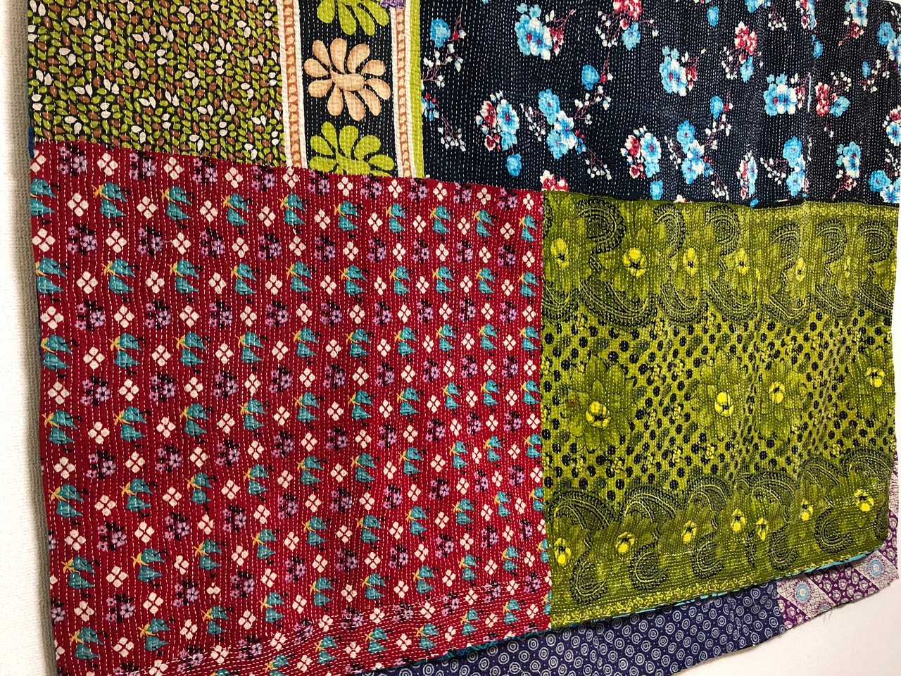 表裏楽しめるラリーキルト カンタ刺繍 刺し子 エスニック ハンドメイド 花柄
