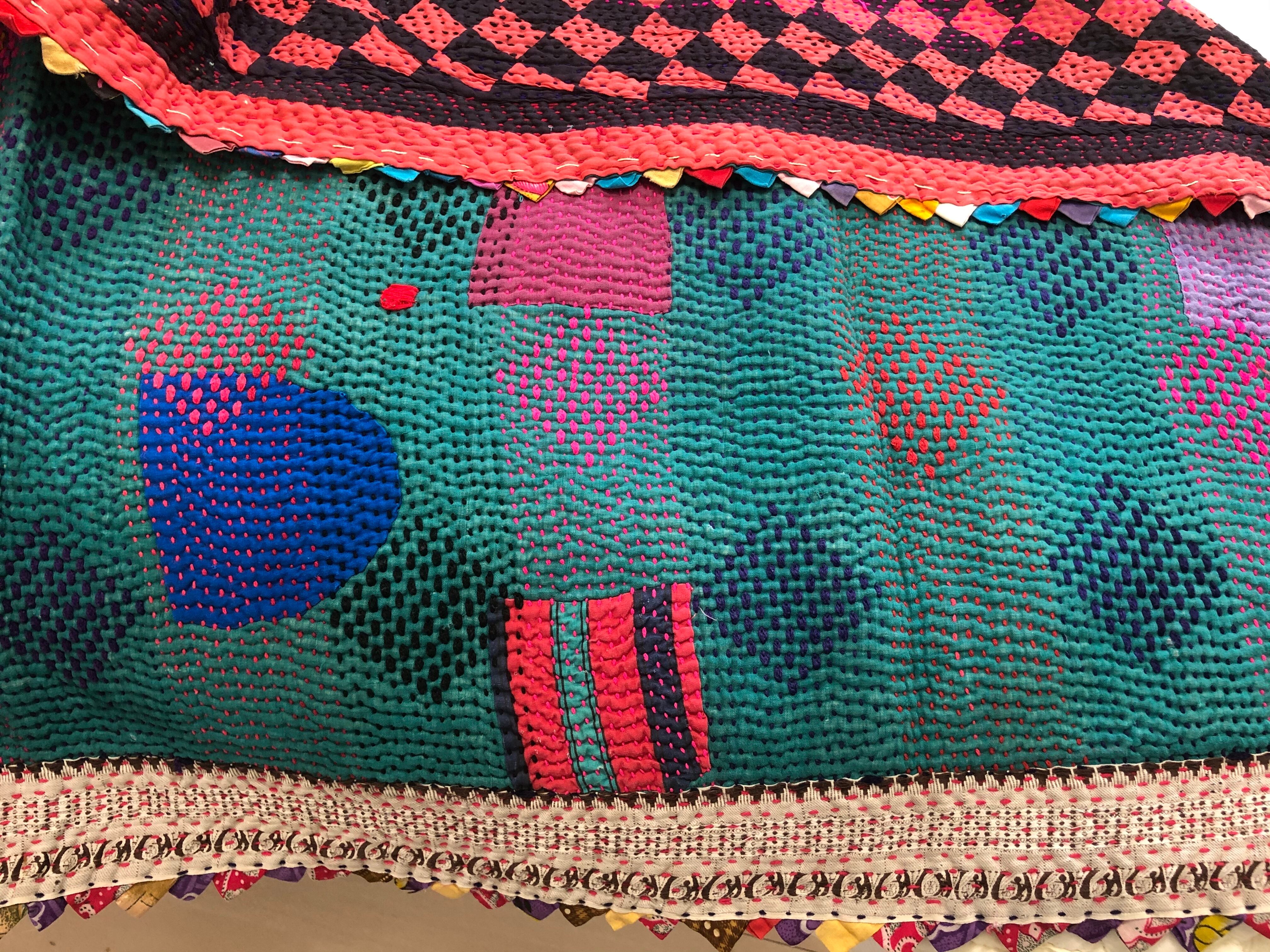 ラグにしたいラリーキルト カンタ刺繍 刺し子 エスニック ハンドメイド パッチワーク 当て布