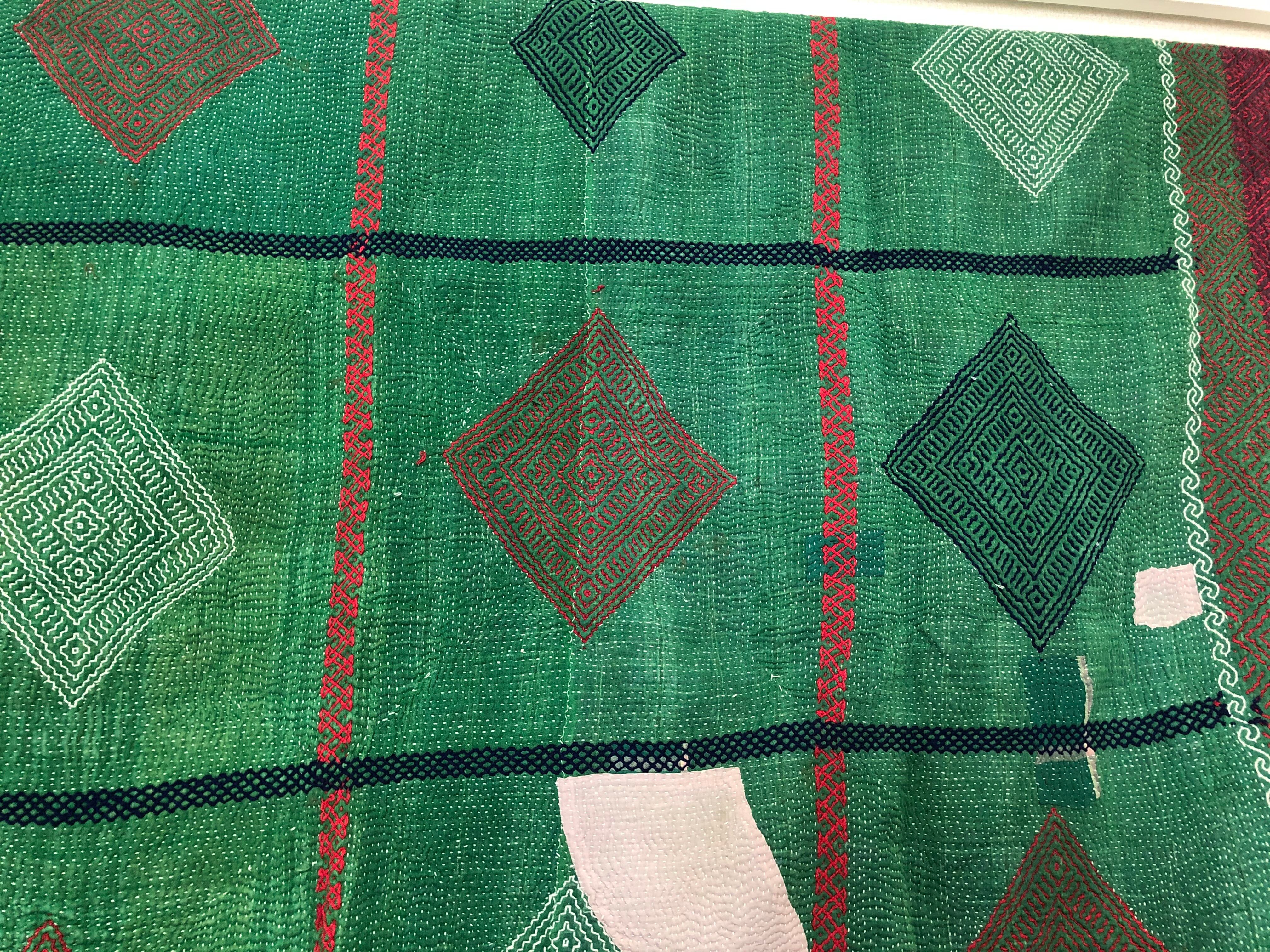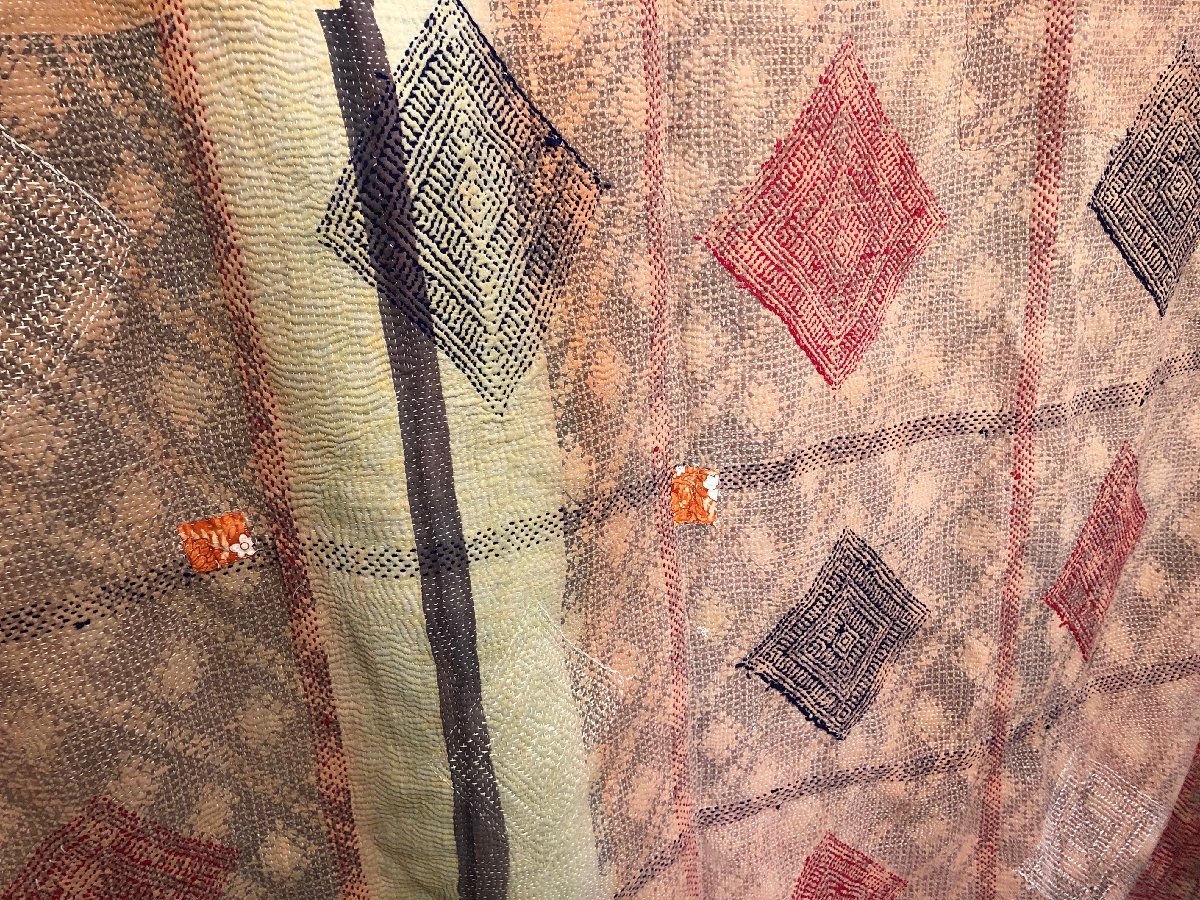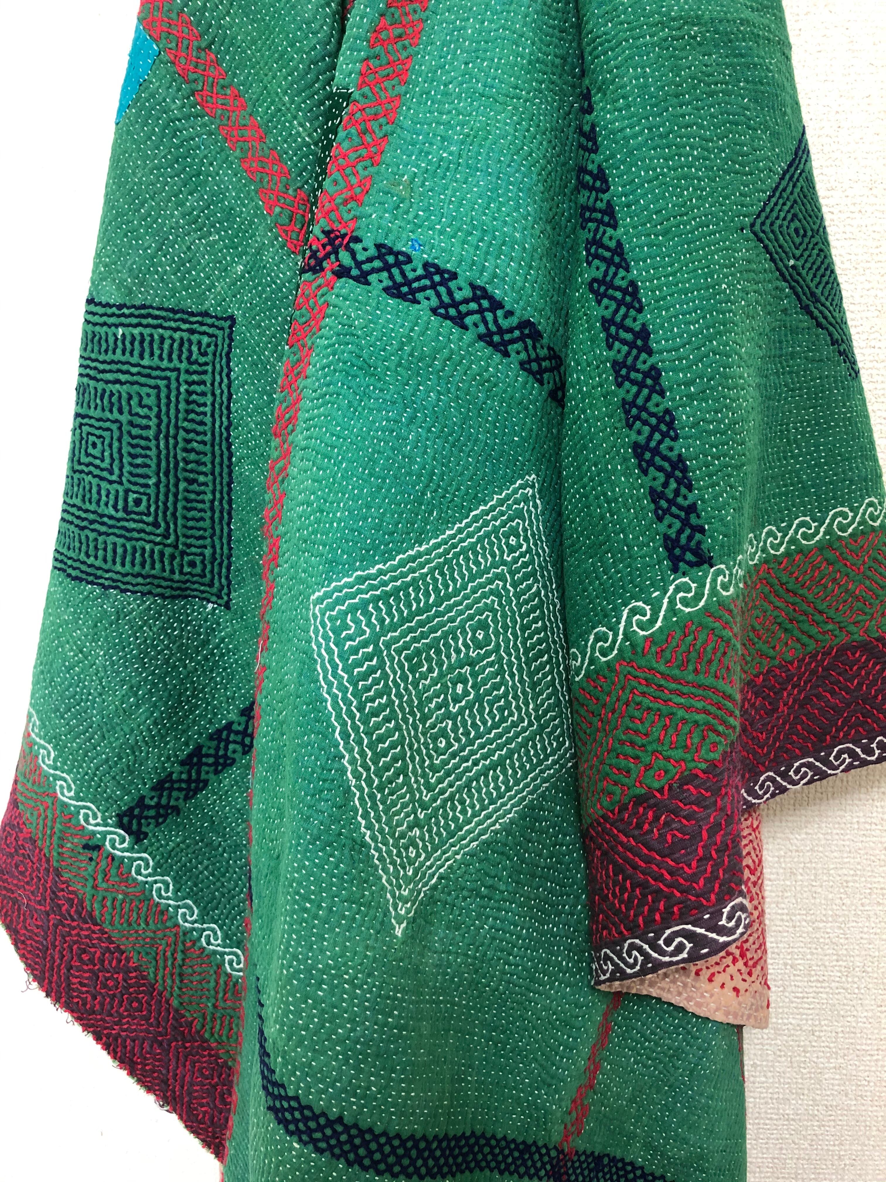 刺繍が素晴らしい小さめラリーキルト カンタ エスニック 刺し子 ハンドメイド リメイク パッチワーク