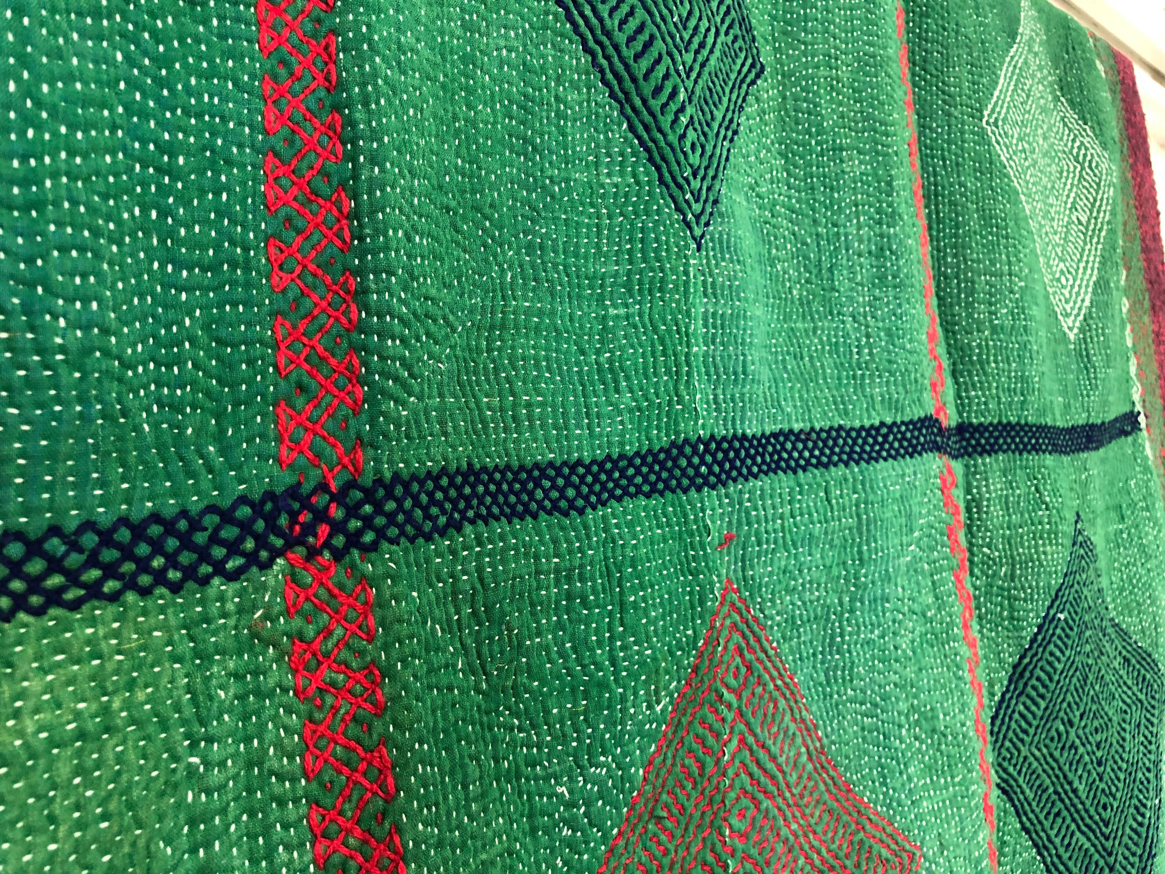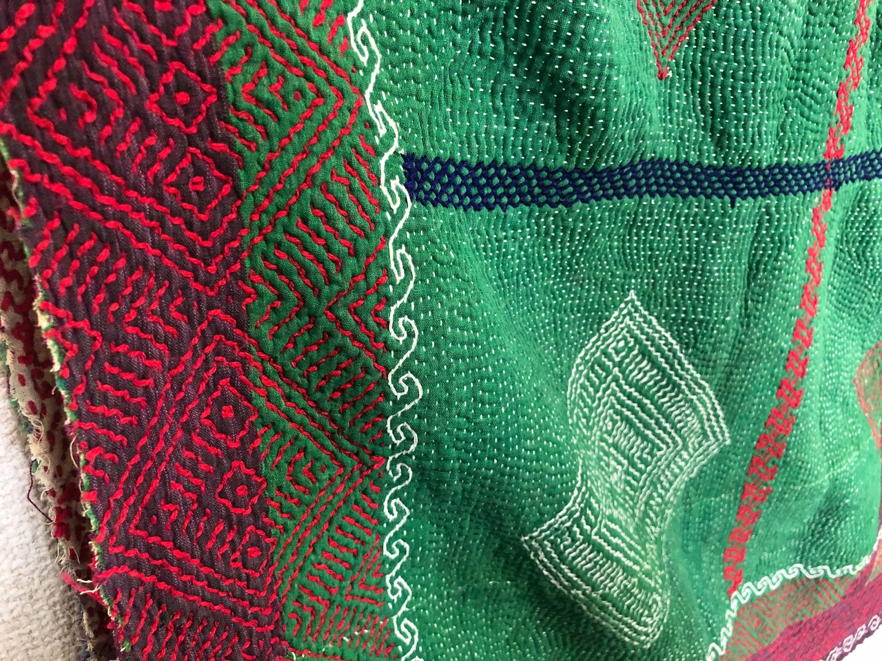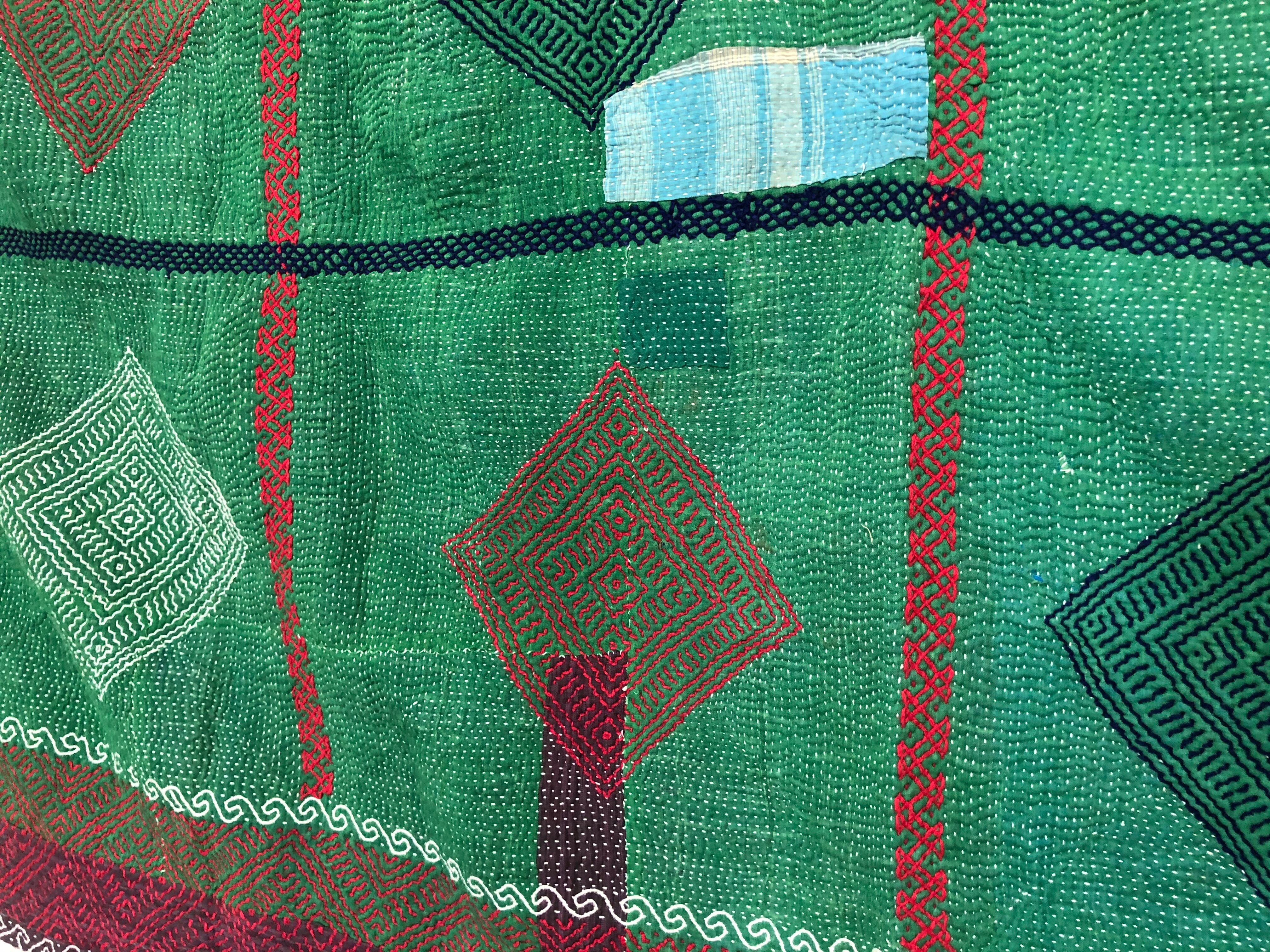 刺繍が素晴らしい小さめラリーキルト カンタ エスニック 刺し子 ハンドメイド リメイク パッチワーク