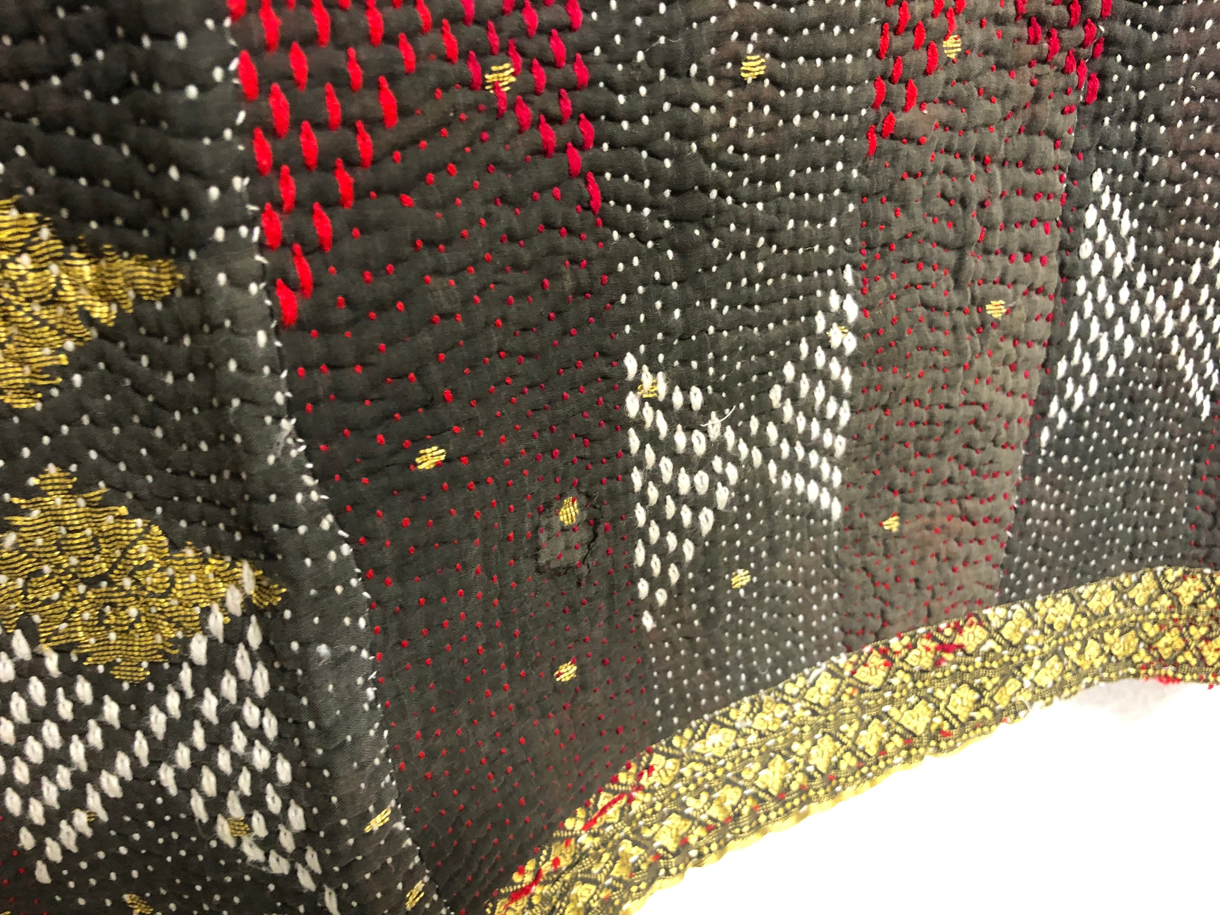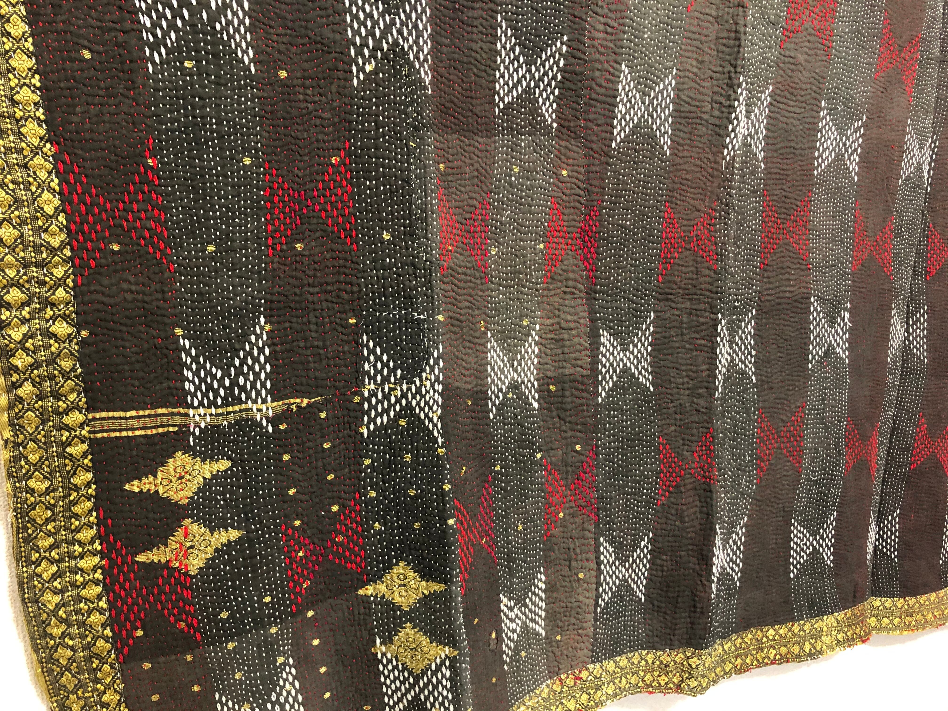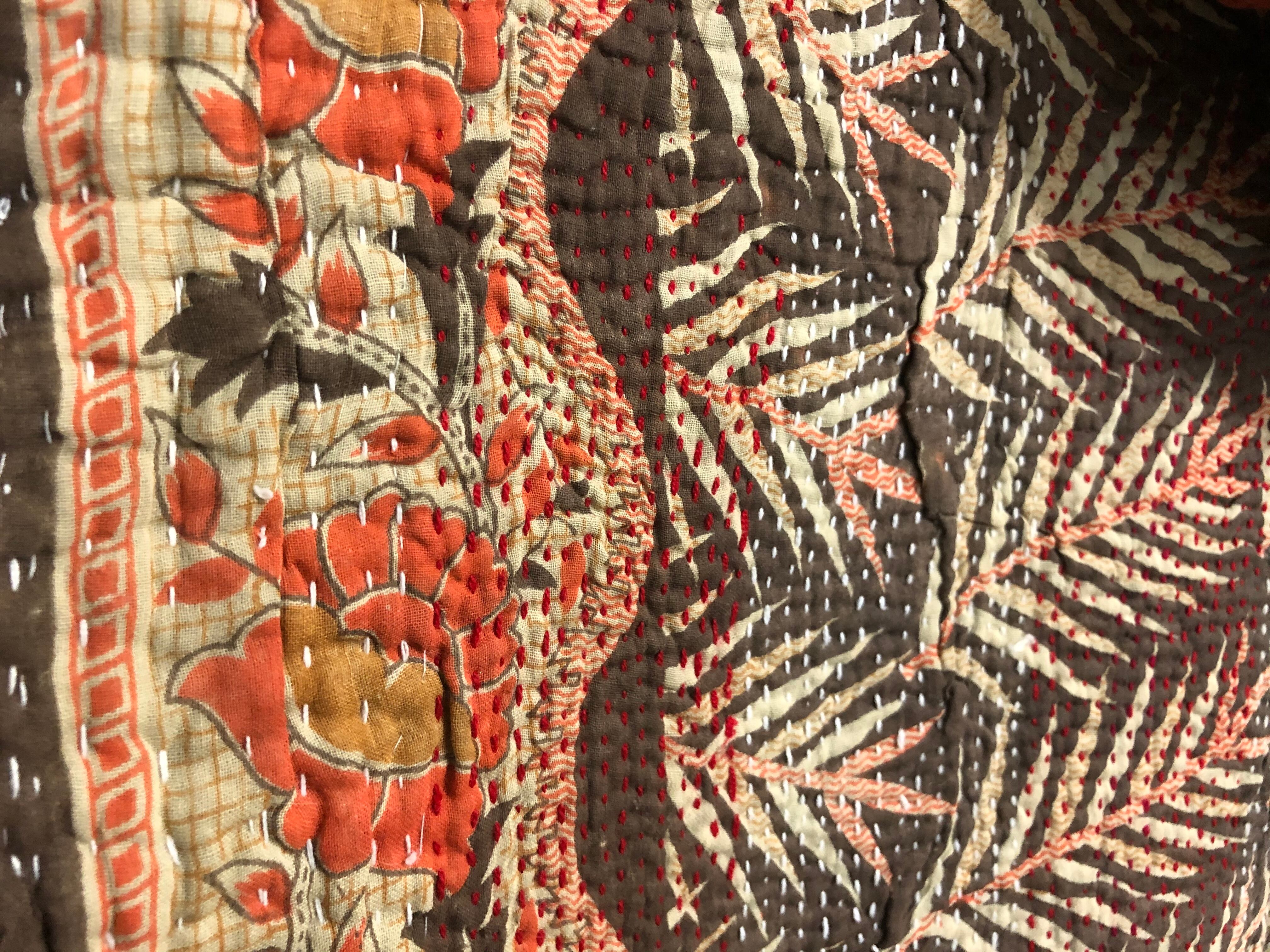 チョコレート色のラリーキルト カンタ刺繍 刺し子 エスニック ハンドメイド パッチワーク リメイク 古布