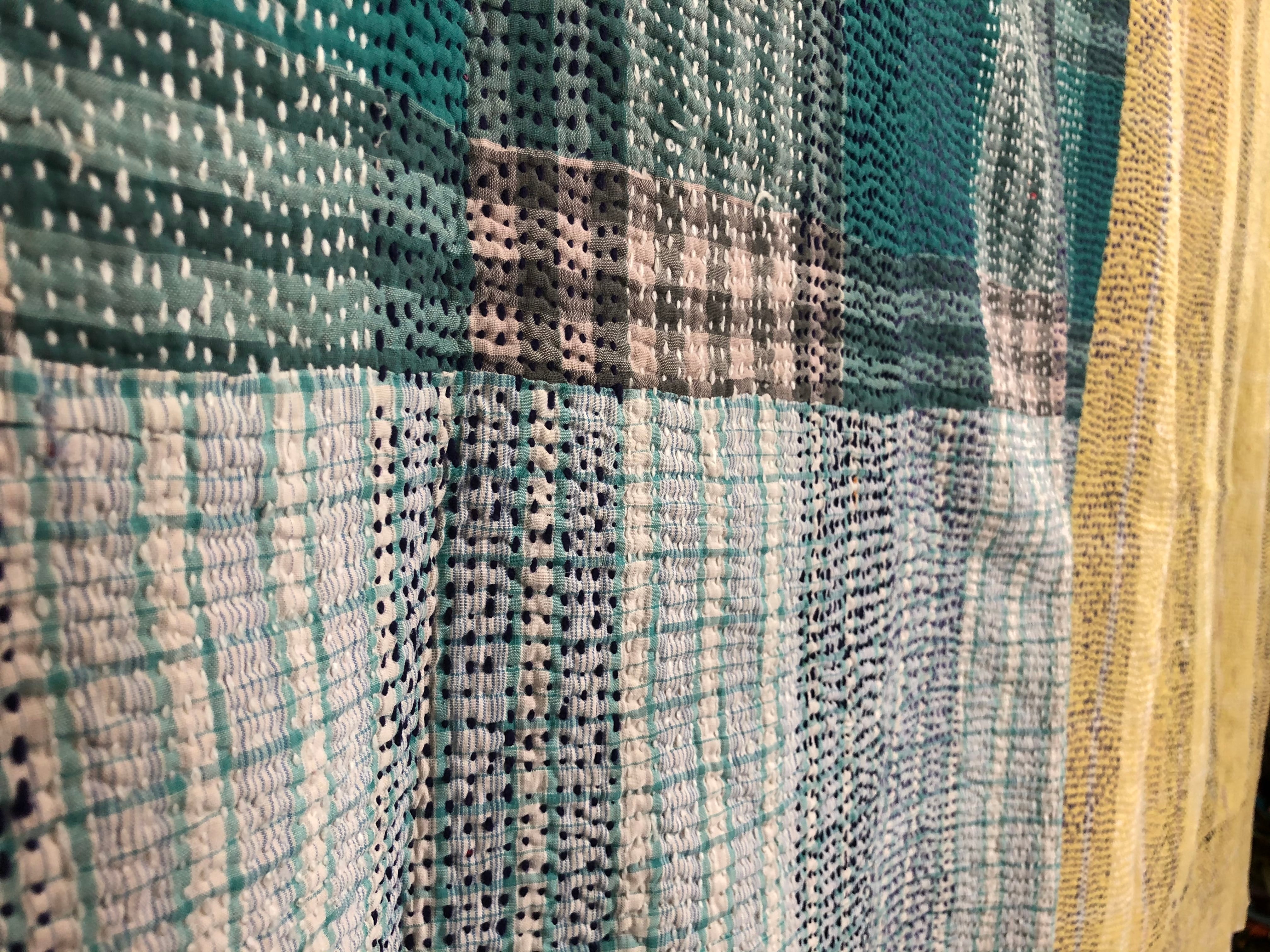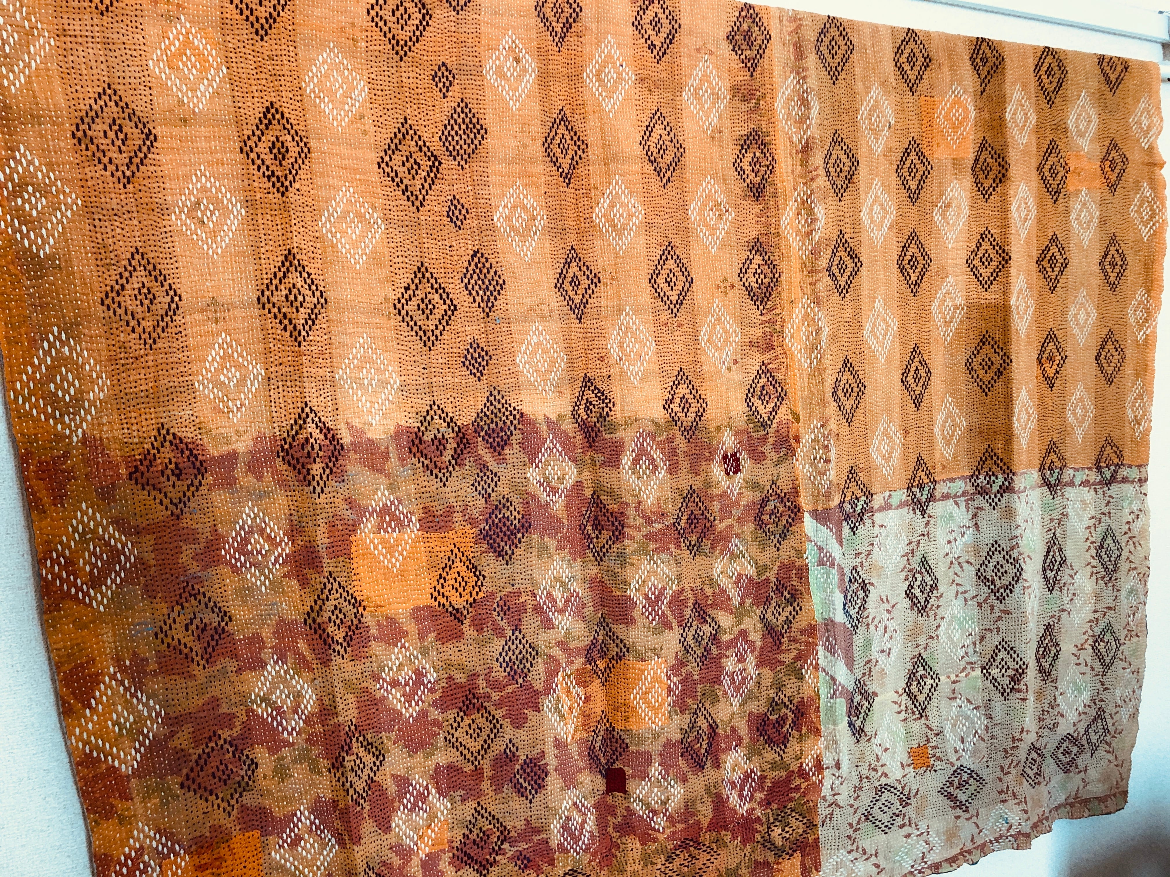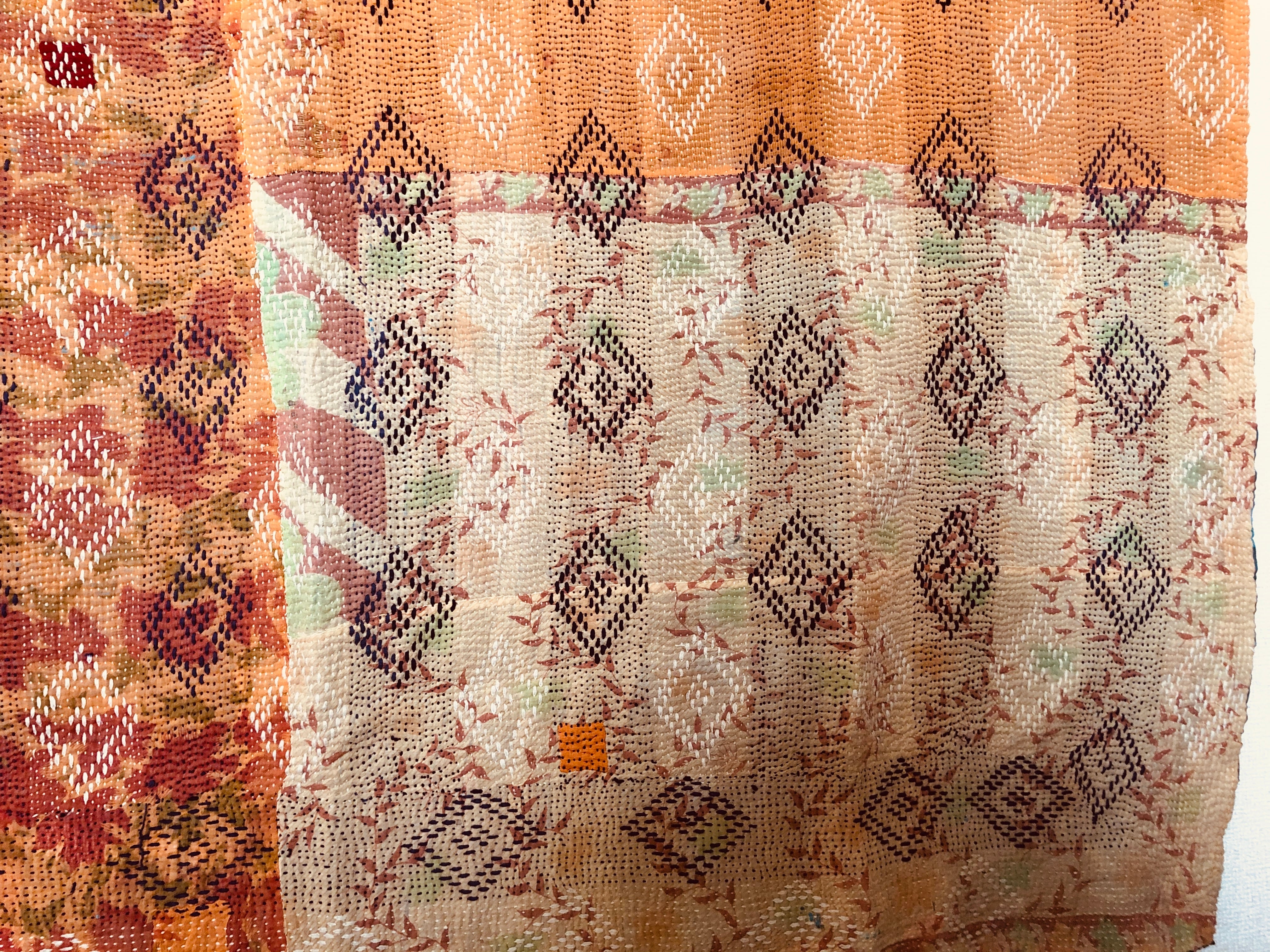 裏のパステルも可愛いオレンジのラリーキルト カンタ刺繍 刺し子 エスニック 古布