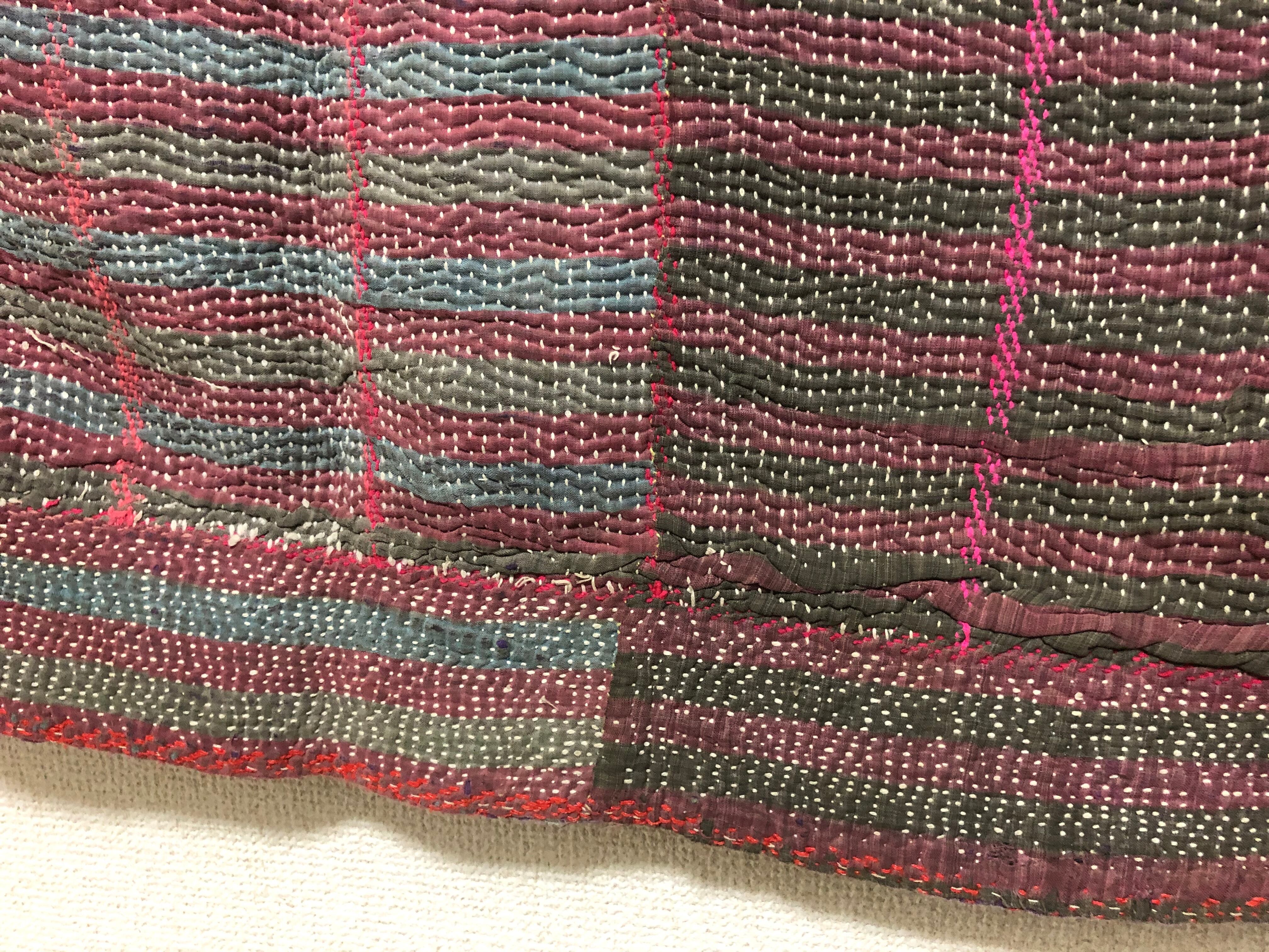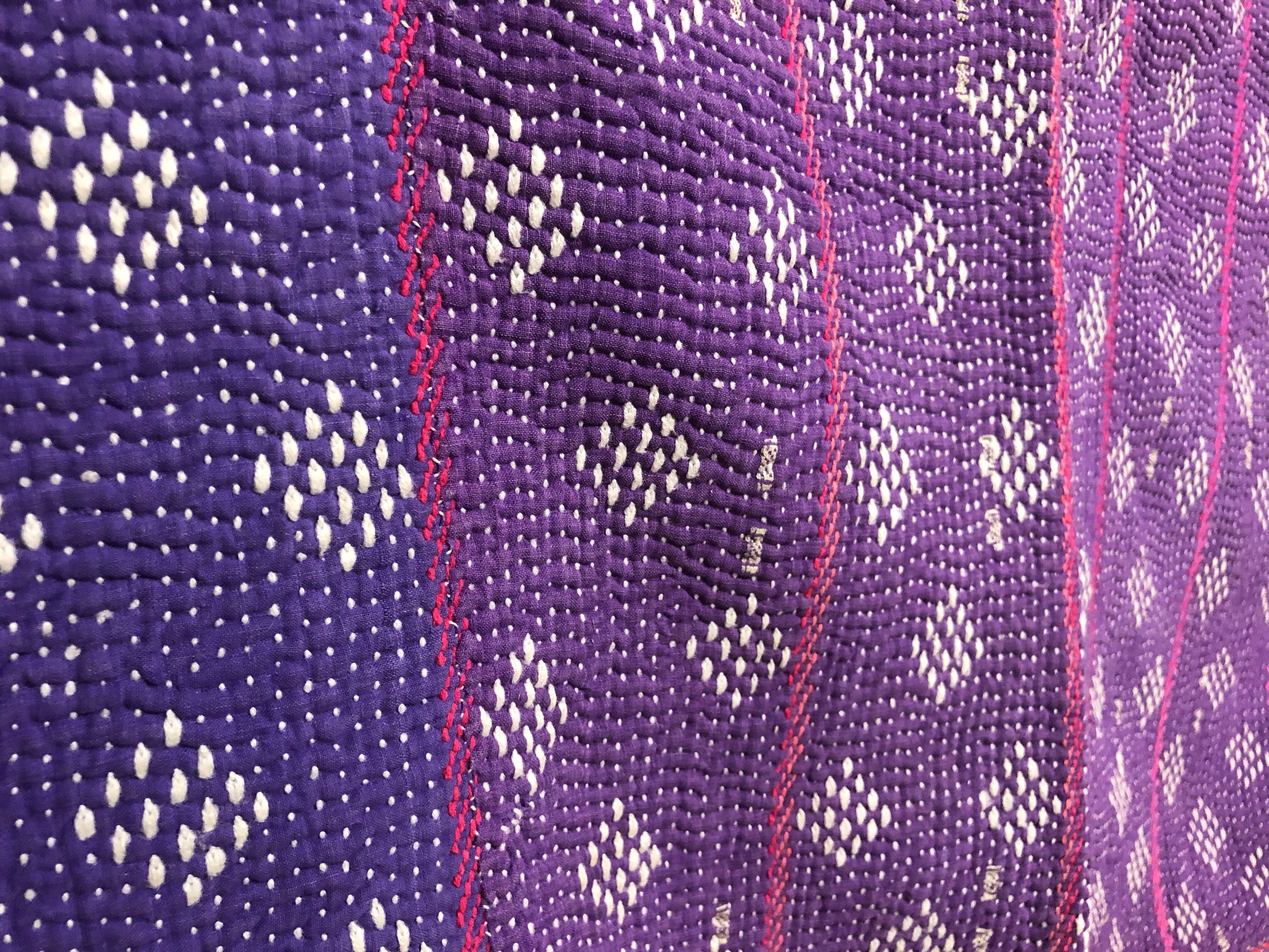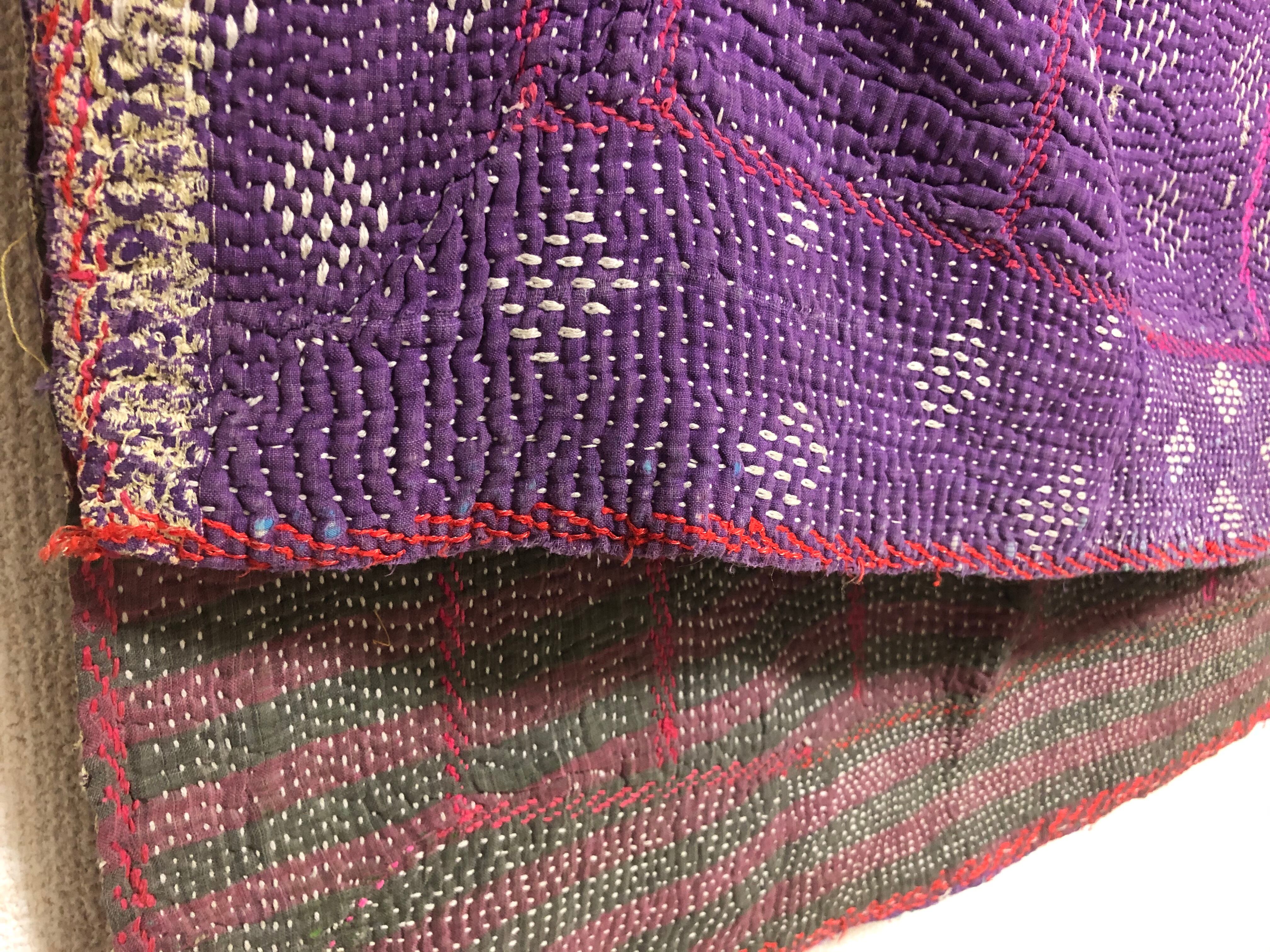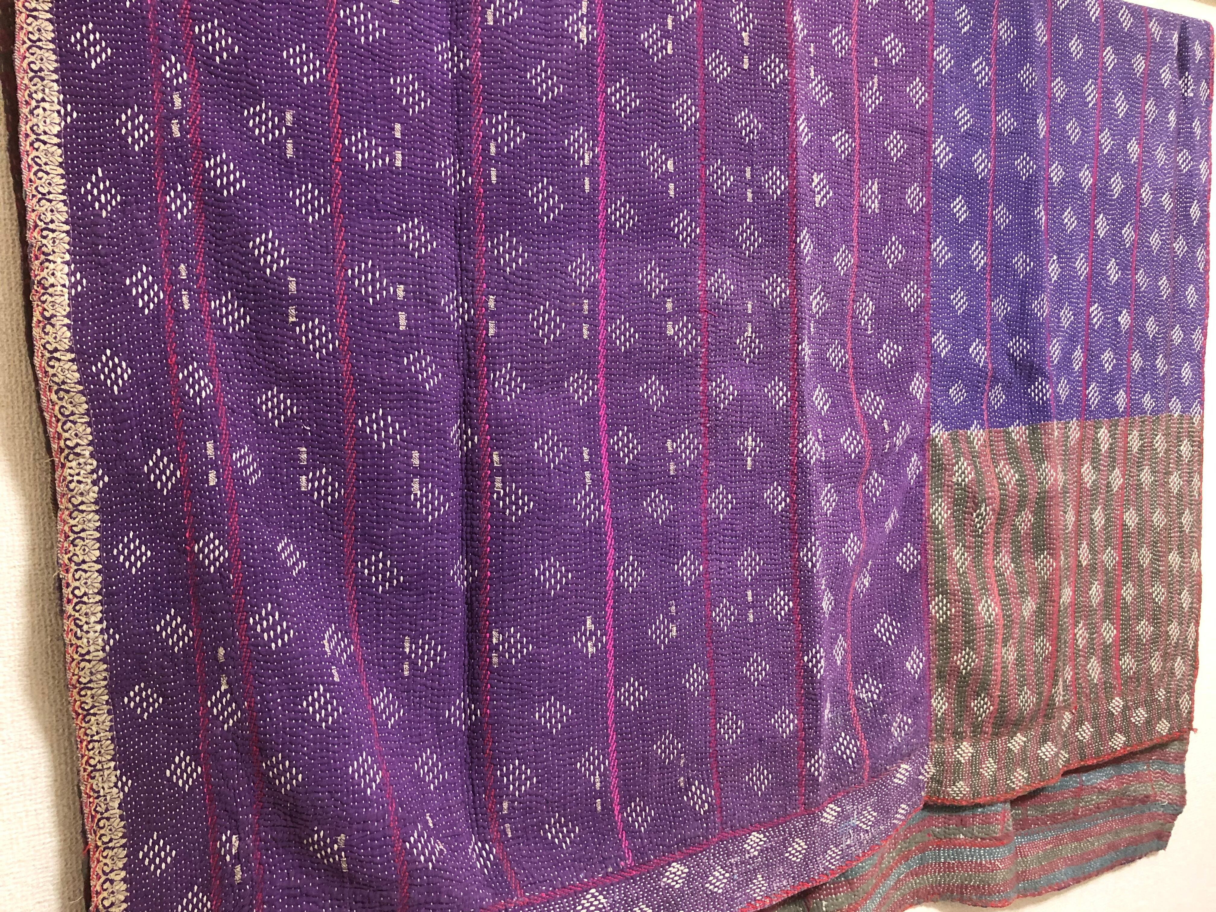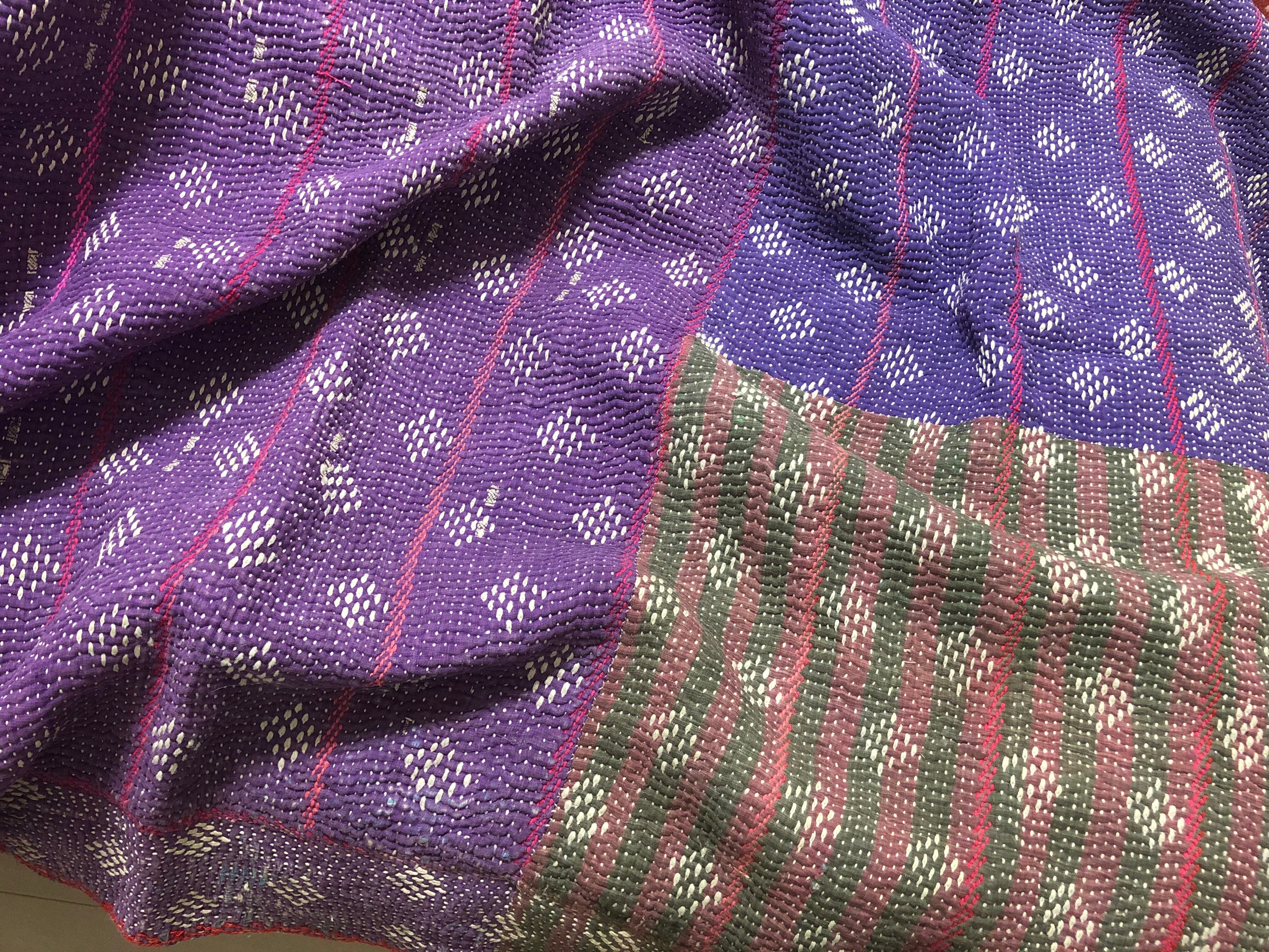柔らかいムラサキのラリーキルト カンタ刺繍 エスニック ハンドメイド 古布