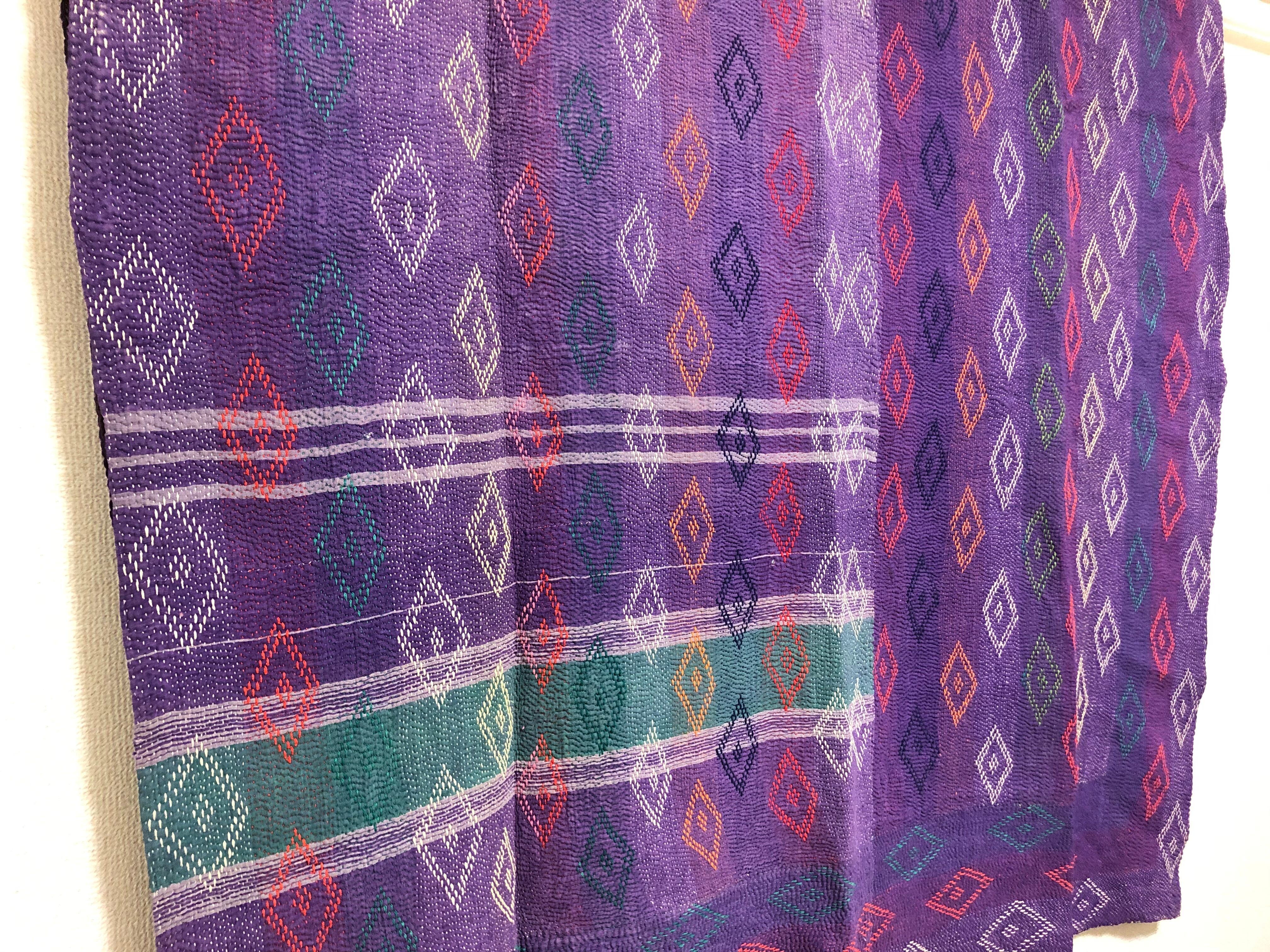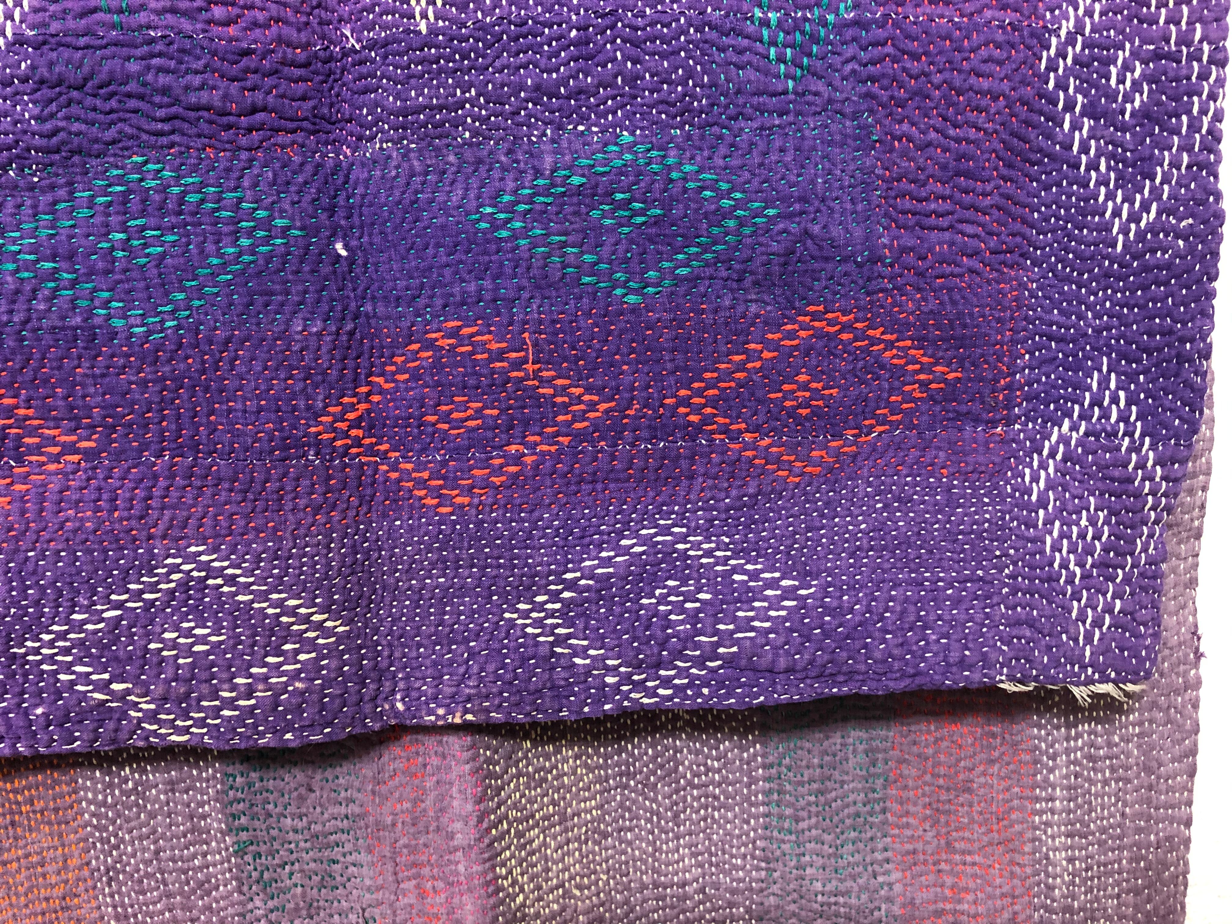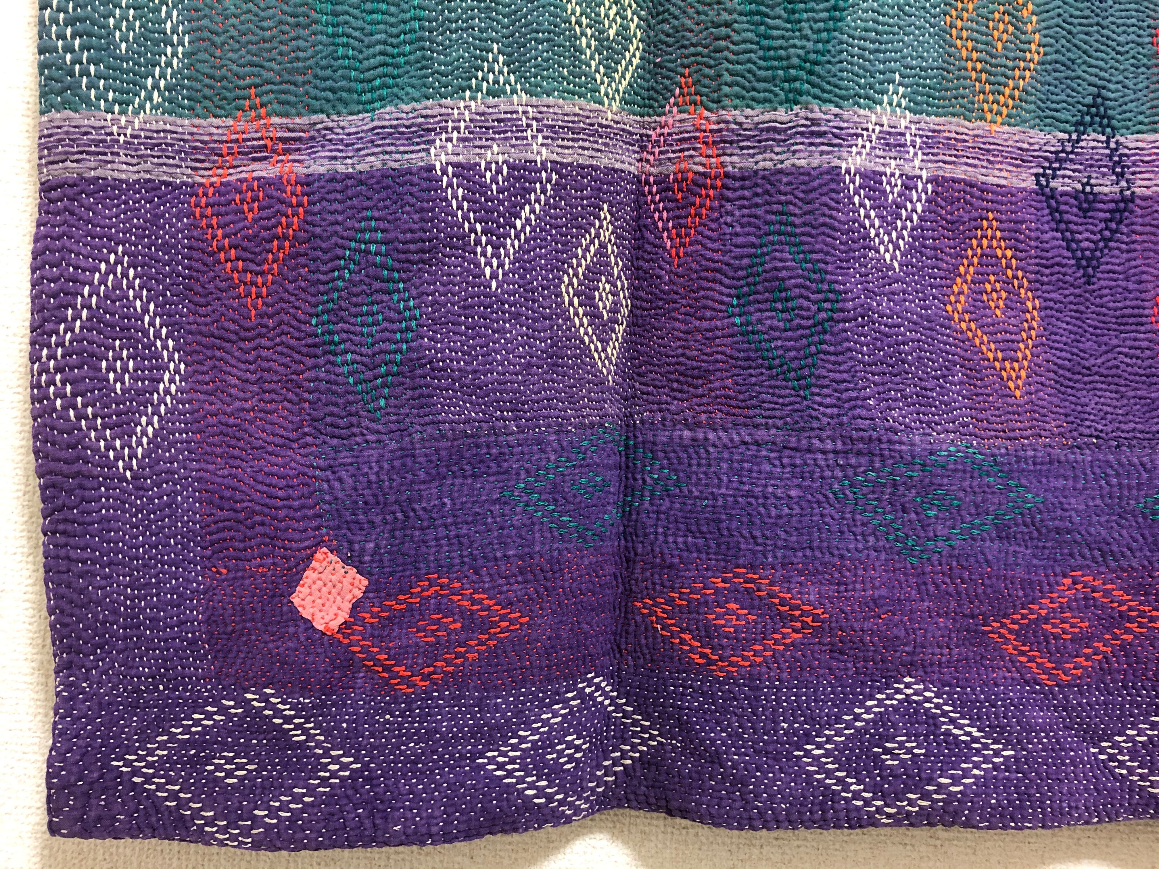 カラフル刺繍のムラサキのラリーキルト カンタ刺繍 刺し子 エスニック ハンドメイド ラグ