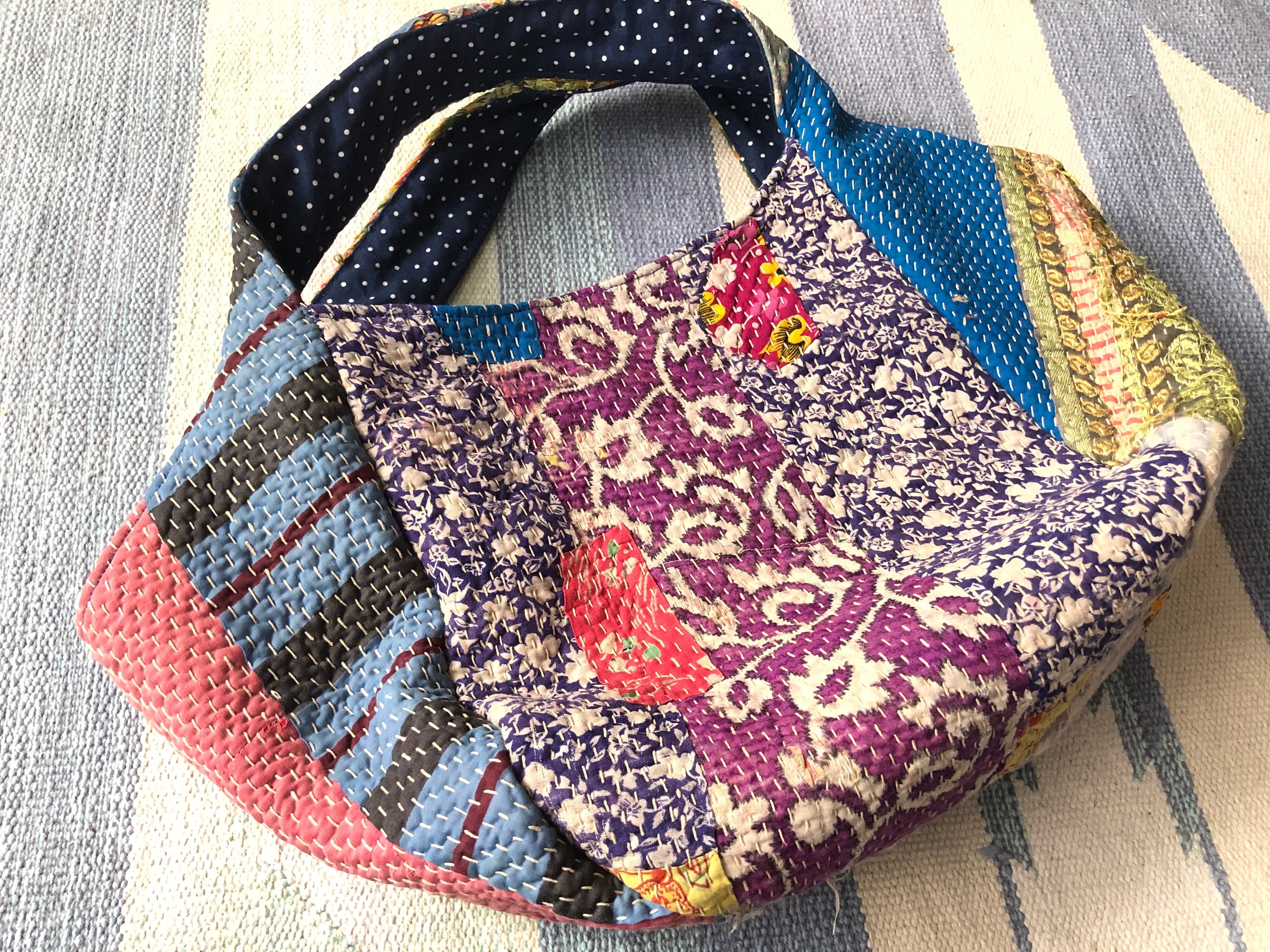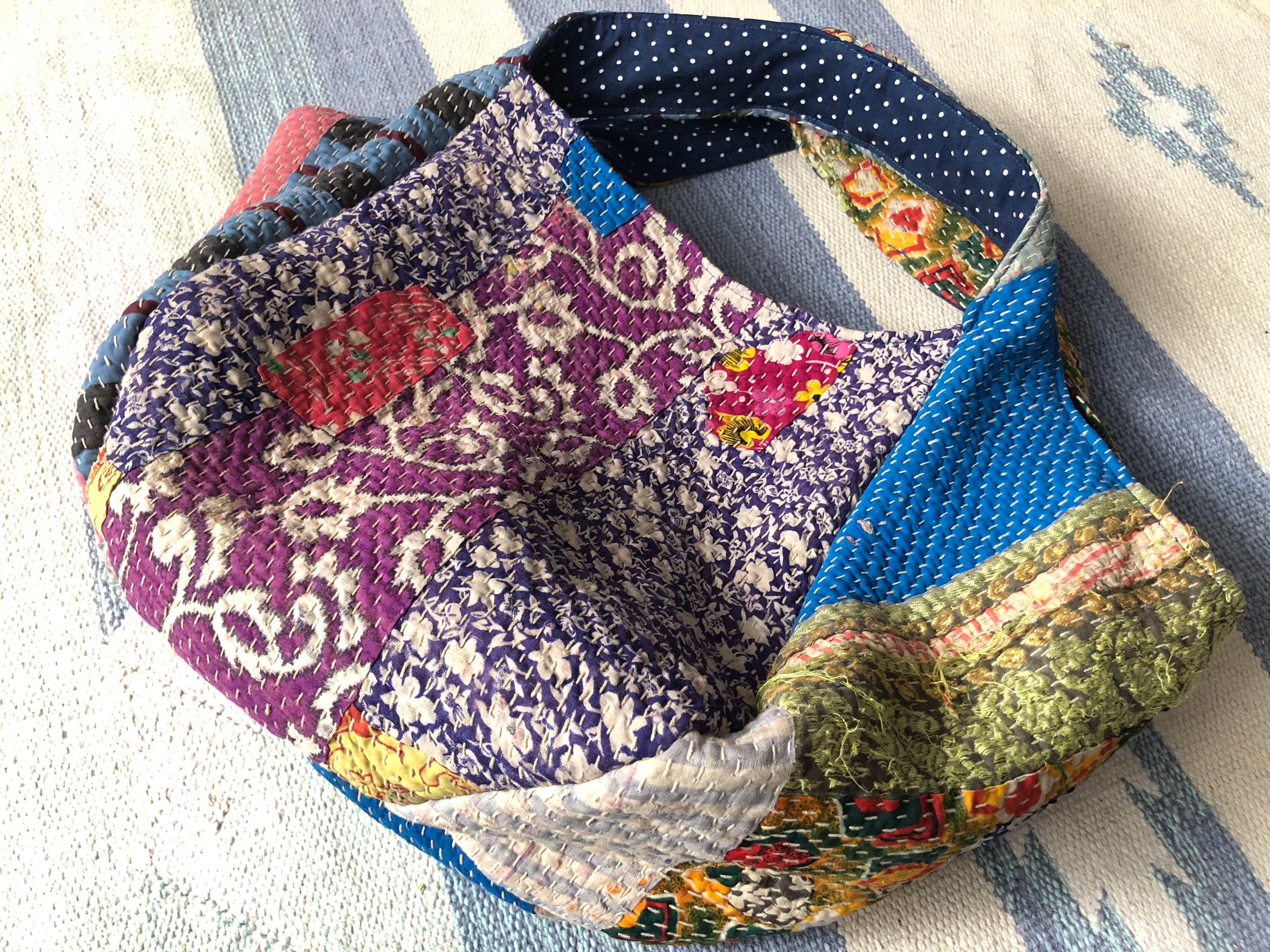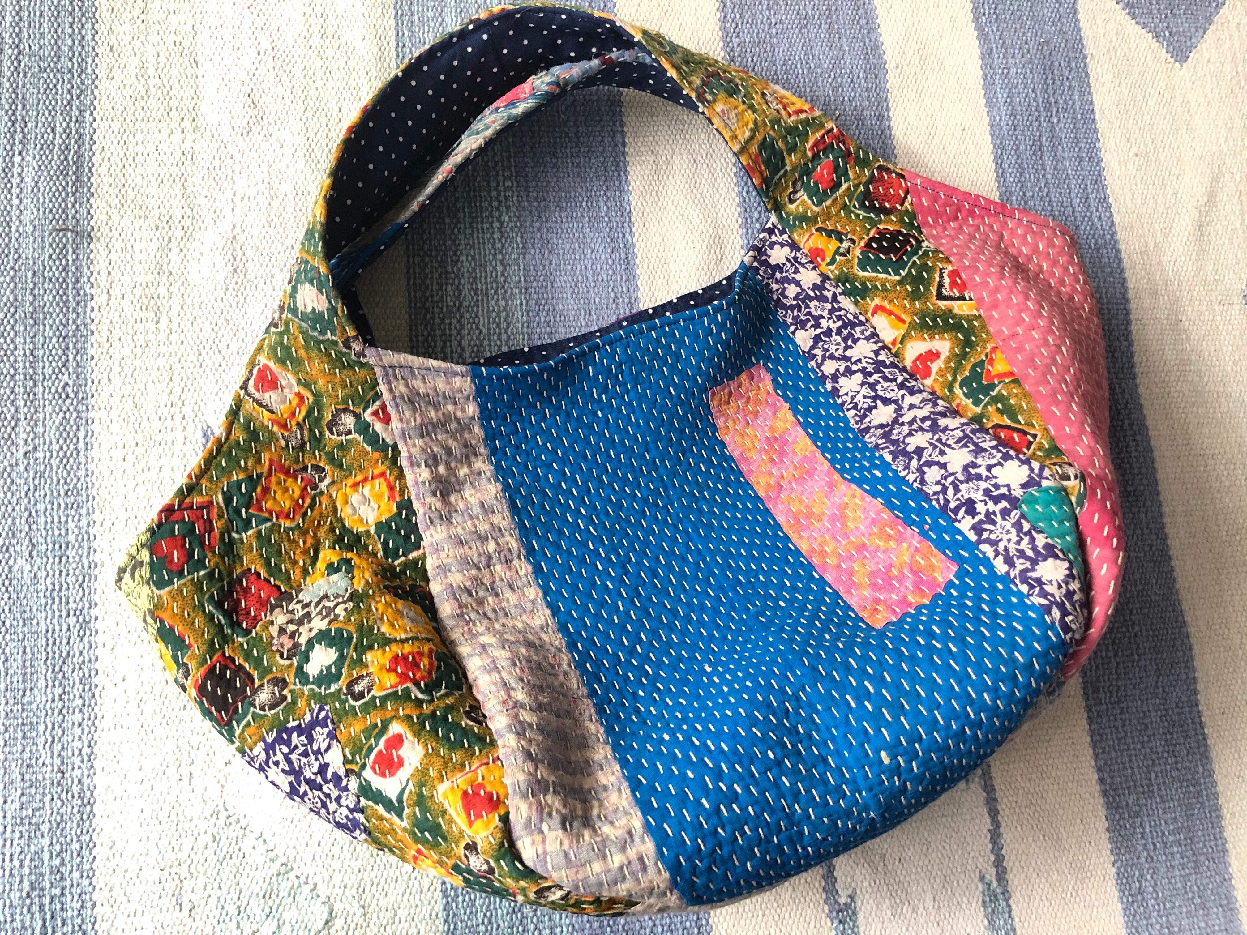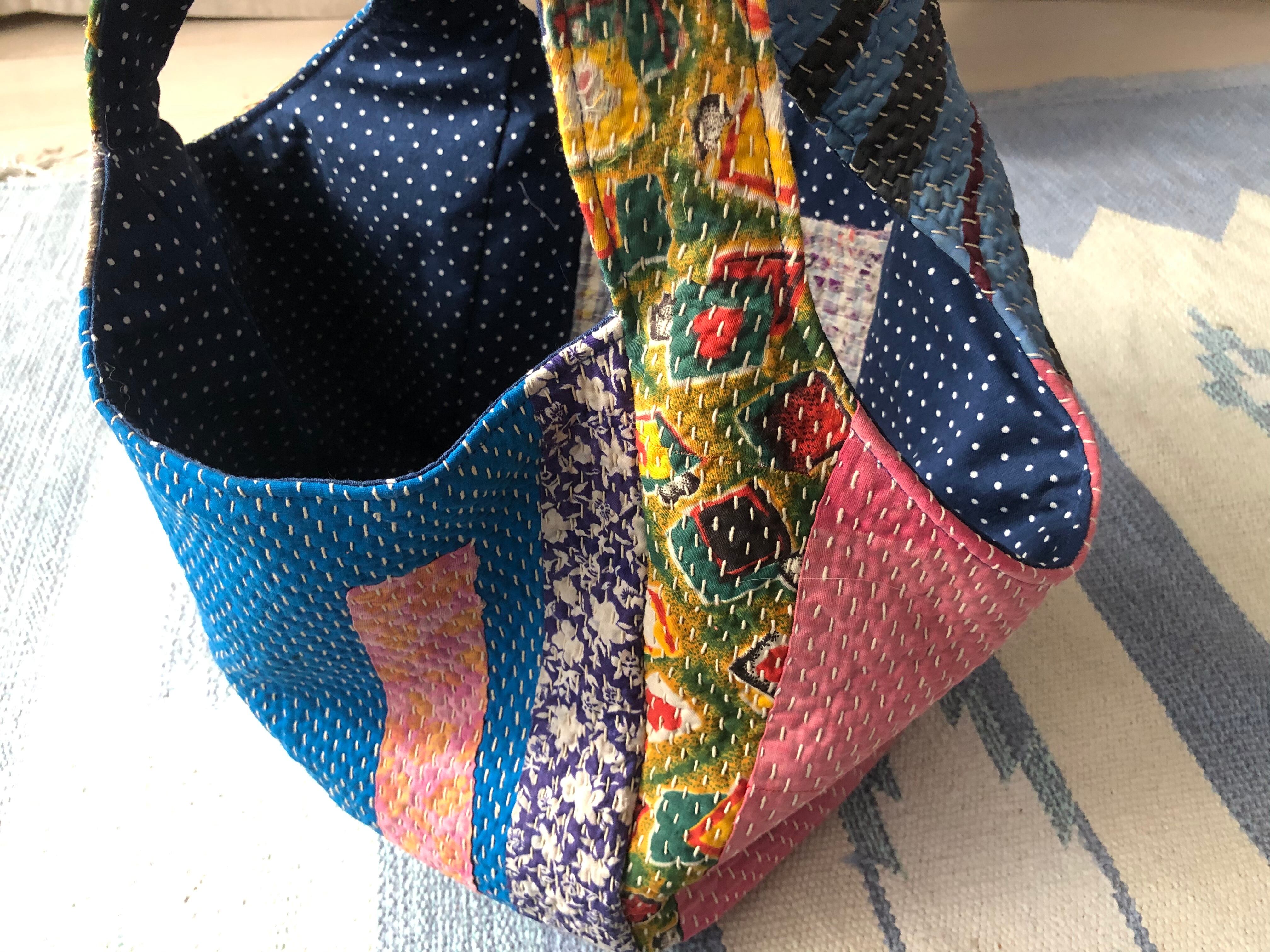 ラリーキルトのトートバッグ ハンドメイド 刺し子 エスニック カンタ刺繍 古布 リメイク