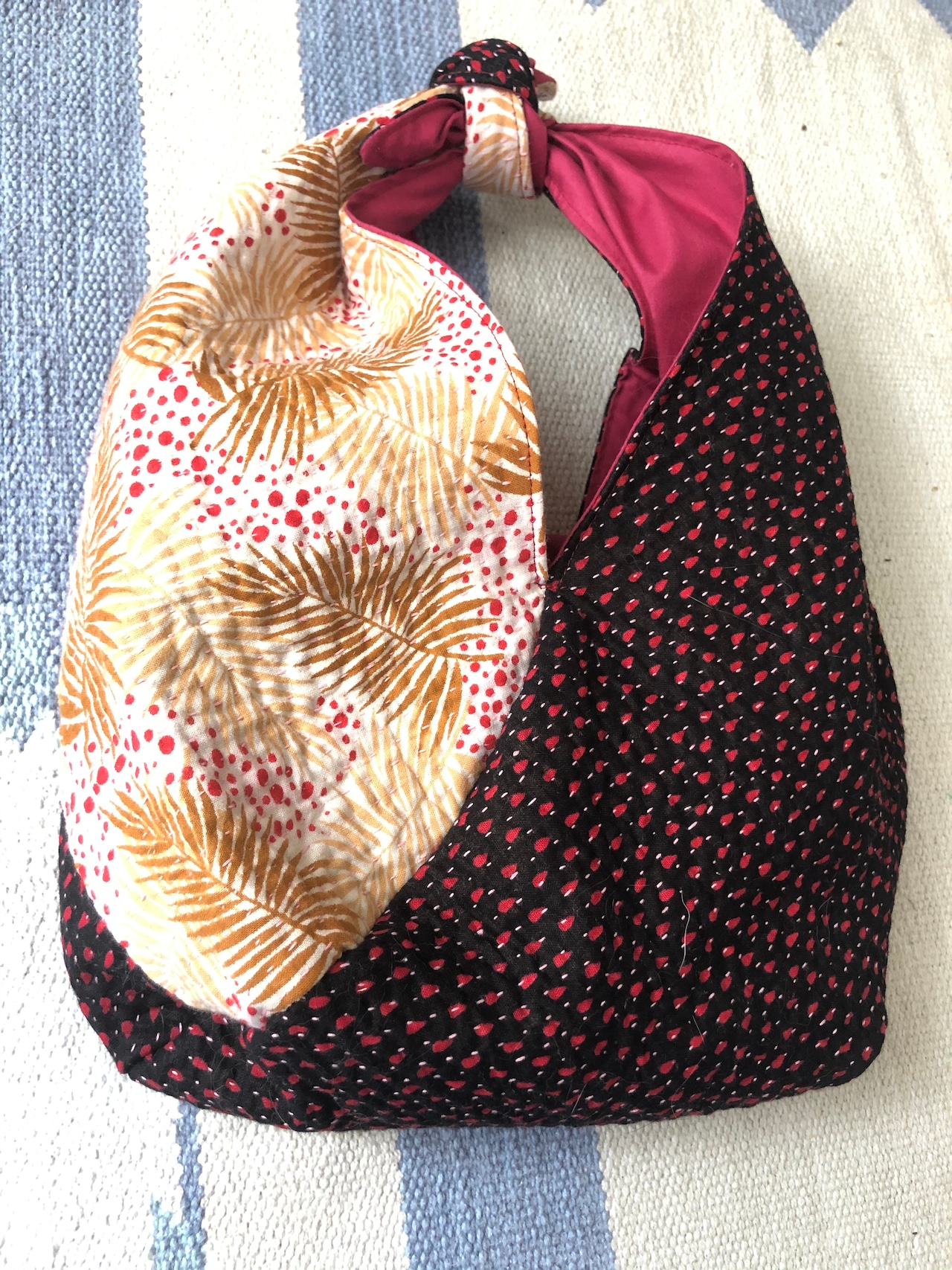 ラリーキルトのおさんぽバッグ あずま袋型 トートバッグ ハンドメイド エスニック 刺し子 カンタ刺繍