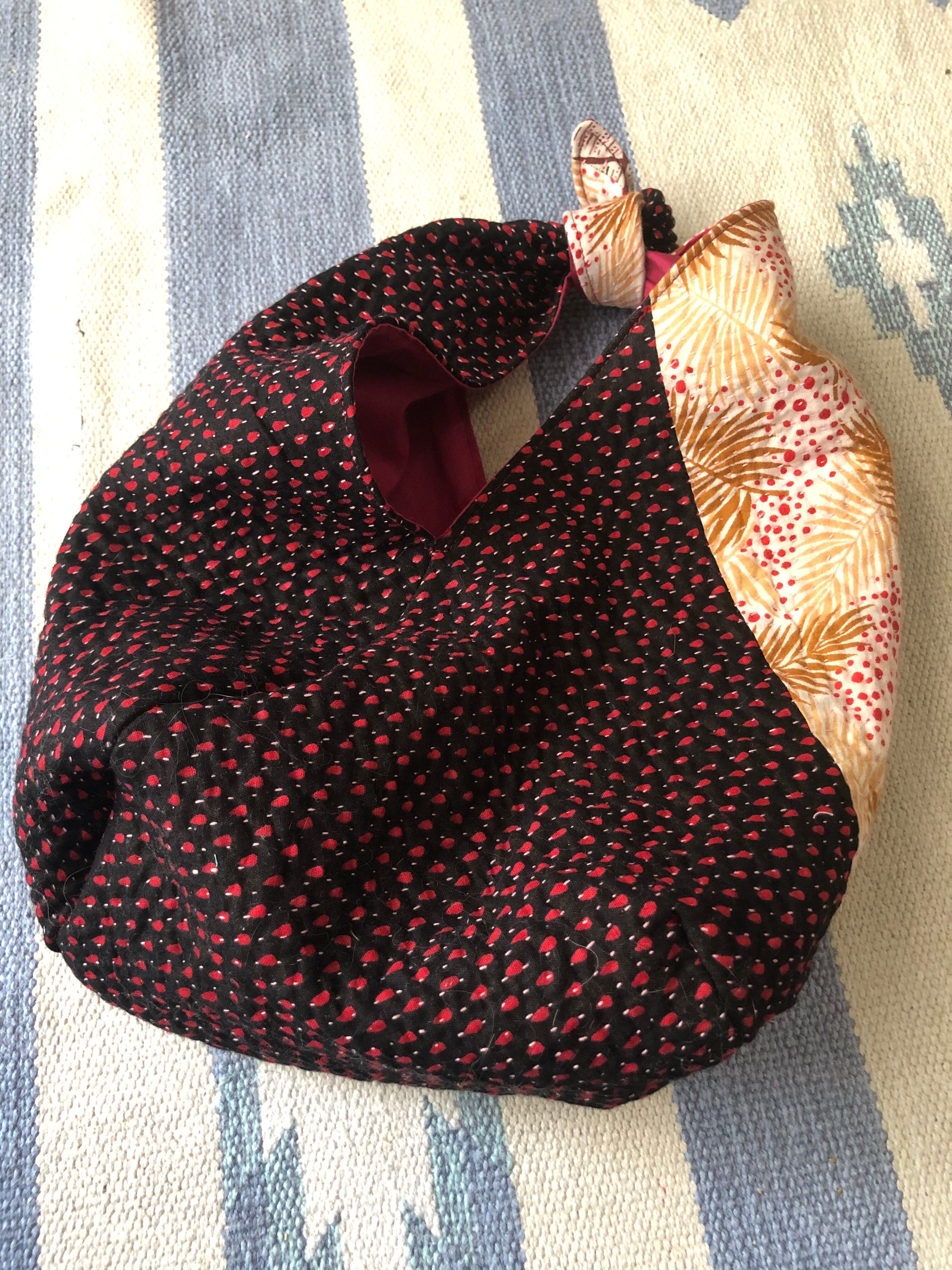ラリーキルトのあずま袋風、おさんぽバッグです。