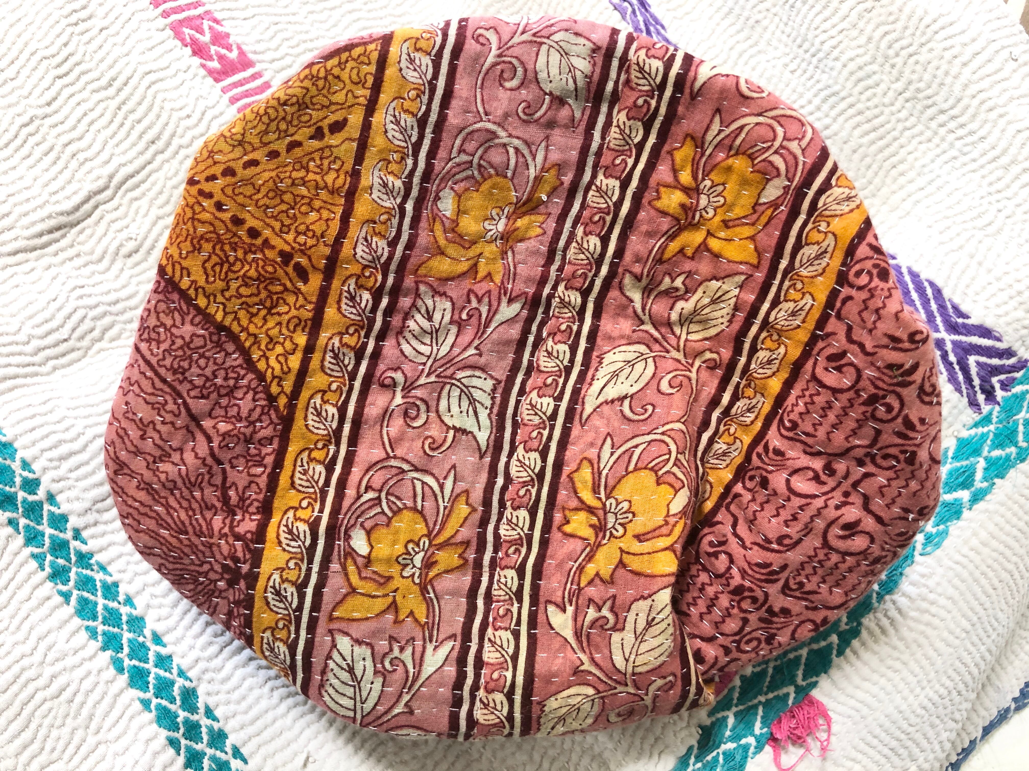 ラリーキルトのお散歩バッグ カンタ刺繍 お弁当入れ ギャザーバッグ ハンドメイド エスニック