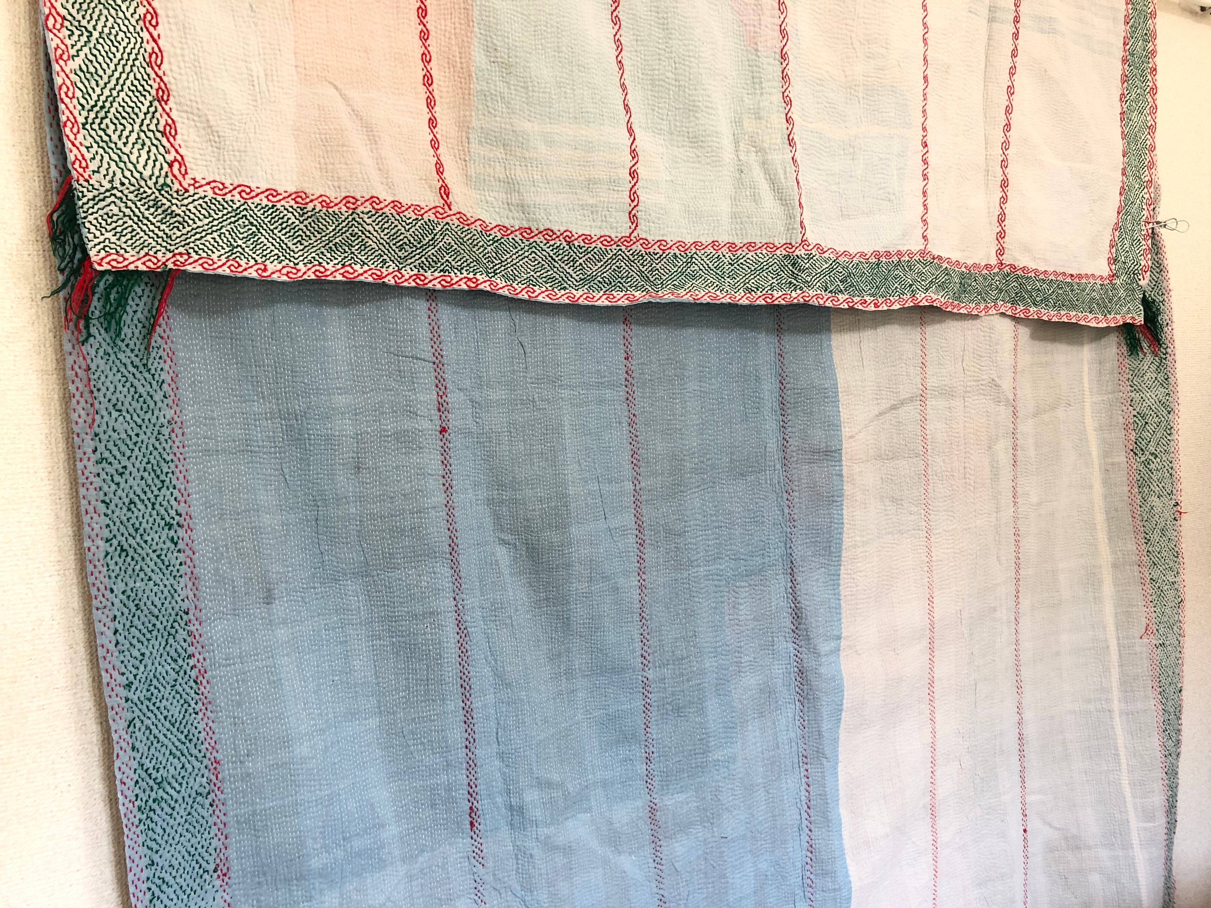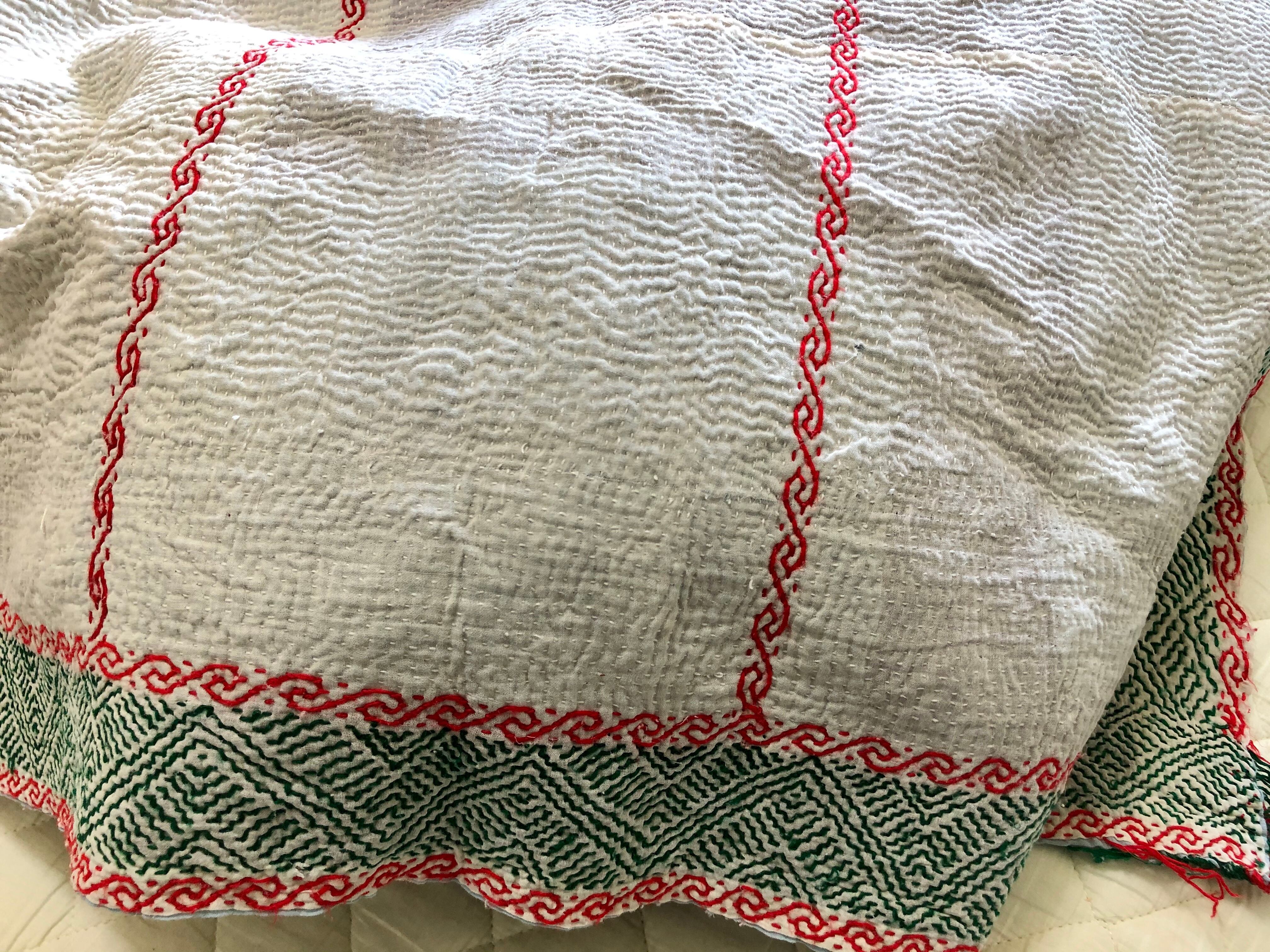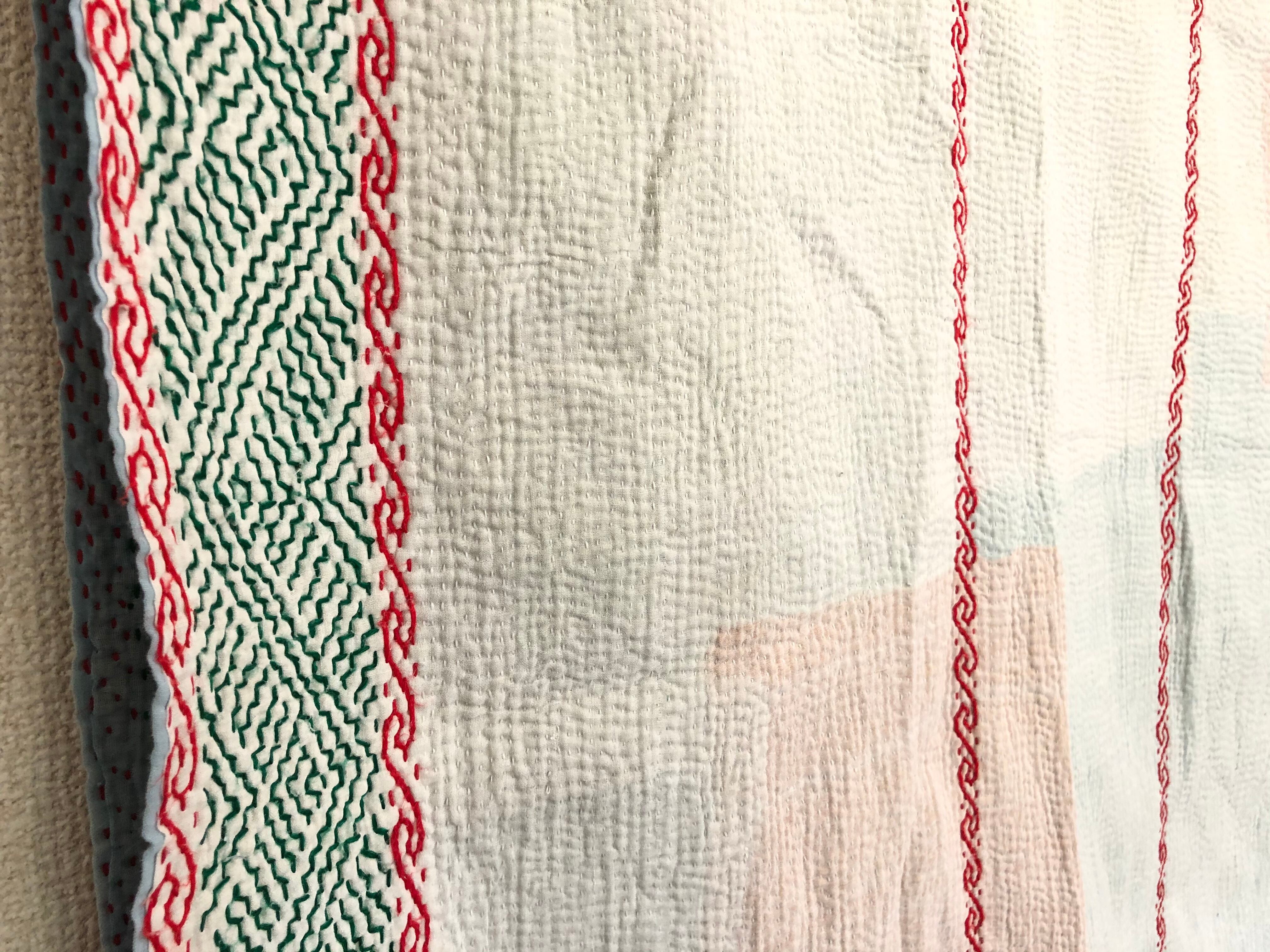刺繍が美しい白のラリーキルト カンタ エスニック ハンドメイド 刺し子 リメイク パッチワーク