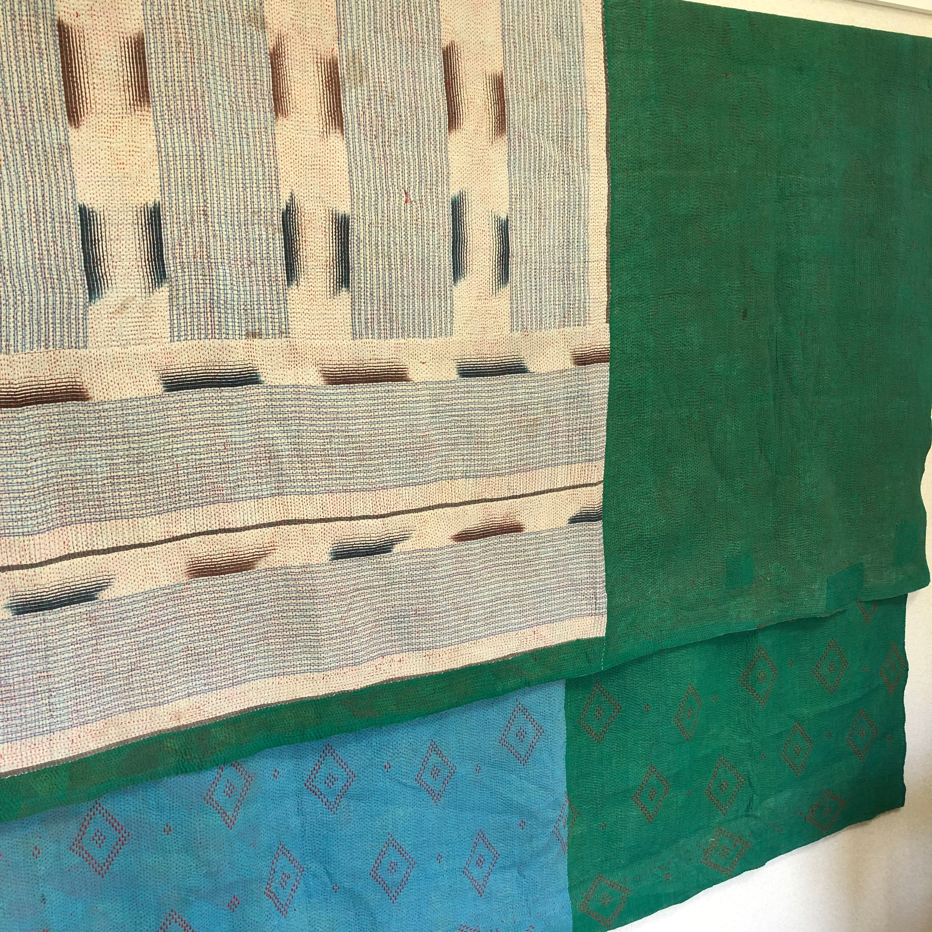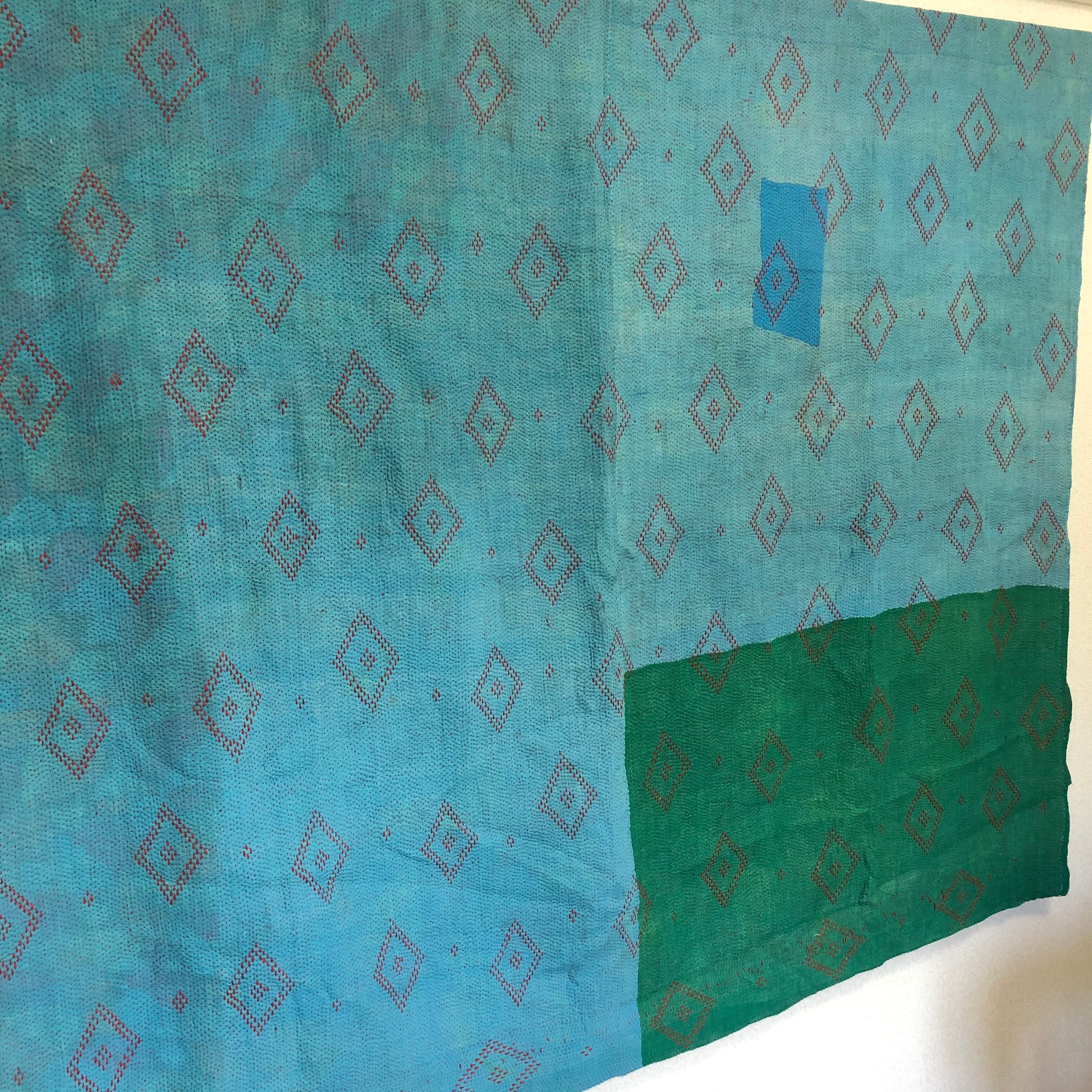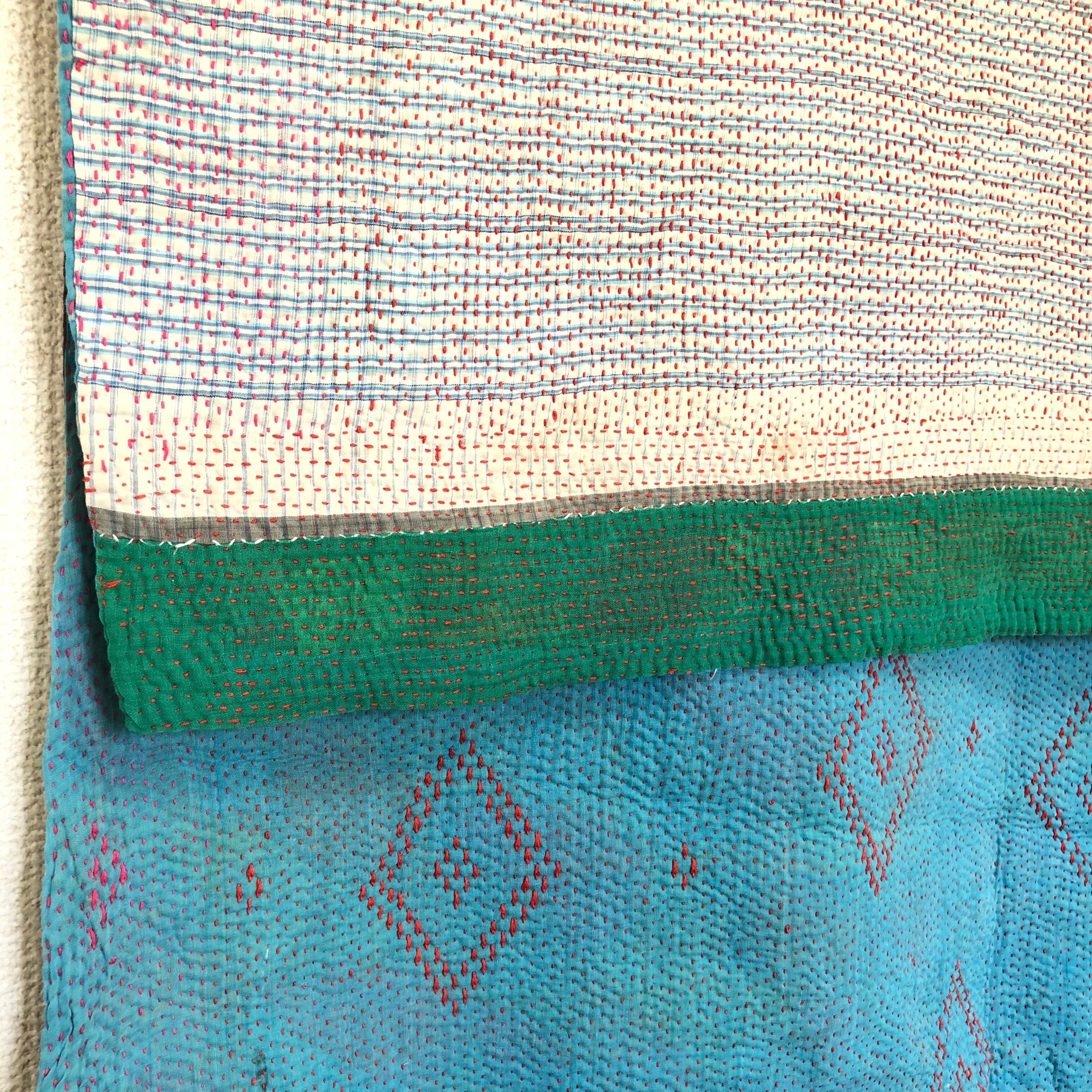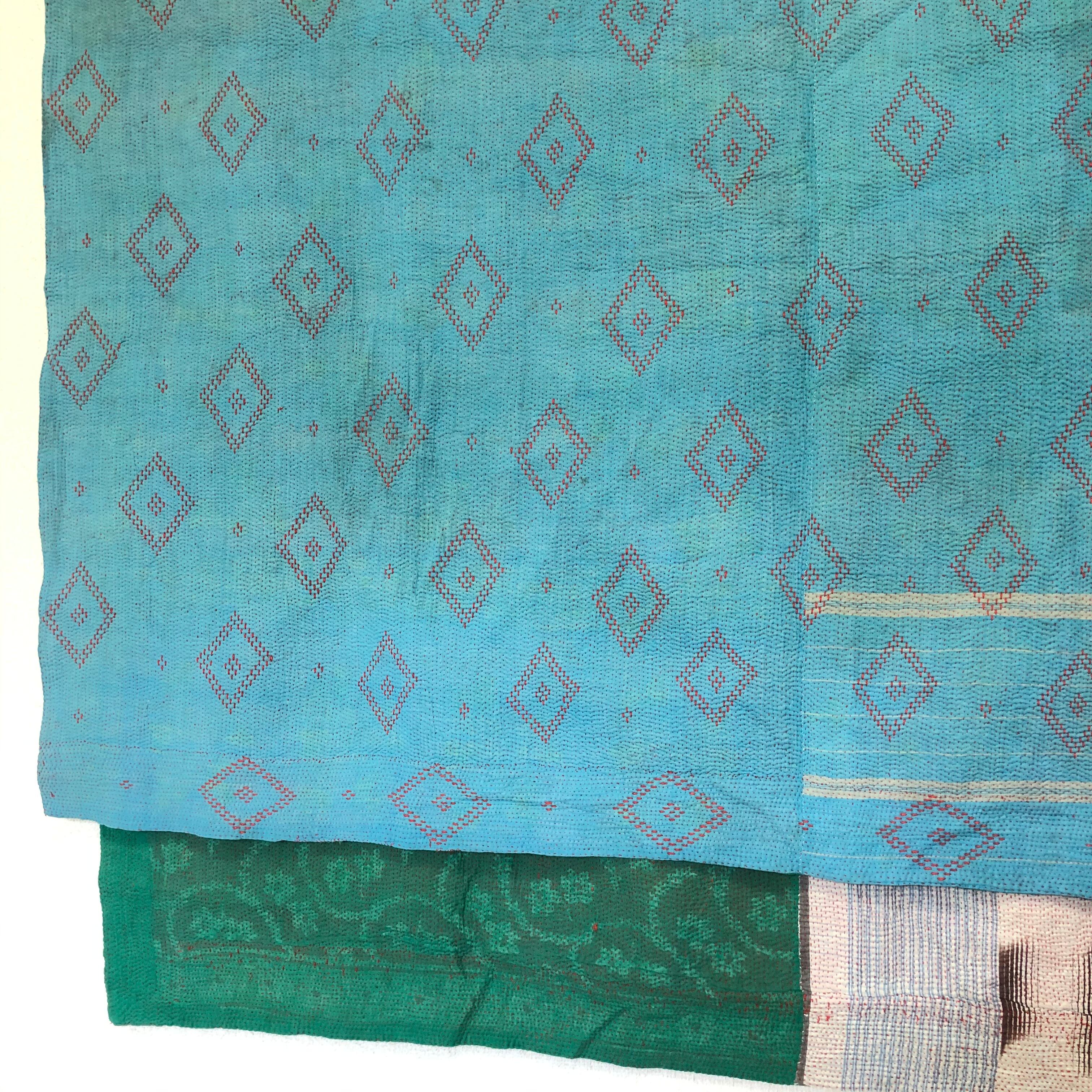 アカい刺繍が可愛いラリーキルト カンタ エスニック ハンドメイド リメイク 古布