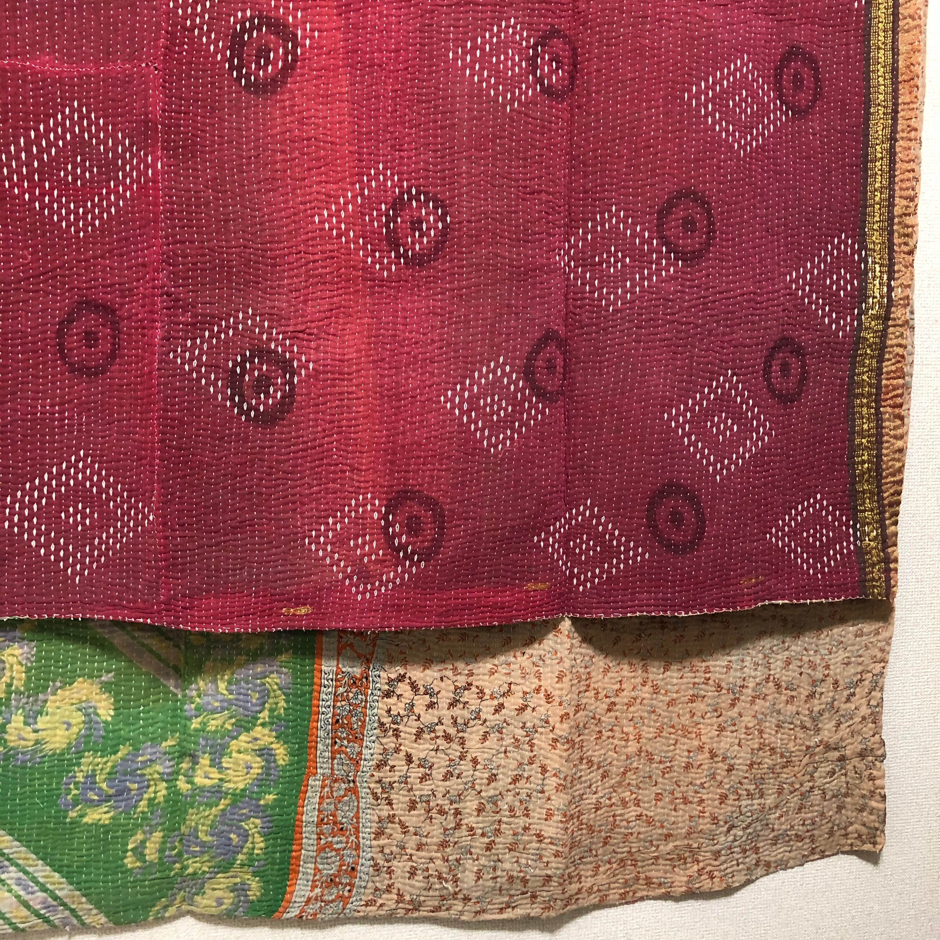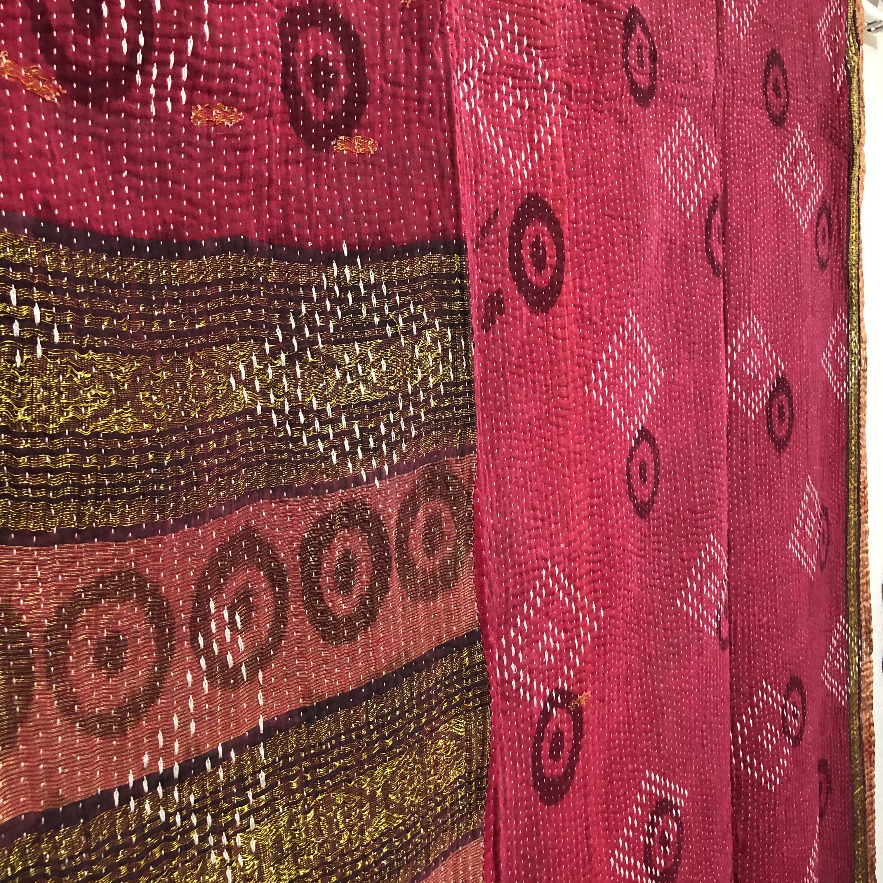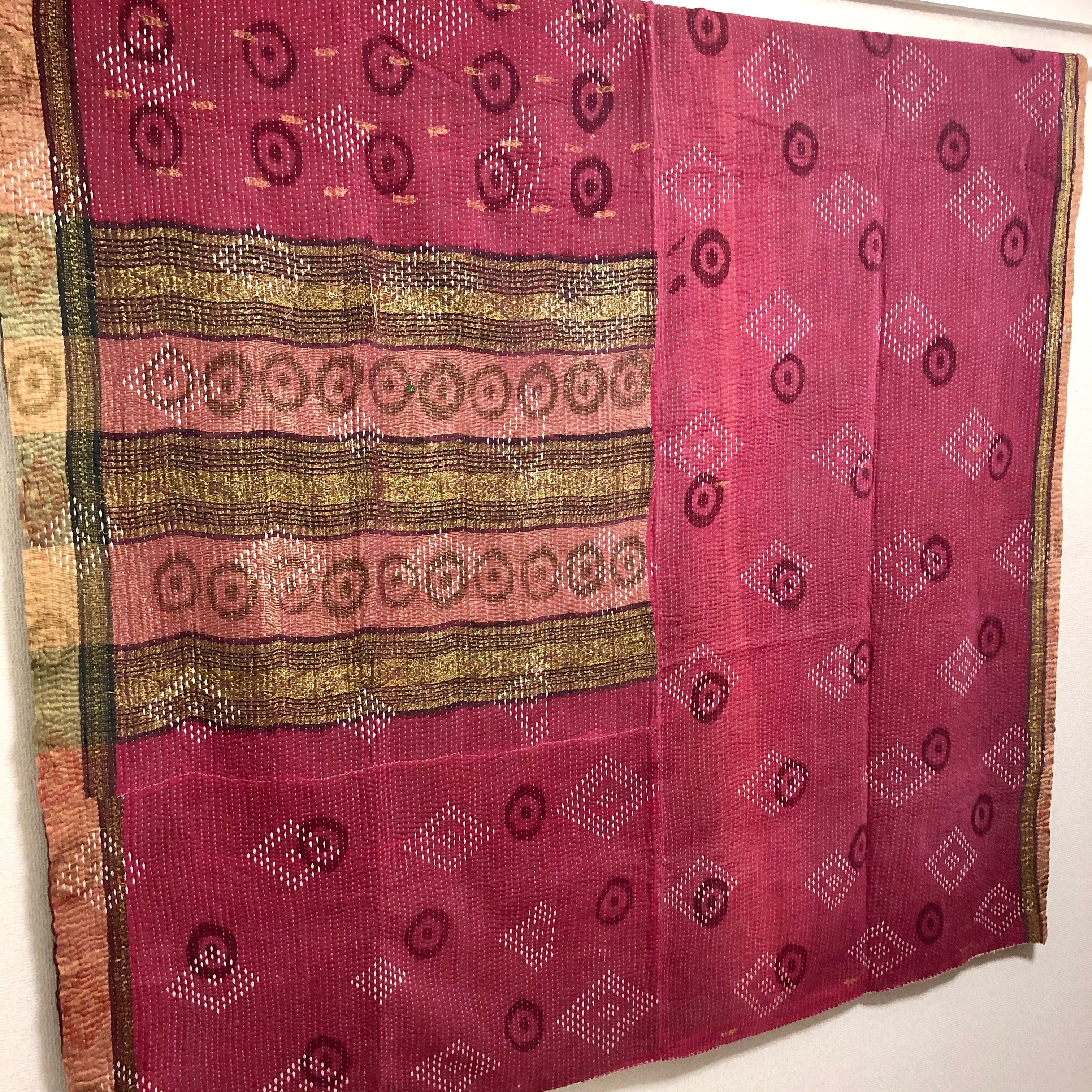 金糸が綺麗なアカのラリーキルト カンタ刺繍 刺し子 エスニック ハンドメイド 古布