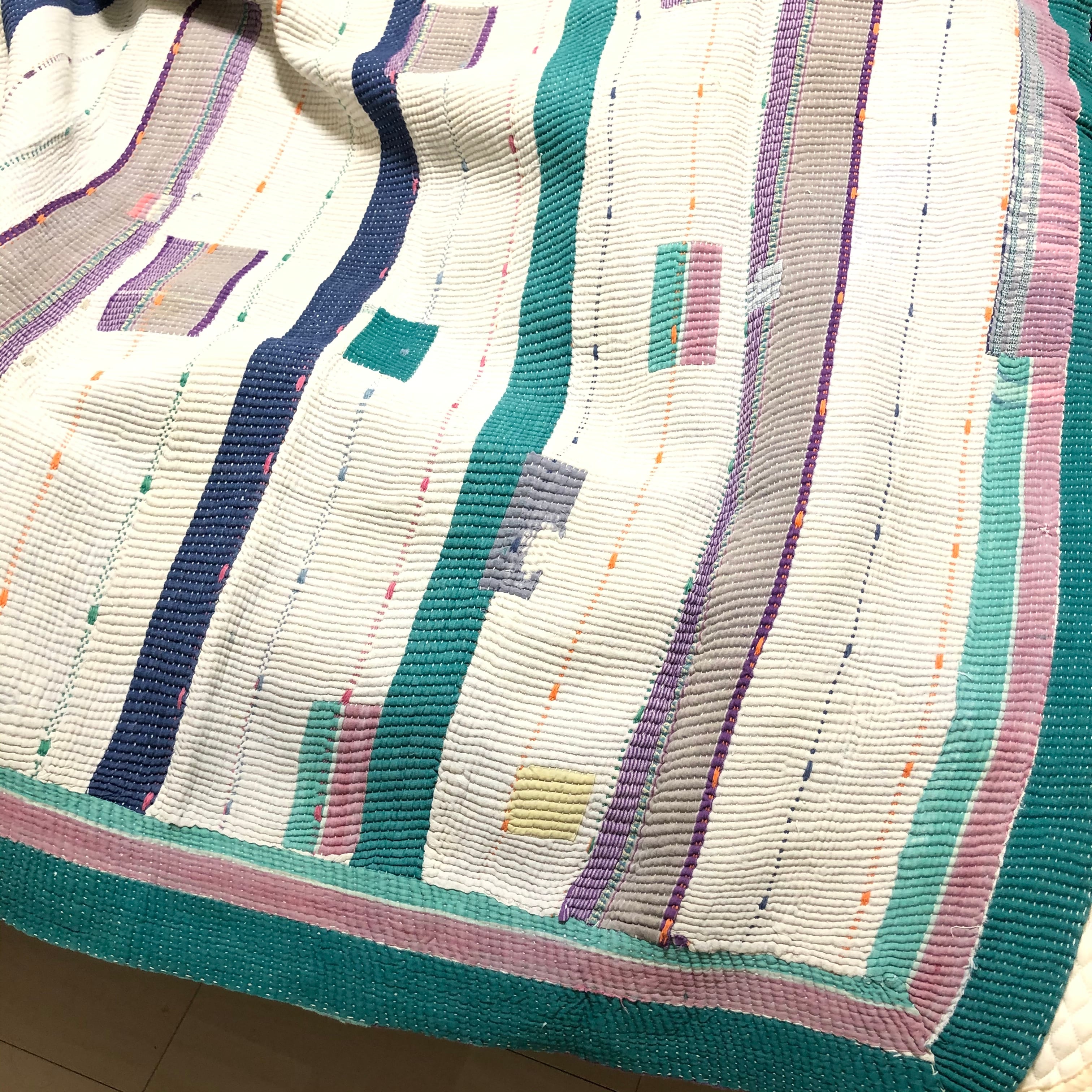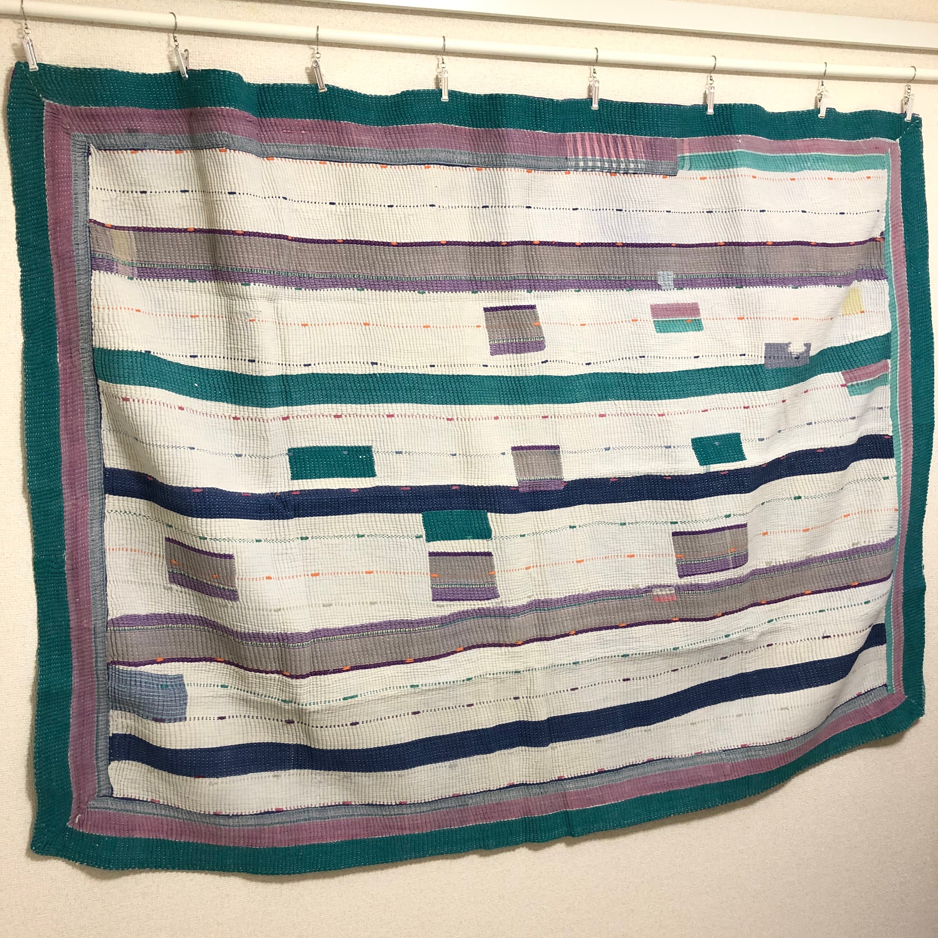 ずっしり小さめラリーキルト カンタ刺繍 刺し子 エスニック パッチワーク ハンドメイド