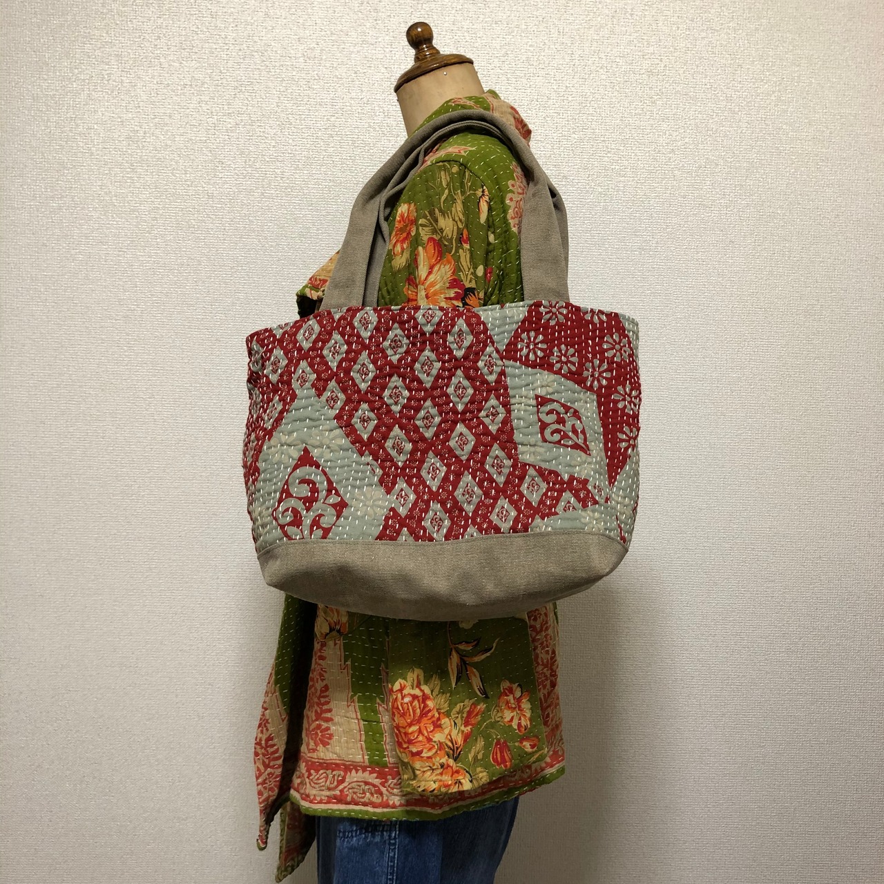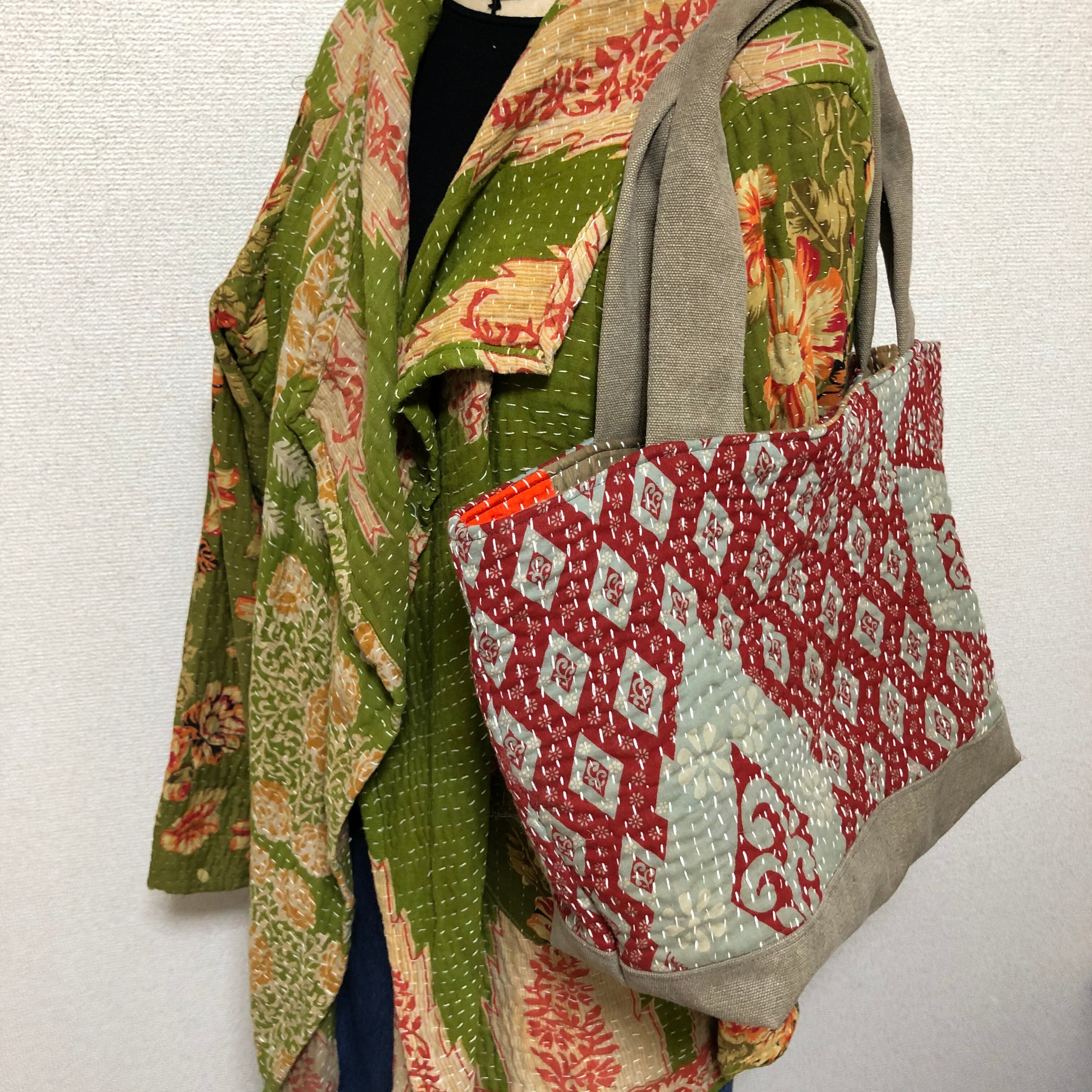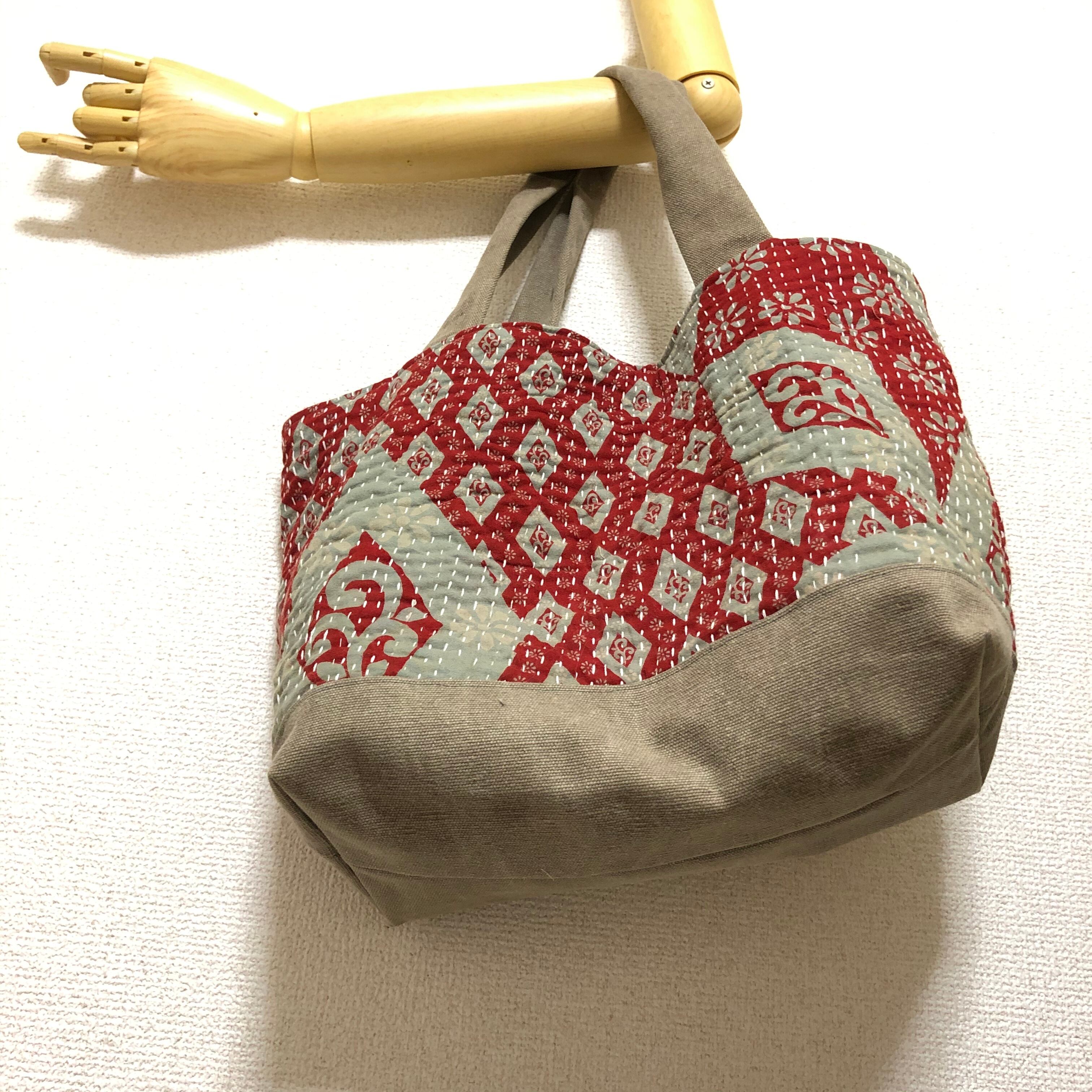 ラリーキルトと帆布のバッグ 刺し子 トートバッグ ハンドメイド エスニック