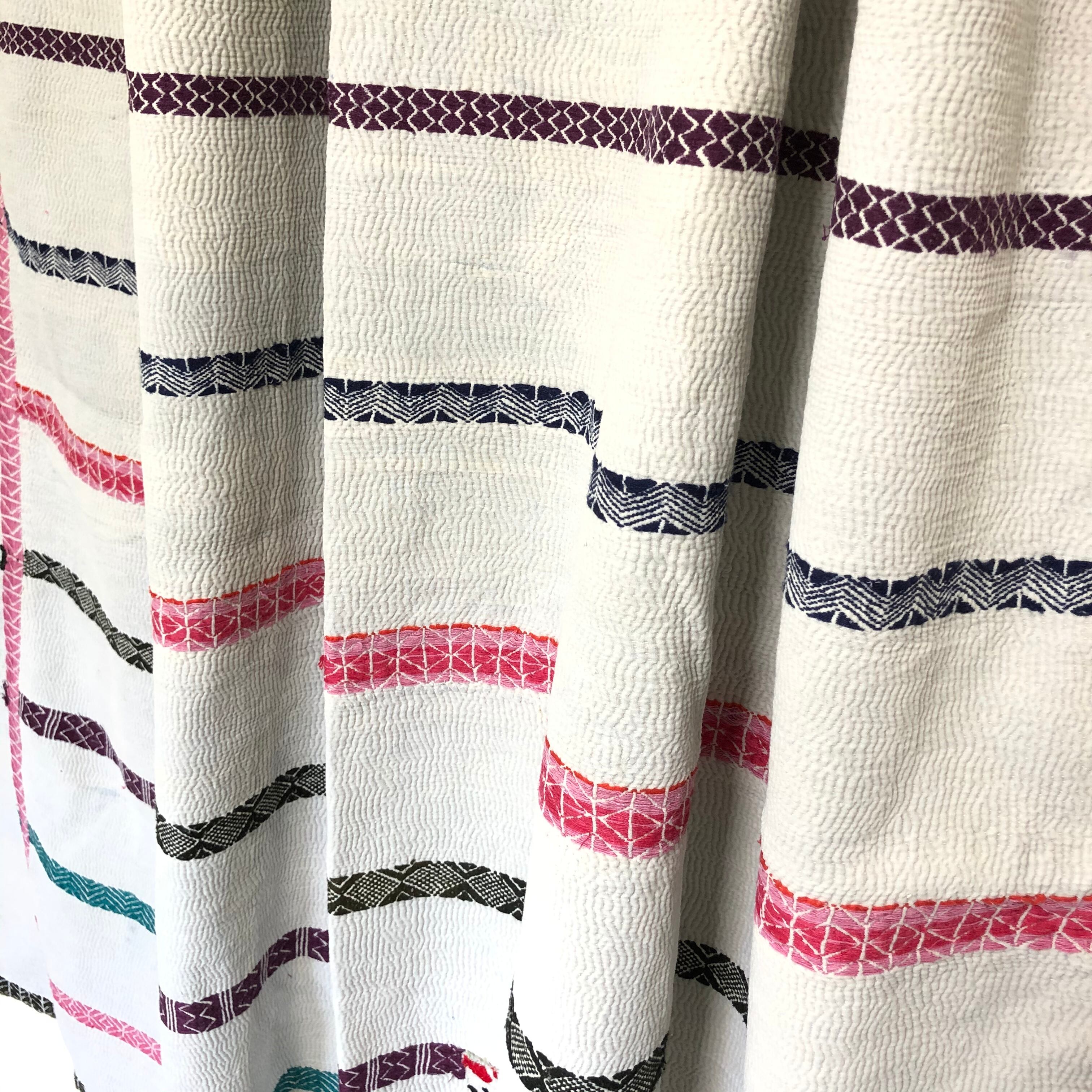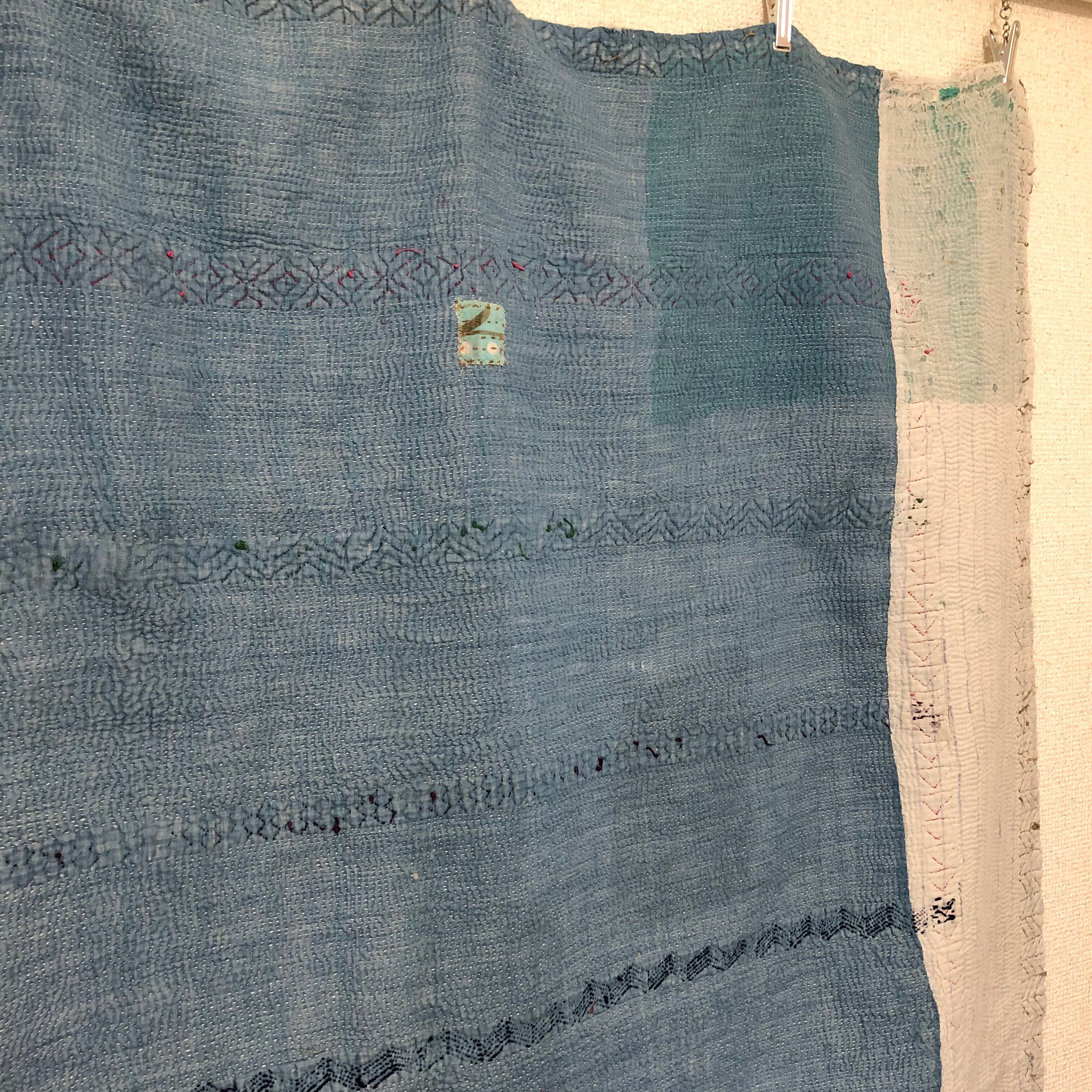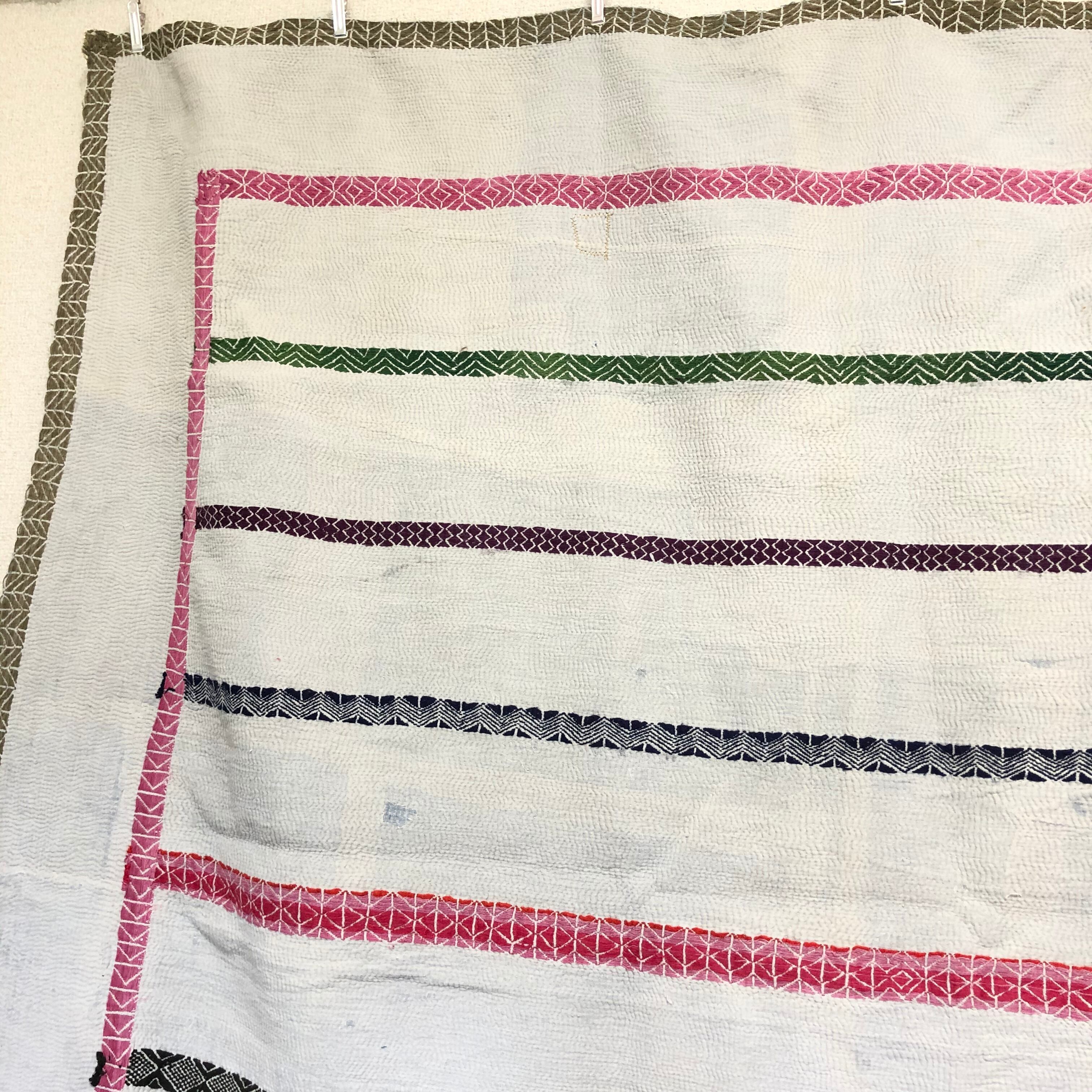 小さめラリーキルト 刺し子 エスニック 生成り ハンドメイド パッチワーク カンタ刺繍