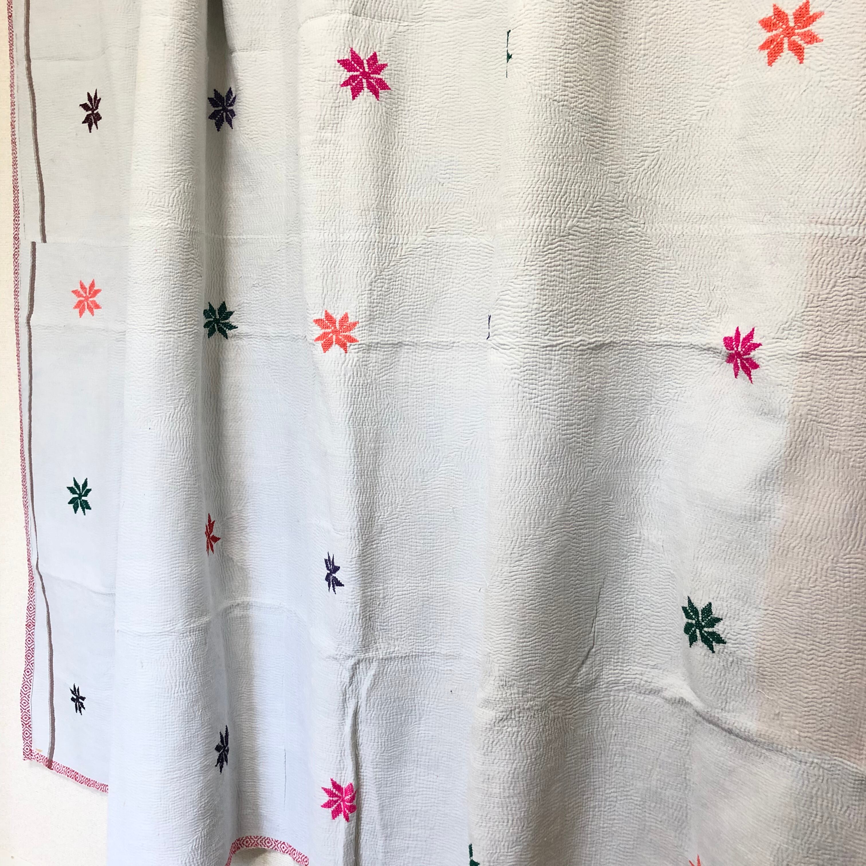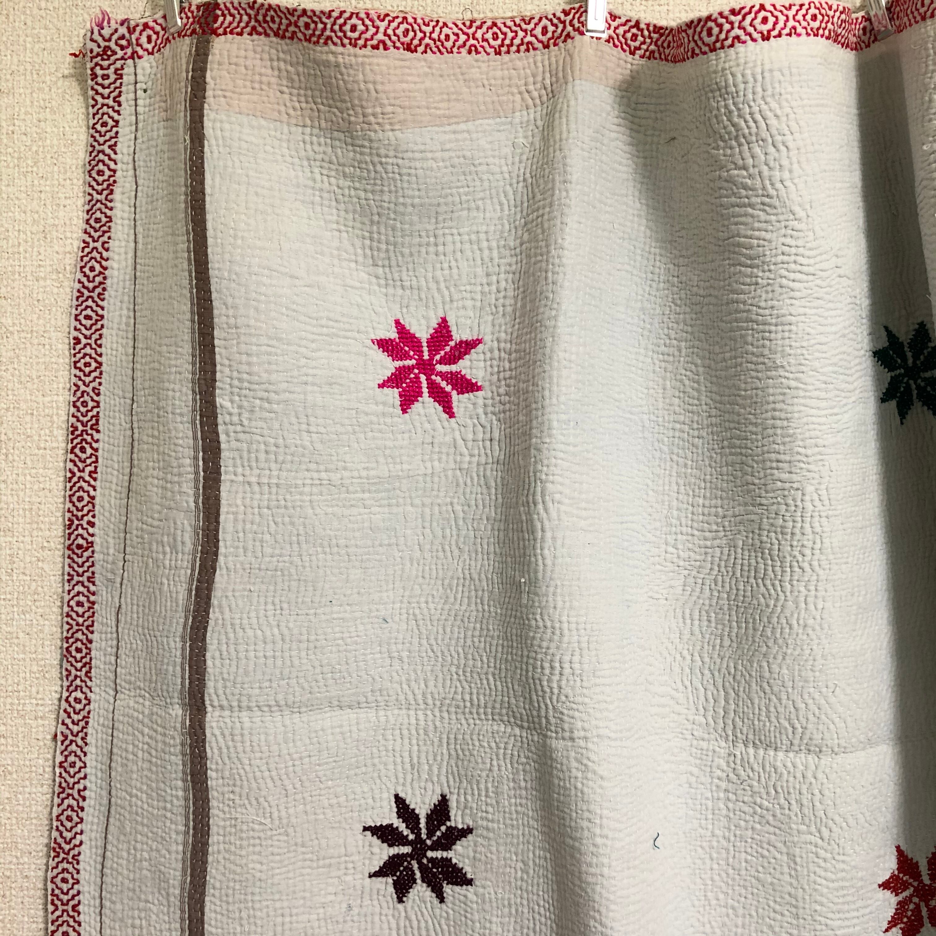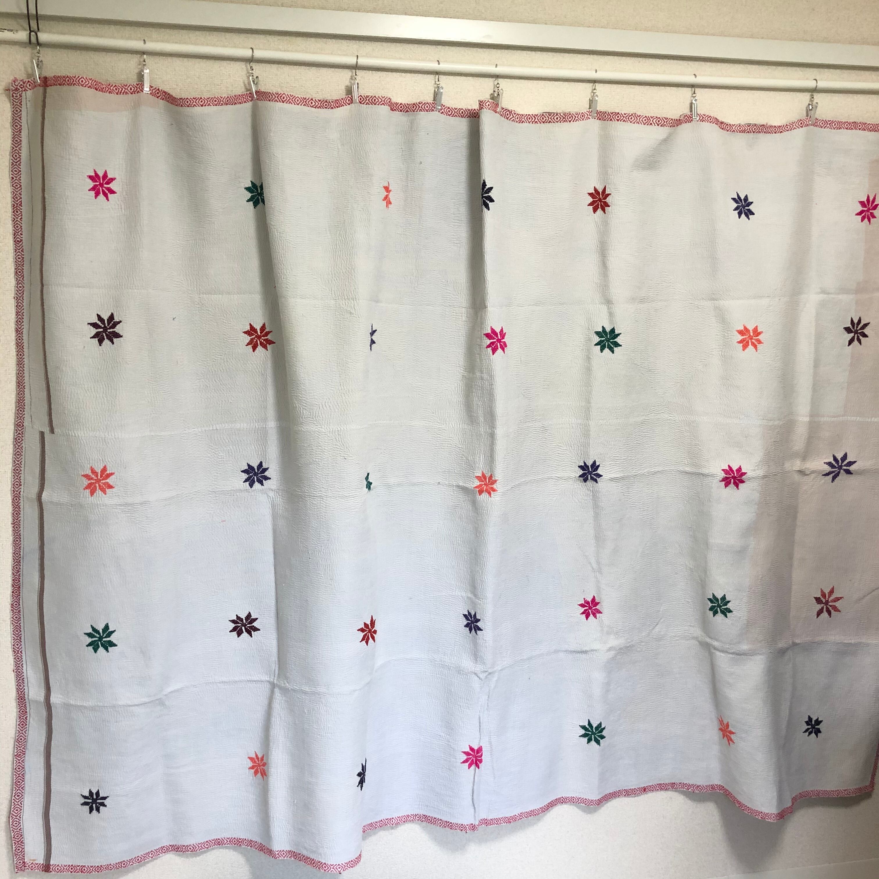 お花柄刺繍のラリーキルト 刺し子 カンタ刺繍 エスニック ハンドメイド パッチワーク 古布