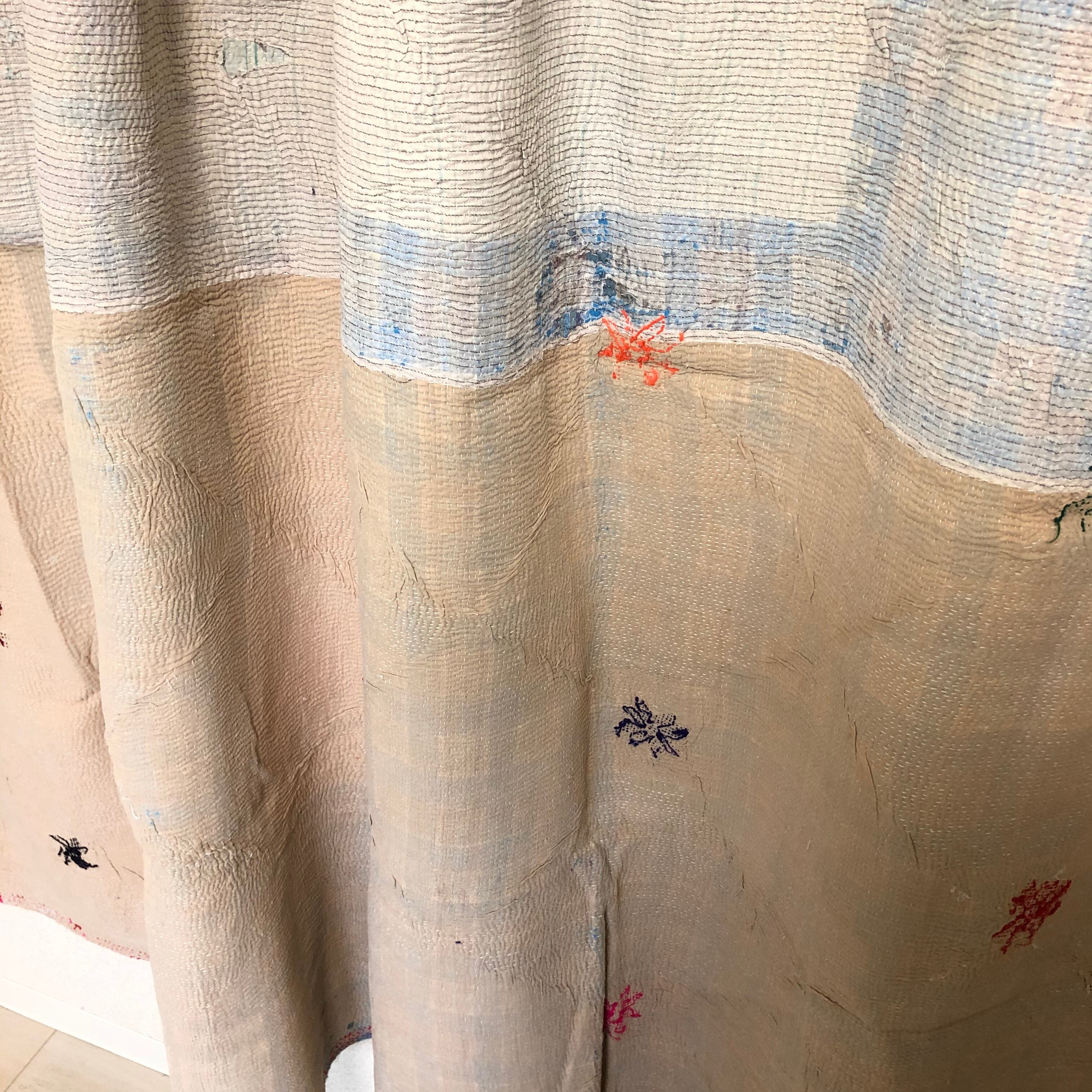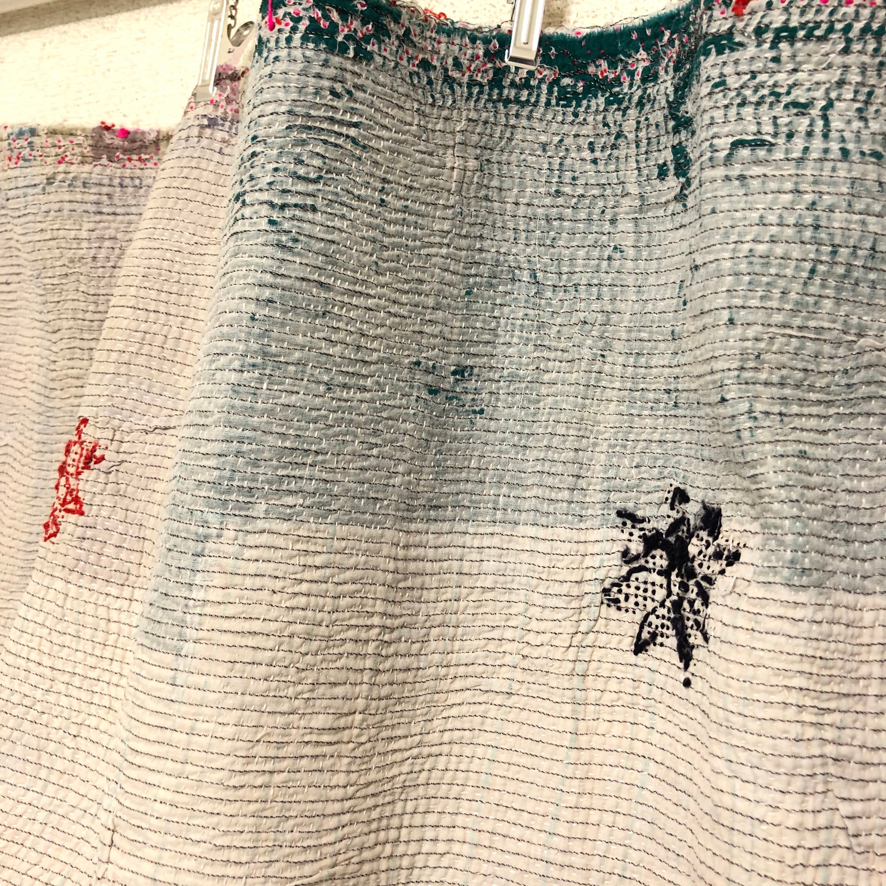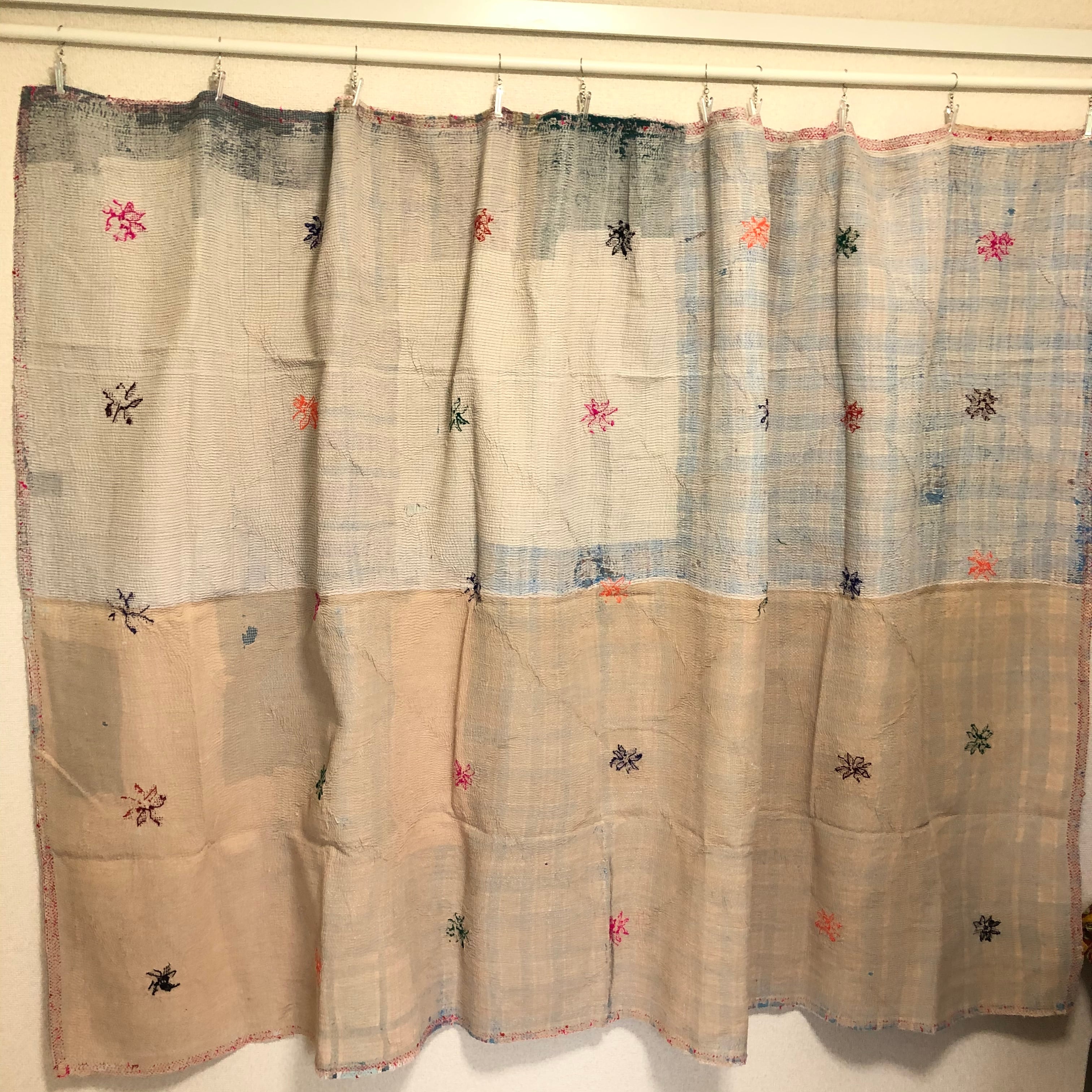 お花柄刺繍のラリーキルト 刺し子 カンタ刺繍 エスニック ハンドメイド パッチワーク 古布